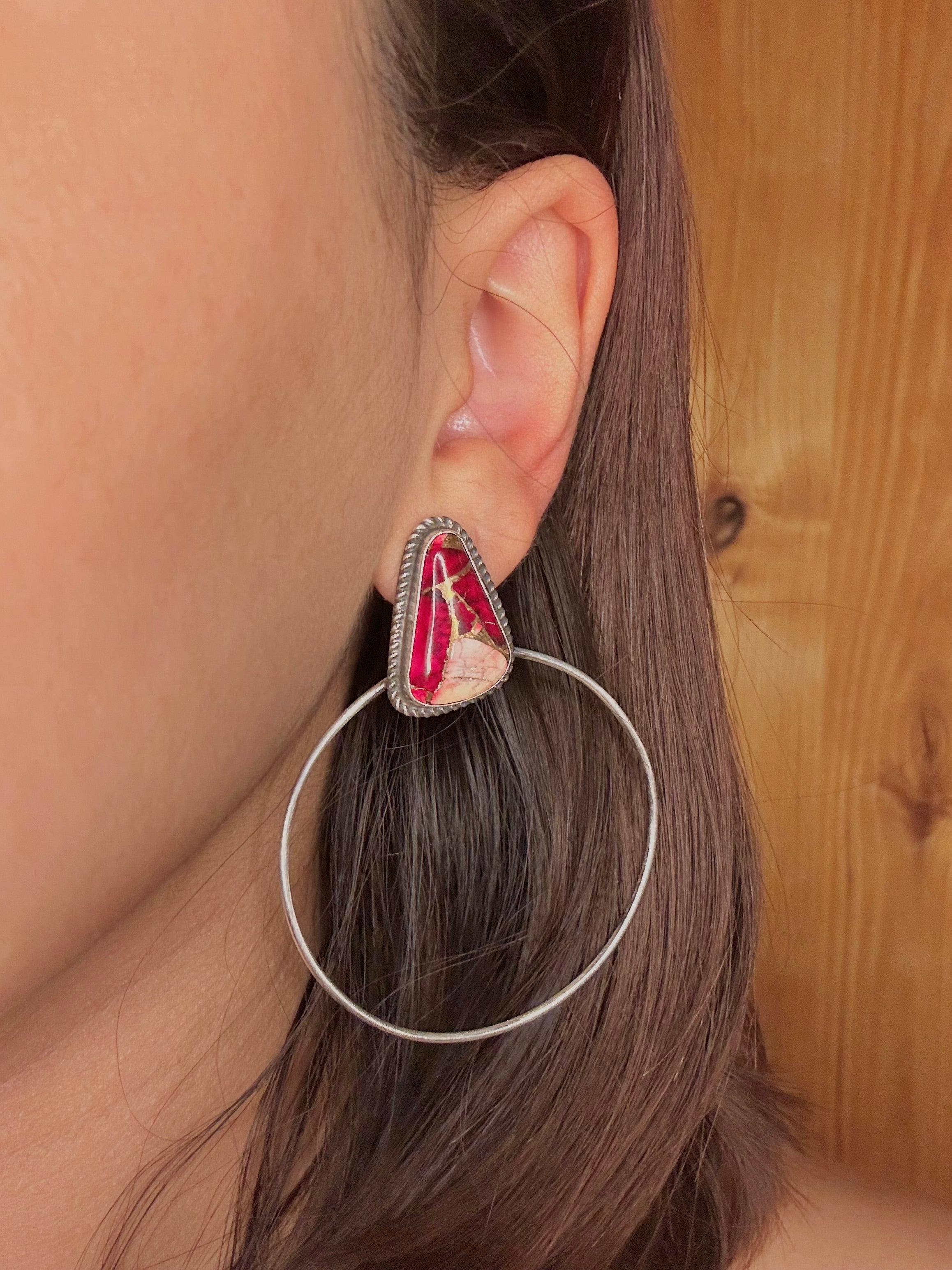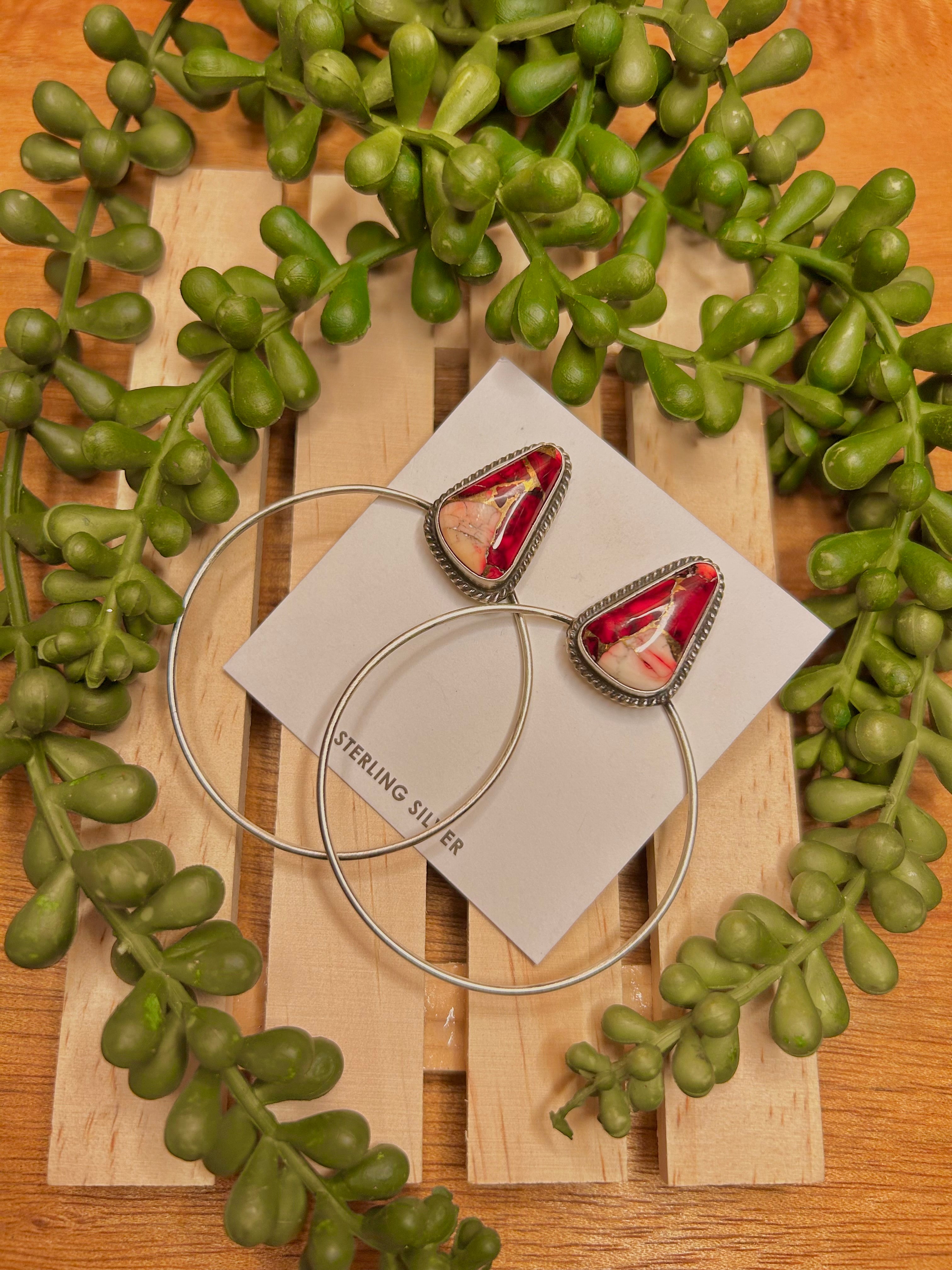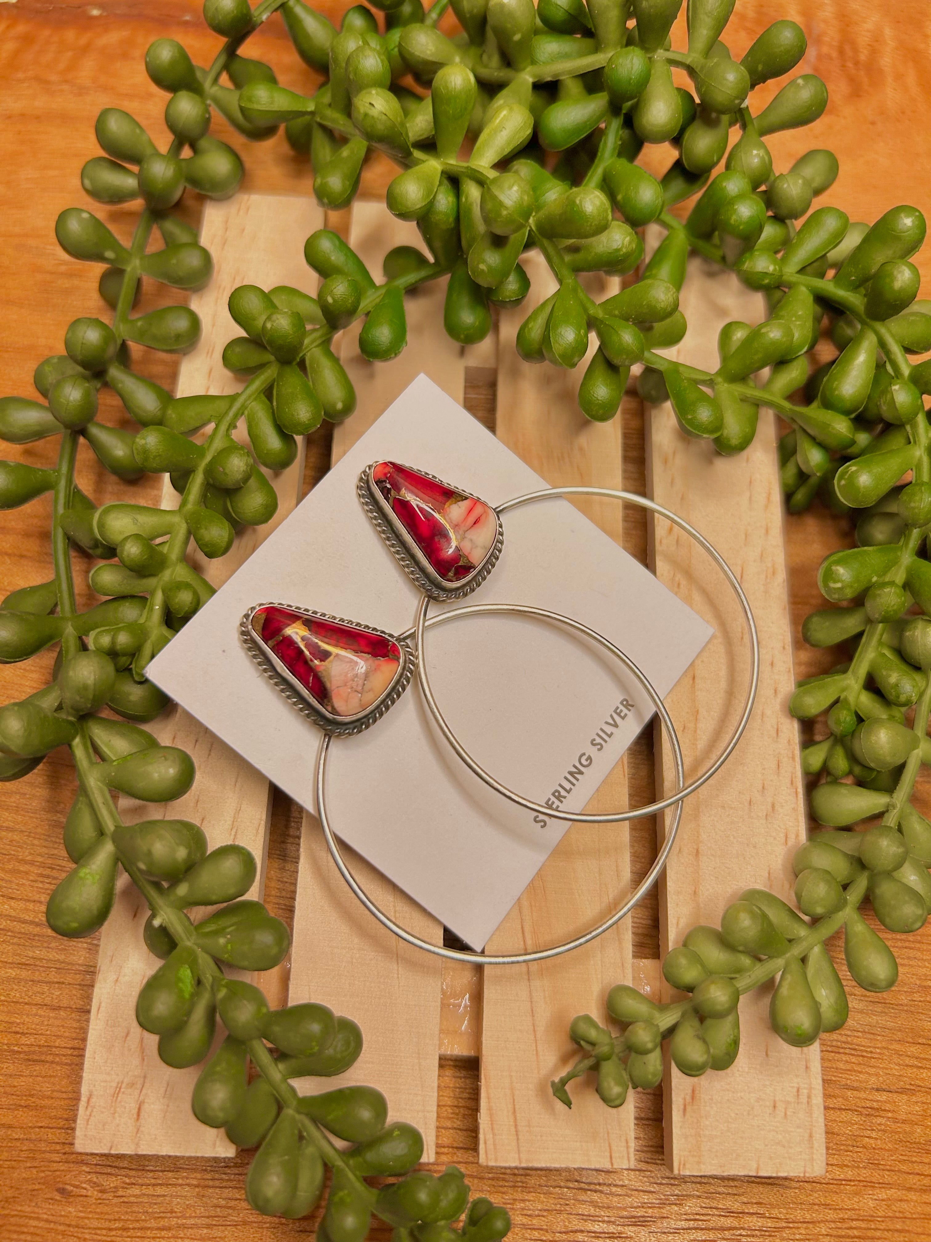 Elouise Kee Navajo Made Dahlia Rose & Sterling Silver Post Earrings