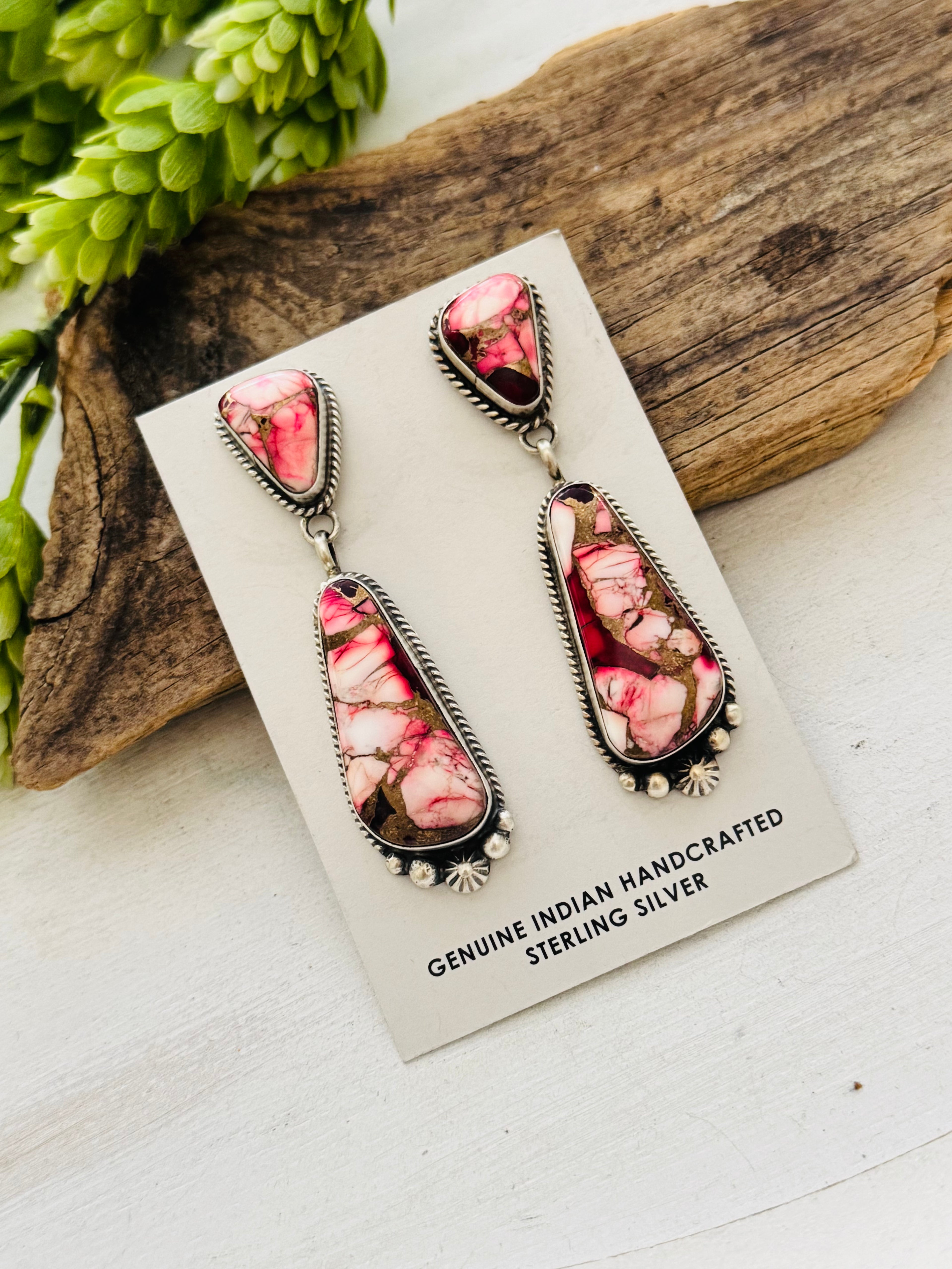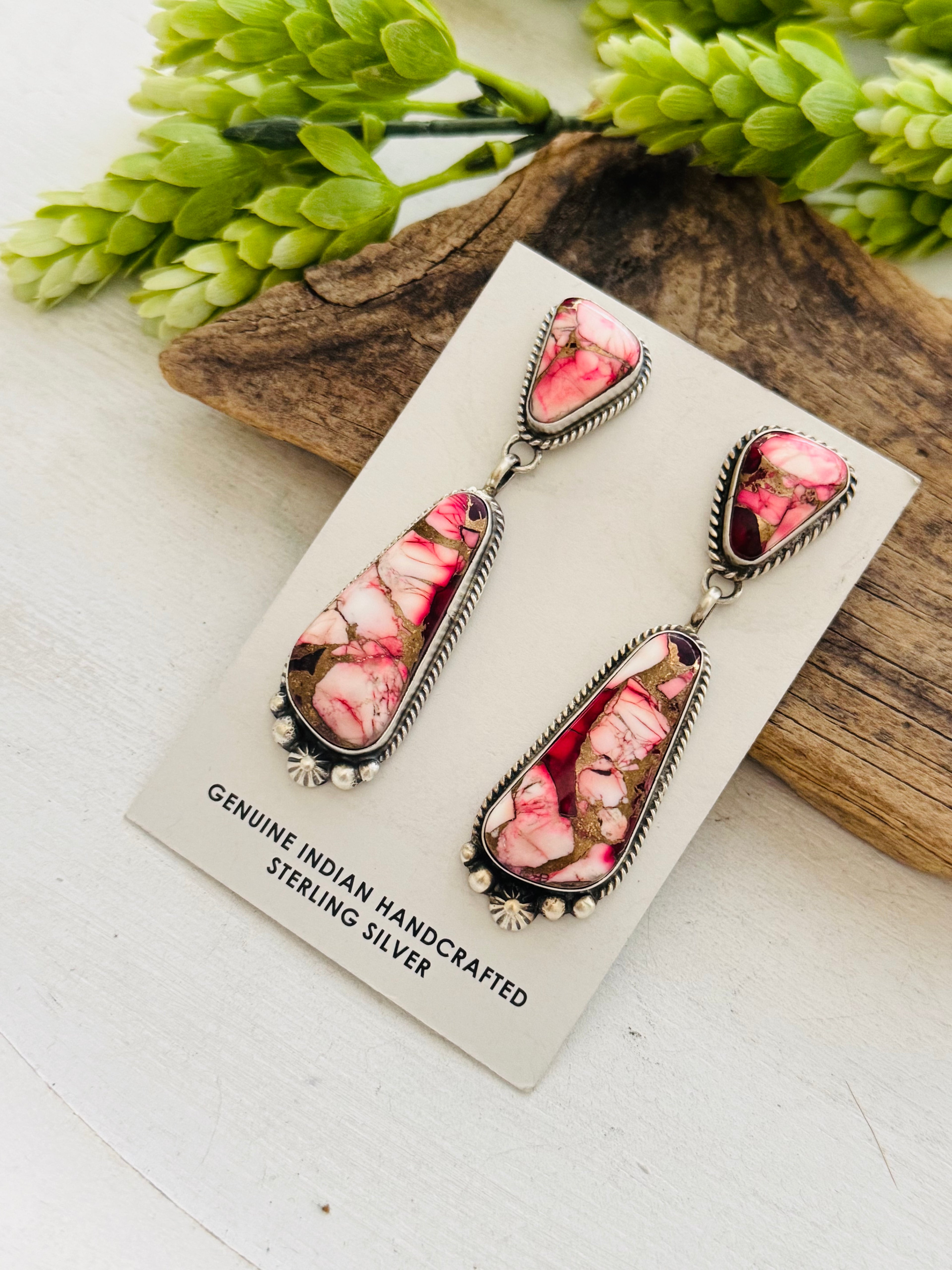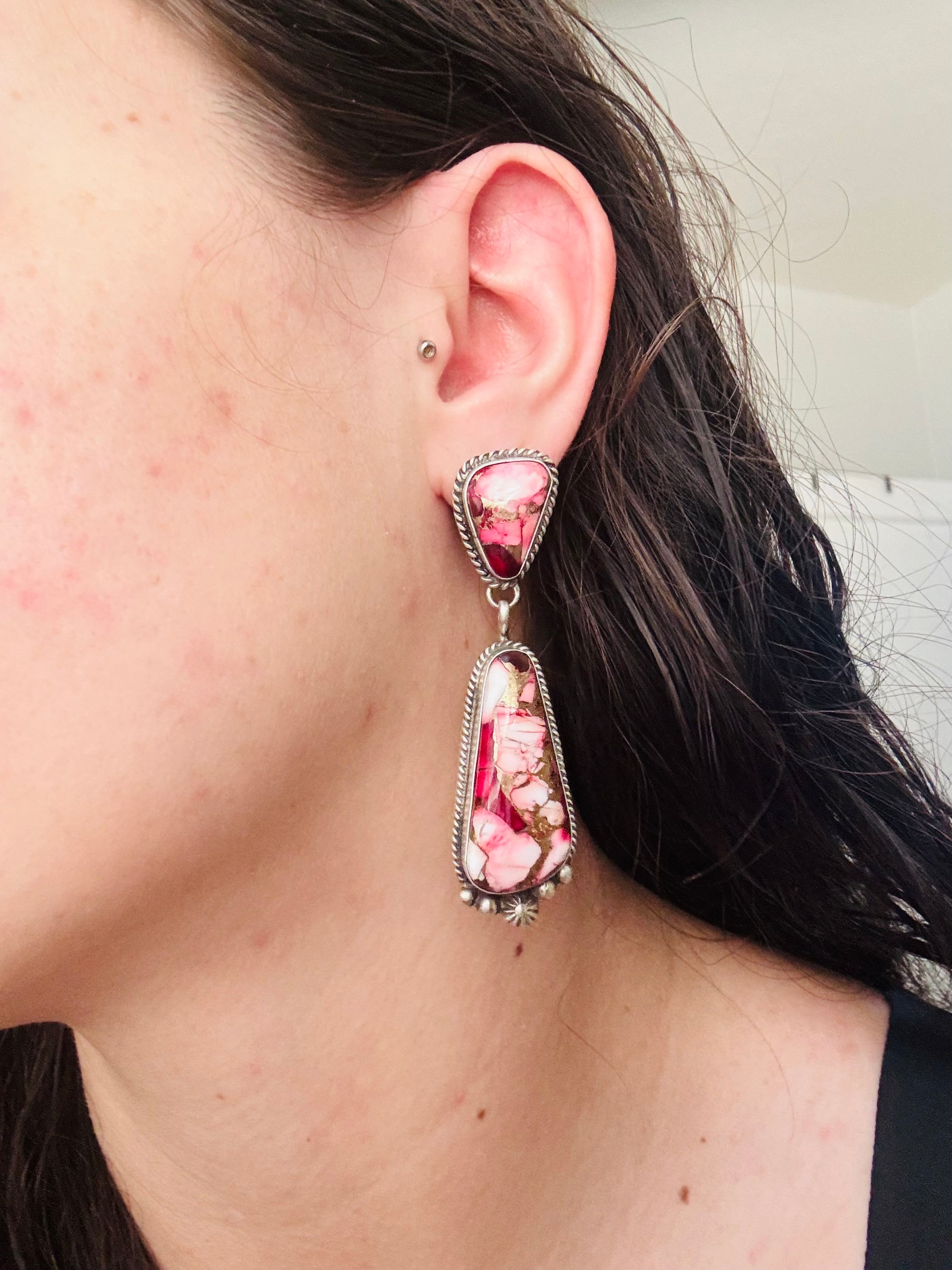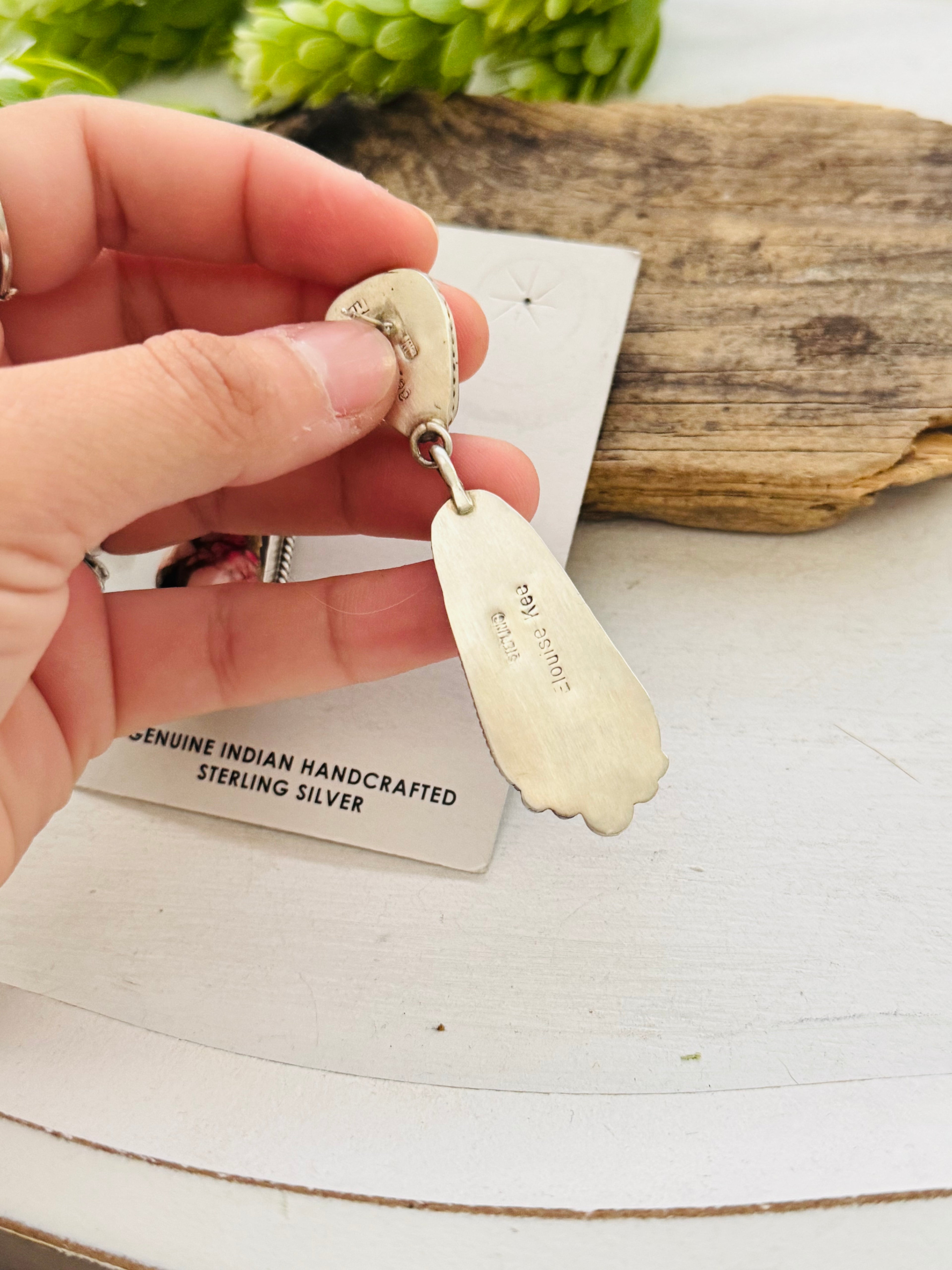Elouise Kee Dahlia Rose & Sterling Silver Post Dangle Earrings. It measures 2 3/4 inches long and 3/4 of an inch wide. Stamped and sign by sterling sliver.