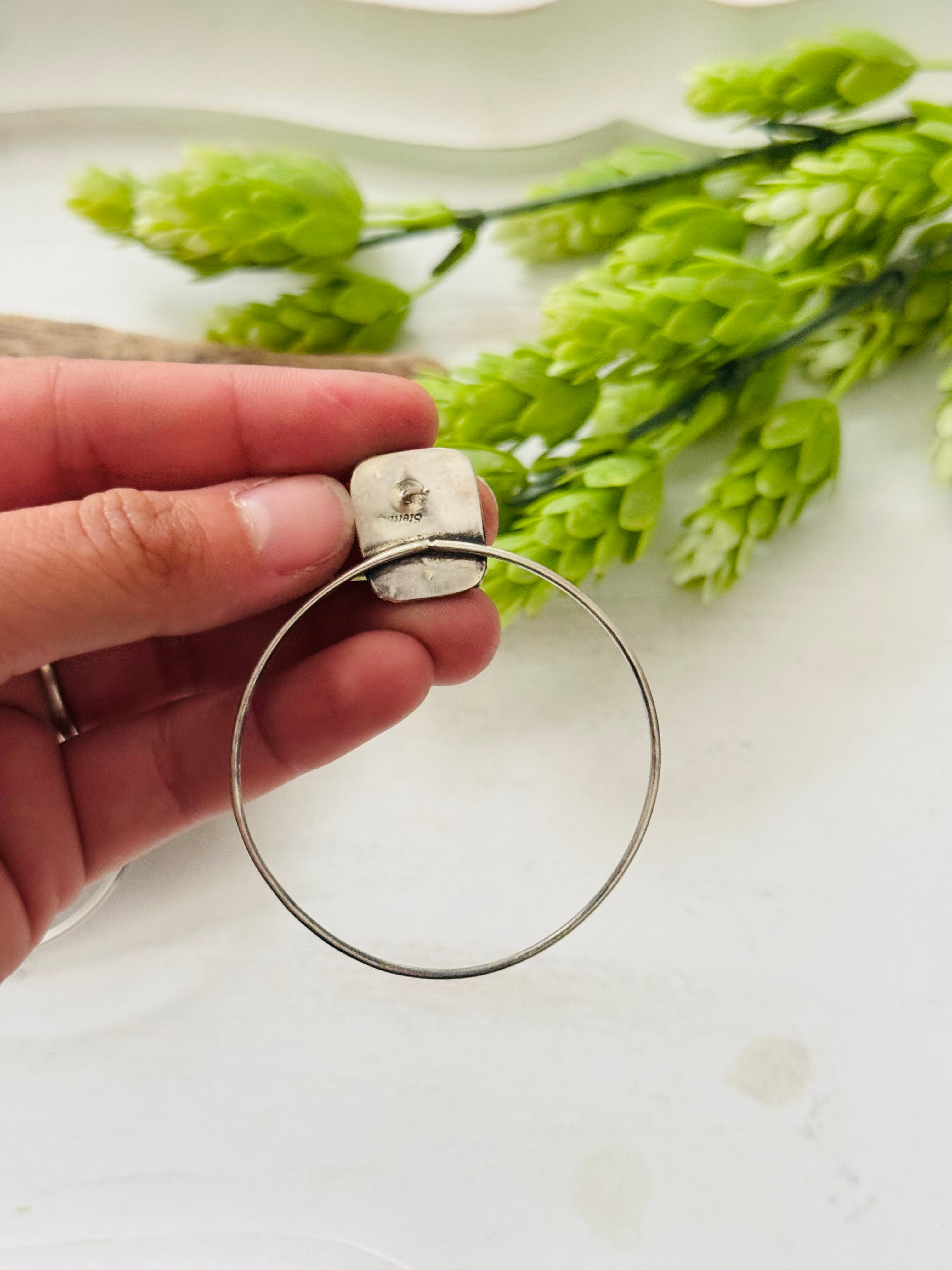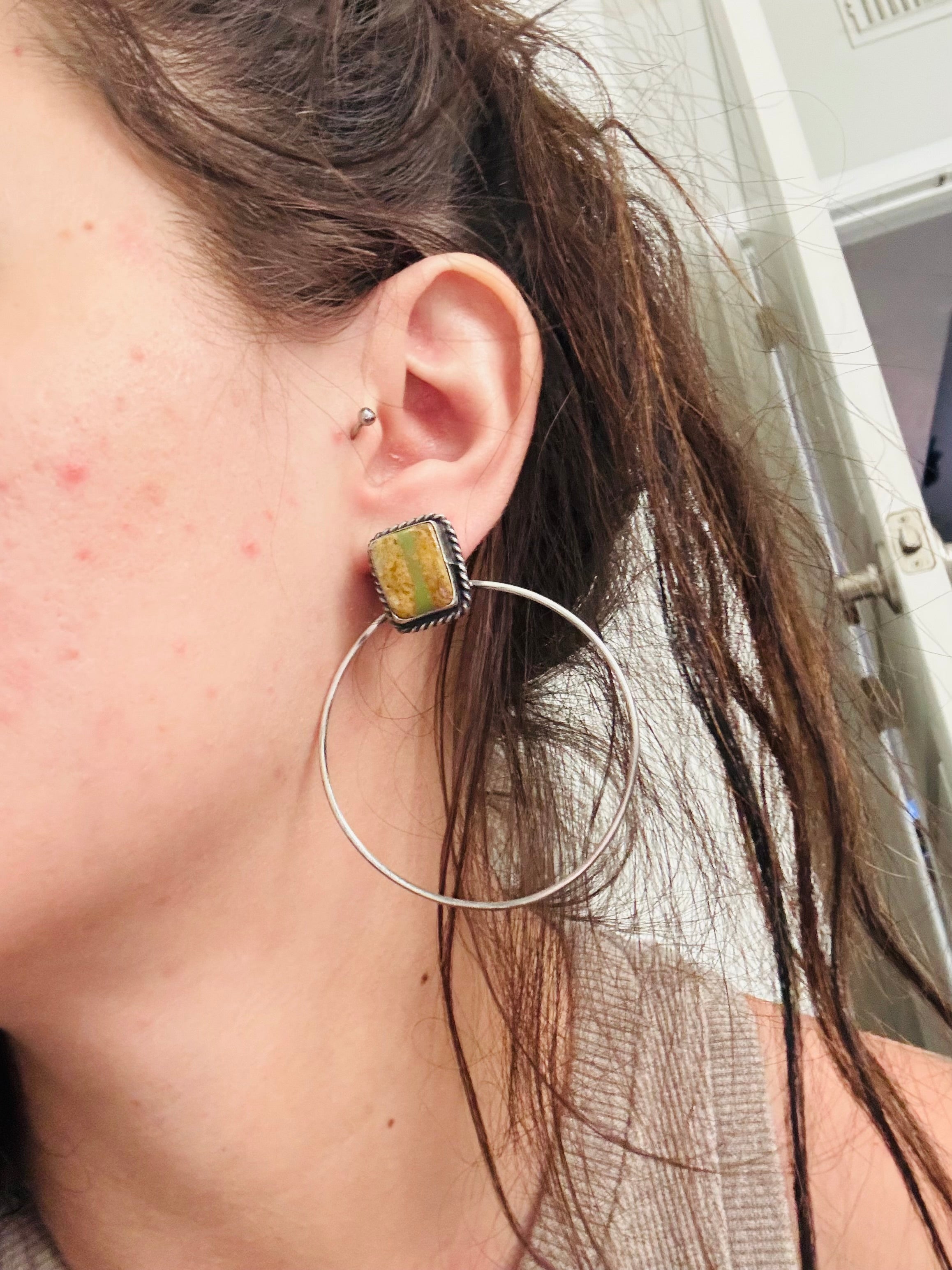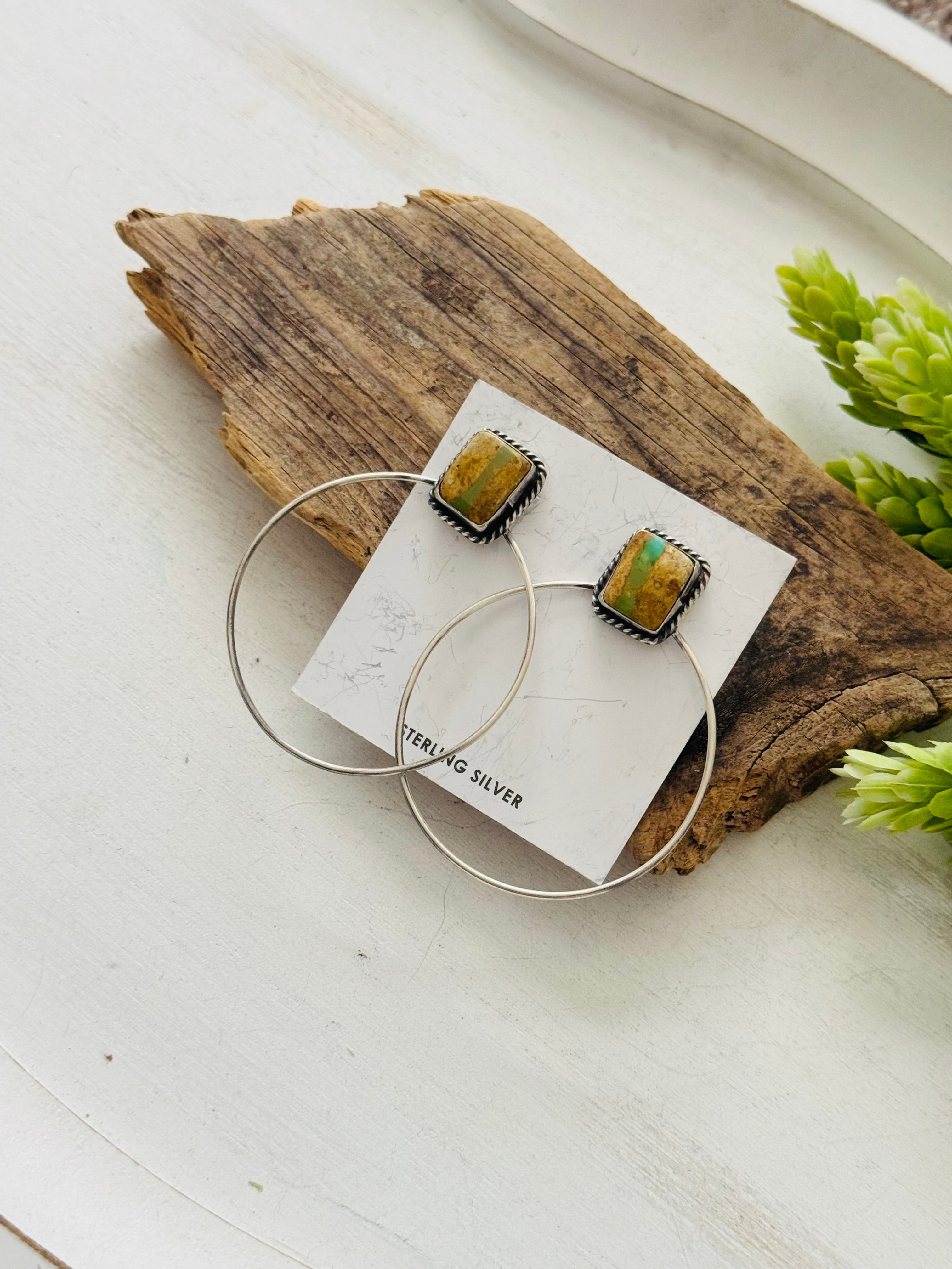 Elouise Kee Ribbon Royston & Sterling Silver Post Dangle Hoop Earrings. It measures 2 1/2 inches long and 2 inches wide. Stamped and sign by sterling sliver.
