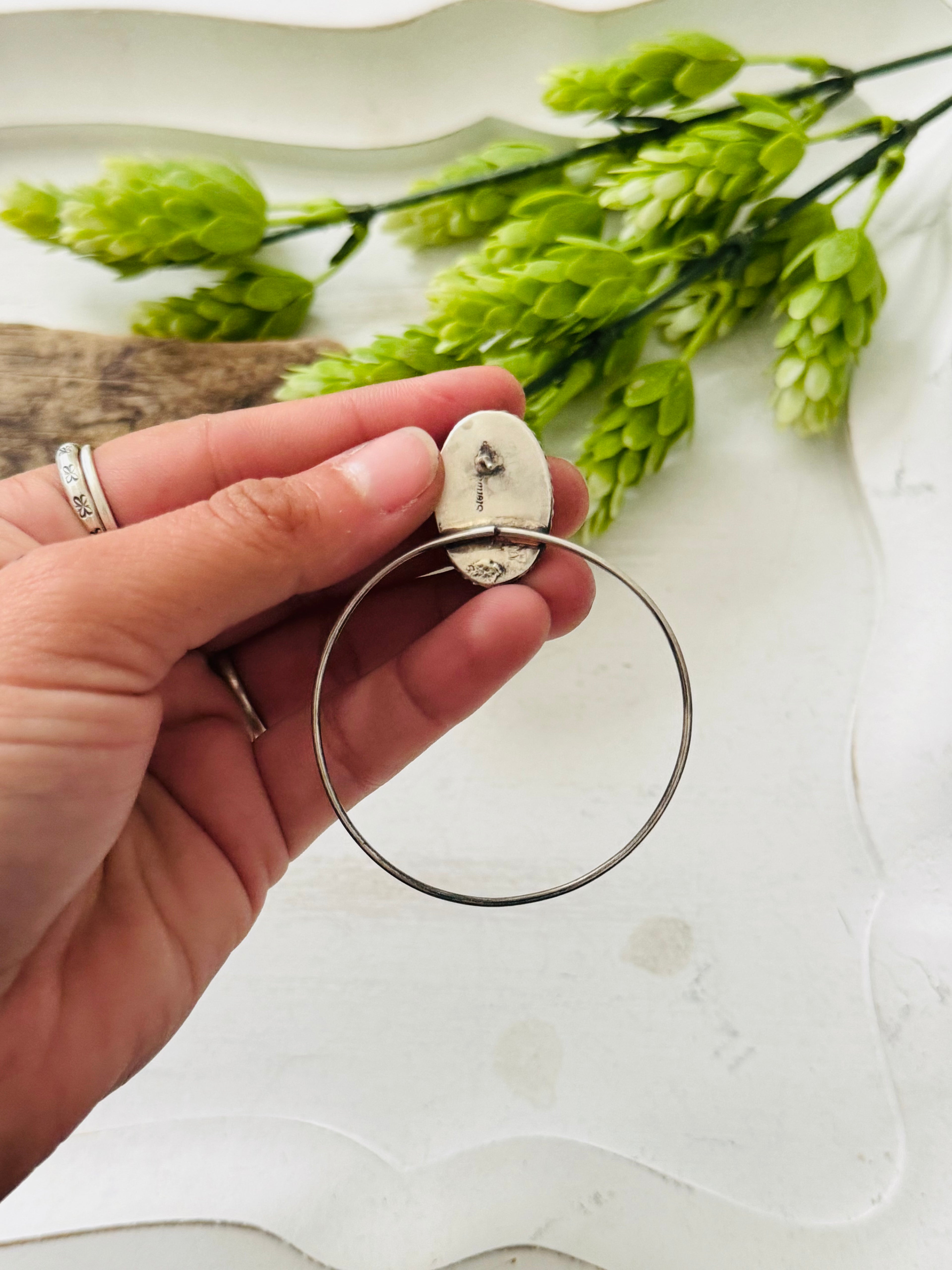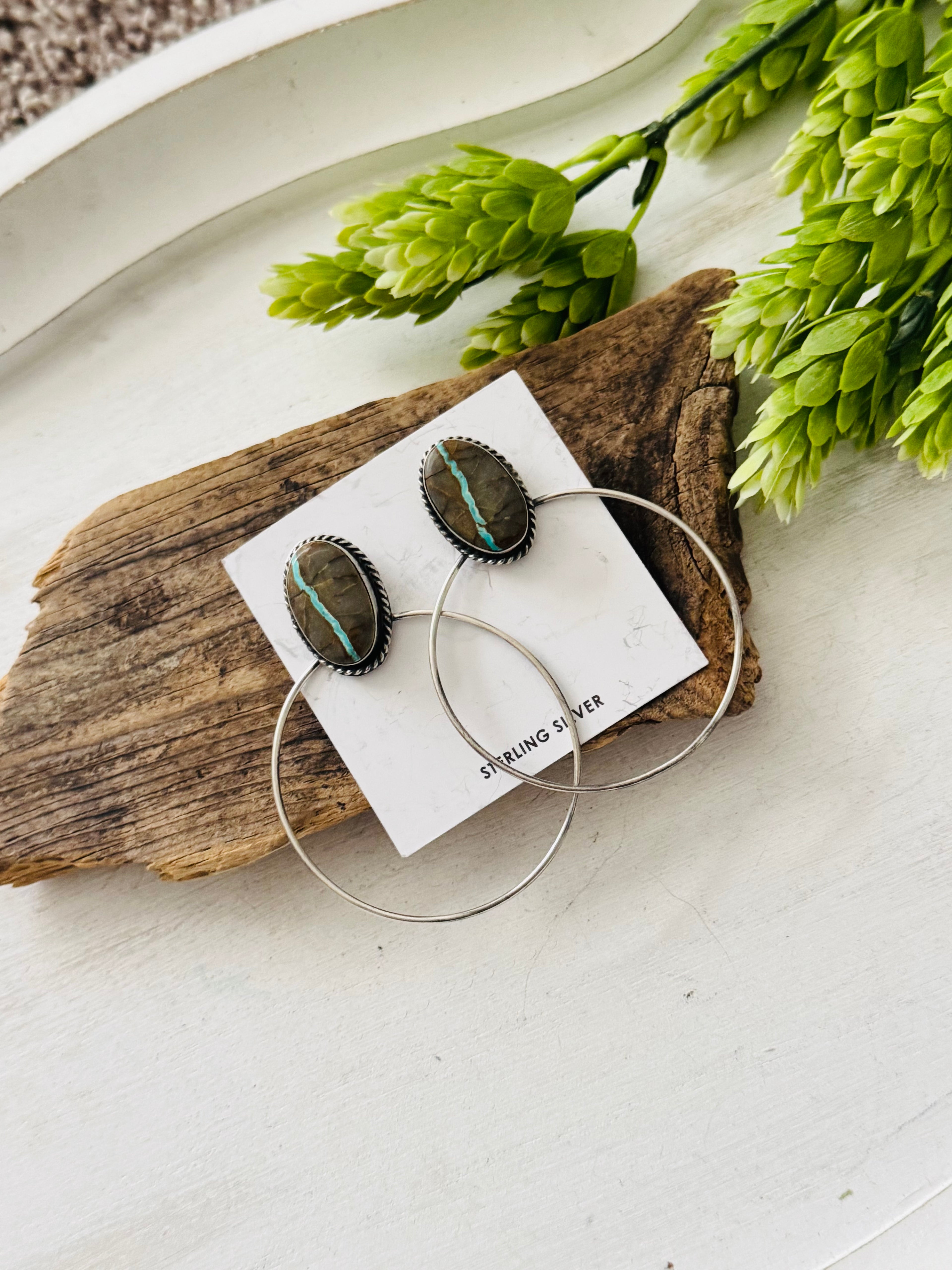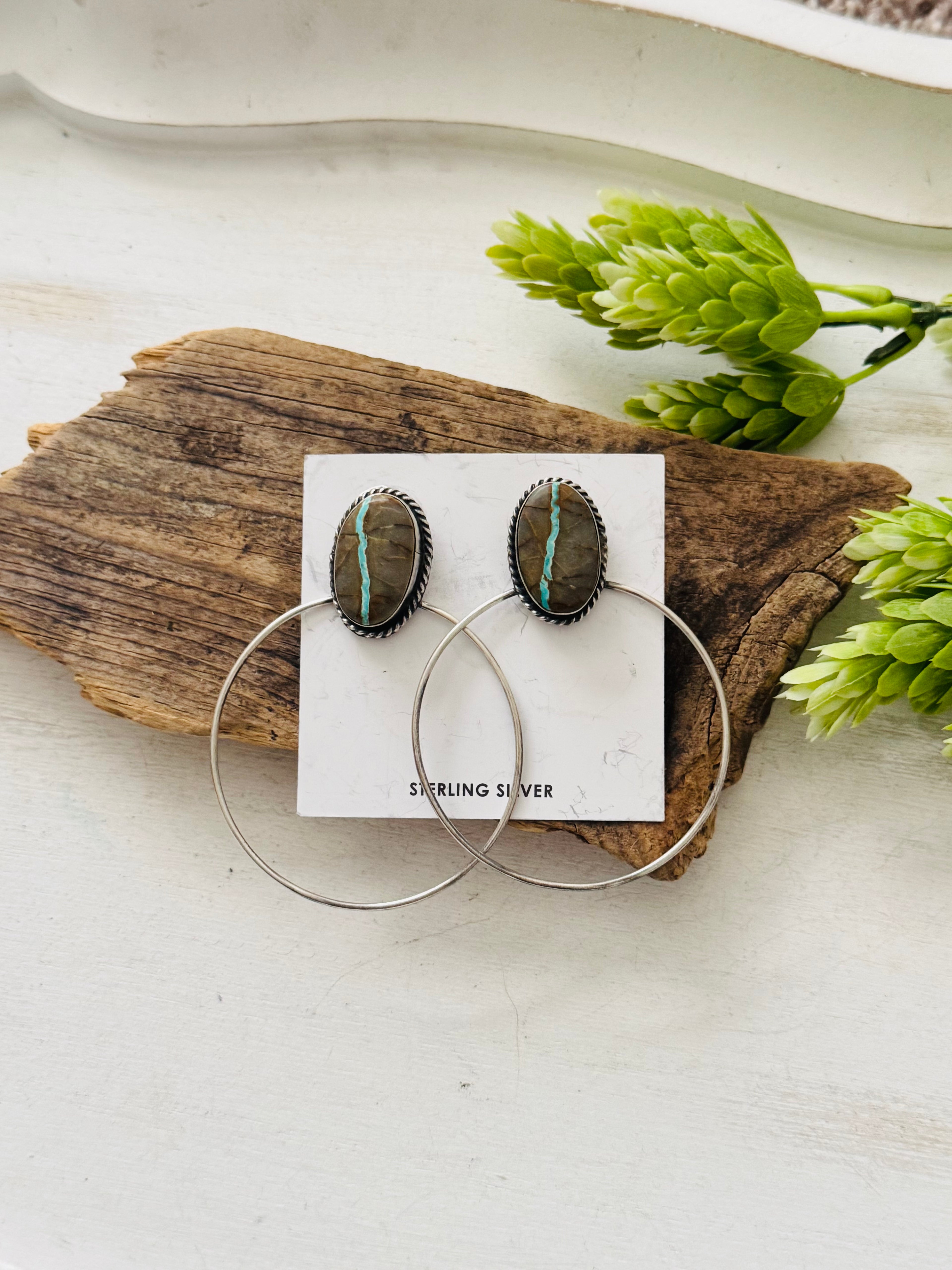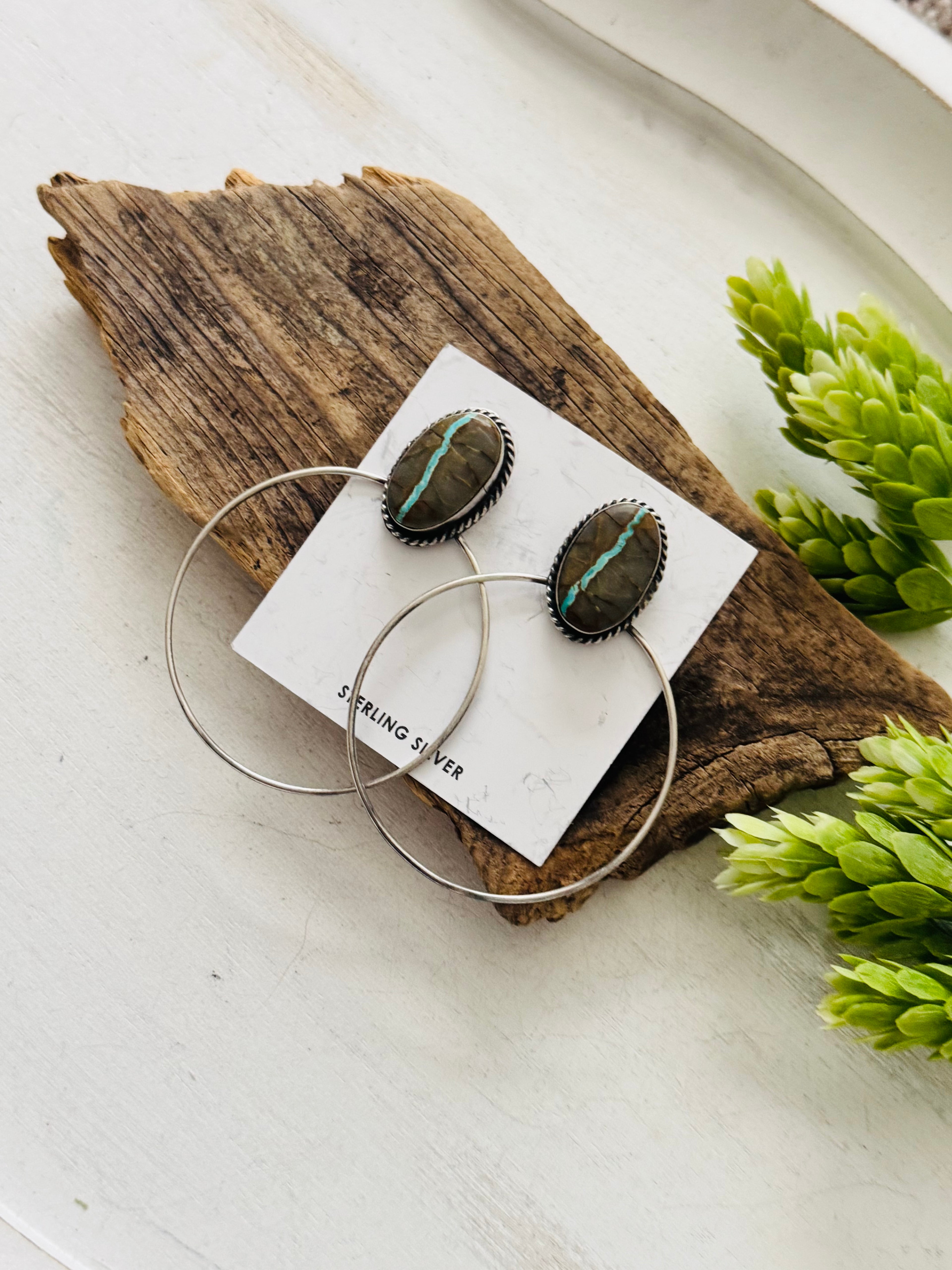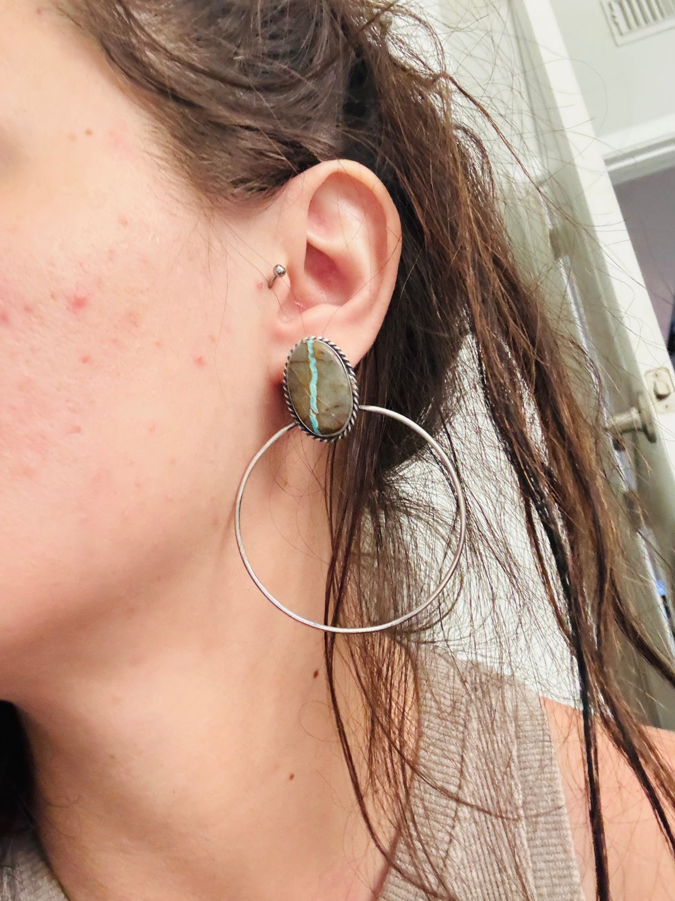Elouise Kee Ribbon Royston & Sterling Silver Post Dangle Hoop Earrings. It measures 2 3/4 inches long and 2 inches wide. Stamped and sign by sterling sliver.