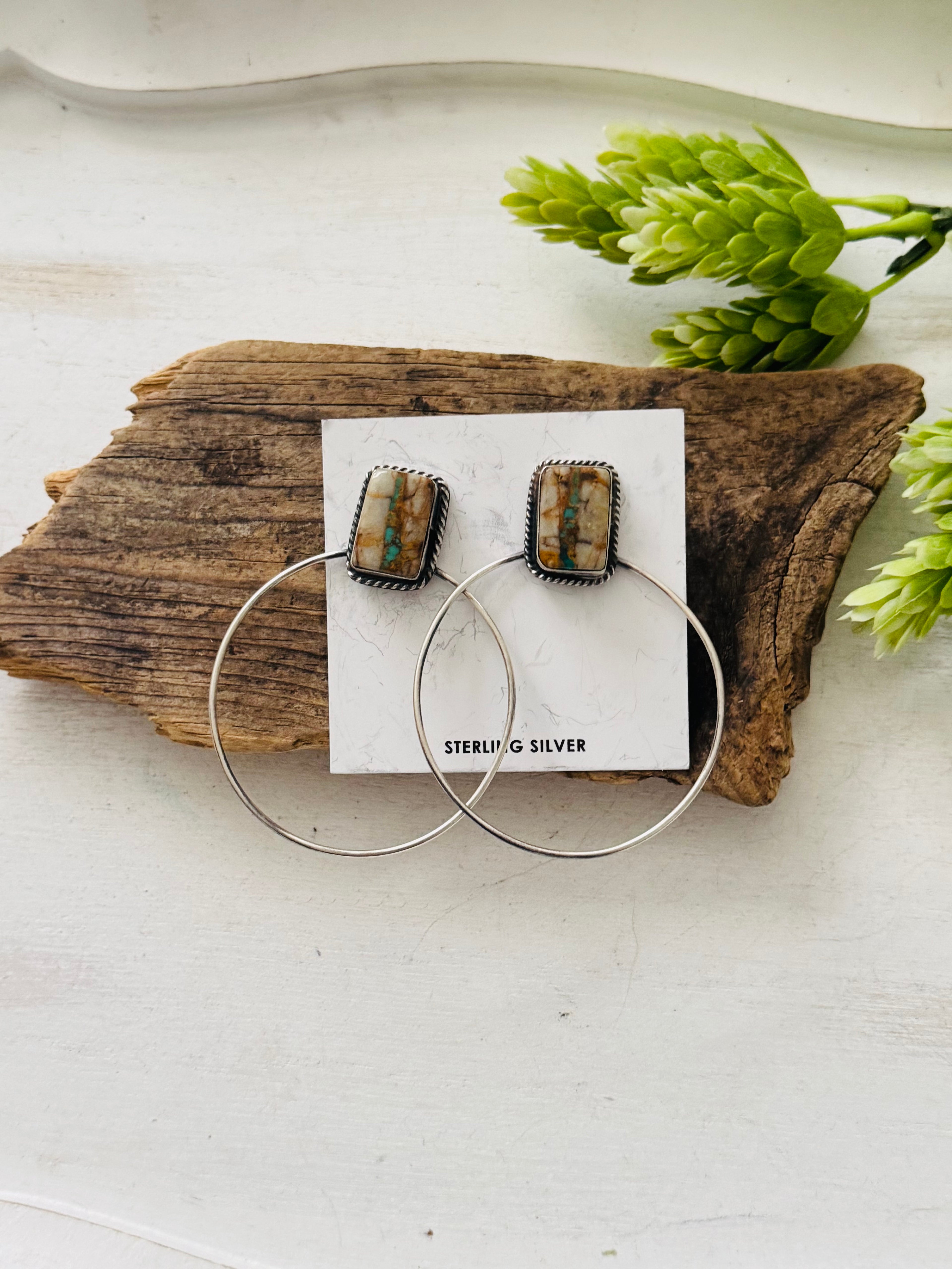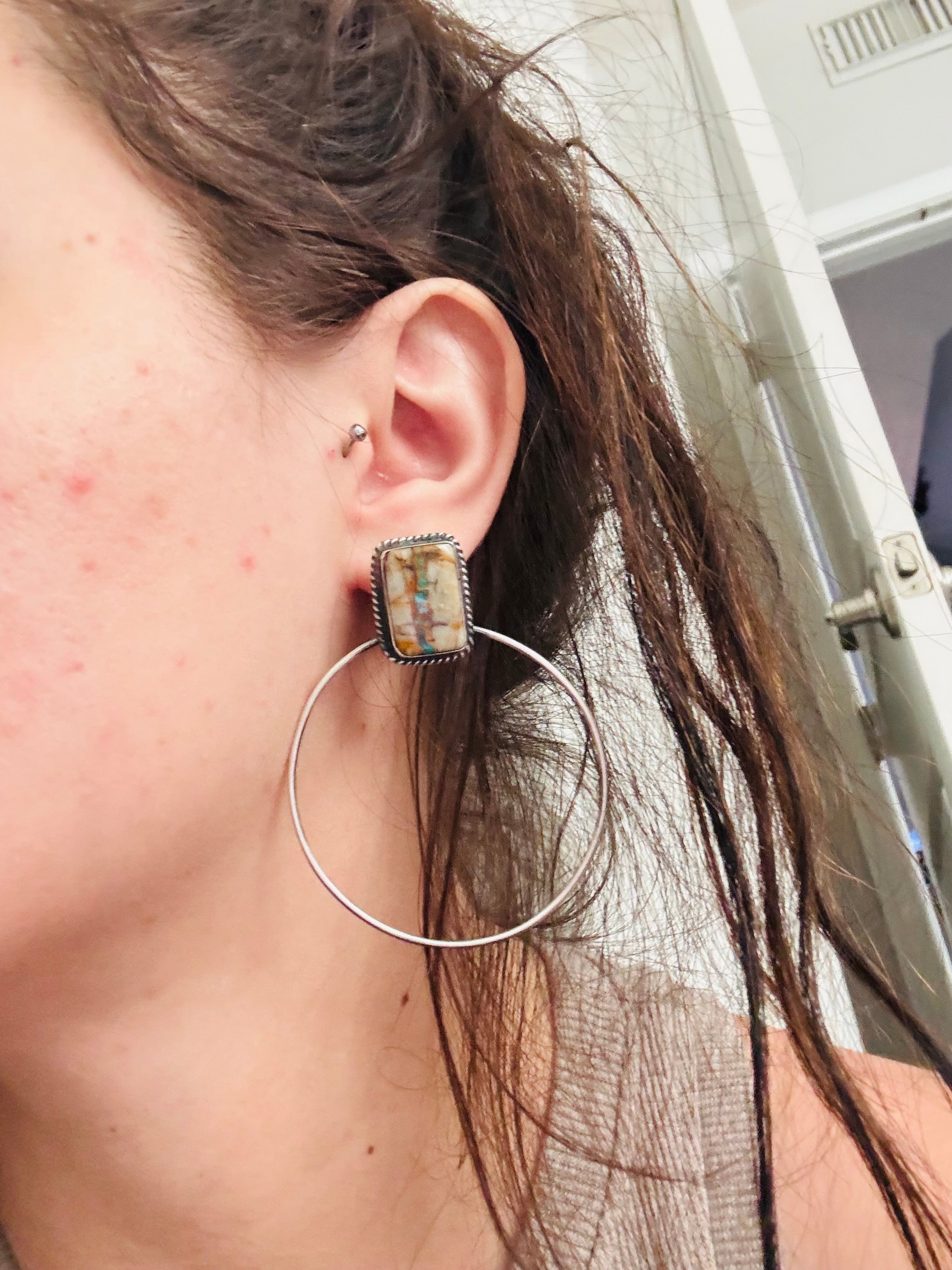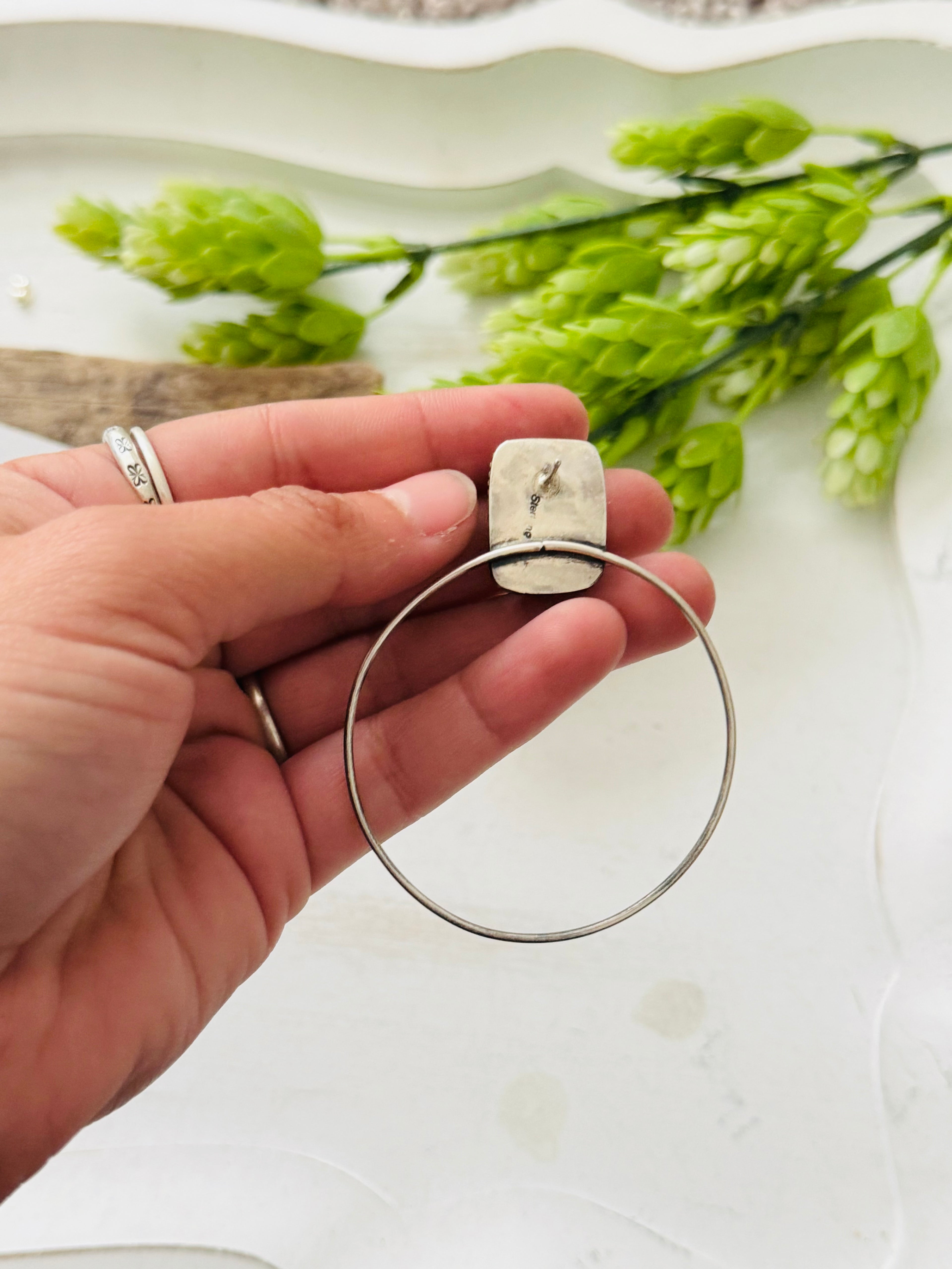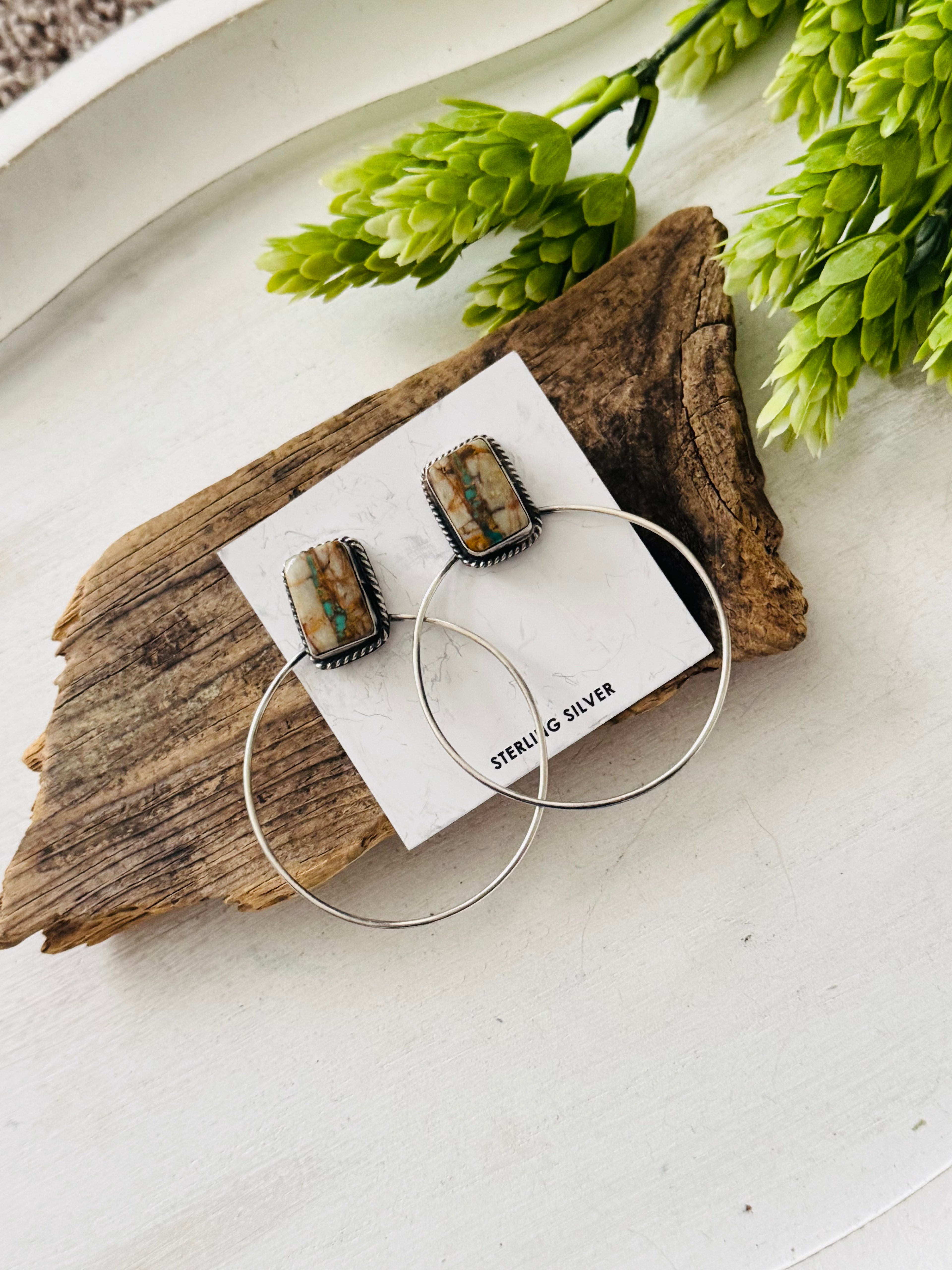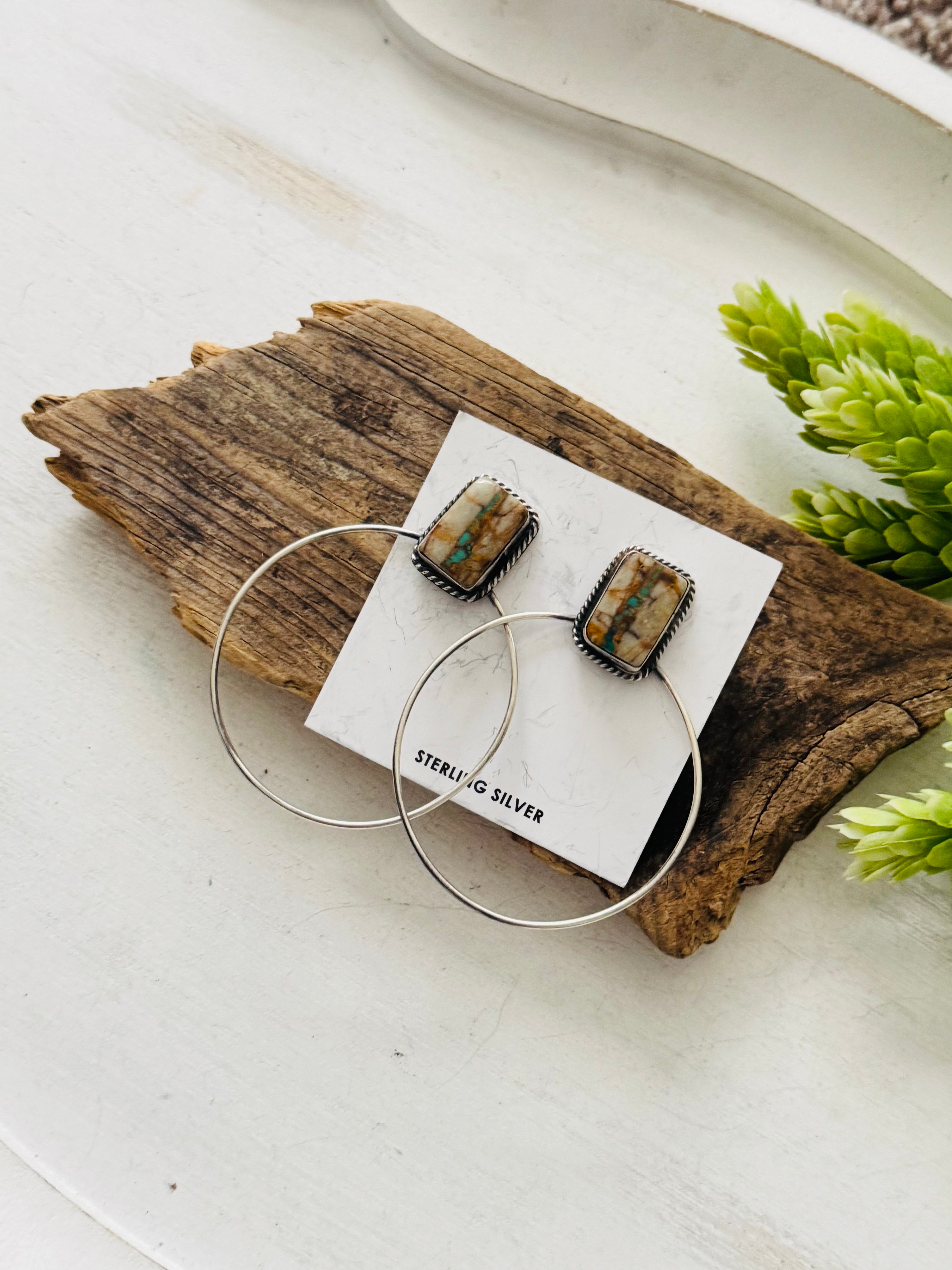 Elouise Kee Ribbon Royston & Sterling Silver Post Dangle Hoop Earrings. It measures 2 5/8 inches long and 2 inches wide. Stamped and sign by sterling sliver.