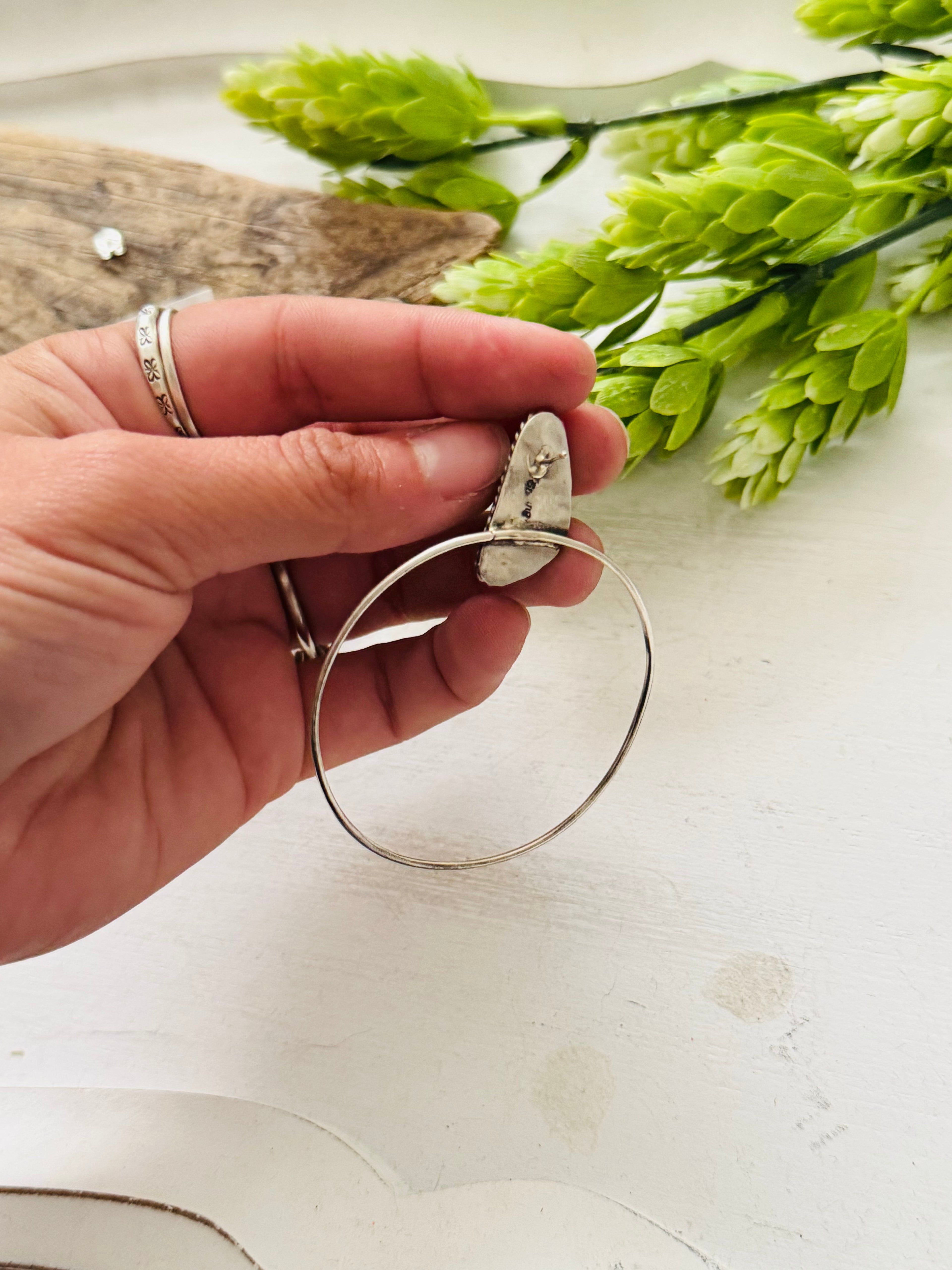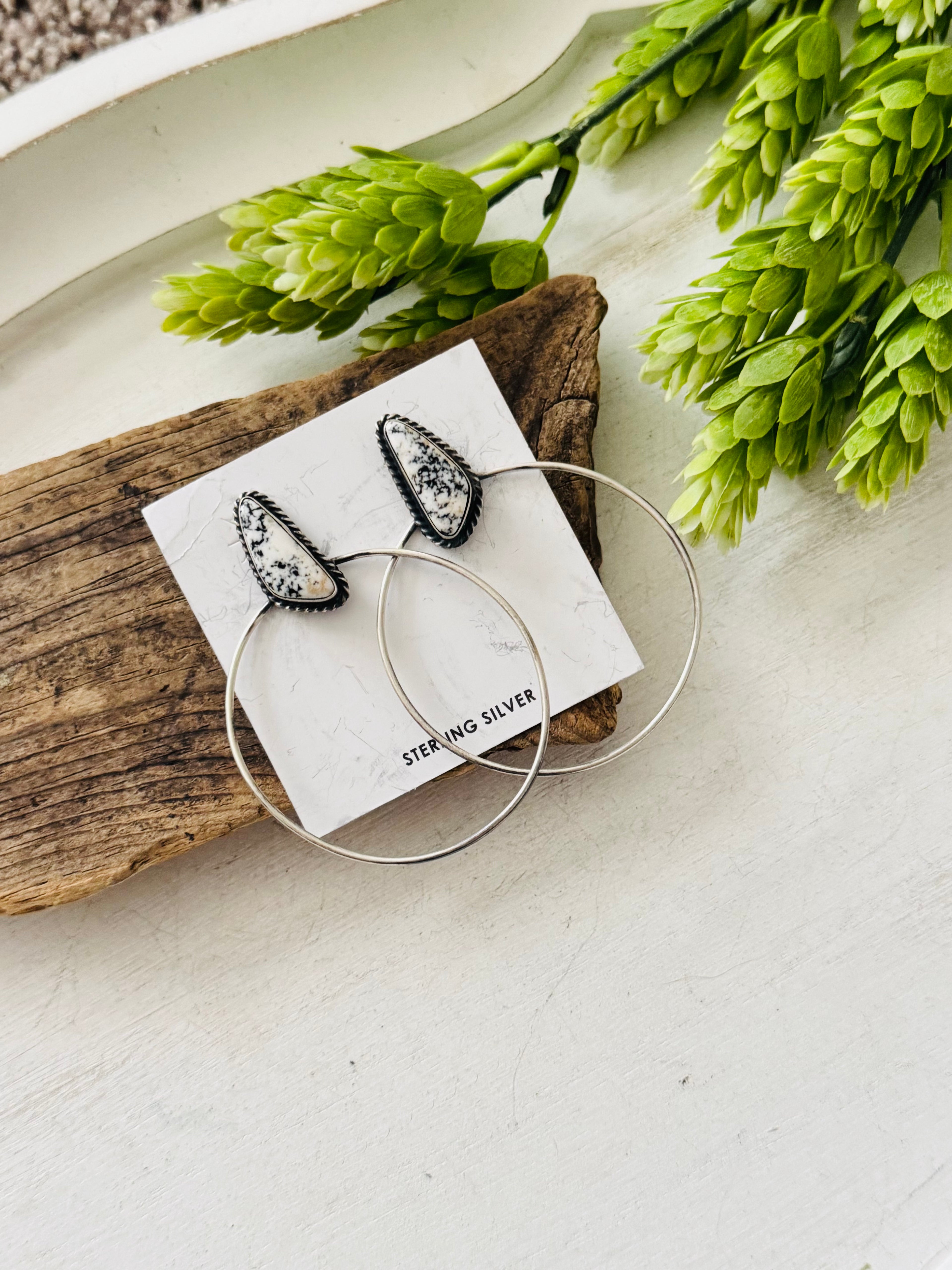 Elouise Kee White Buffalo & Sterling Silver Post Dangle Hoop Earrings. It measures 2 5/8 inches long and 2 inches wide. Stamped and sign by sterling sliver.