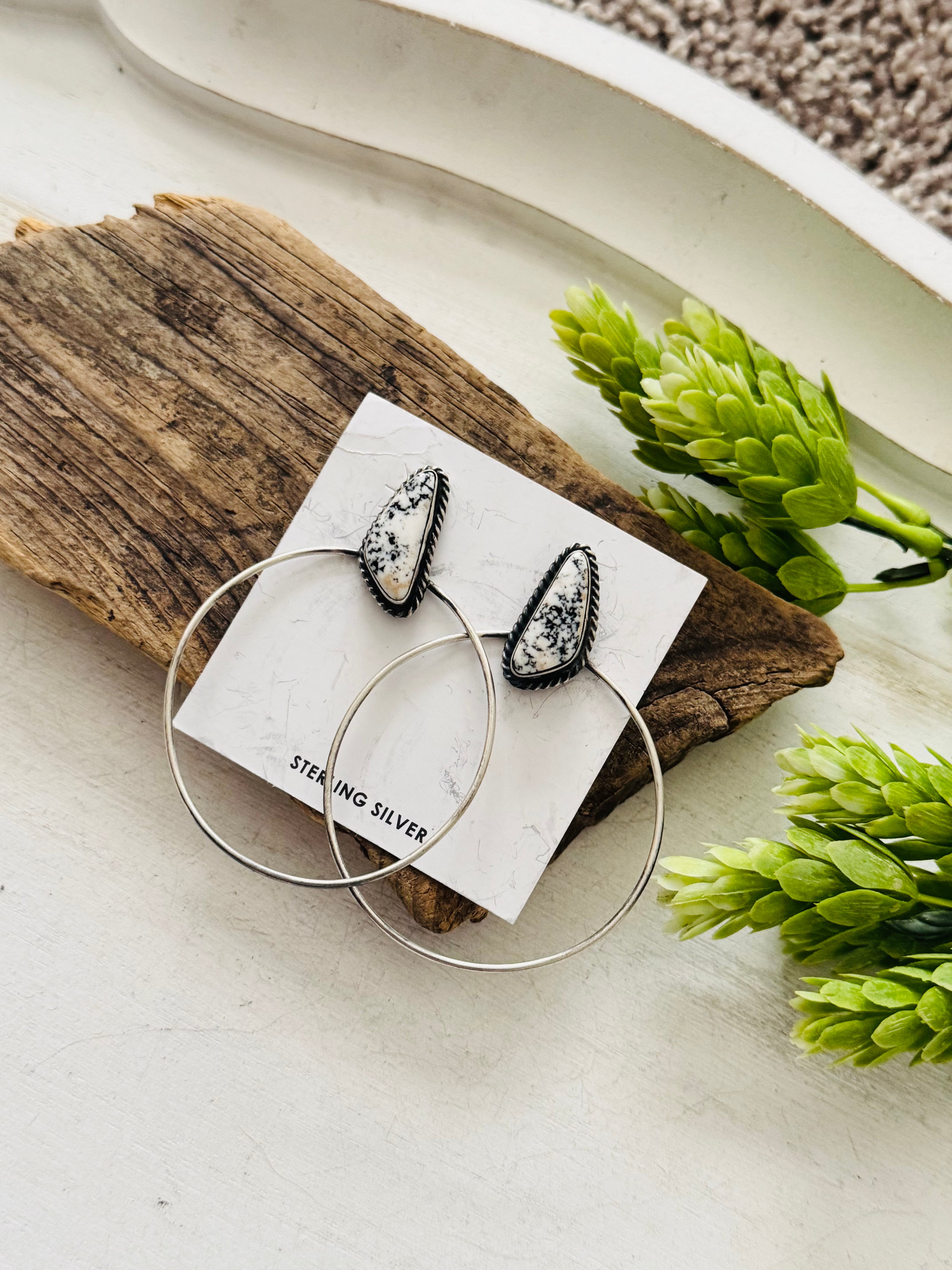 Elouise Kee White Buffalo & Sterling Silver Post Dangle Hoop Earrings