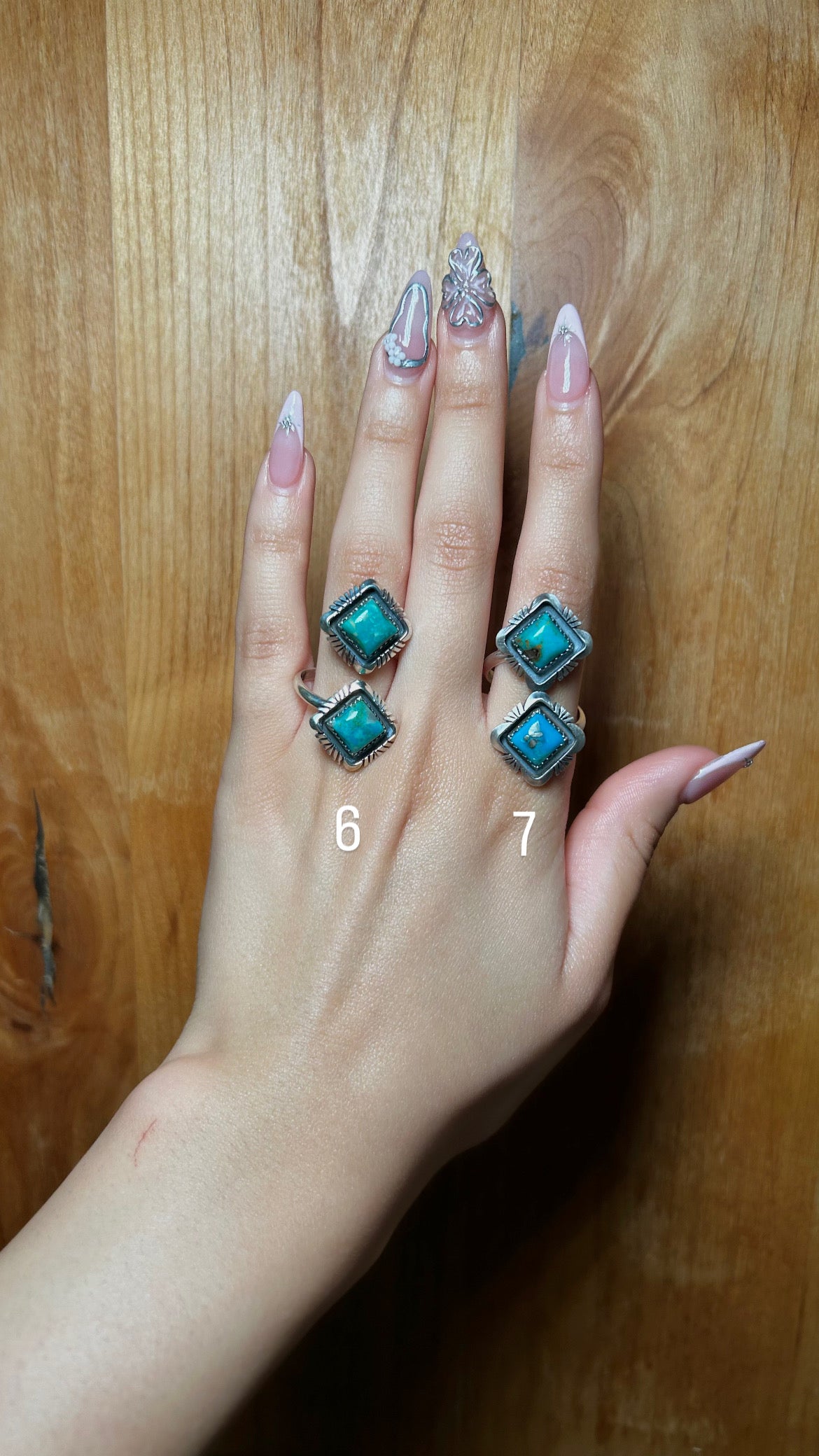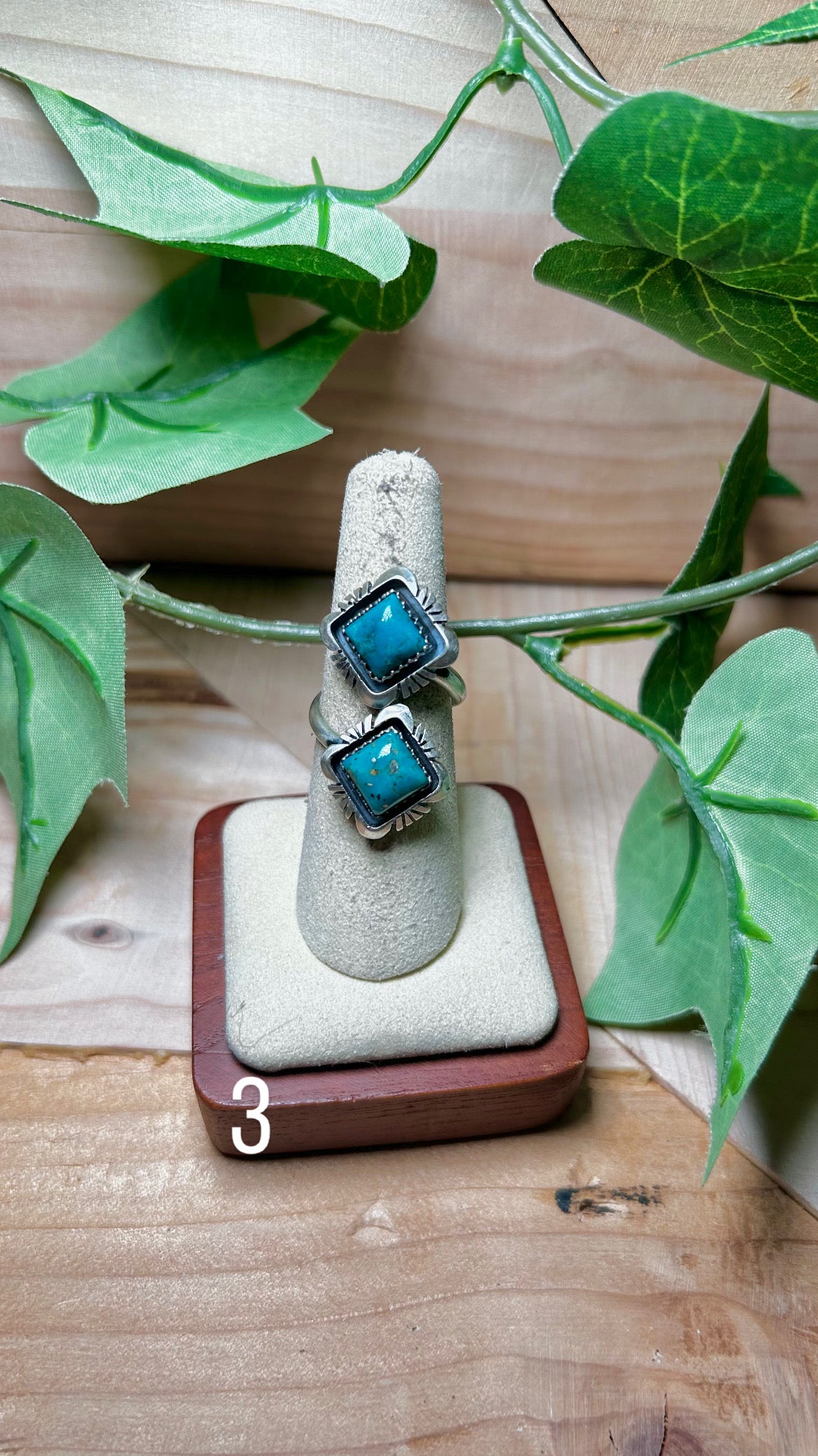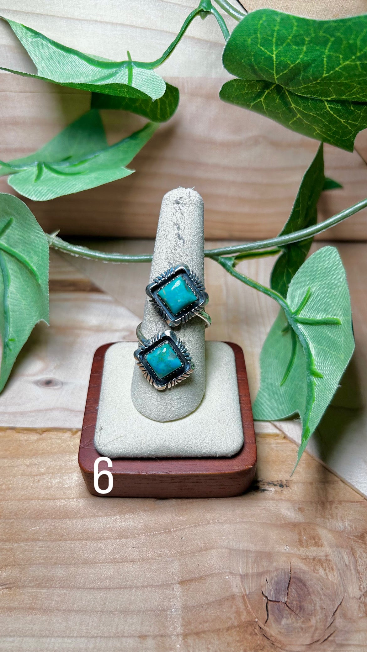 Eugene Belone Kingman Turquoise & Sterling Sliver Cluster Adjustable Ring