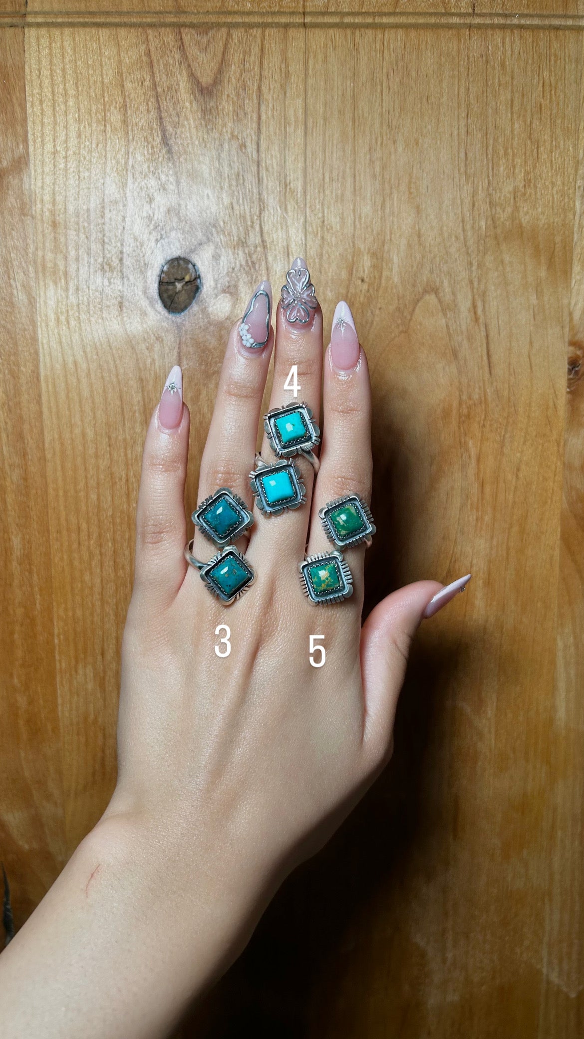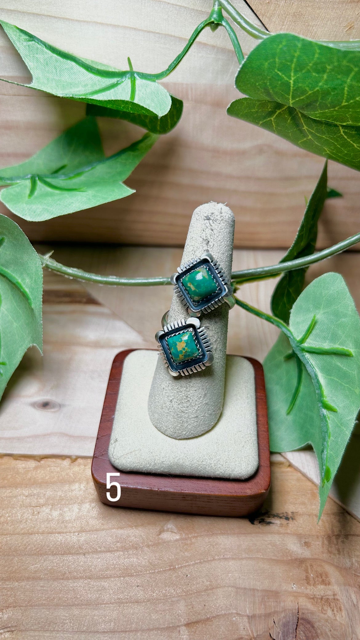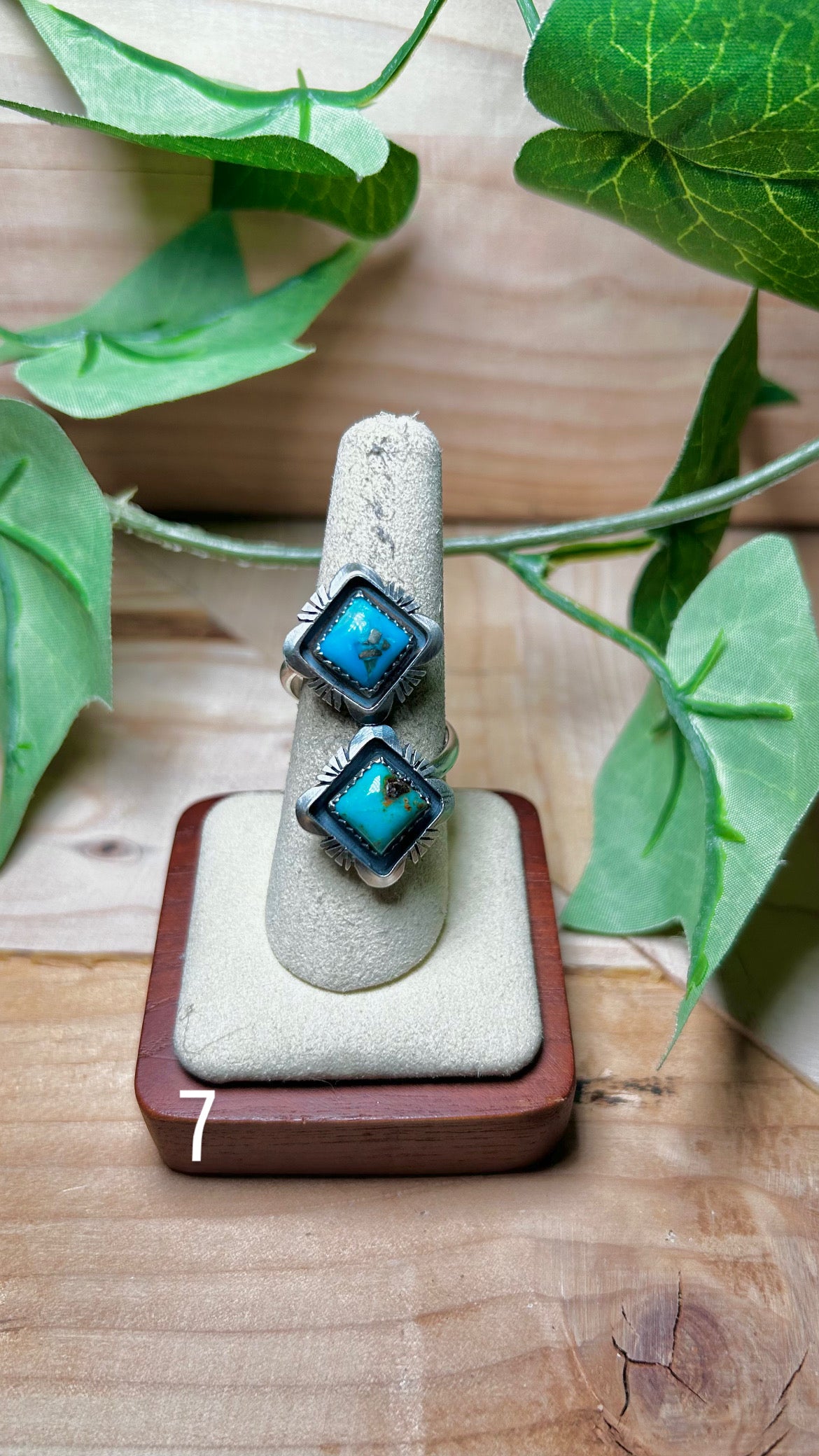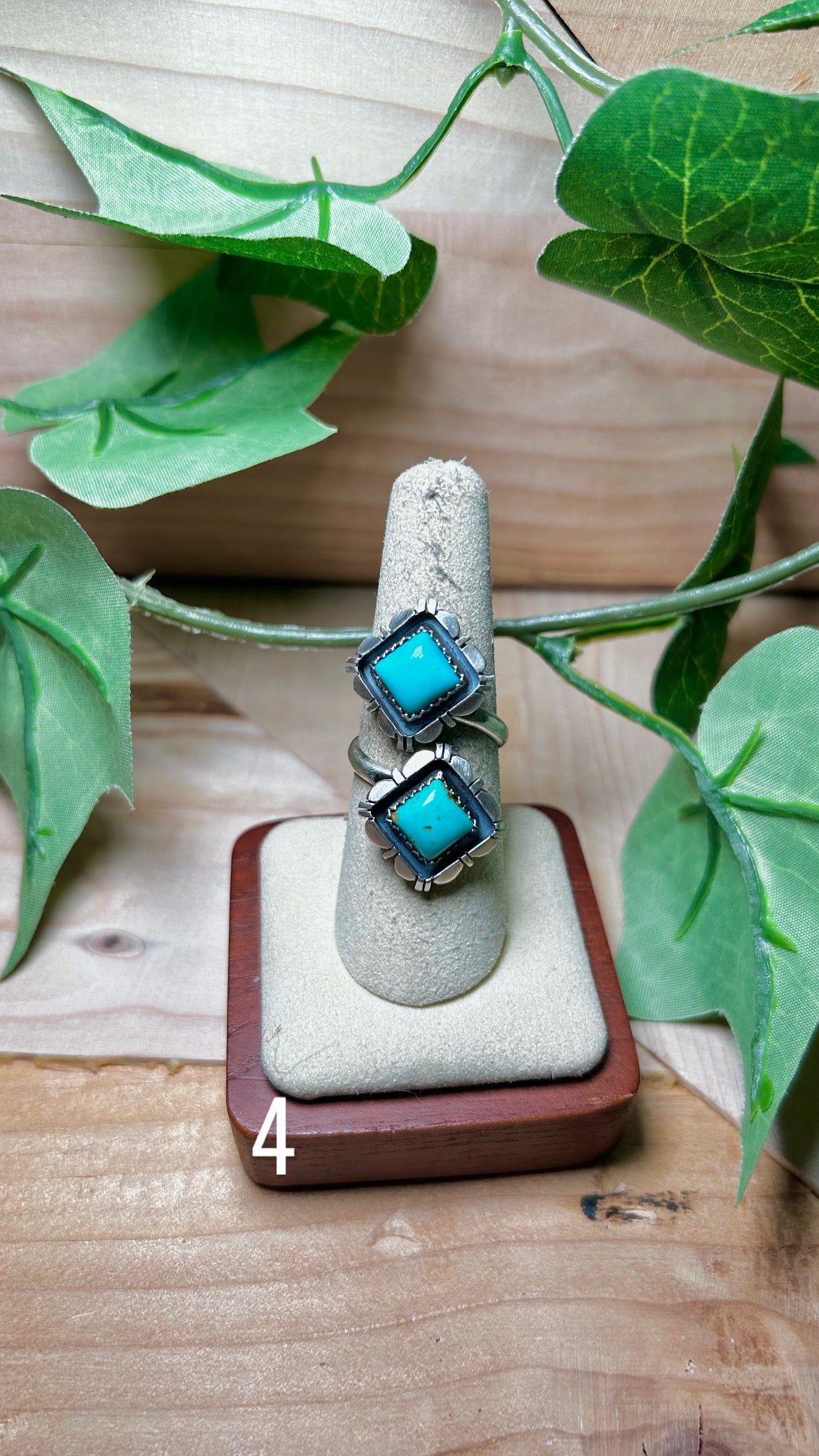 Eugene Belone Kingman Turquoise & Sterling Sliver Cluster Adjustable Ring