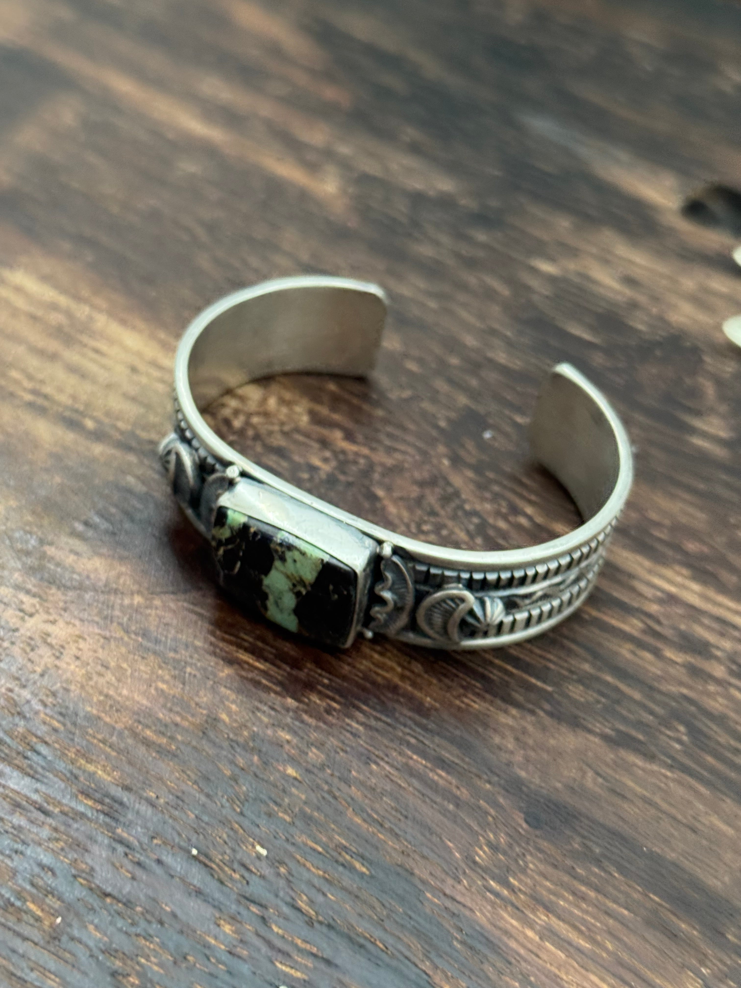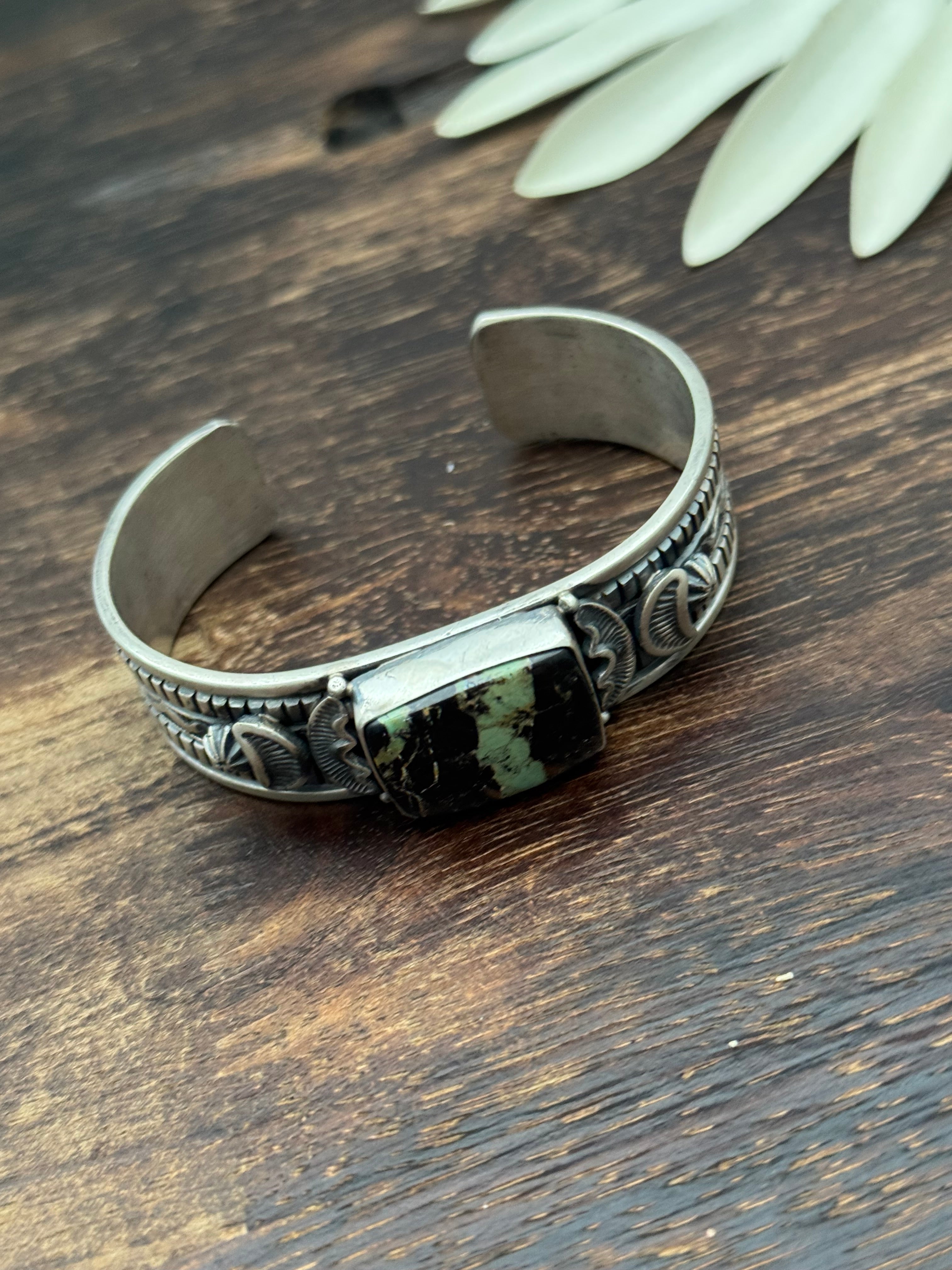 Francis Yazzie Black Jack Turquoise & Sterling Silver Cuff Bracelet