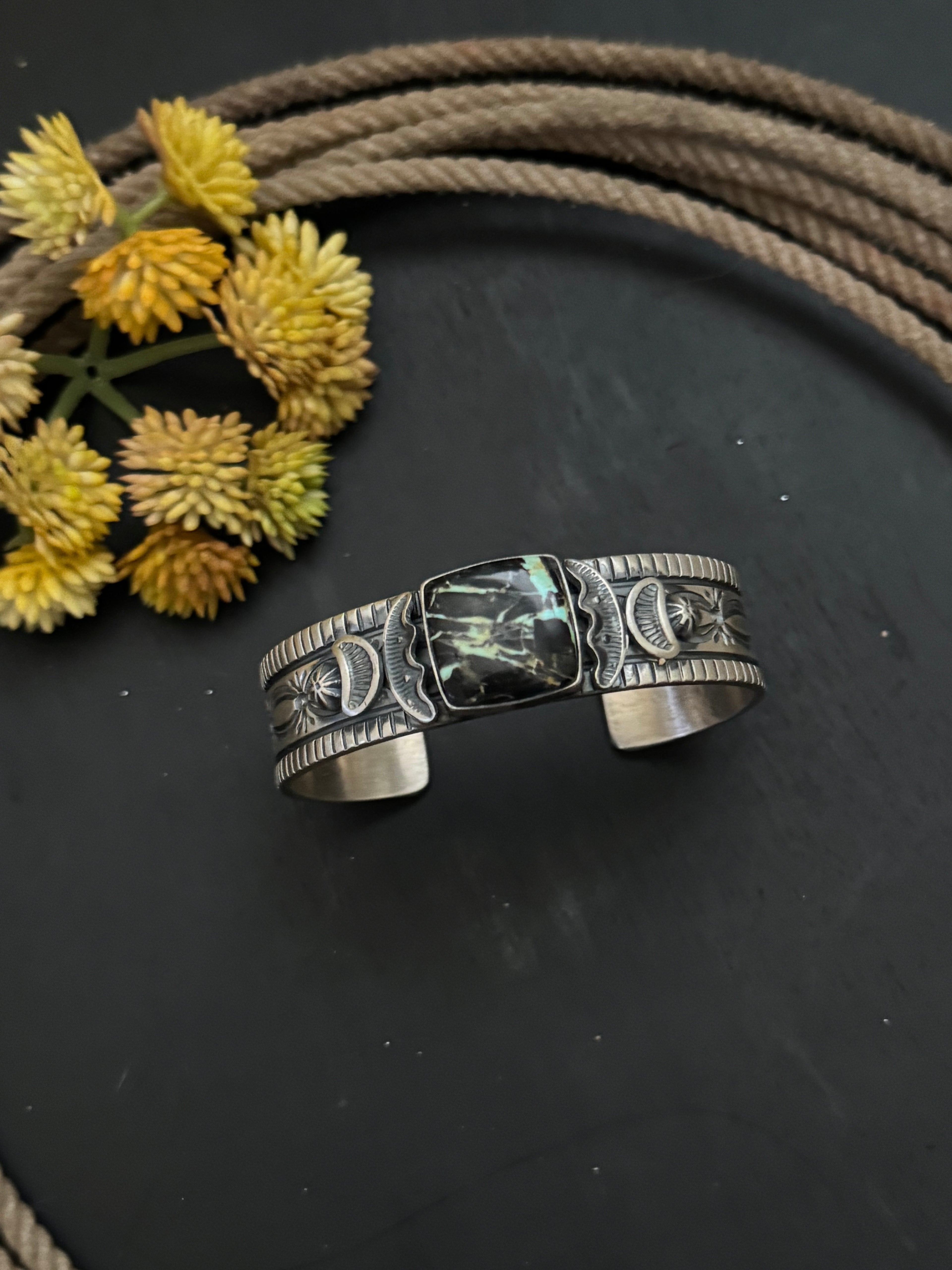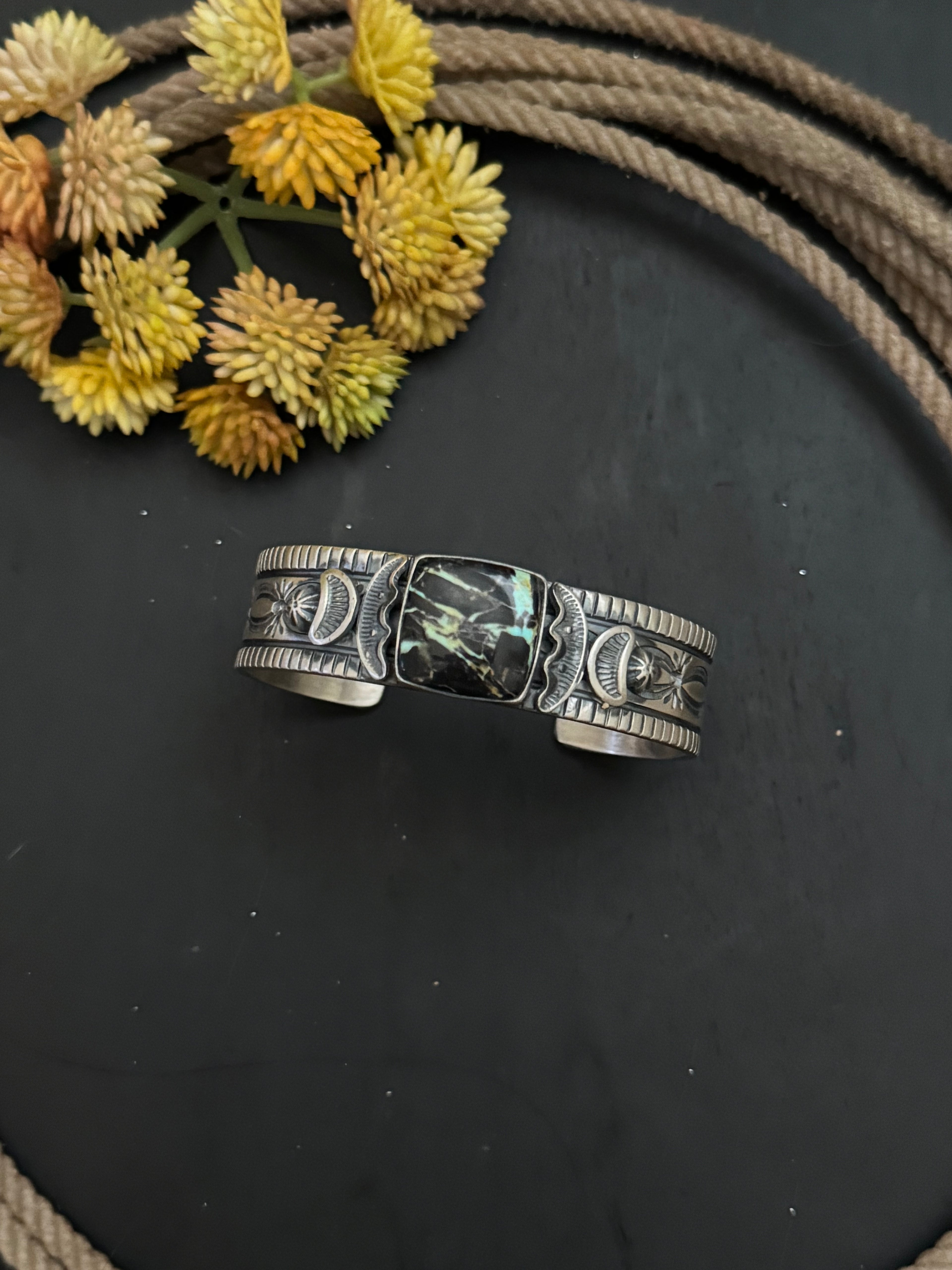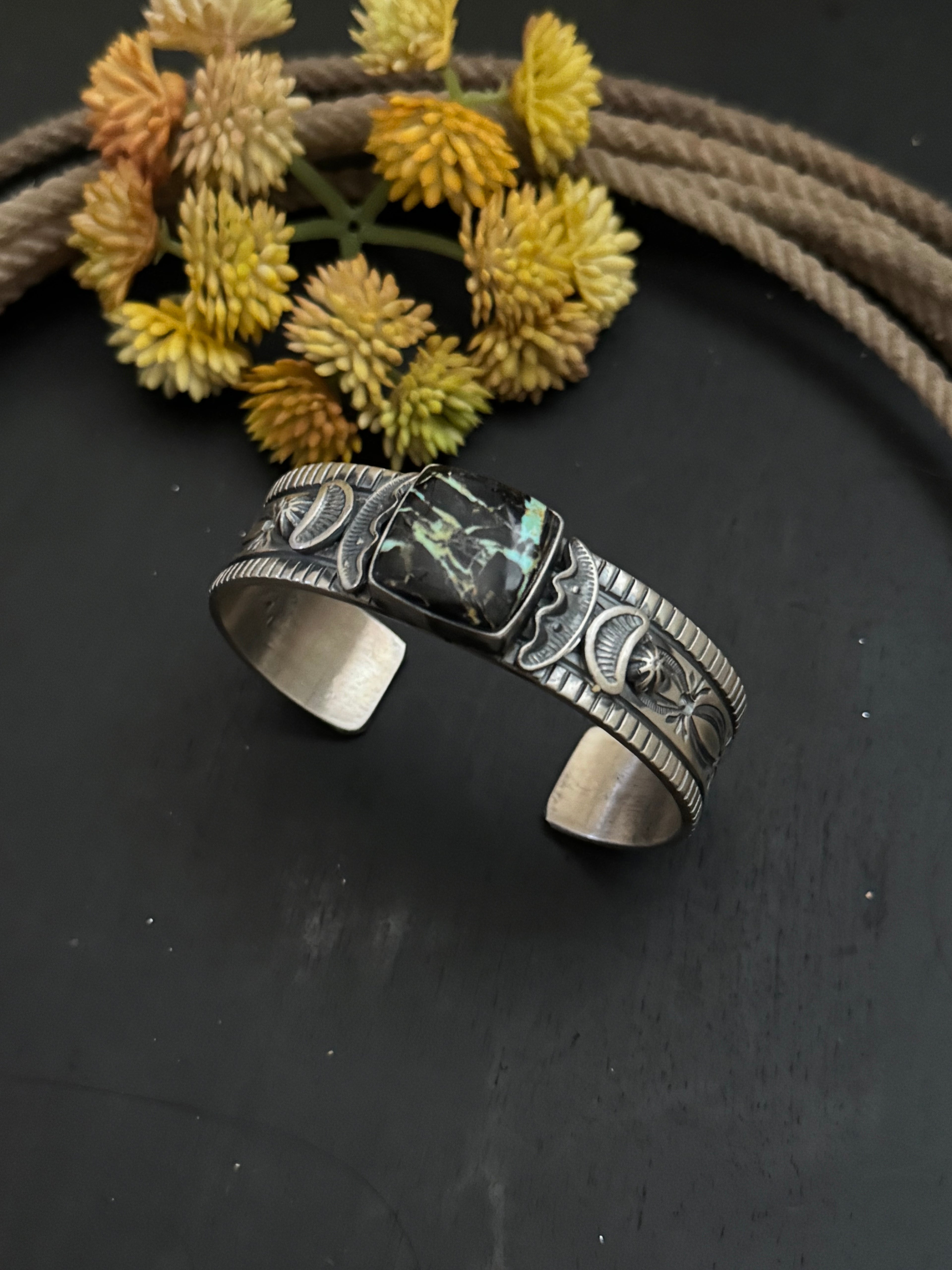 Francis Yazzie Black Jack Turquoise & Sterling Silver Cuff Bracelet