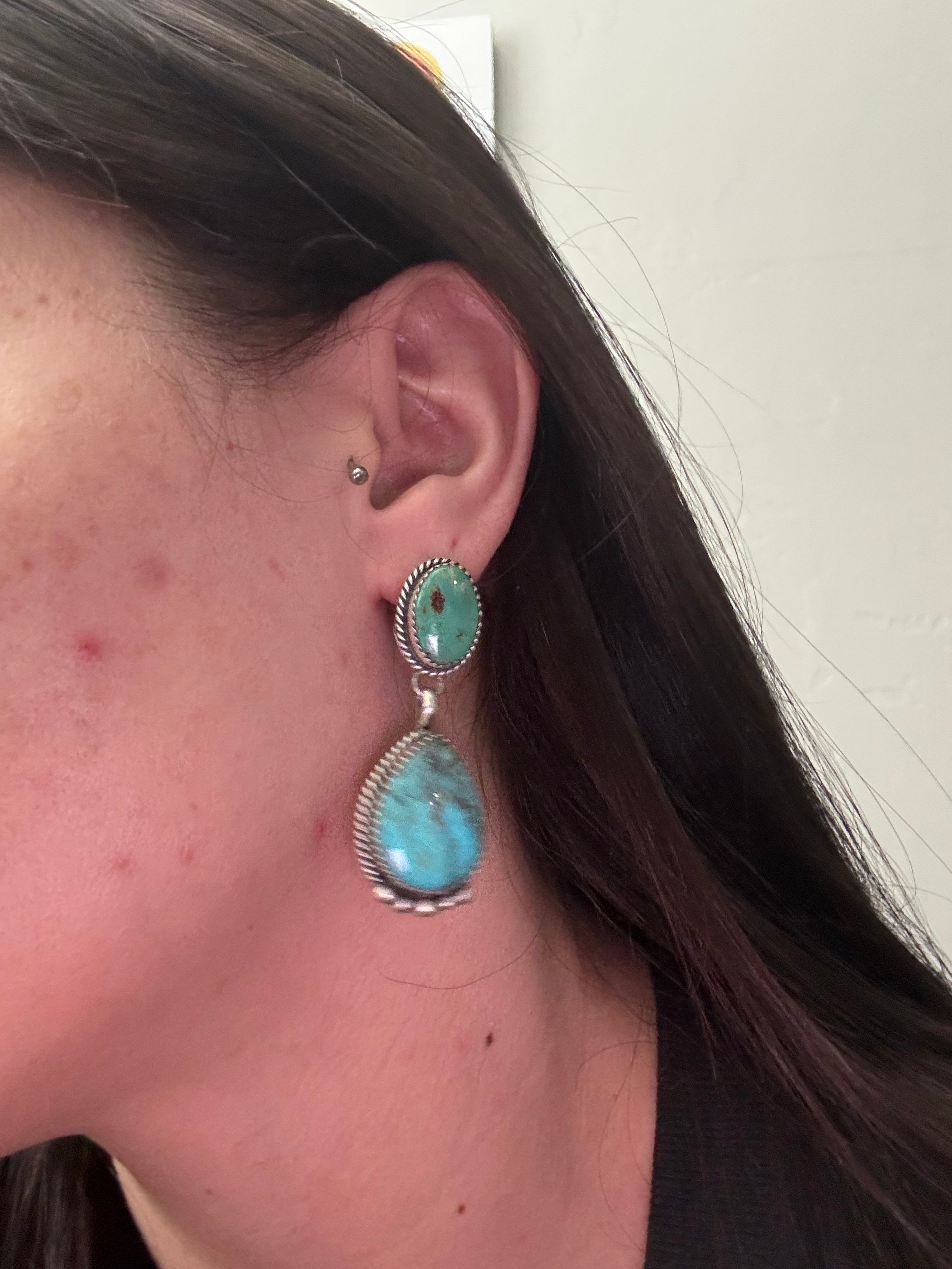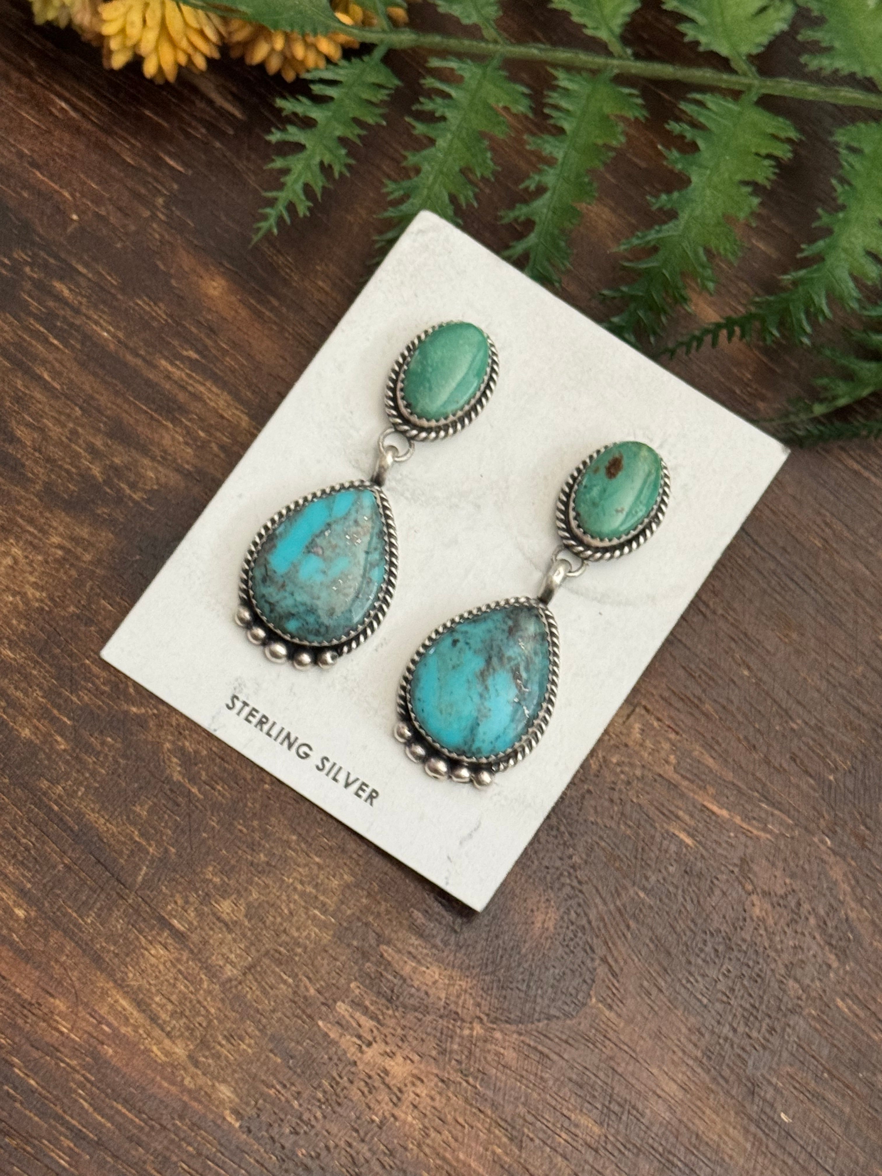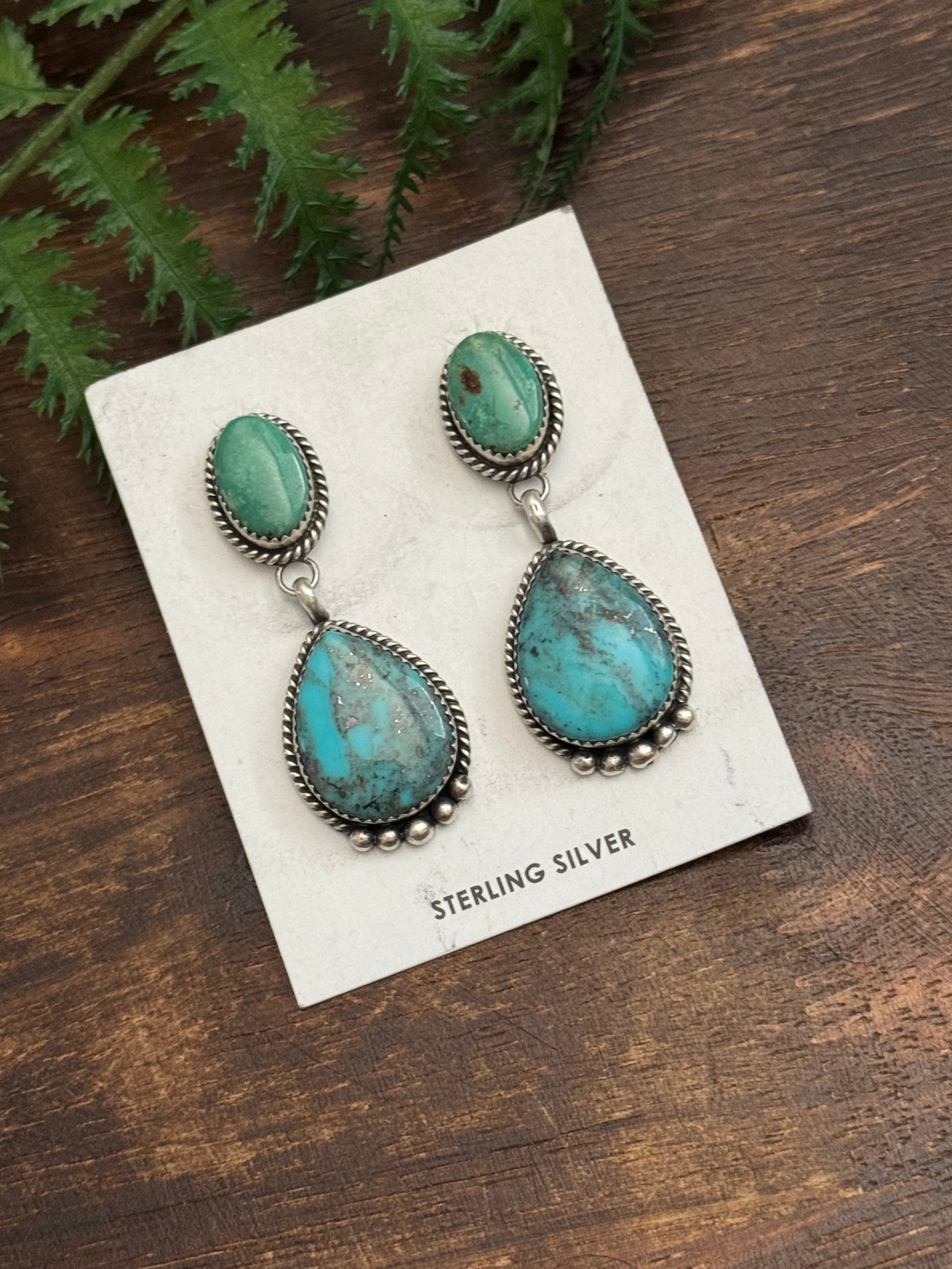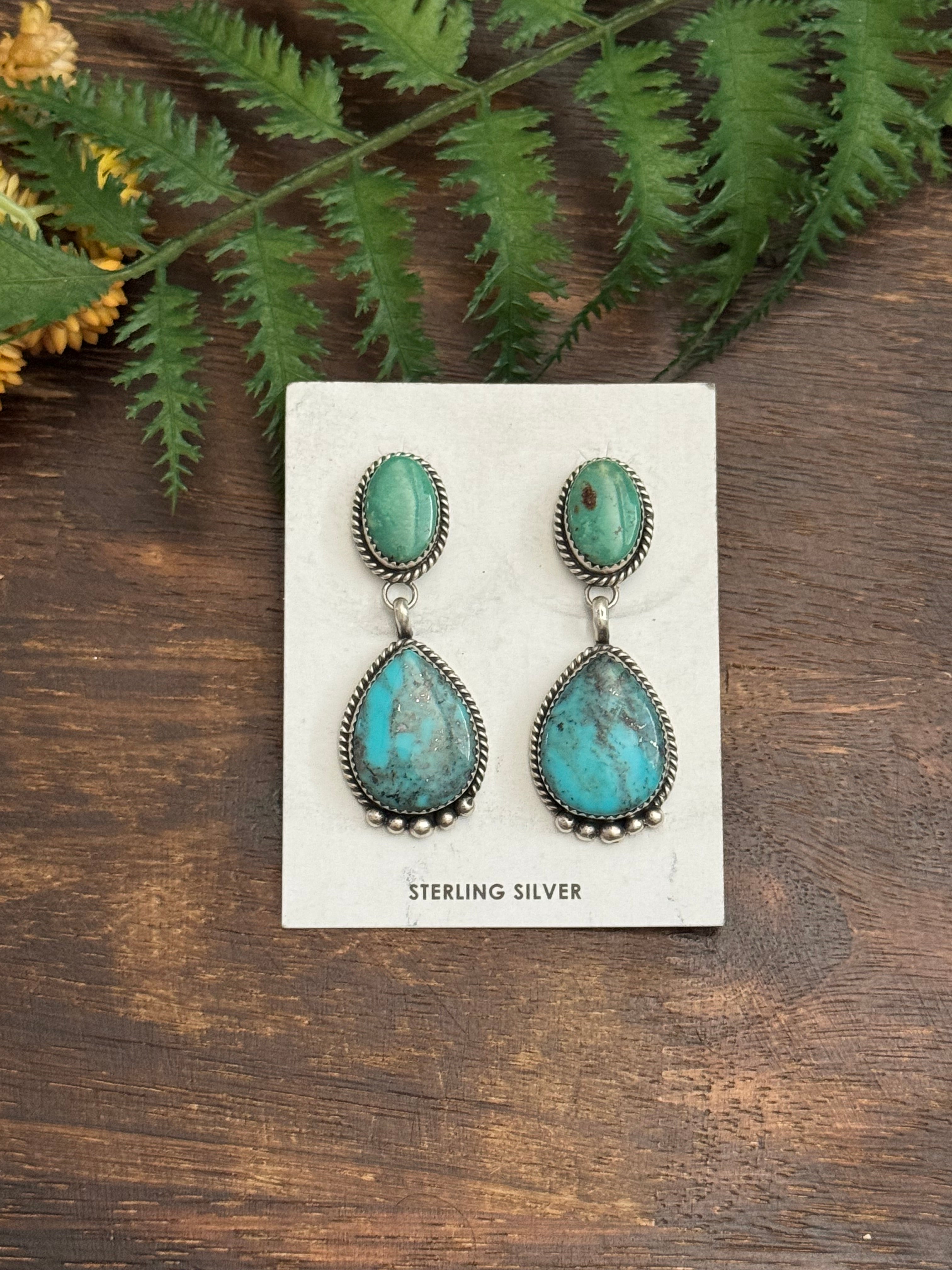 Freda Martinez Kingman Turquoise & Sterling Silver Post Dangle Earrings