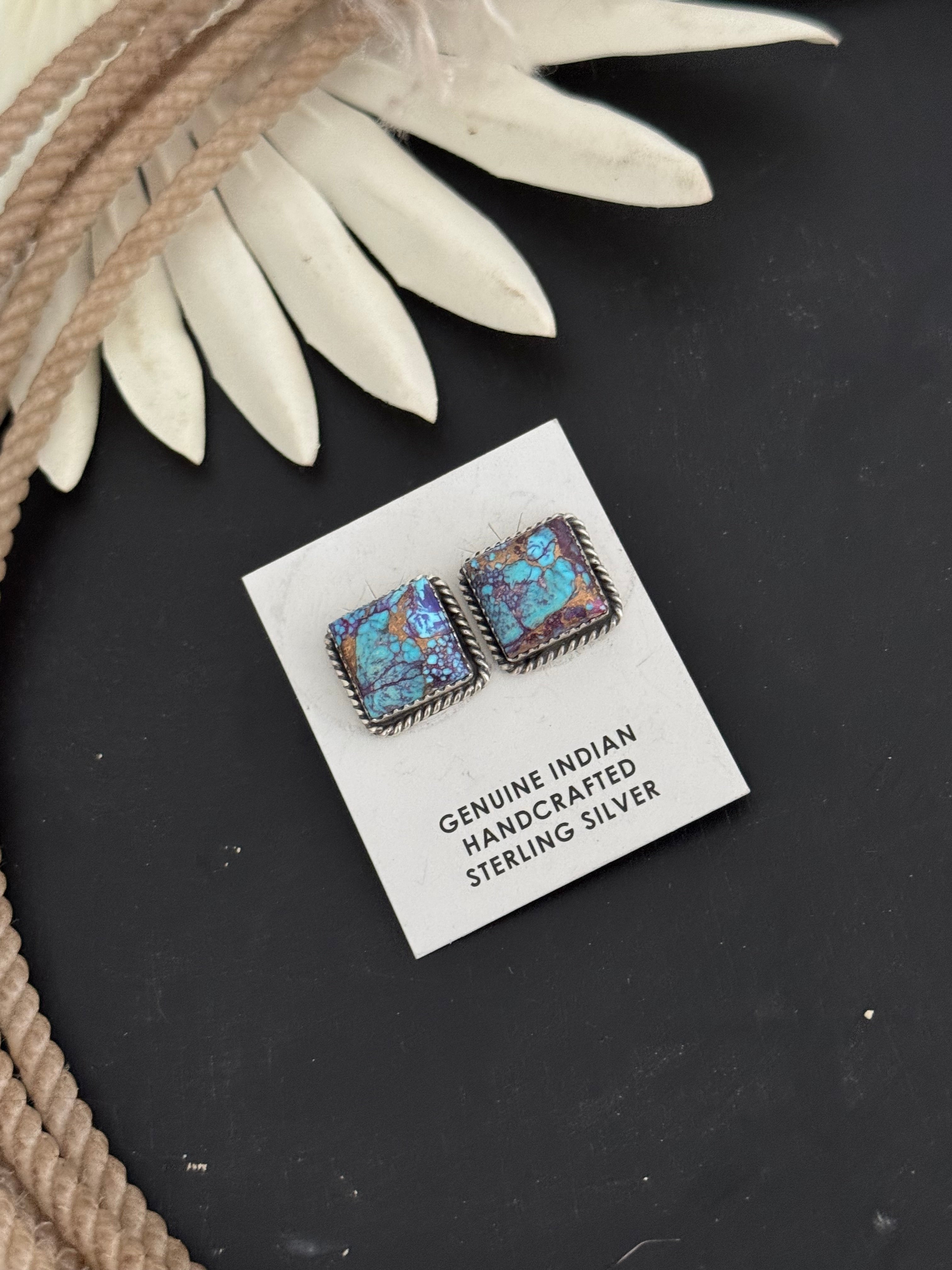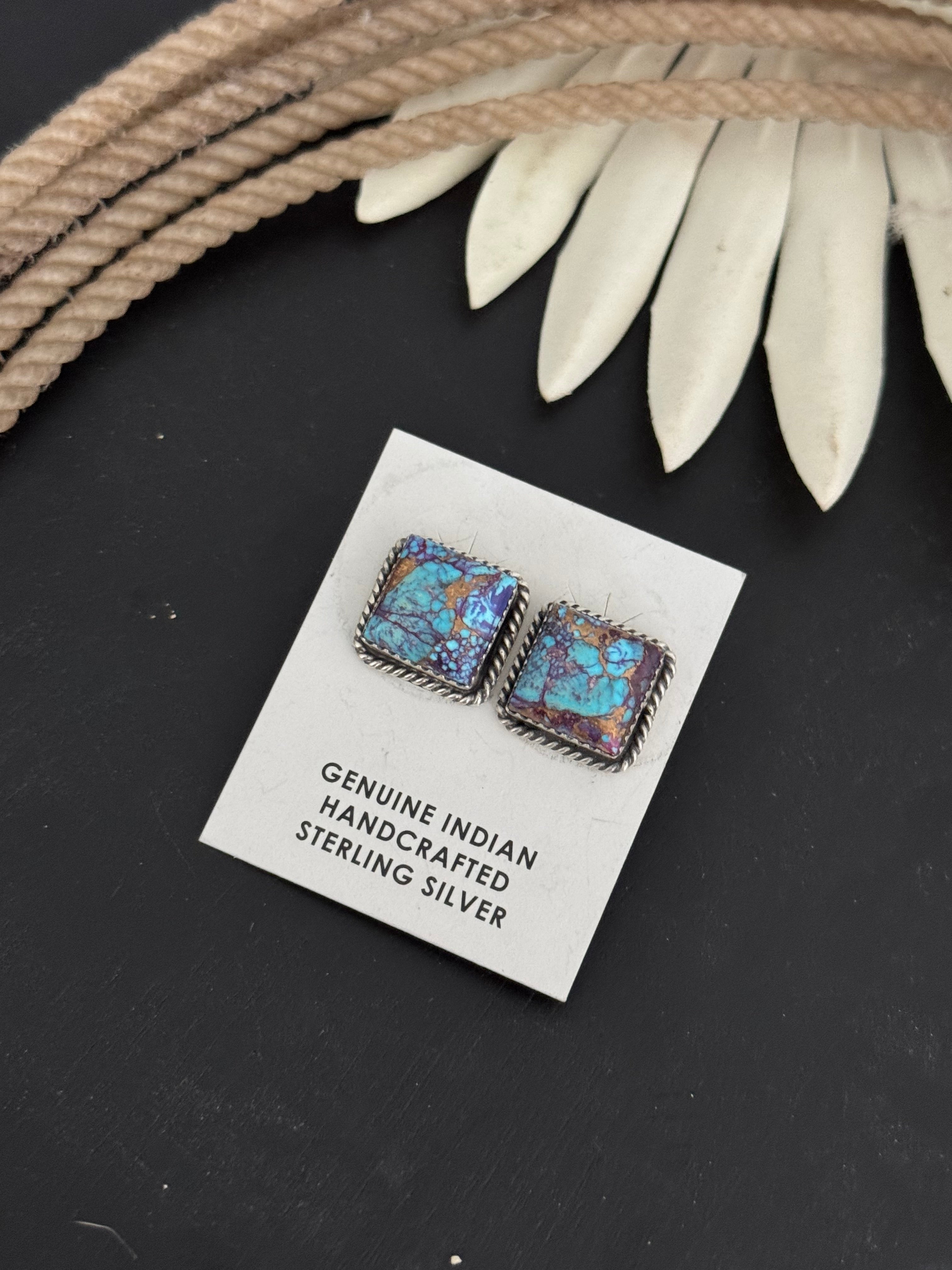 Freda Martinez Purple Mohave Turquoise & Sterling Silver Post Earrings