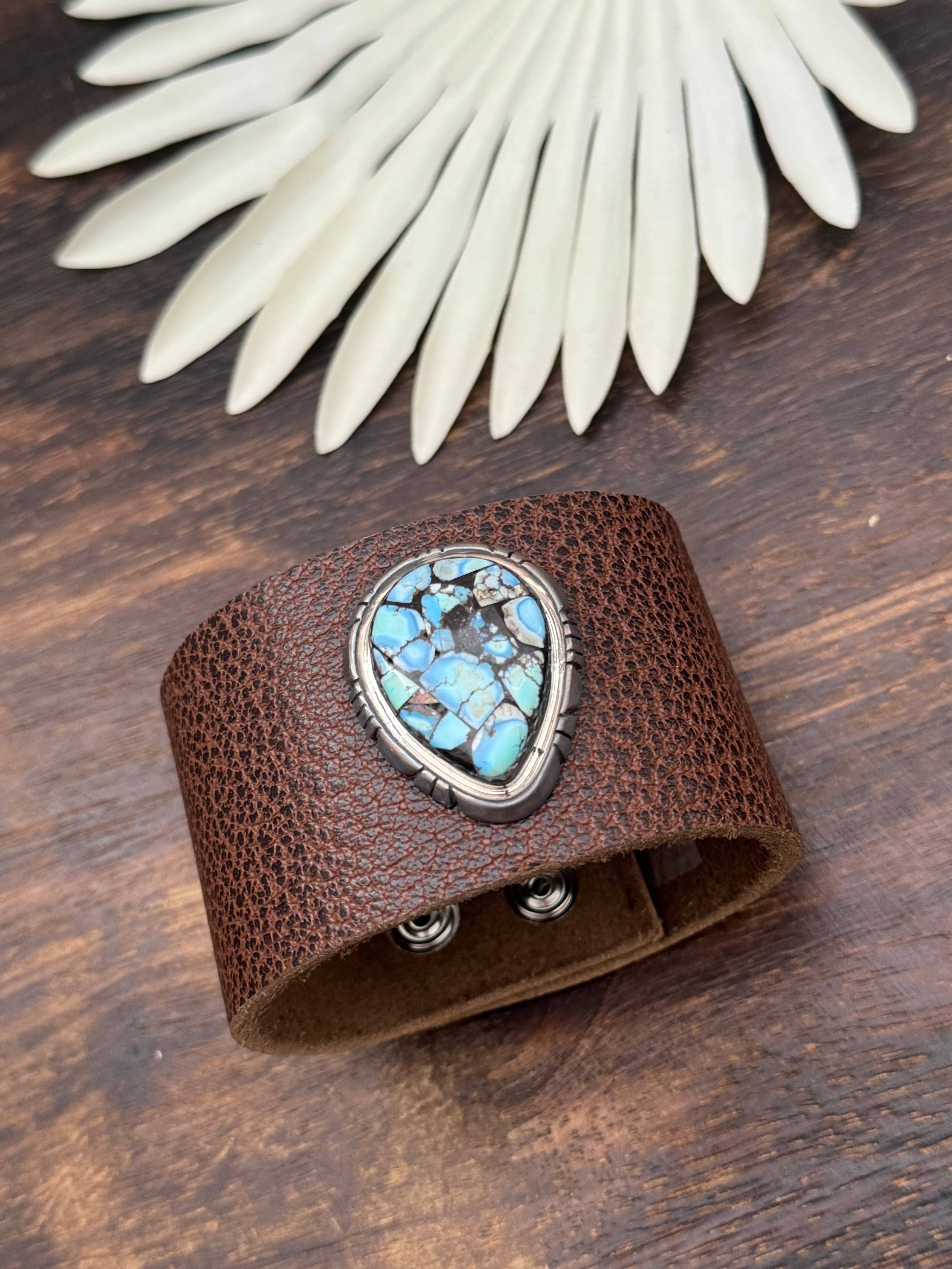 Julia Etsitty Golden Hills Turquoise & Genuine Leather Bracelet