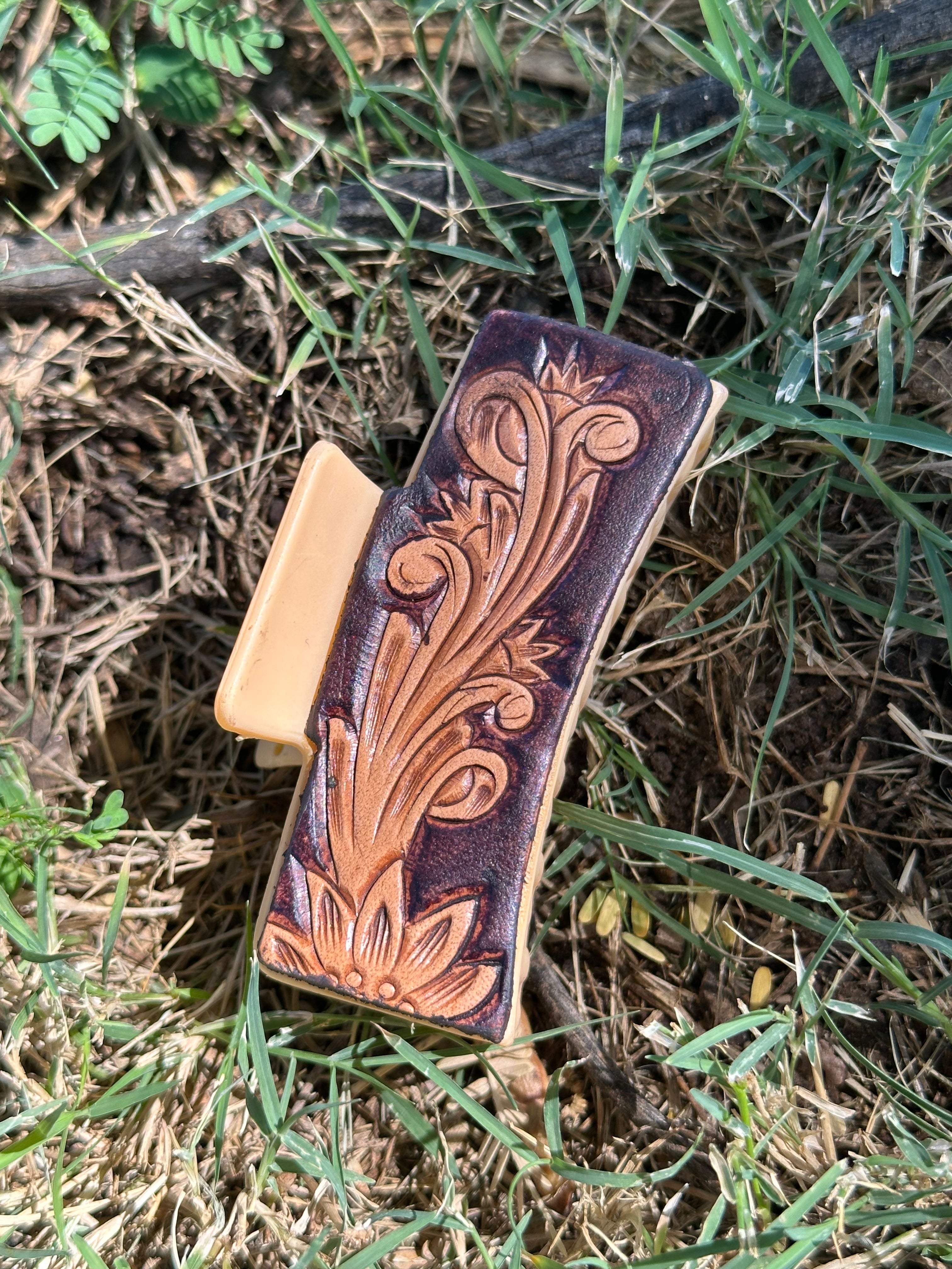 Genuine Tooled Leather Hair Clip