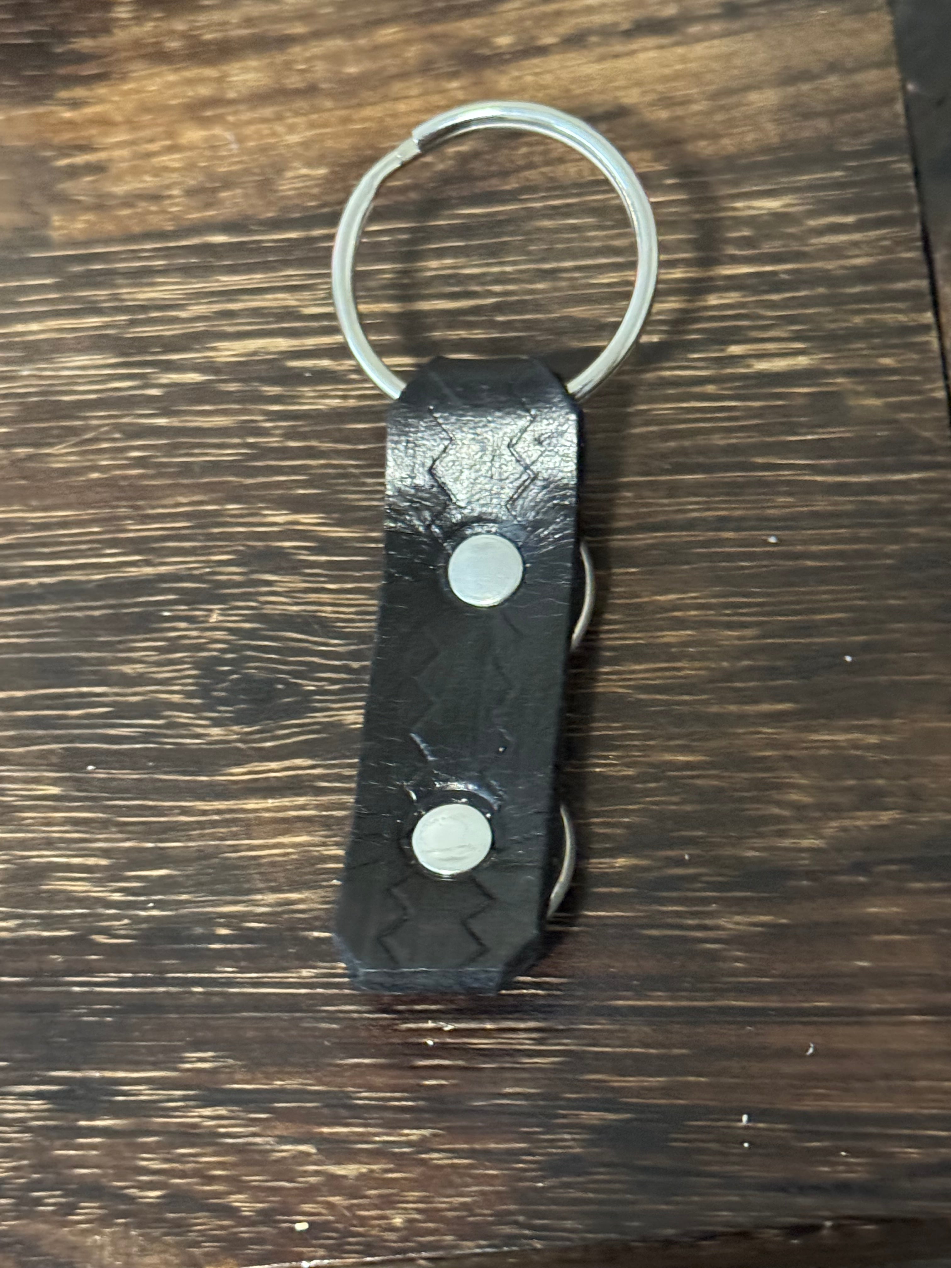 Genuine Leather & Buffalo Nickel Key Chain. It measures 3 1/2 inches long and 7/8 of an inch wide.