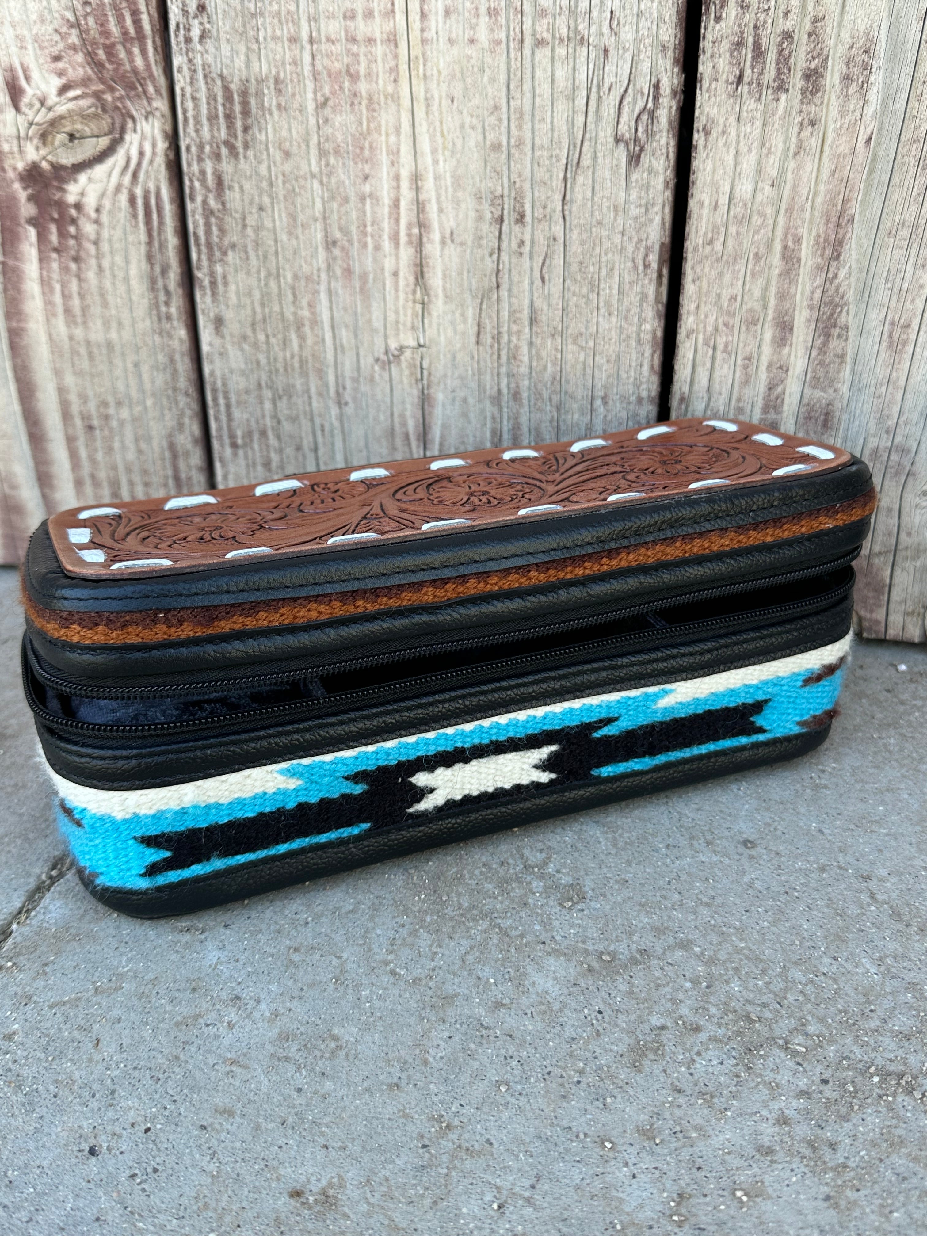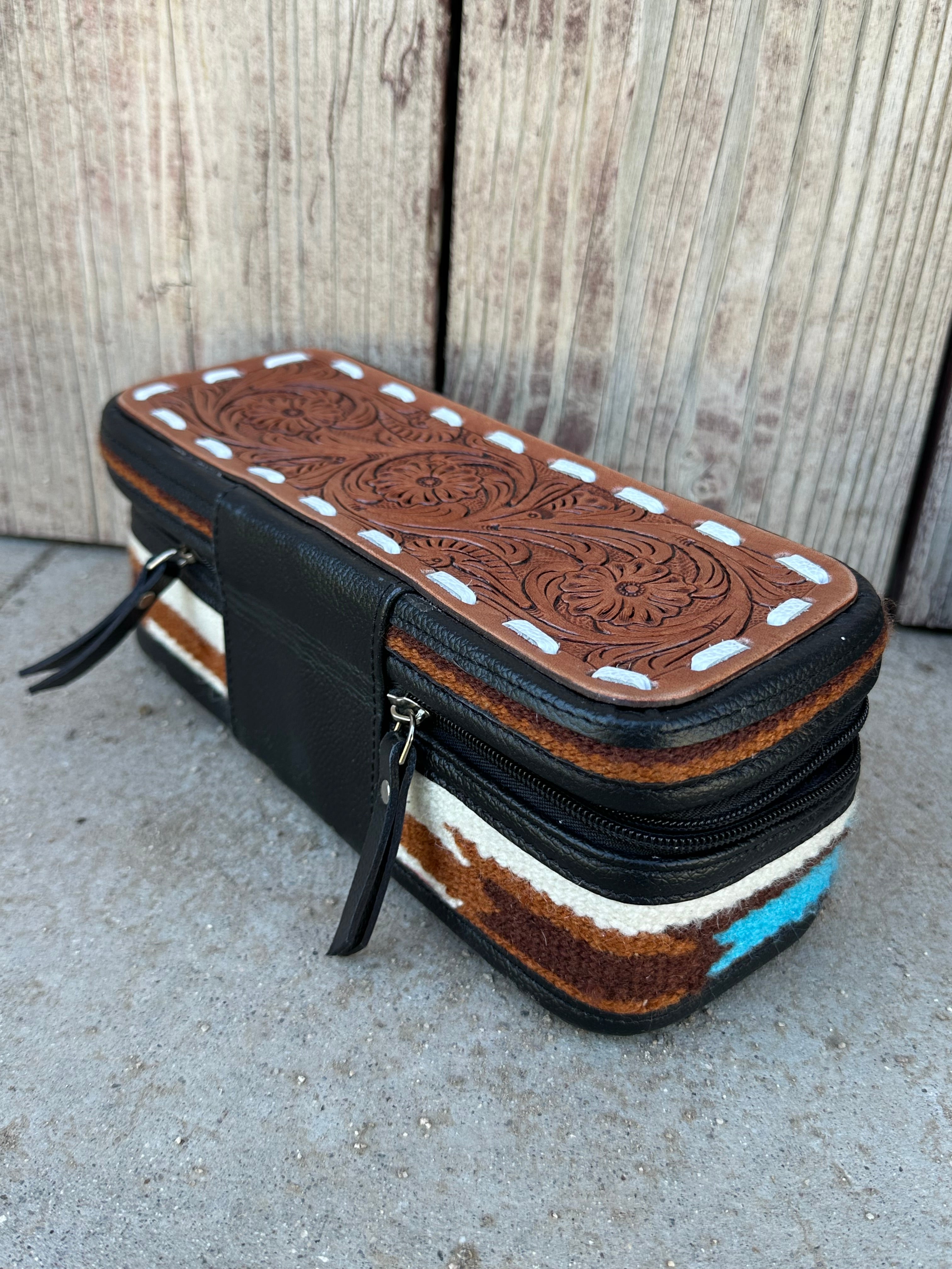 Genuine Tooled Leather Saddle Bag Jewelry Box