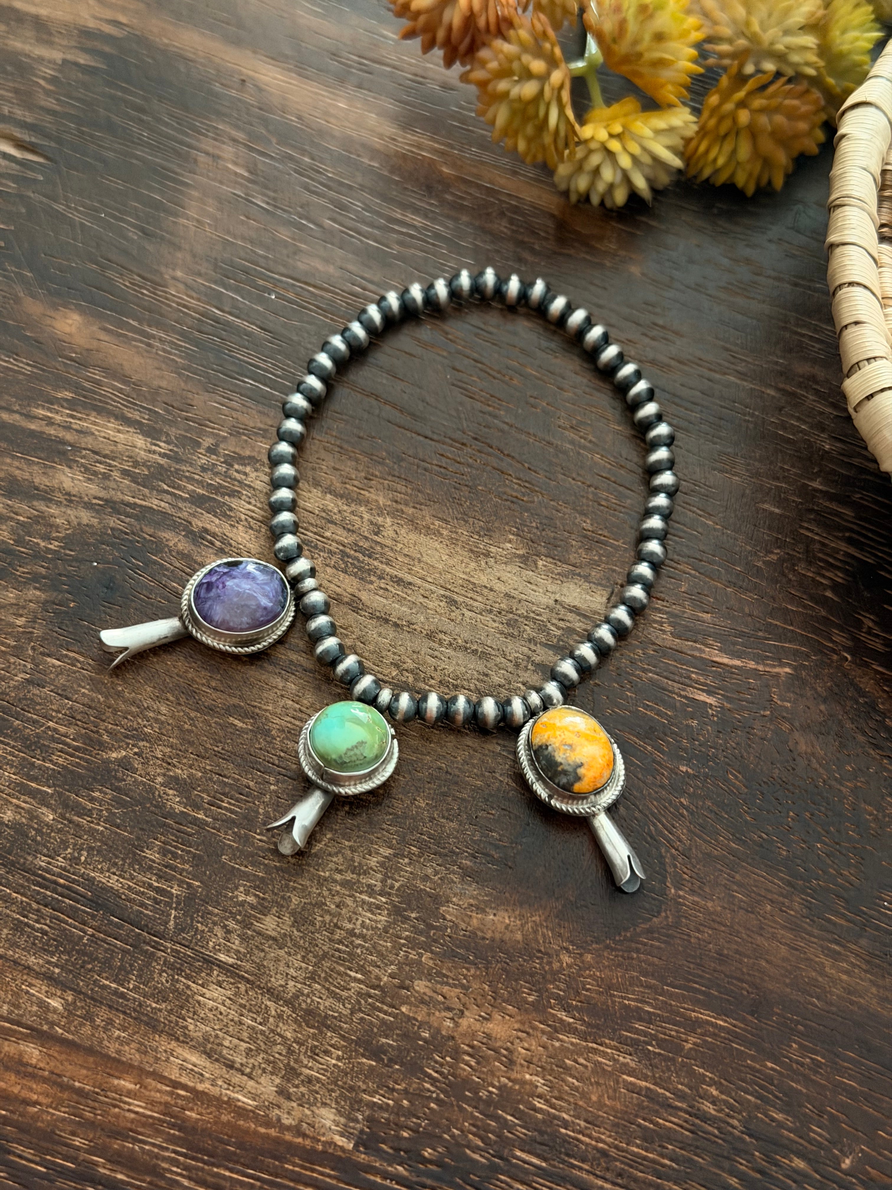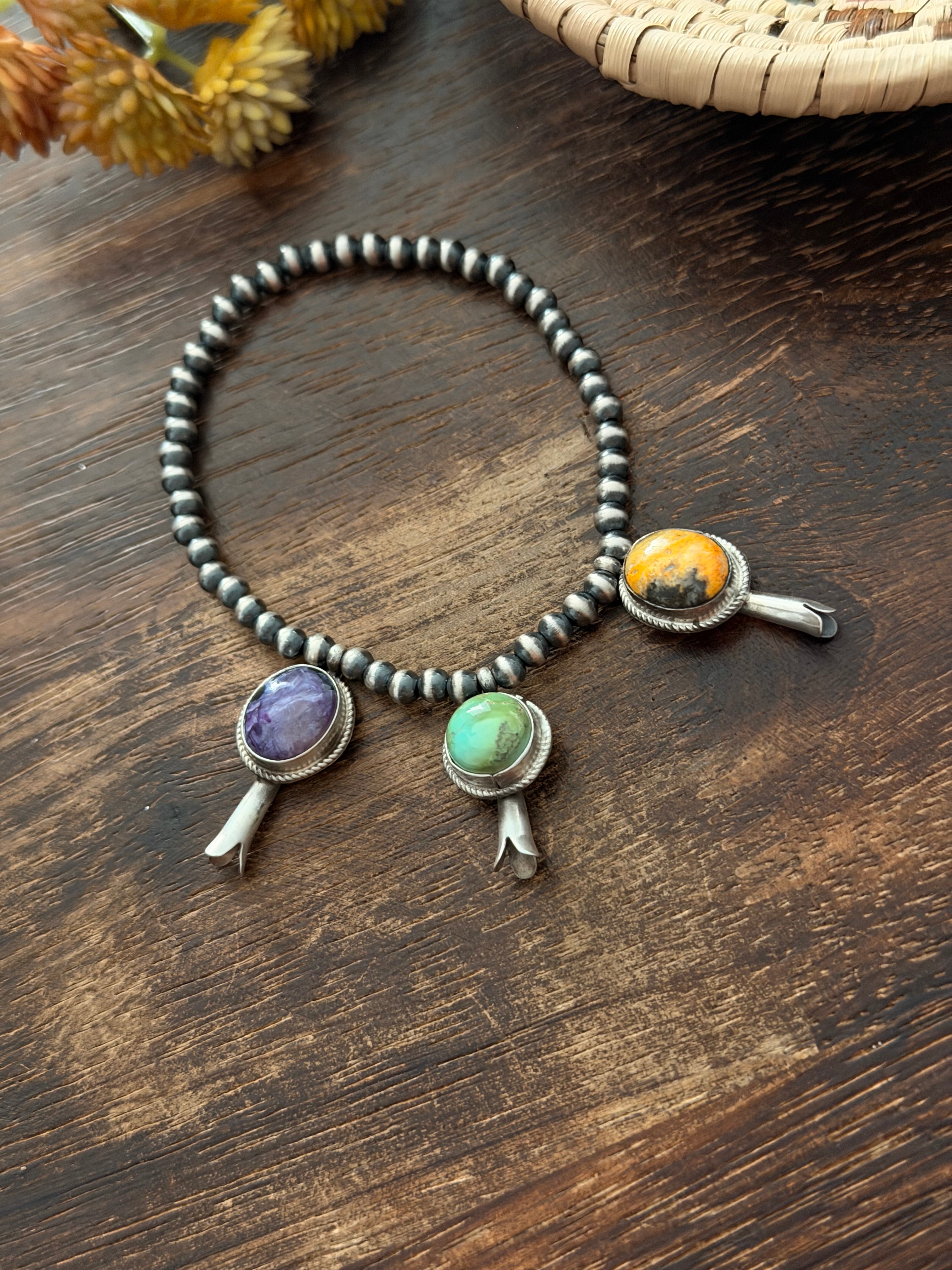 George Rios Multi Stone & Sterling Silver Hand Strung Pearl Beaded Stretch Bracelet