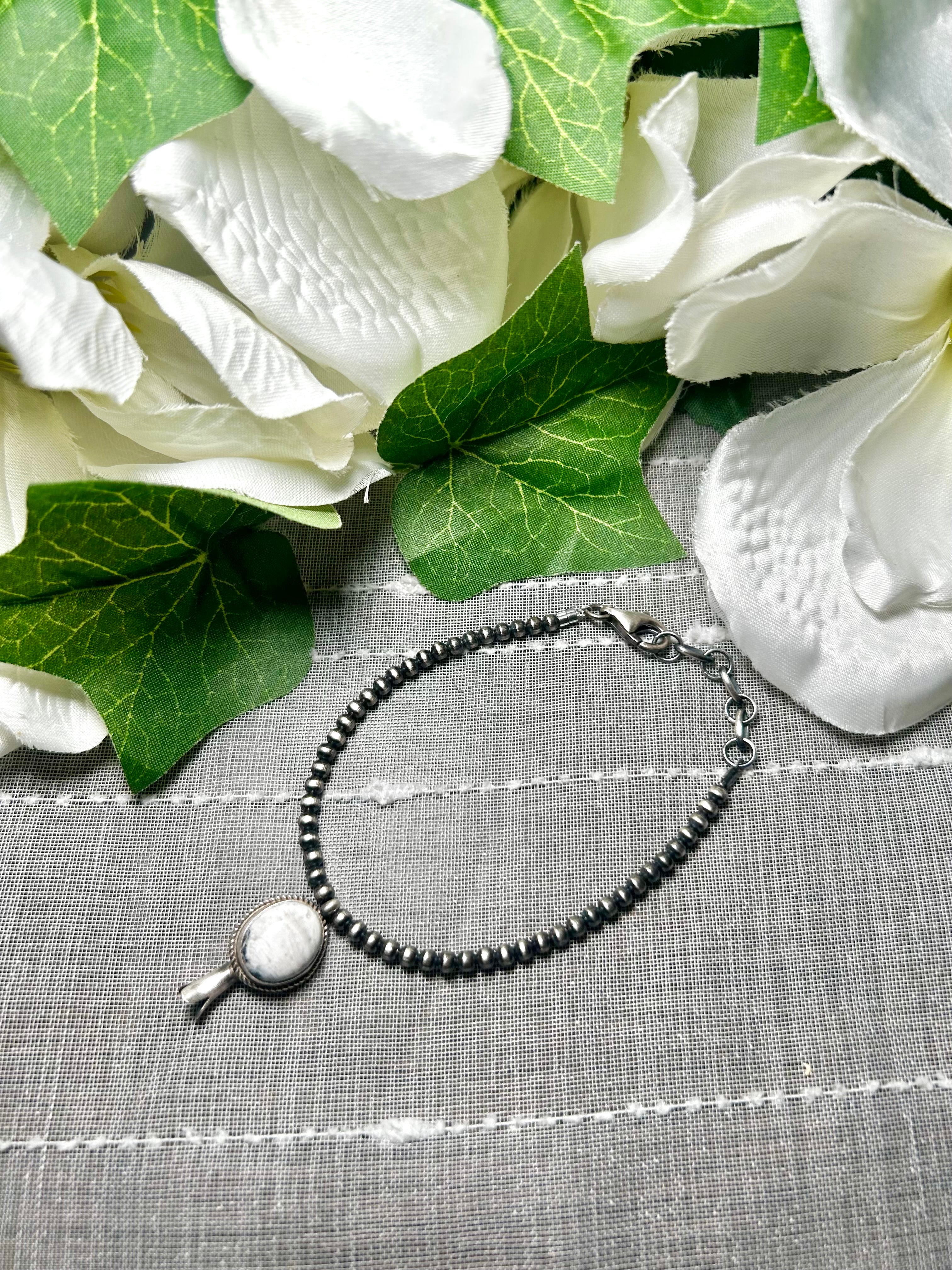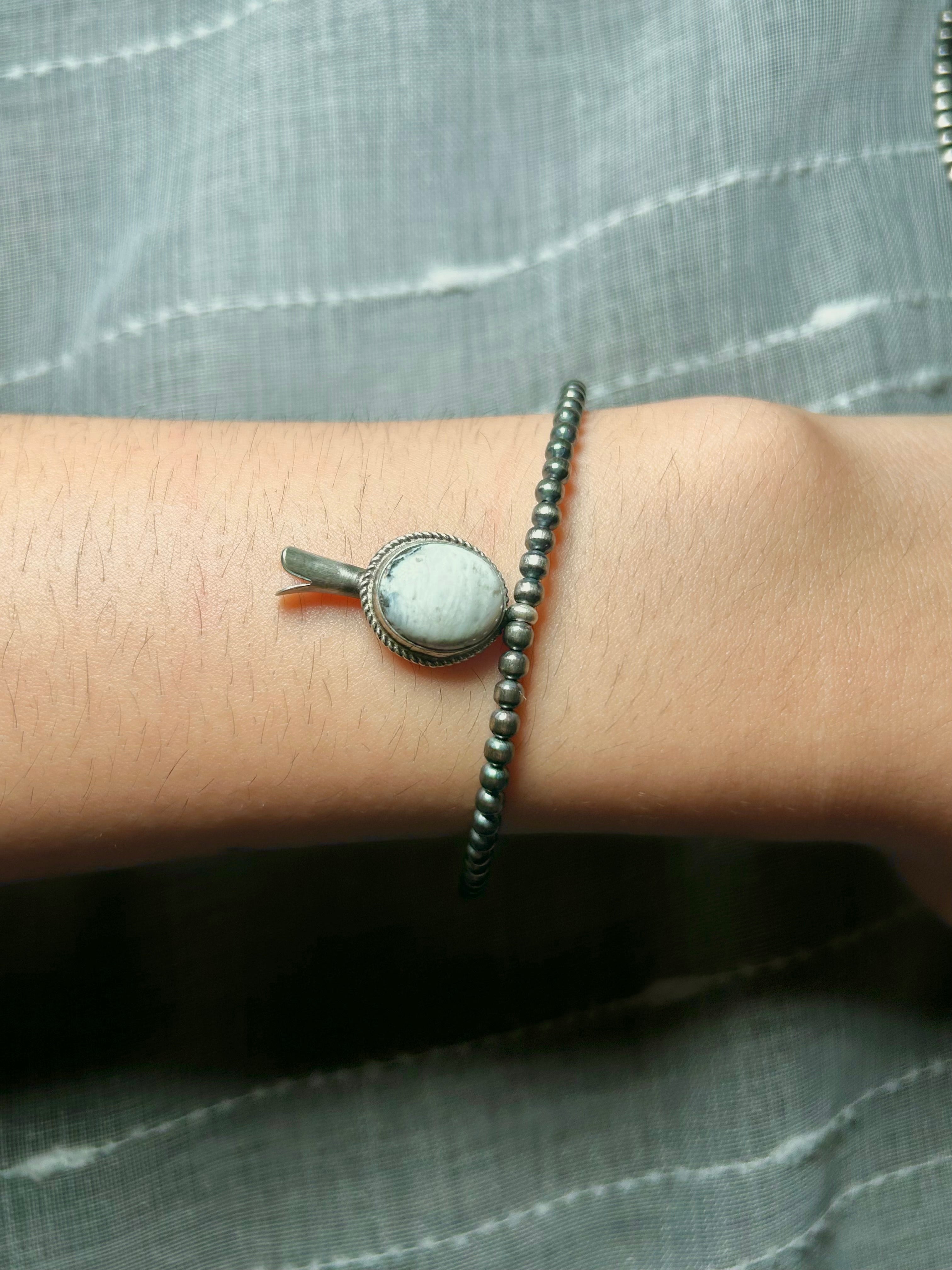 George Rios White Buffalo & Sterling Silver Beaded Bracelet. It measures 8 inches long.