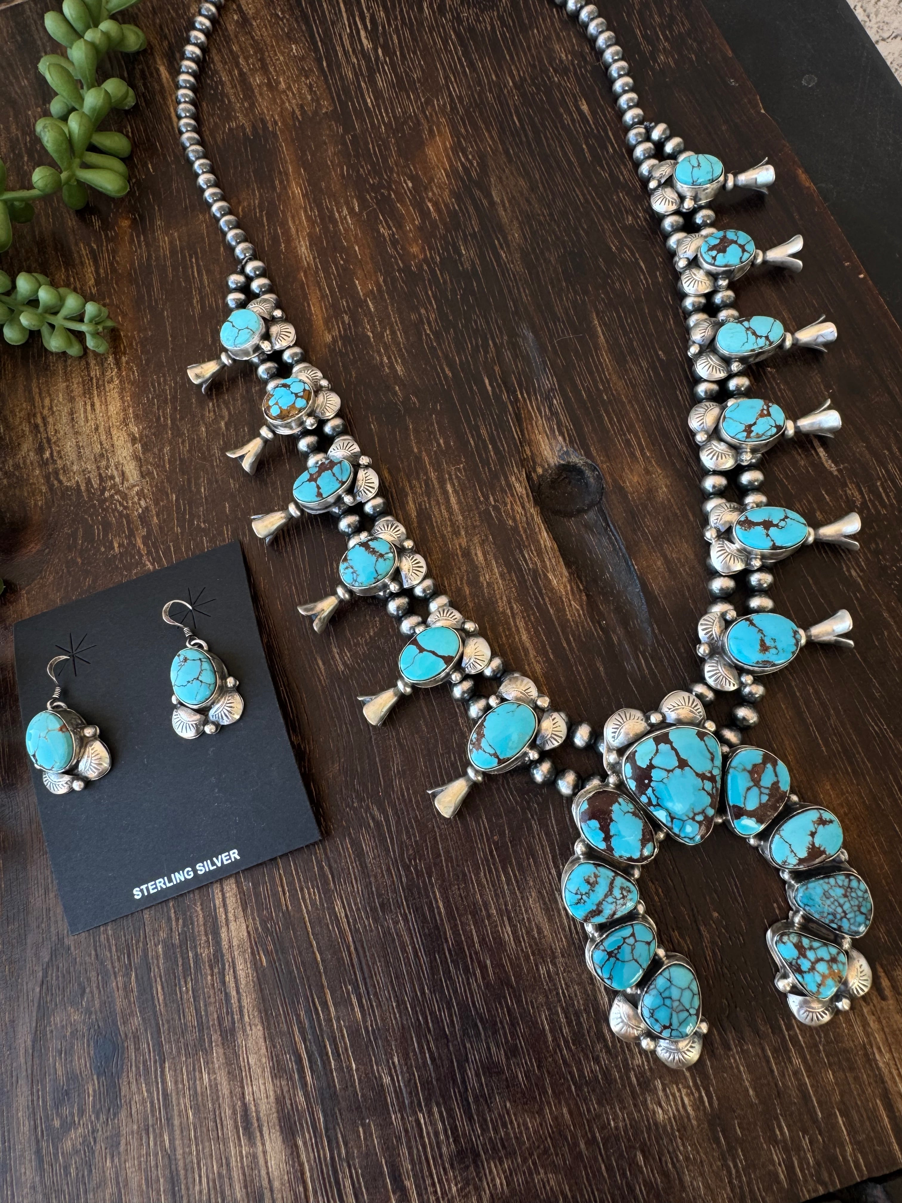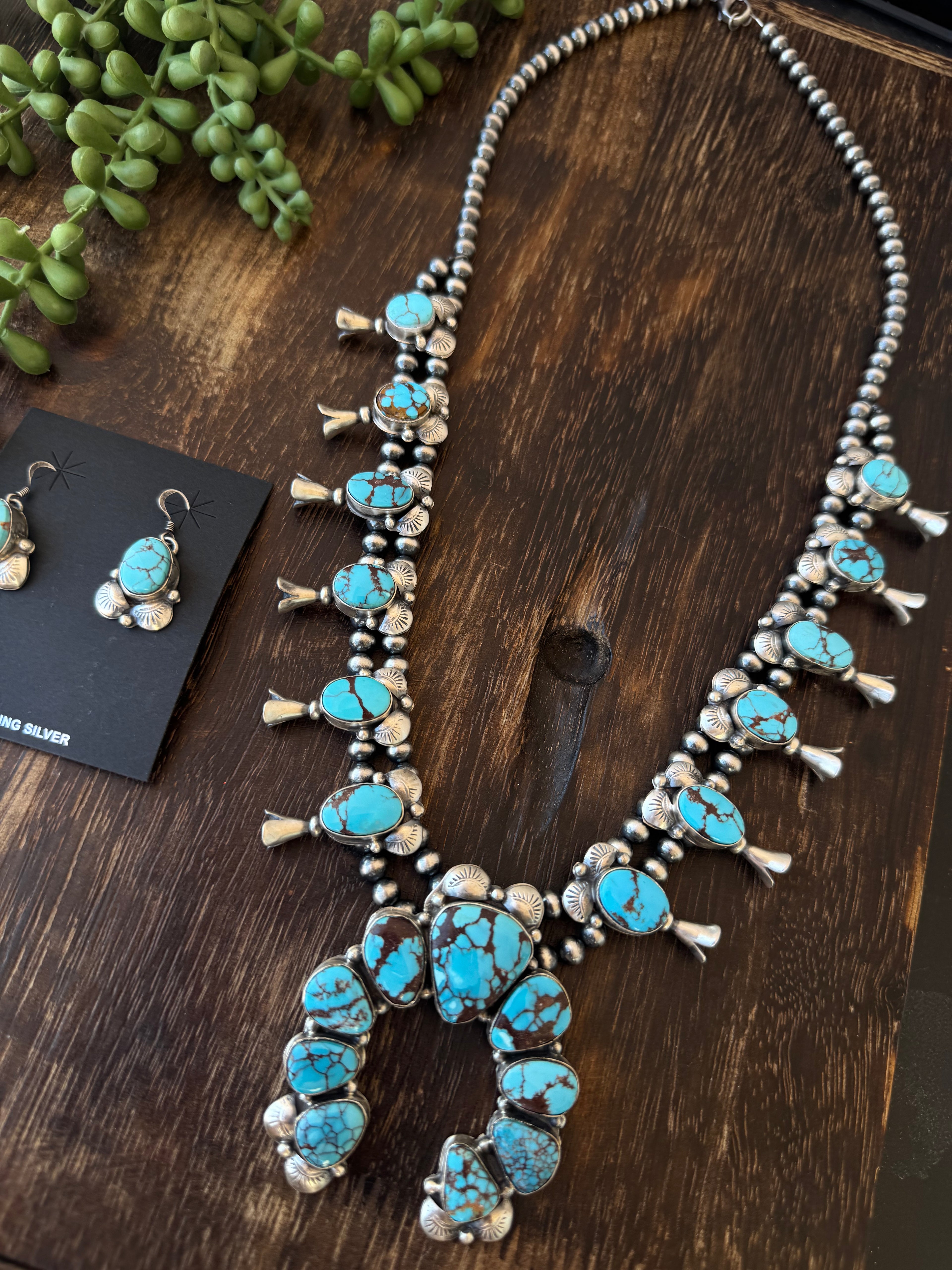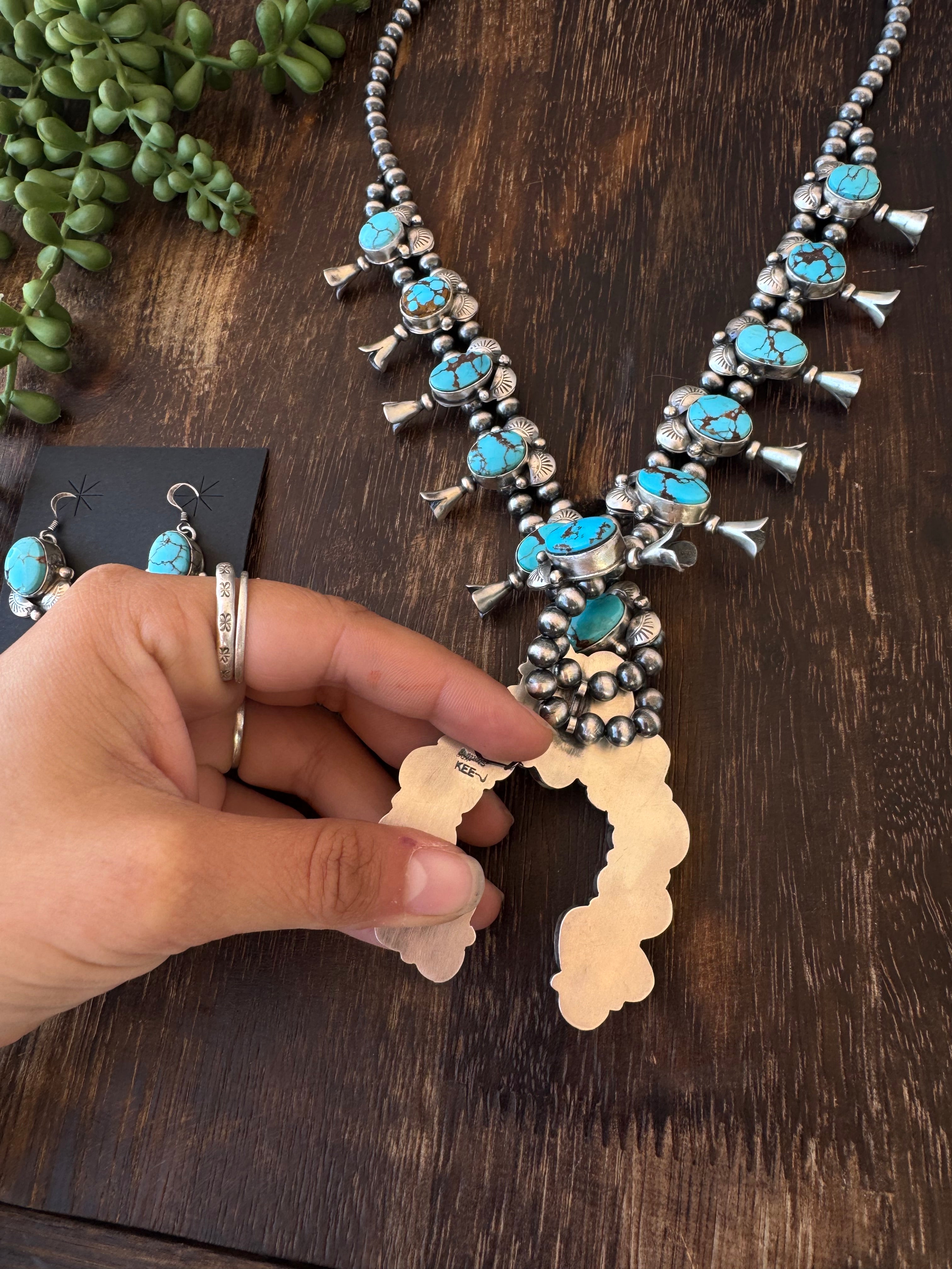 Navajo Made Egyptian Prince Turquoise & Sterling Silver Squash Blossom Necklace Set