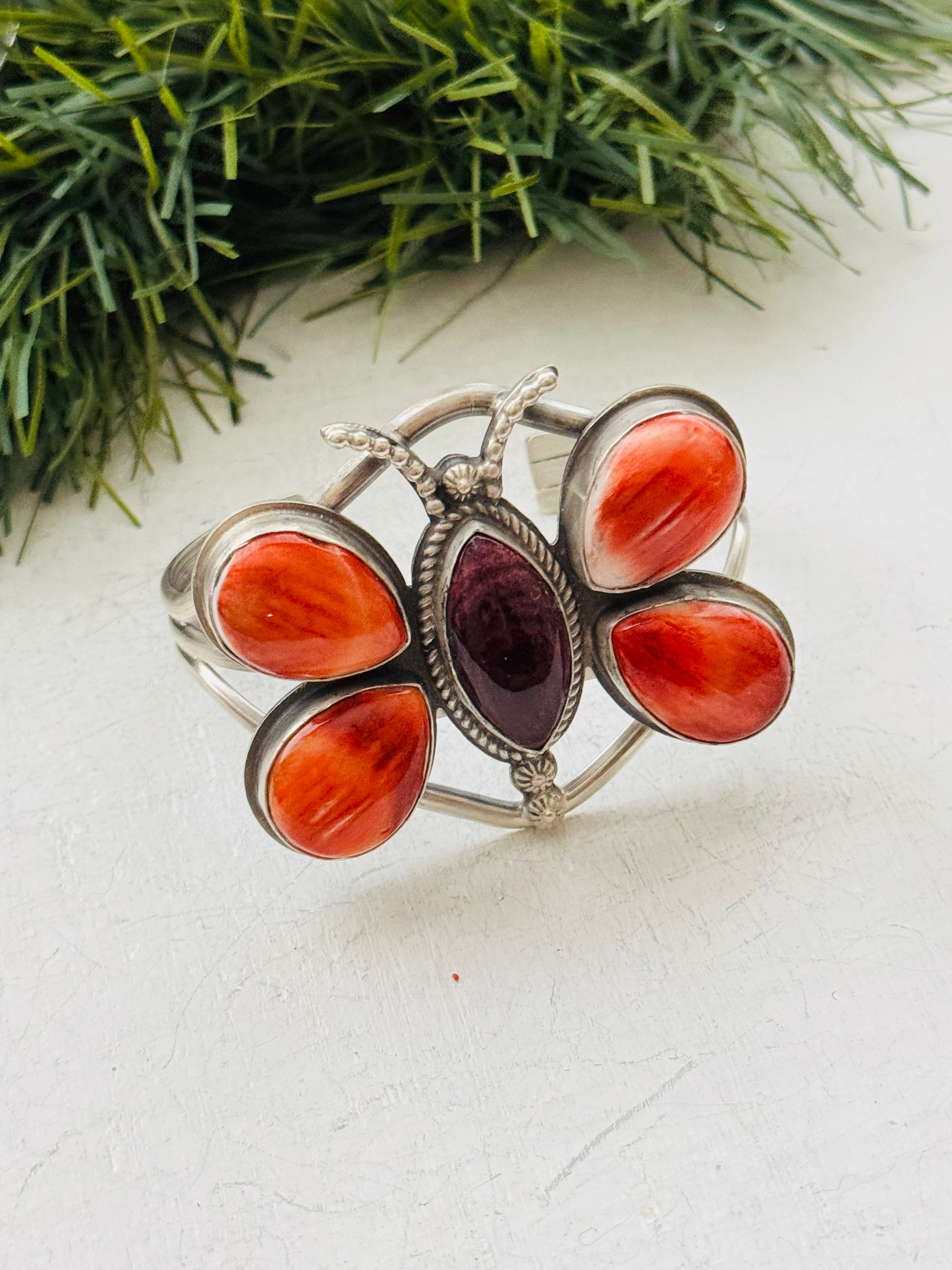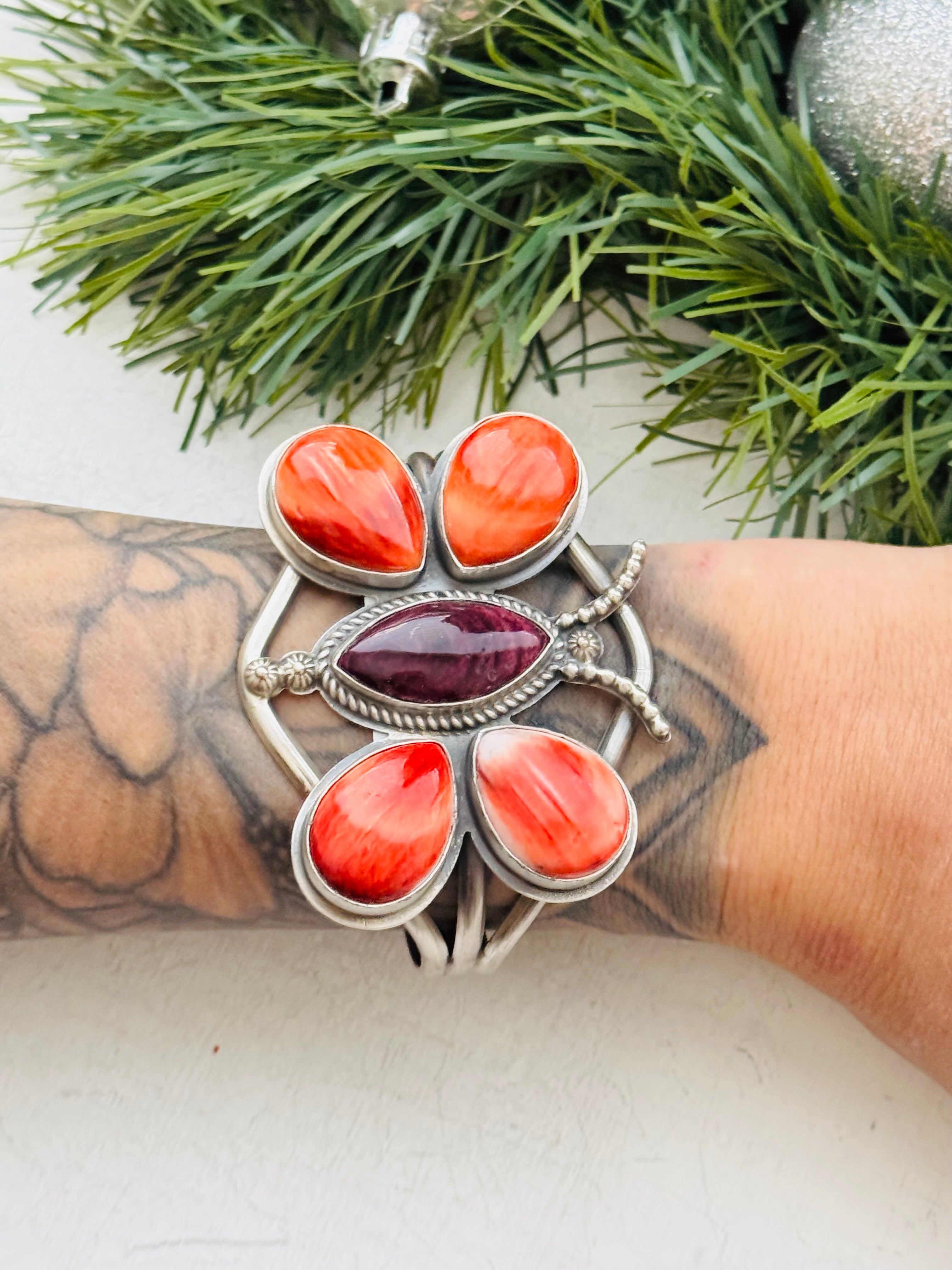 Gilbert Platero Spiny Oyster & Sterling Silver Cuff Dragonfly Bracelet