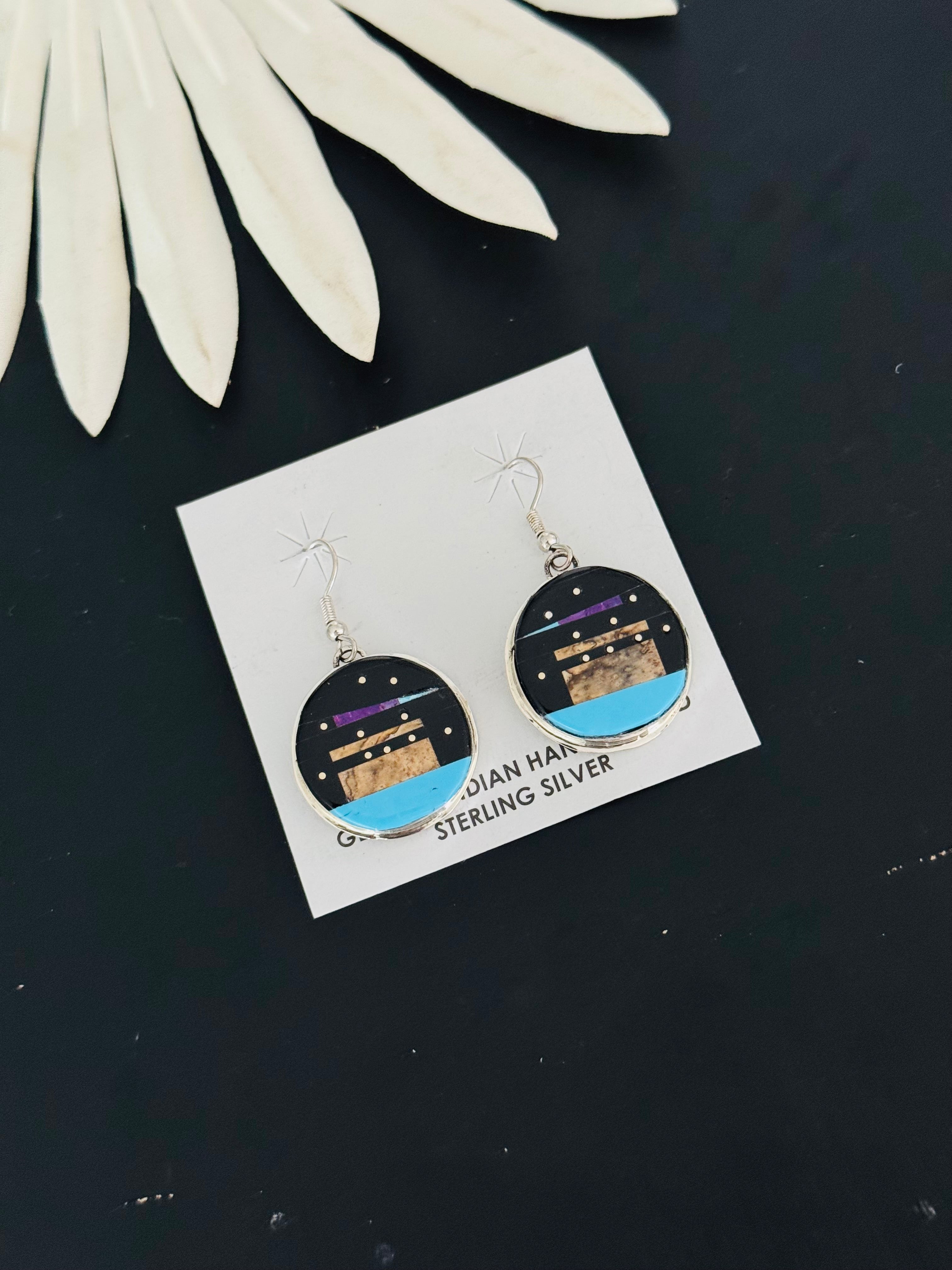 Gilbert Smith Multi Stone & Sterling Silver Inlay Dangle Earrings
