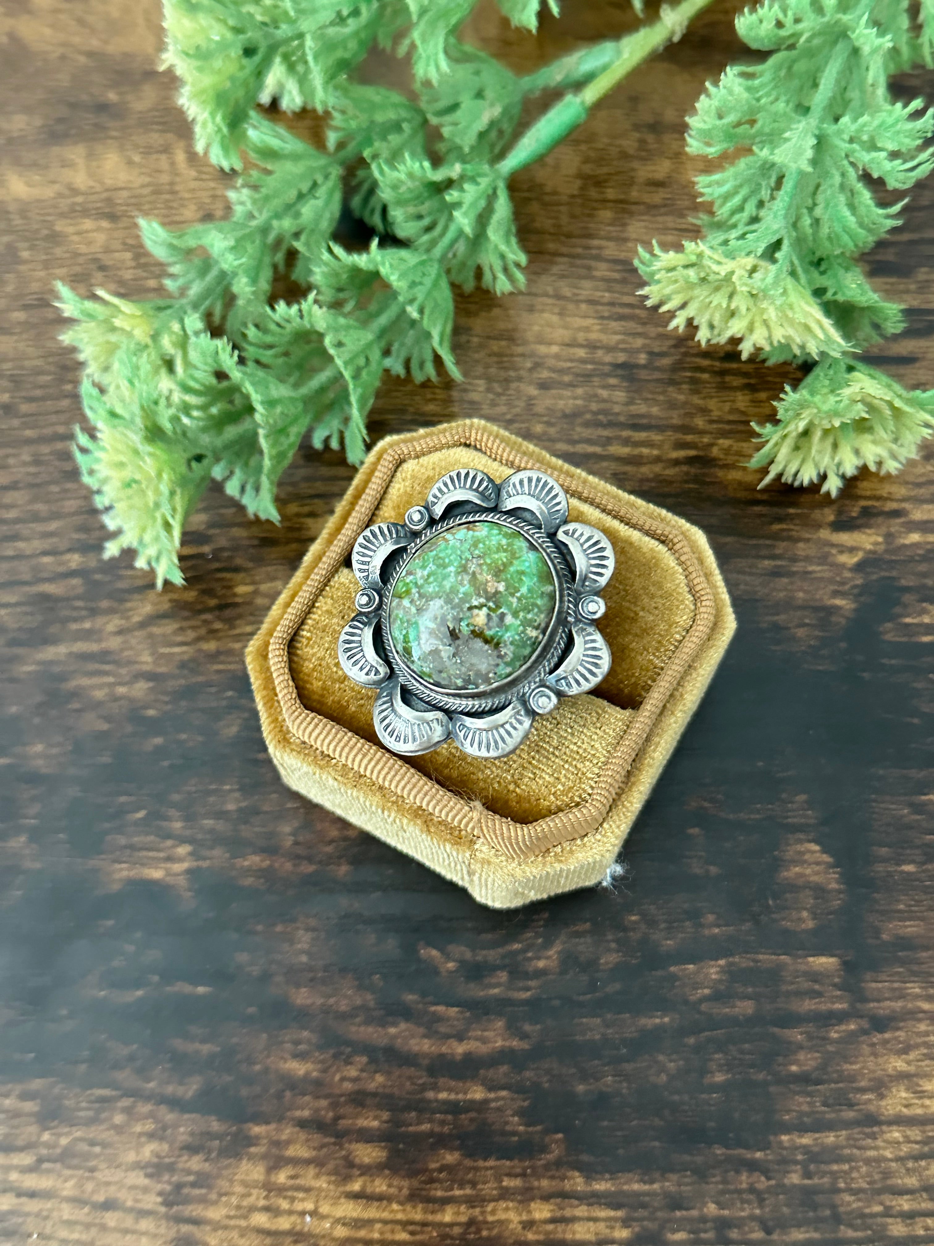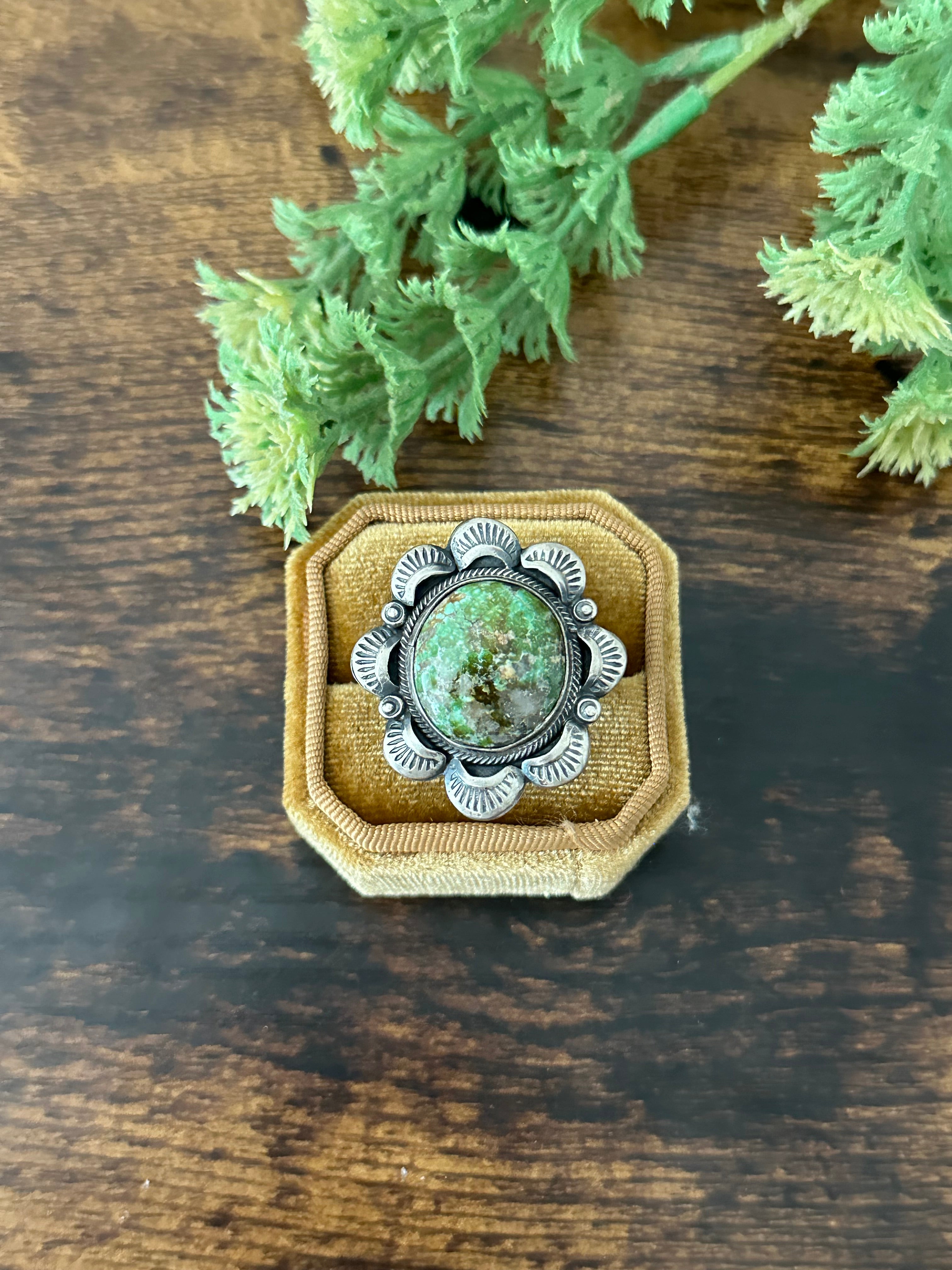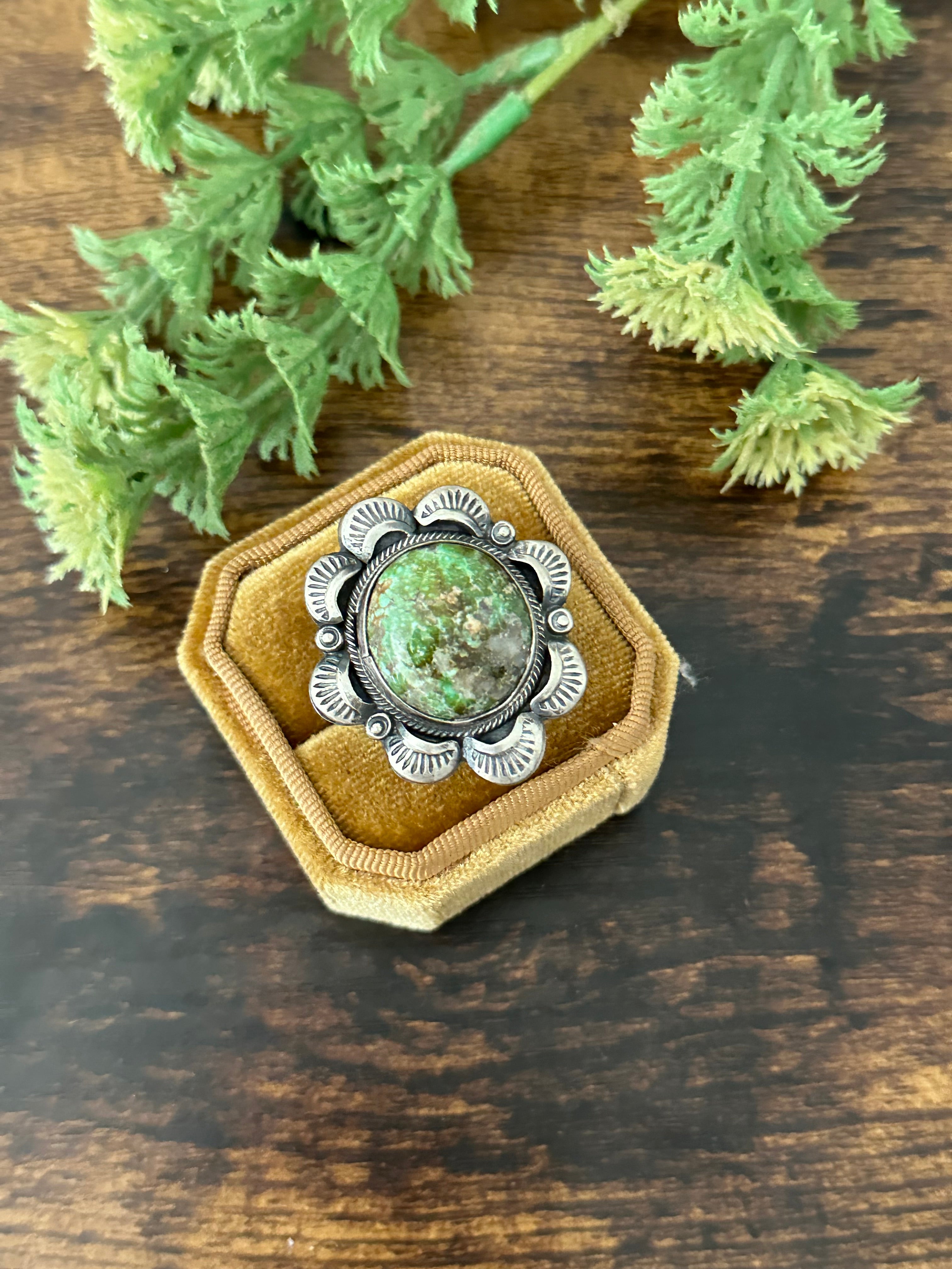 Gilbert Tom Sonoran Gold Turquoise & Sterling Silver Ring Size 8.5