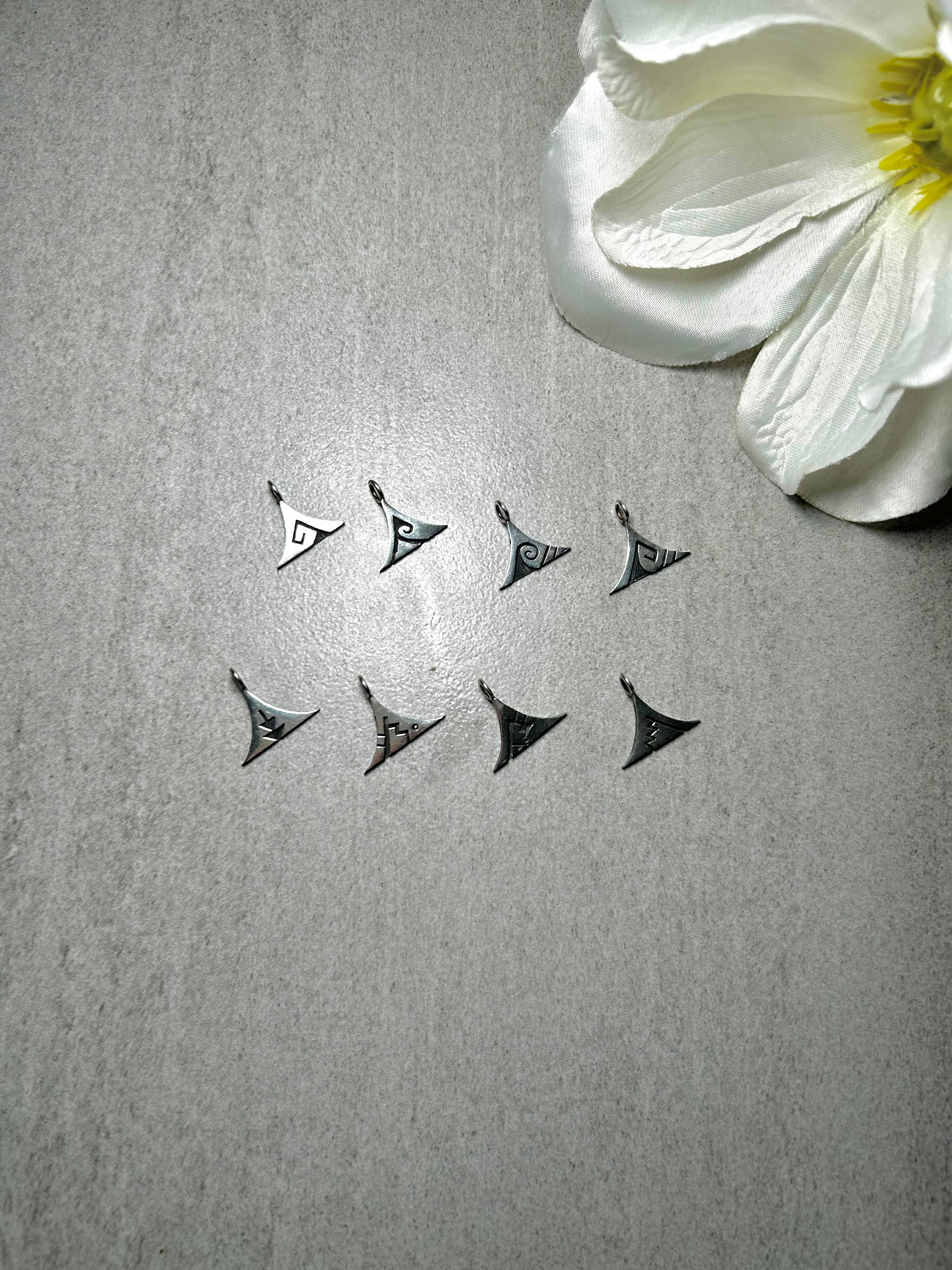 Hopi Made Sterling Silver Cluster Pendant. It measures 5/8 of an inch long and 3/4 of an inch wide. Pendant Only. Signed by the artist and stamped sterling silver.