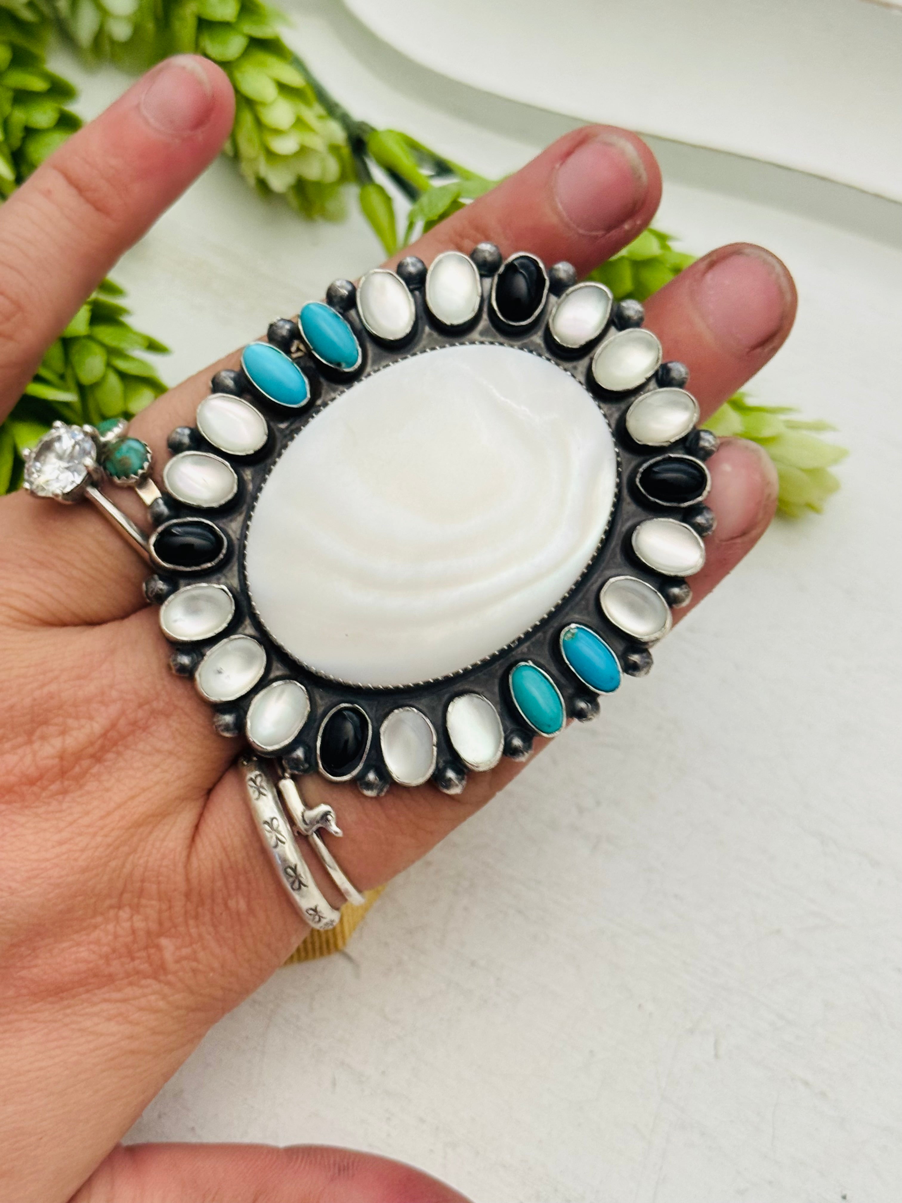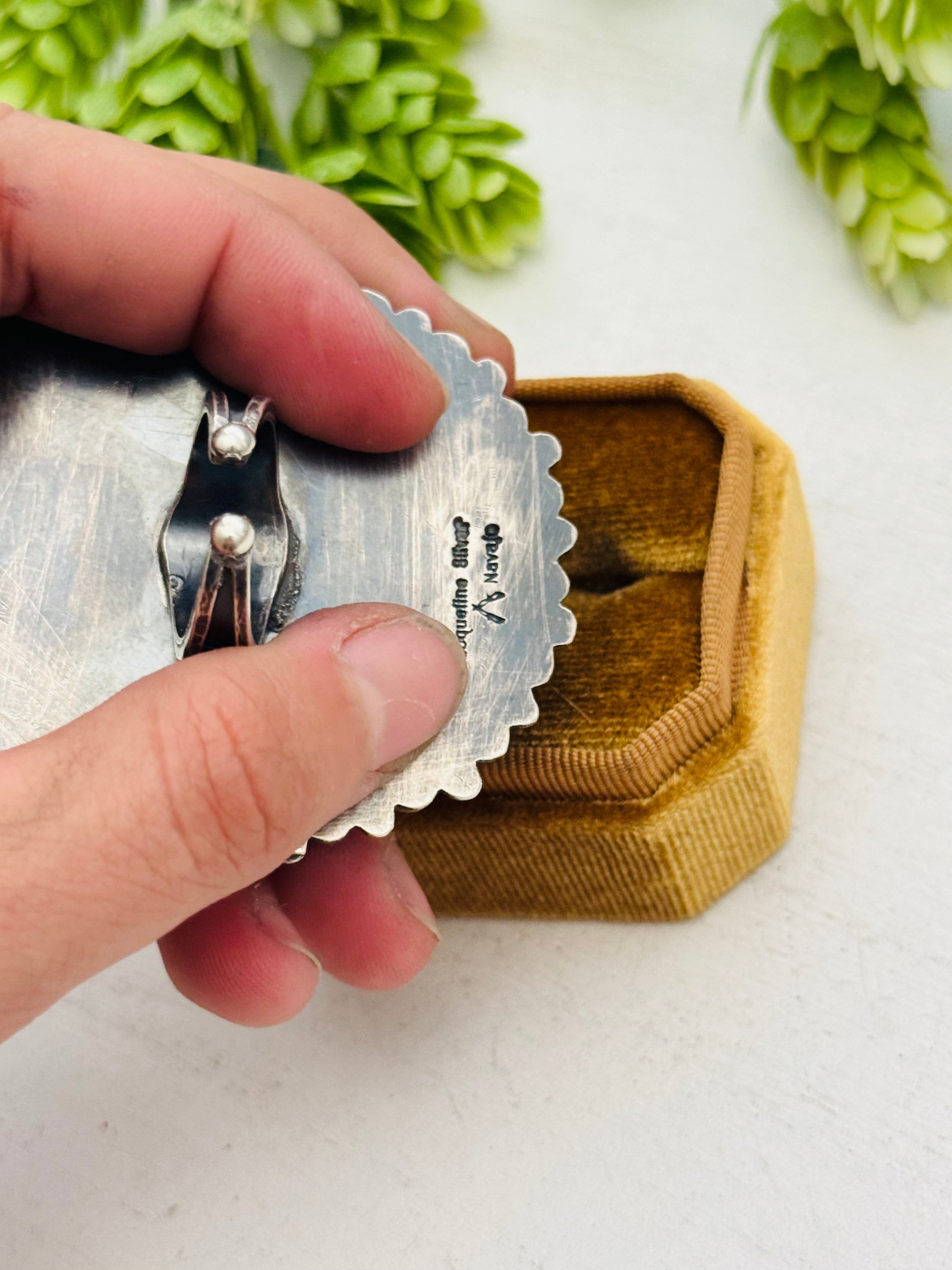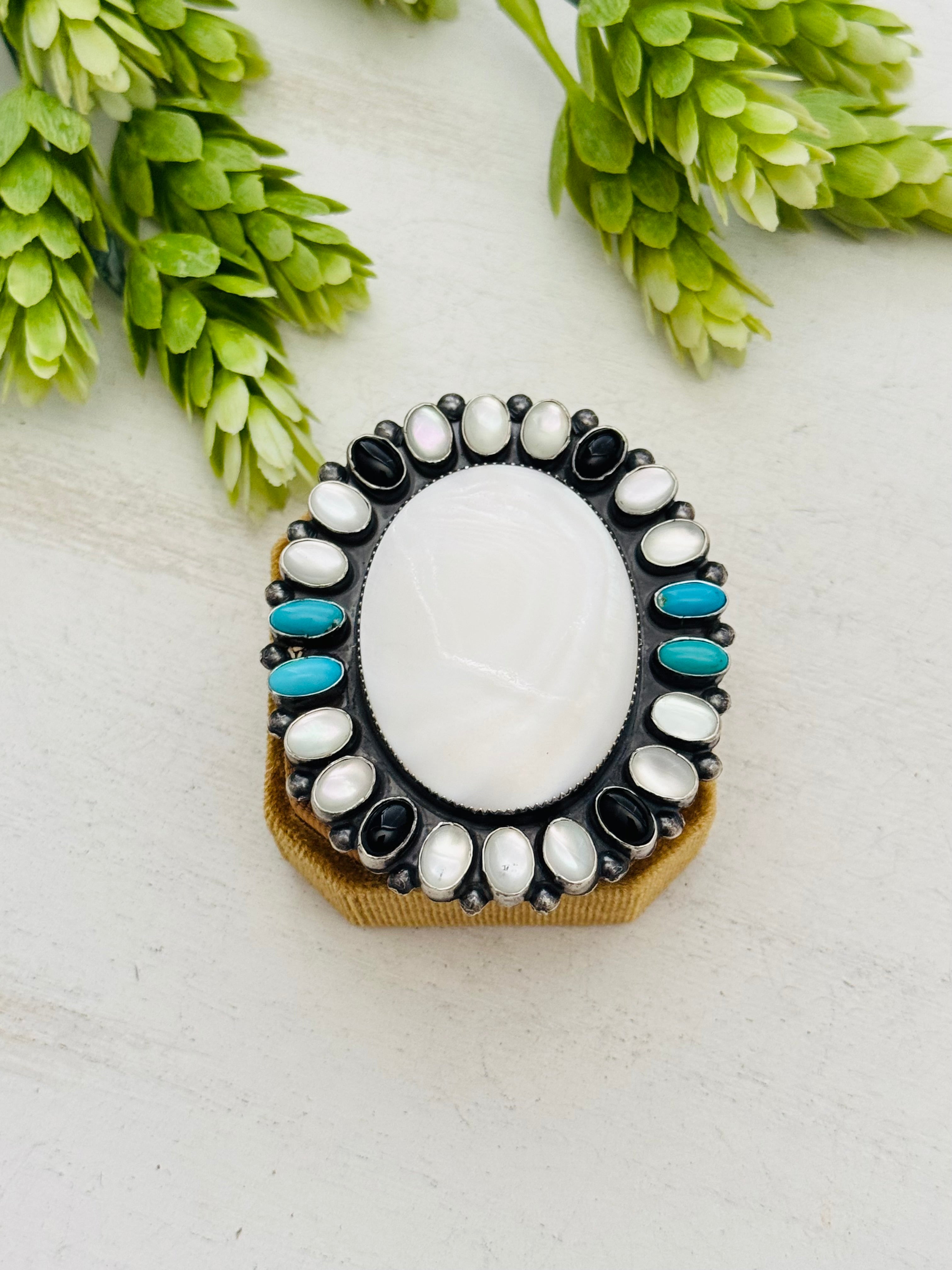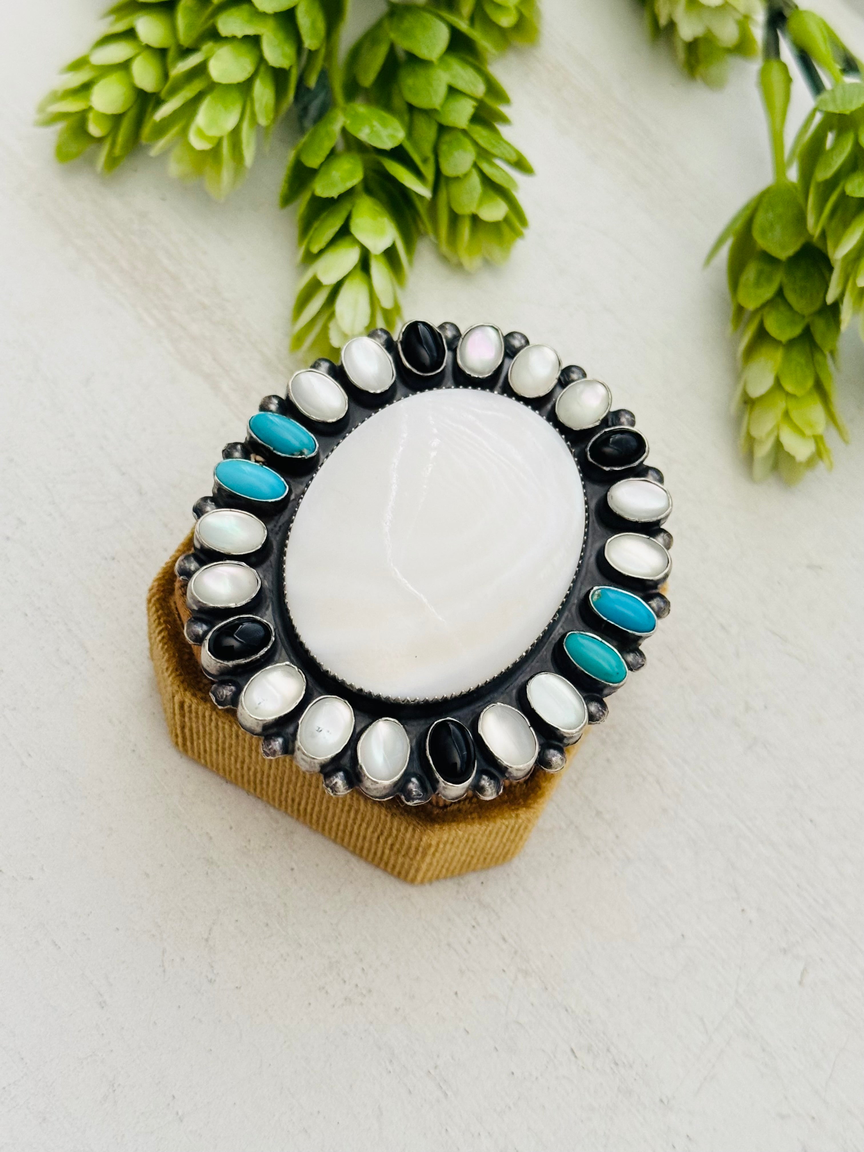 Beautiful ring, Jacqueline Silver Multi Stone & Sterling Silver Cluster Adjustable Ring. It measures 2 3/8 inches long and 2 1/8 inches wide. Signed and stamped.