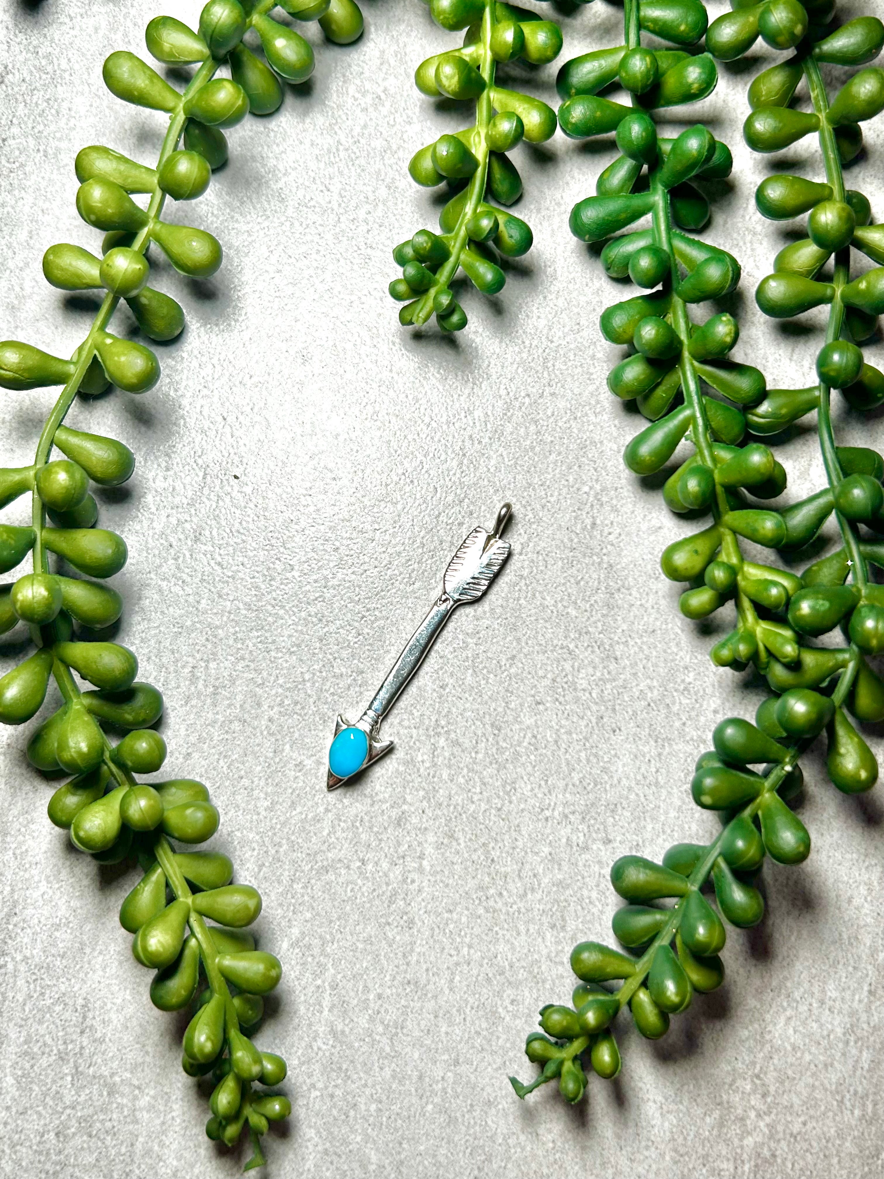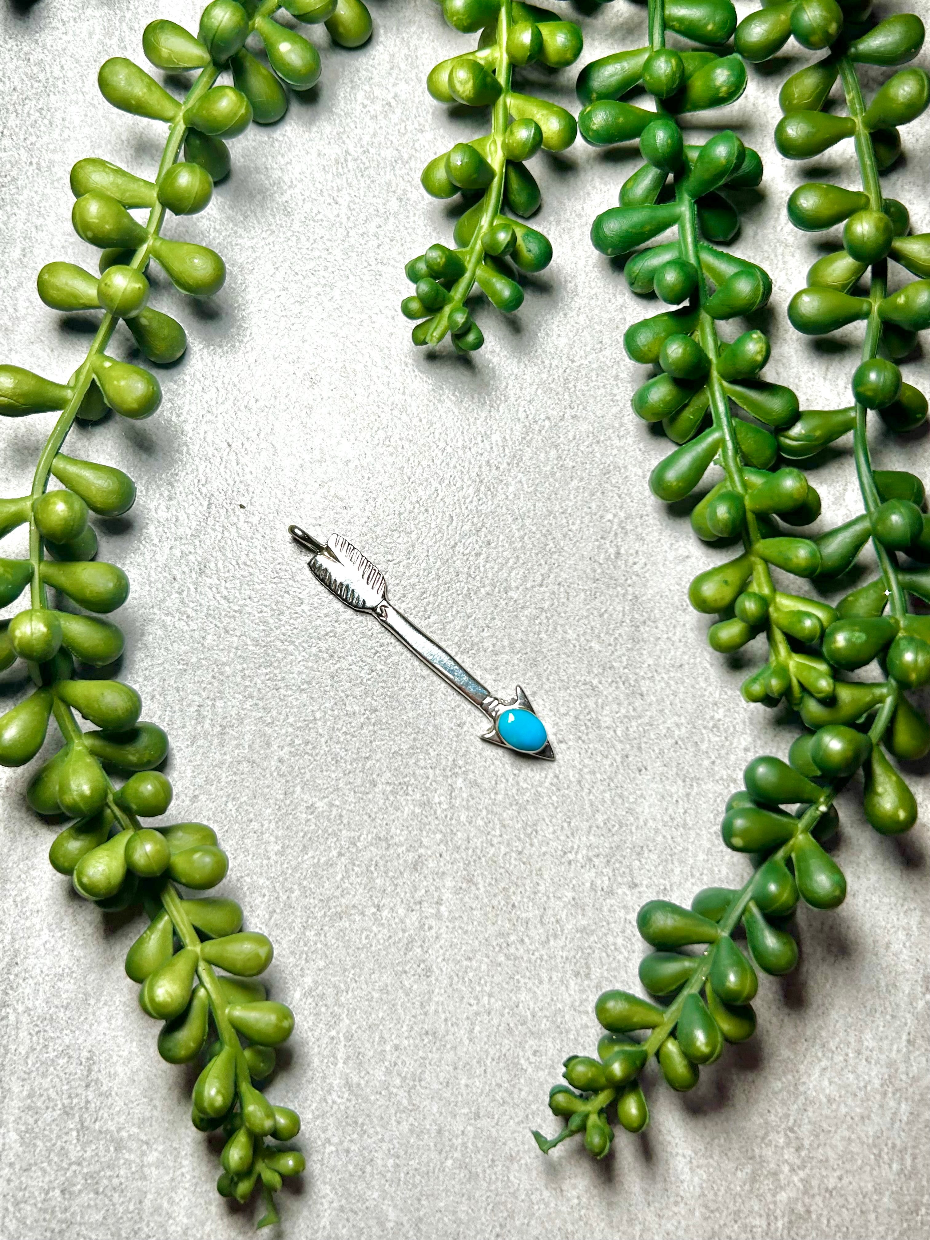Joe Martinez Kingman Turquoise & Sterling Silver Pendant. It measures 2 1/4 inches long and 1/2 of an inch wide. Pendant Only! Signed by the artist and stamped sterling silver.