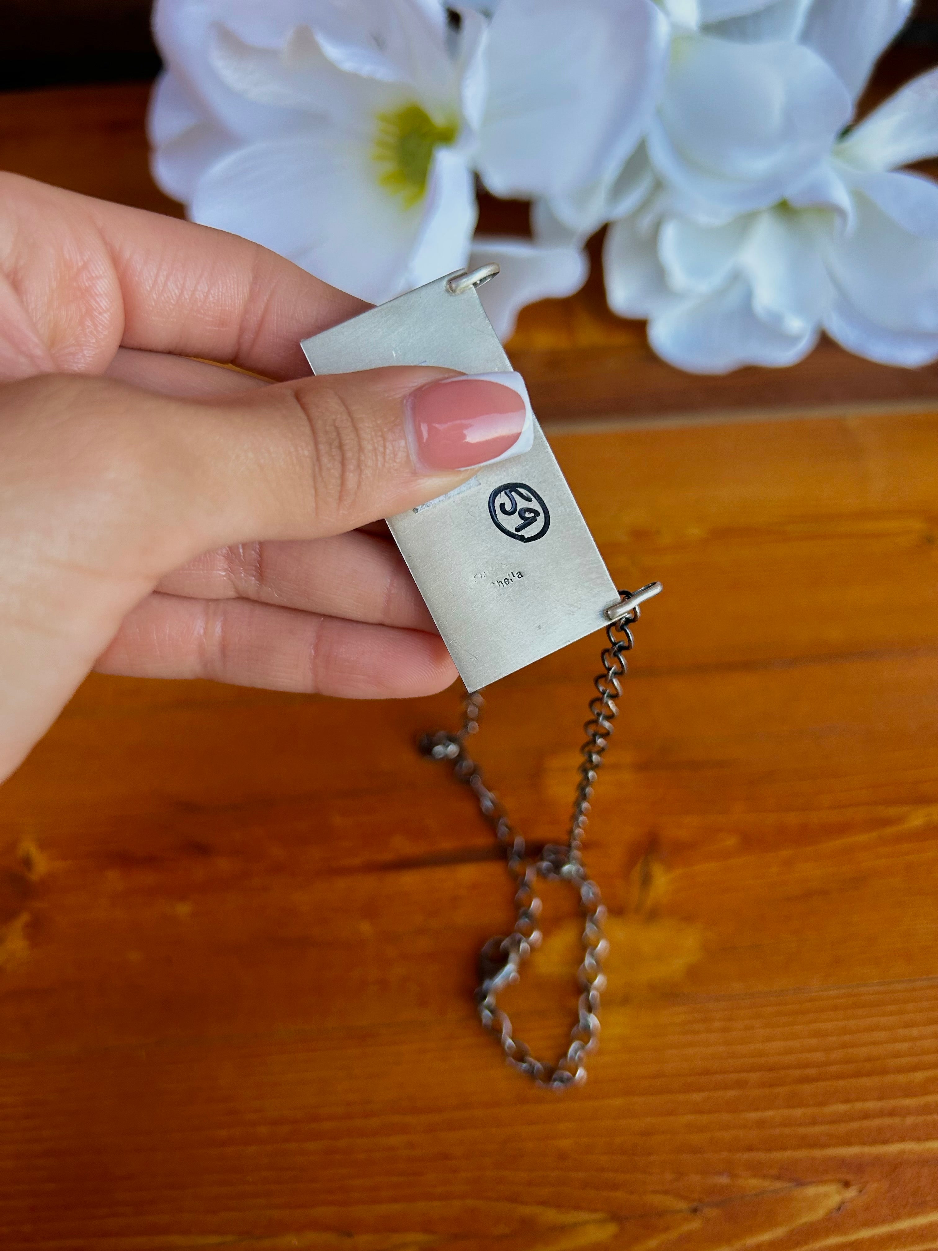 Sheila Becenti Multi Stone & Sterling Silver Cluster Necklace. They measure 20 1/2 inches long with hang while the necklace by itself measures 18 inches long. Stamped and signed