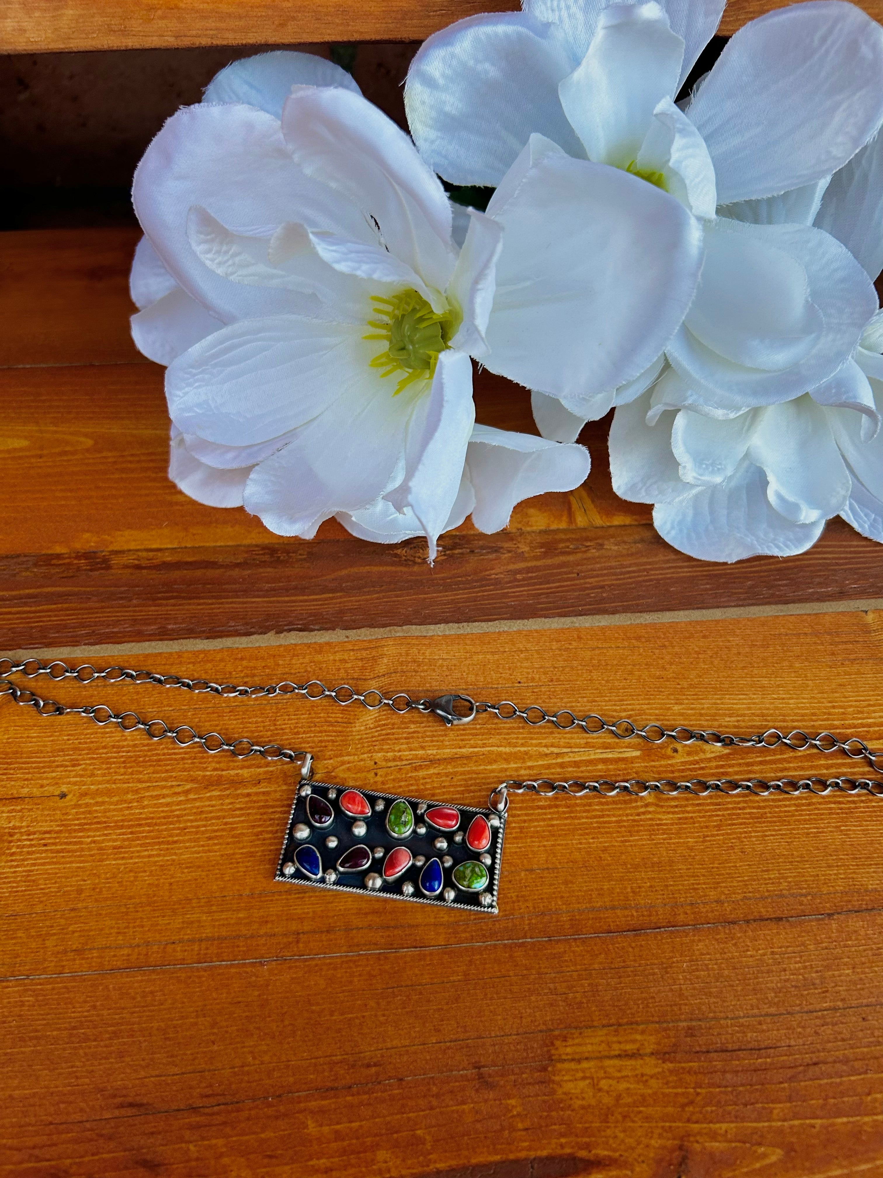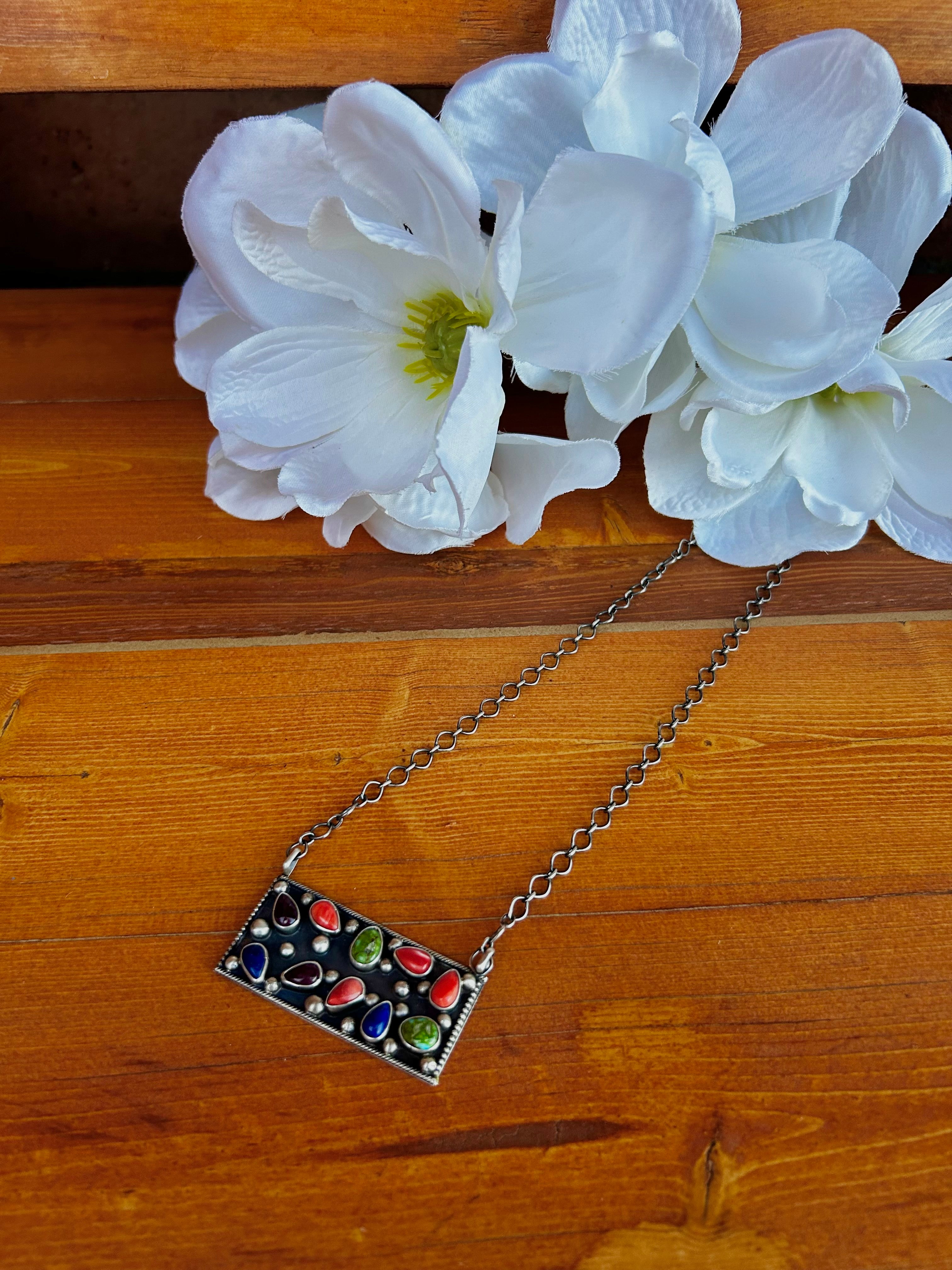 Sheila Becenti Multi Stone & Sterling Silver Cluster Necklace