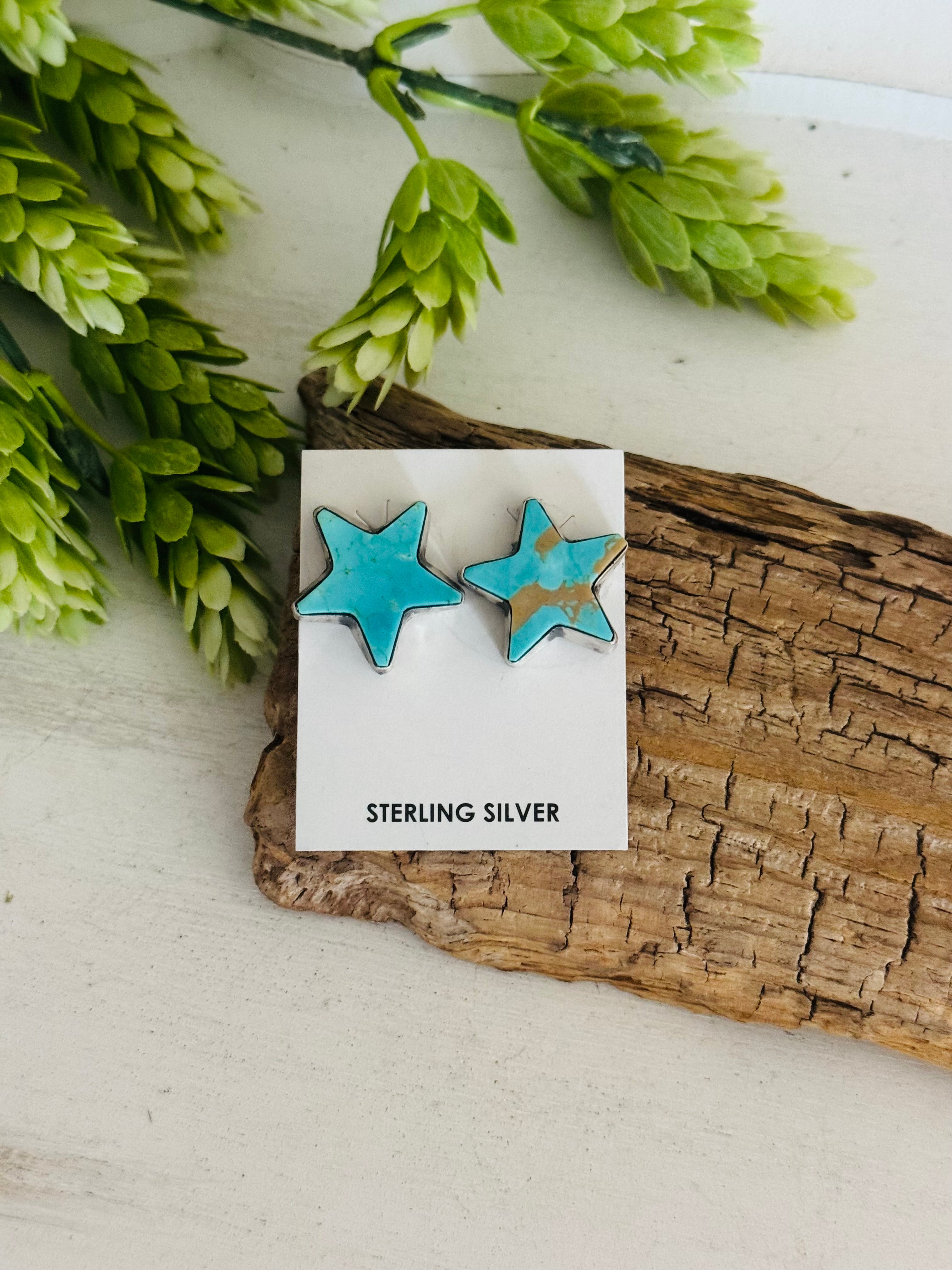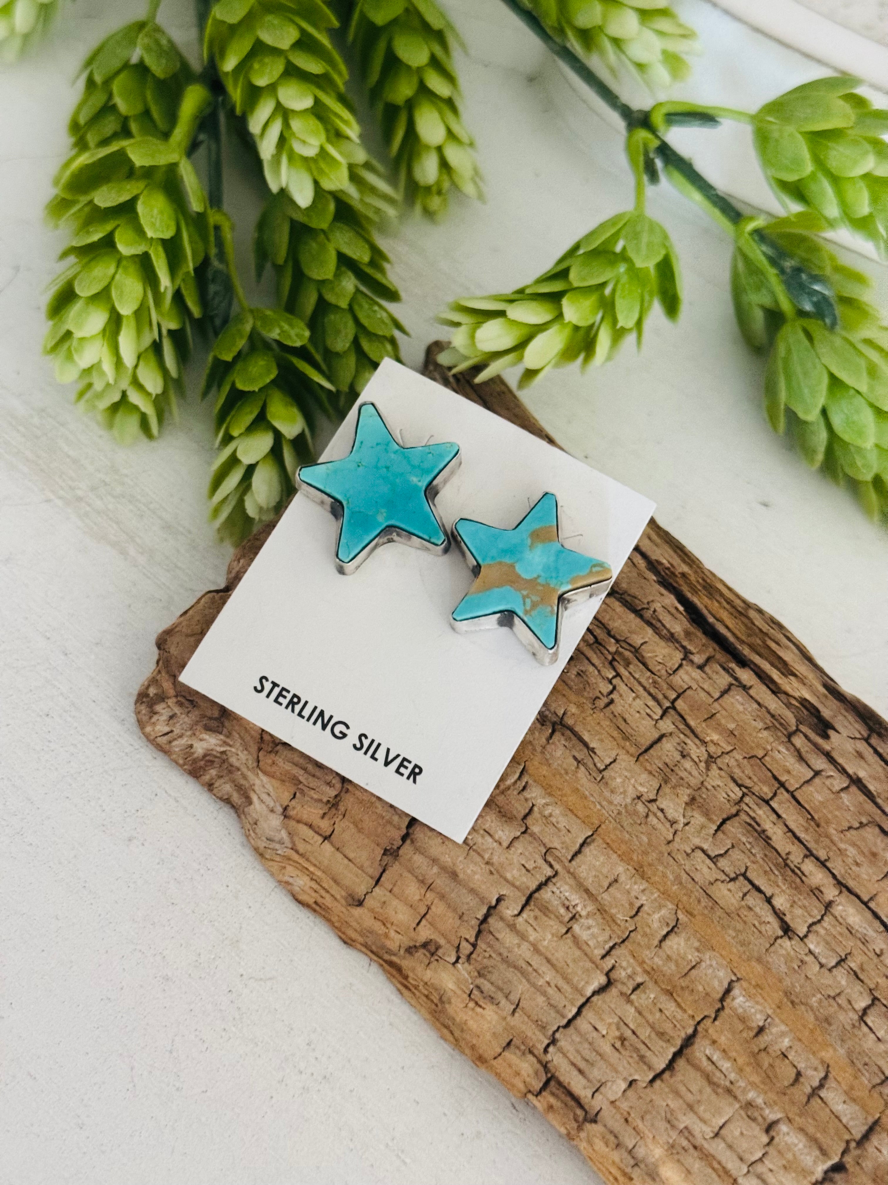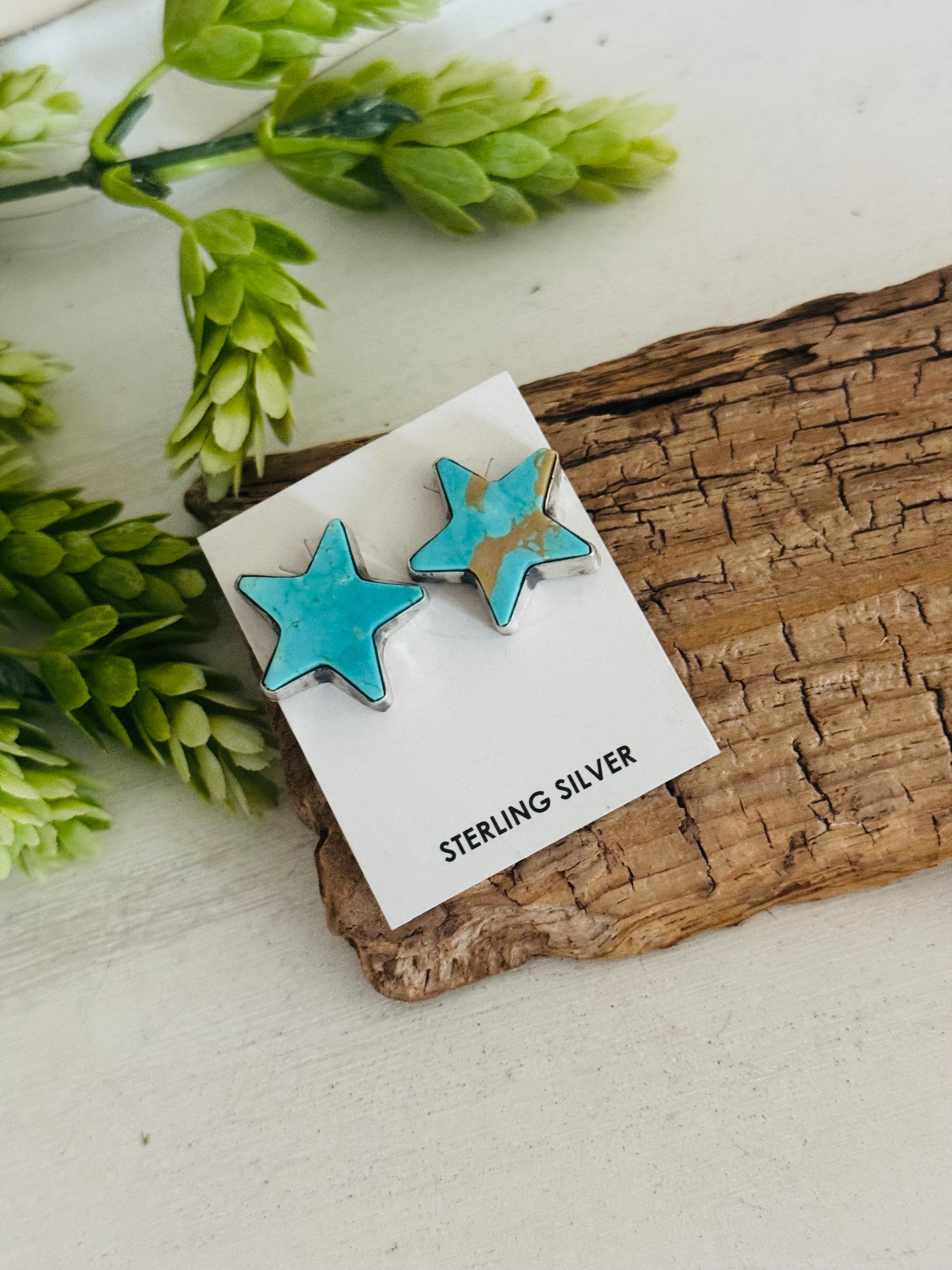 Johnny Dixon Kingman Turquoise & Sterling Silver Post Star Earrings