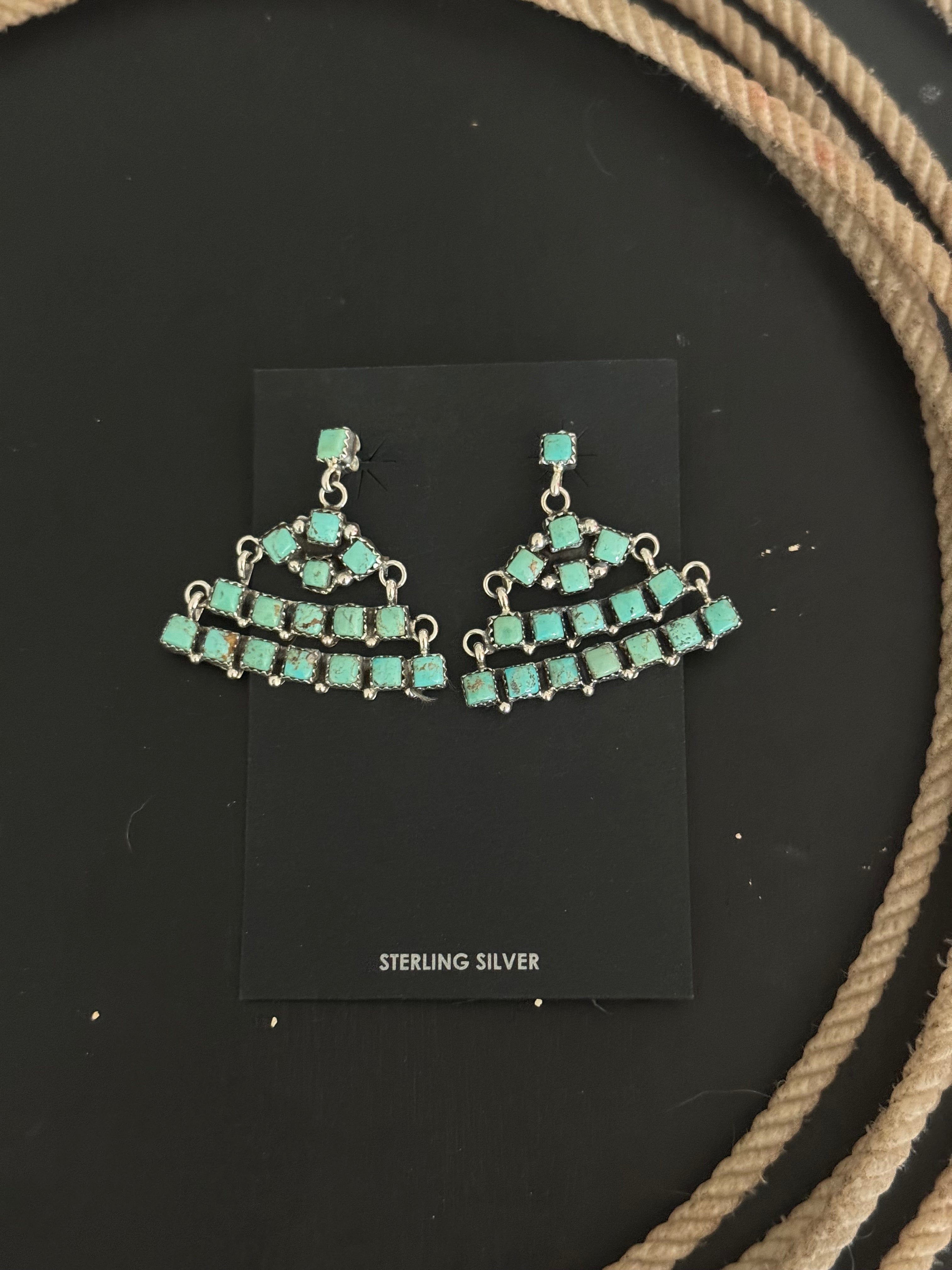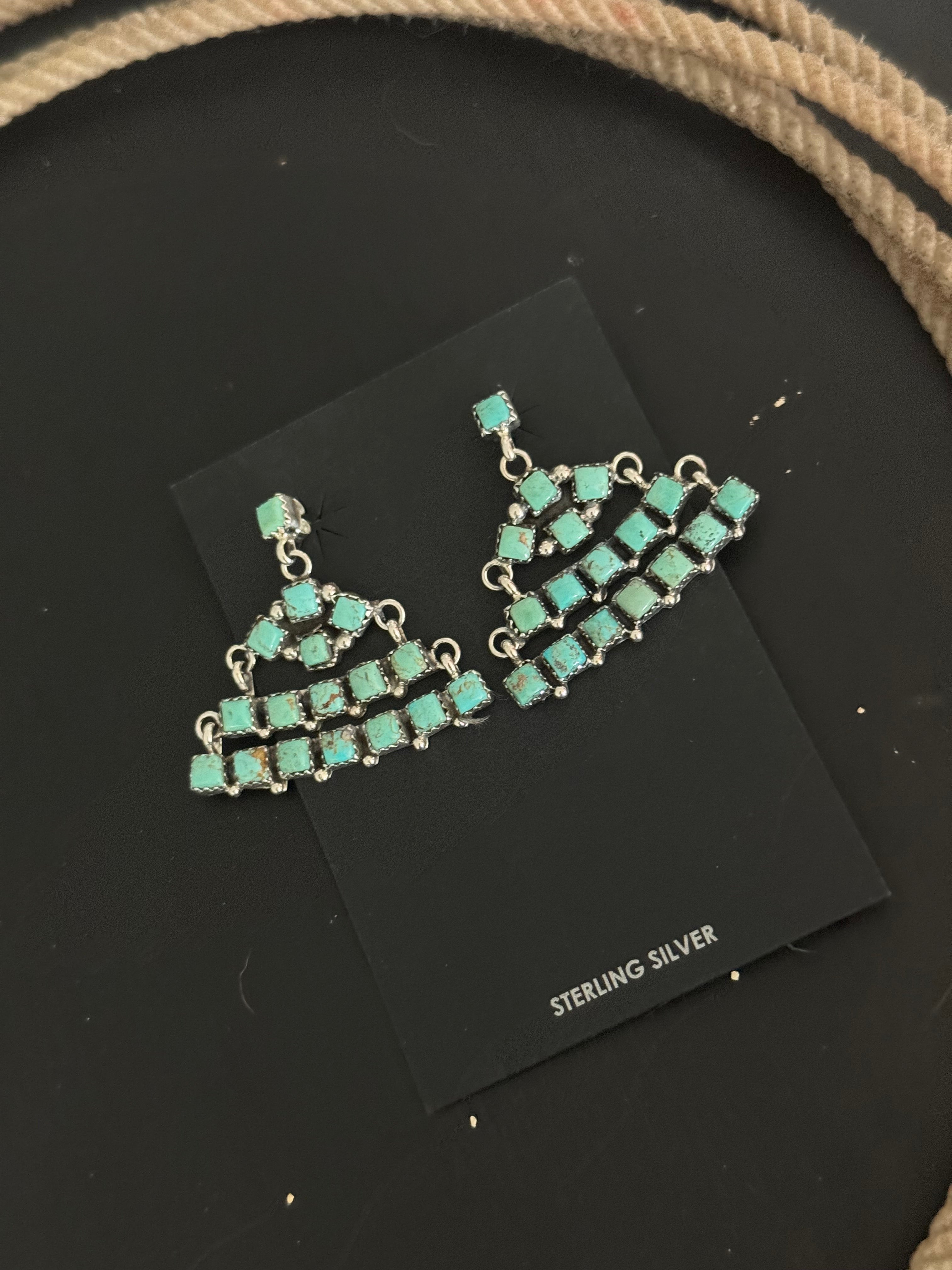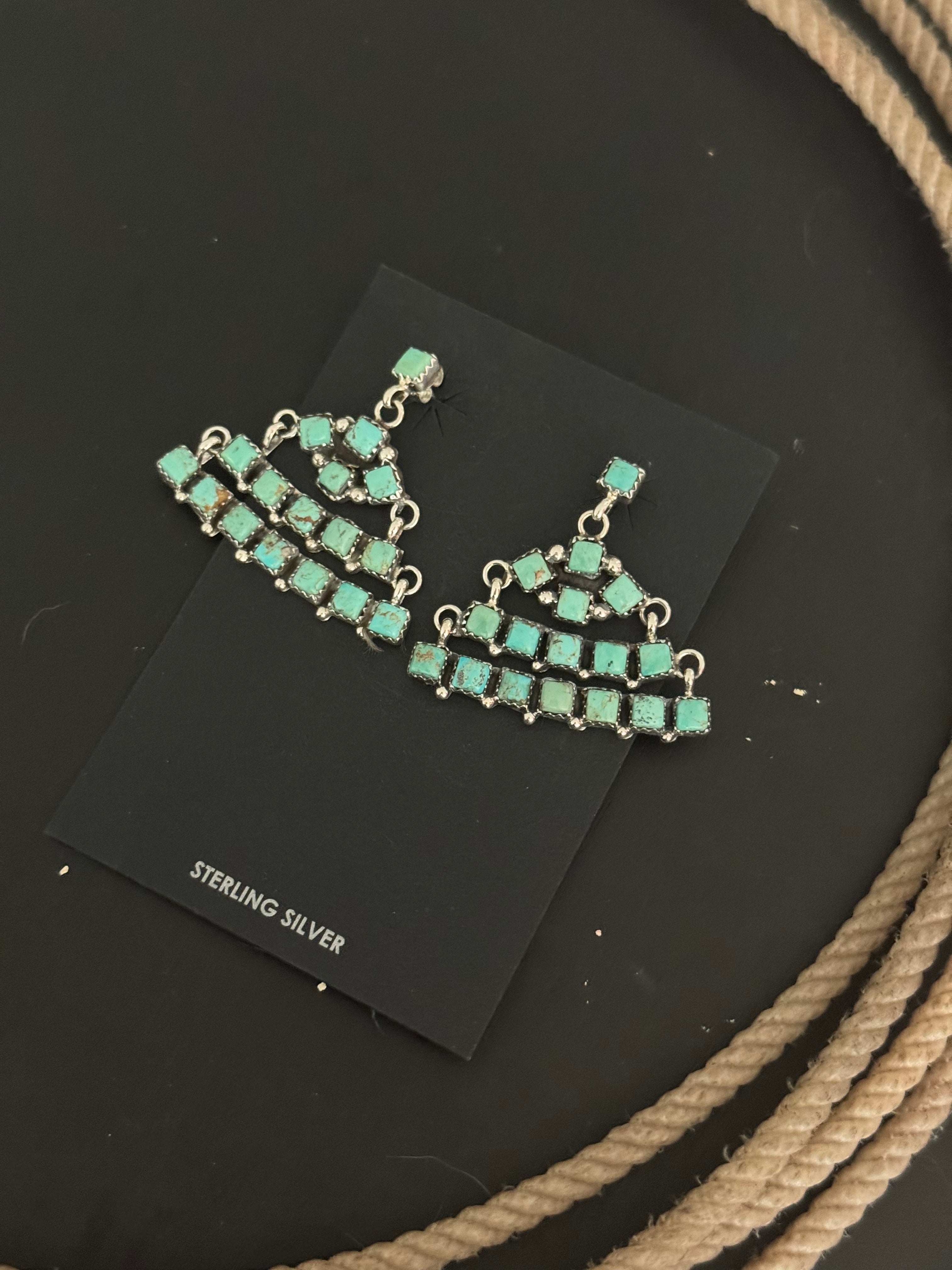 Julia Etsitty Kingman Turquoise & Sterling Silver Post Dangle Cluster Earrings