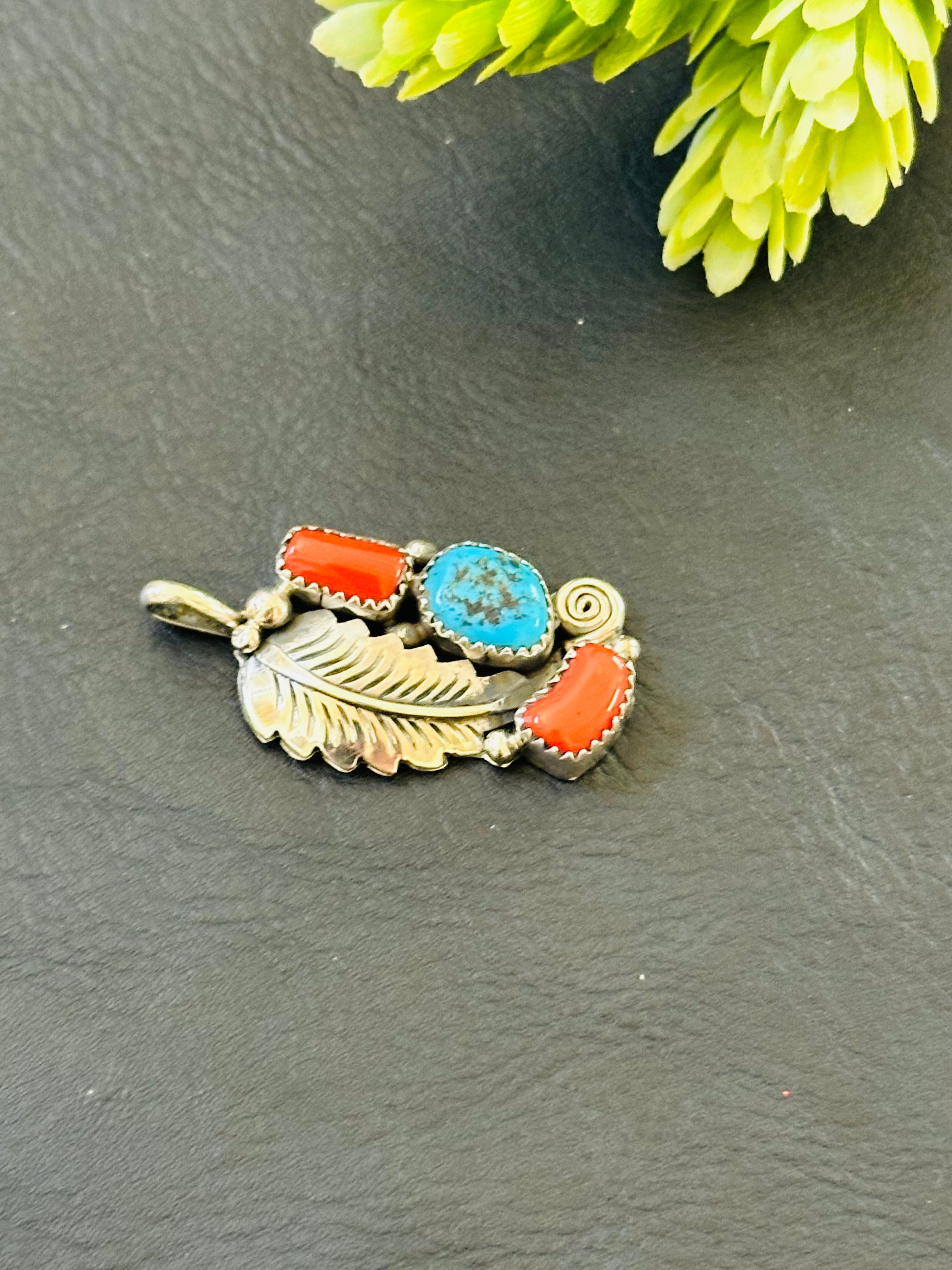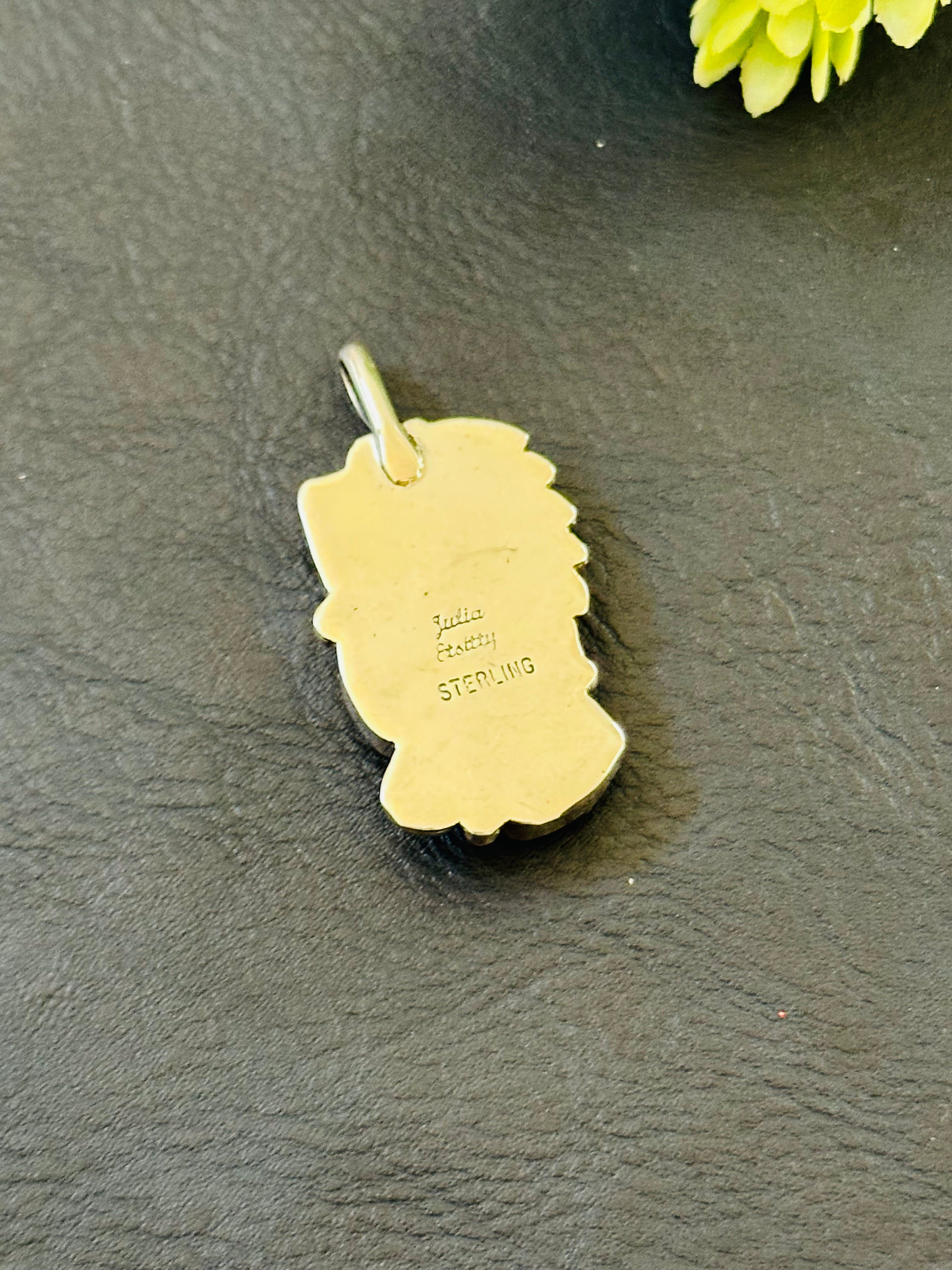 Beautiful pendant. Julia Etsitty Multi Stone & Sterling Silver Pendant. It measures 1 1/2 inches long and 3/4 of an inch wide. Pendant Only. Signed by the artist and stamped sterling silver. Stones will differ due to natural stones.