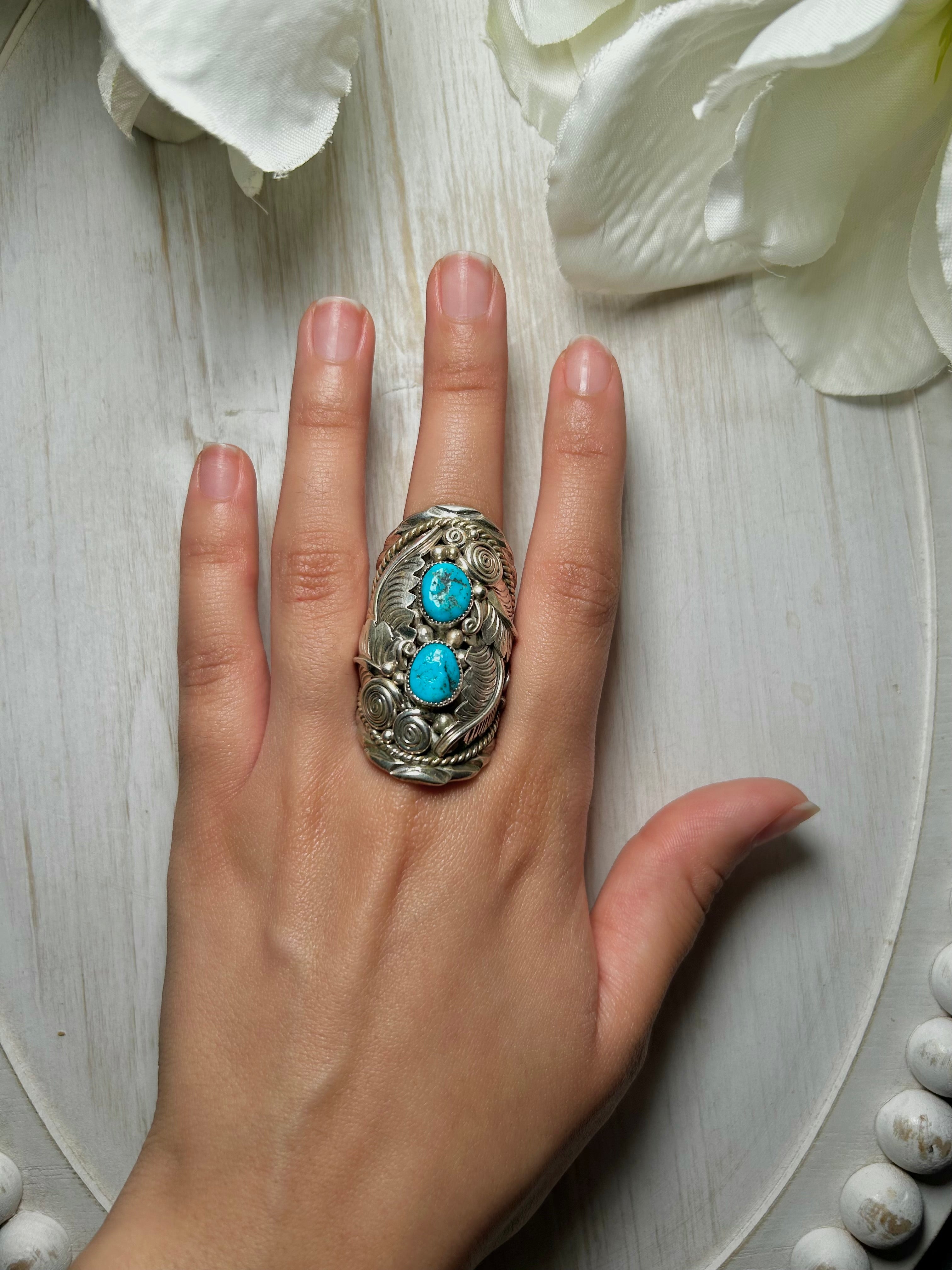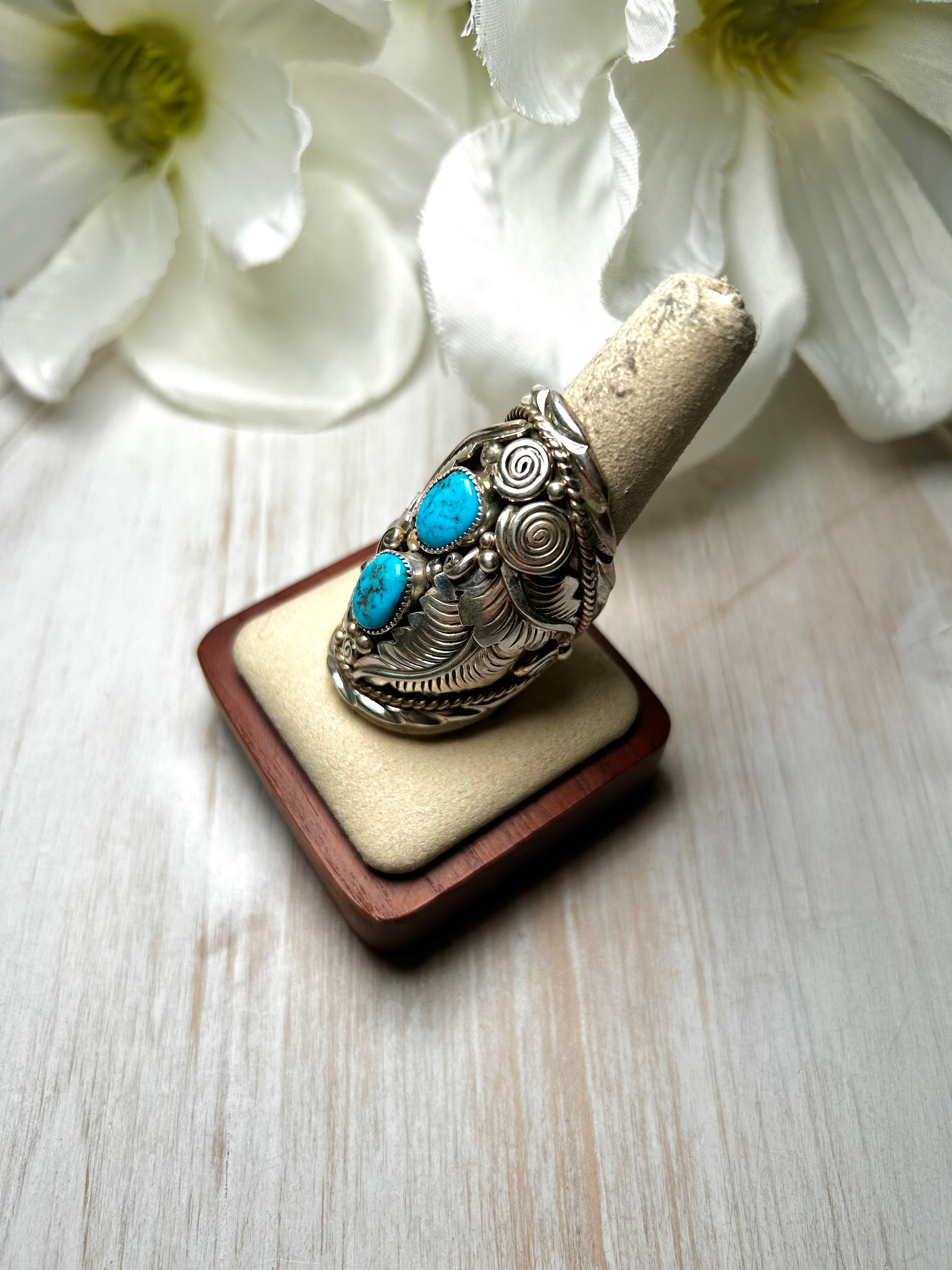 Julia Etsitty Kingman Turquoise & Sterling Silver Ring Size 10.25