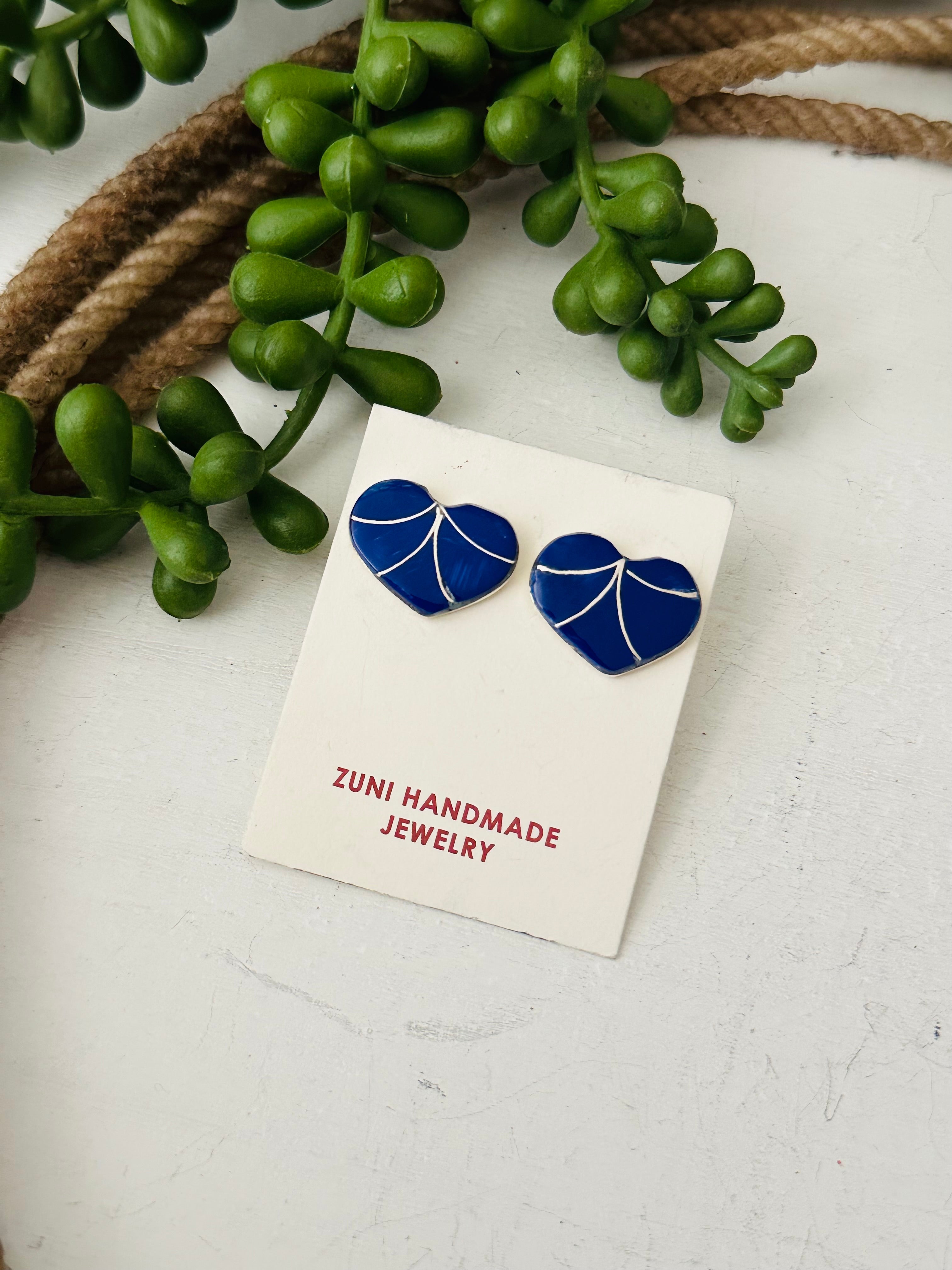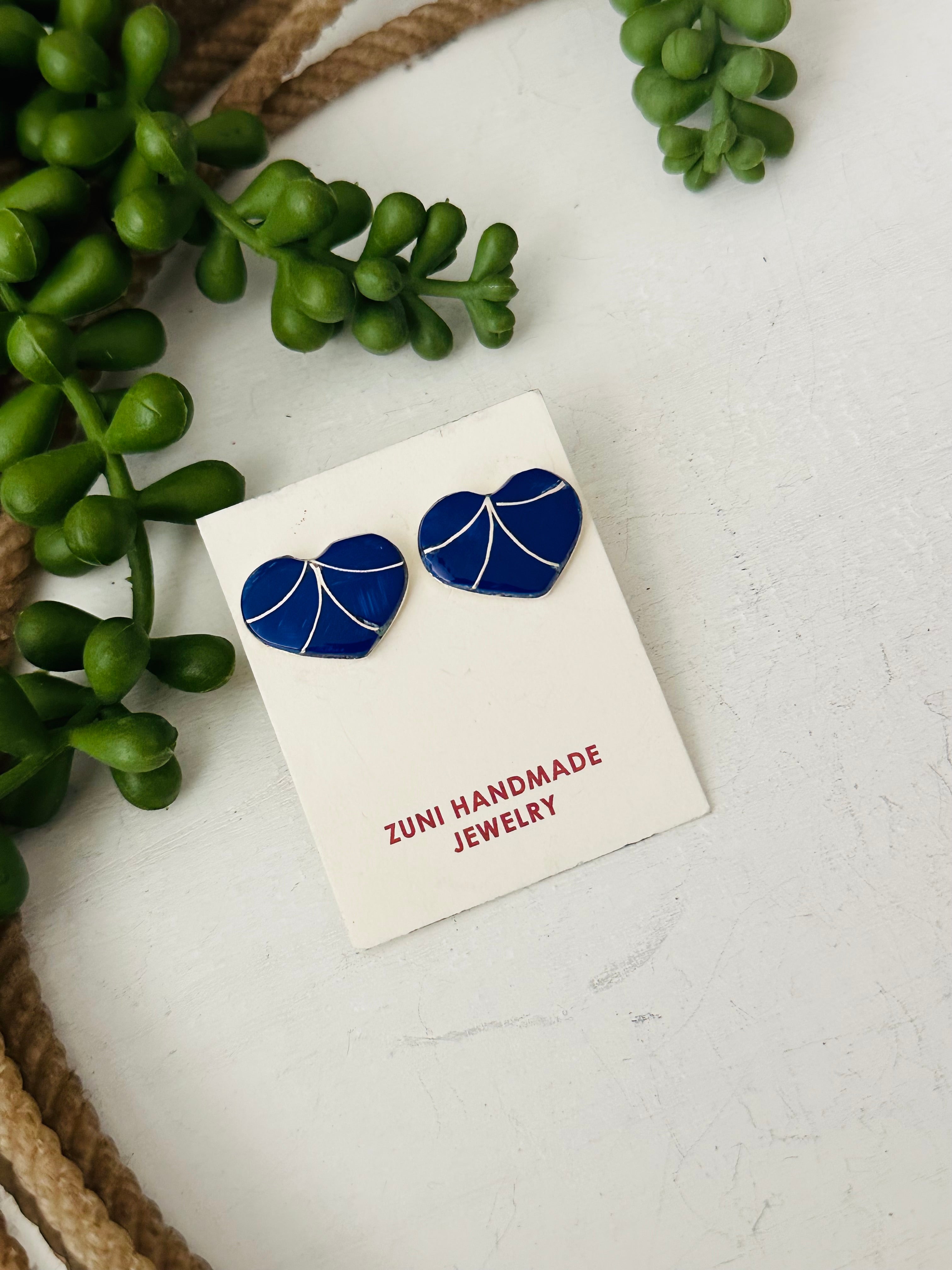 Karen Lalio Lapis & Sterling Silver Inlay Heart Post Earrings. They measure just over 1/2 of an inch long and 3/4 of an inch wide.
