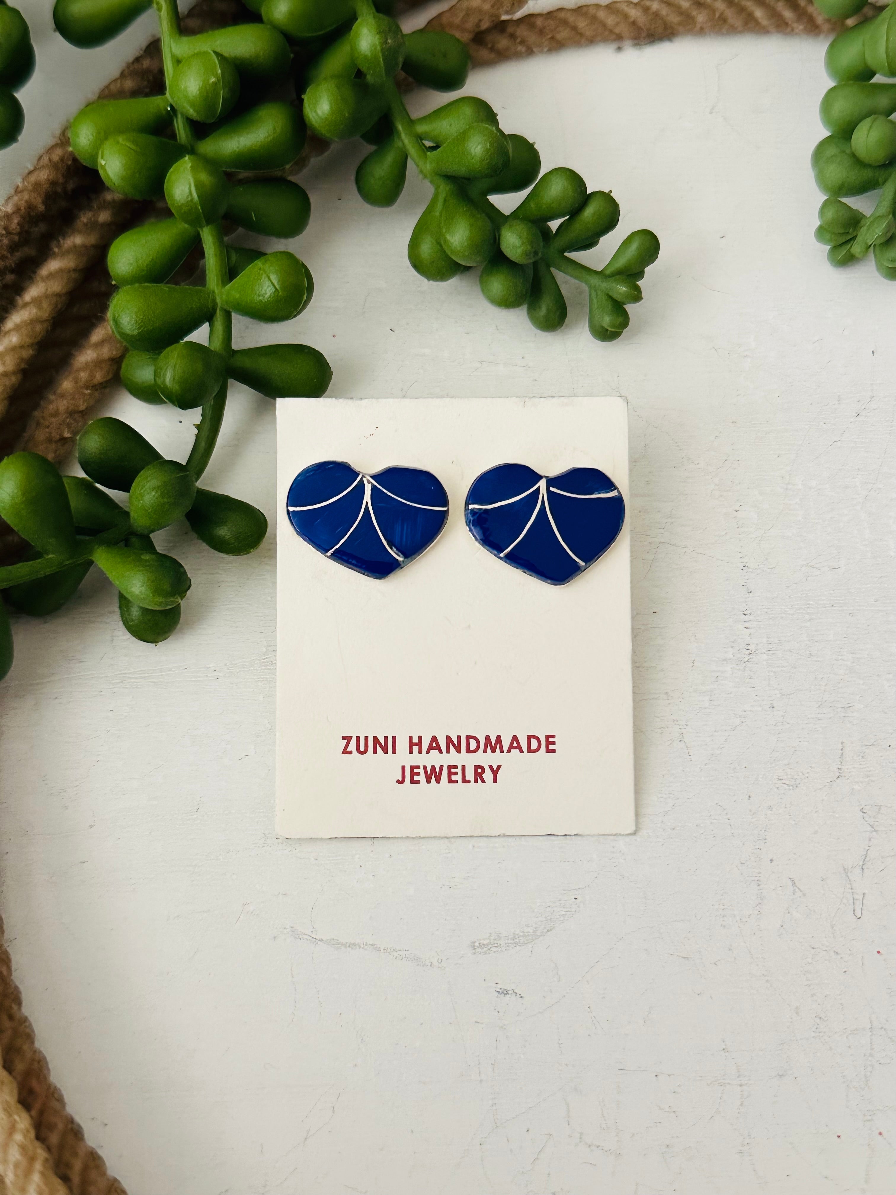 Karen Lalio Lapis & Sterling Silver Inlay Heart Post Earrings