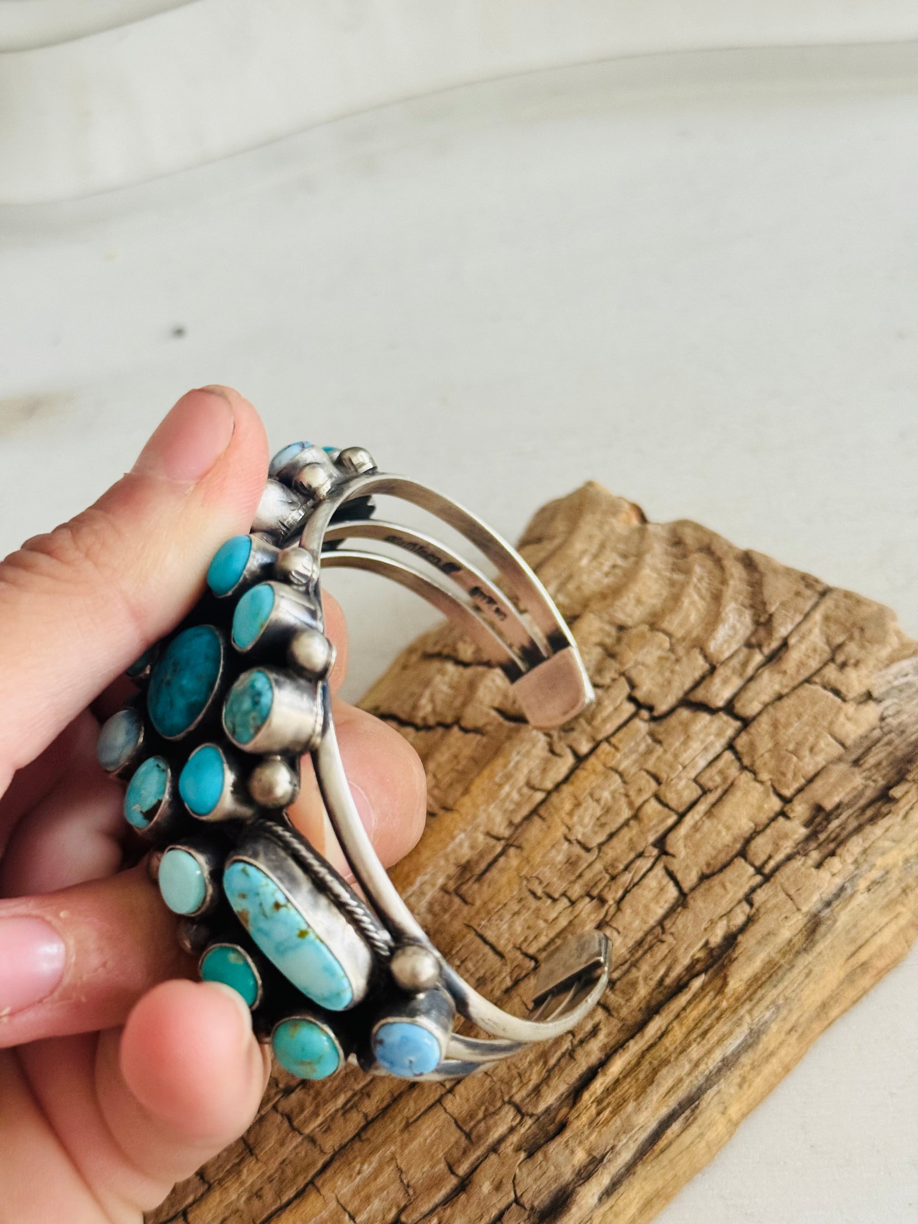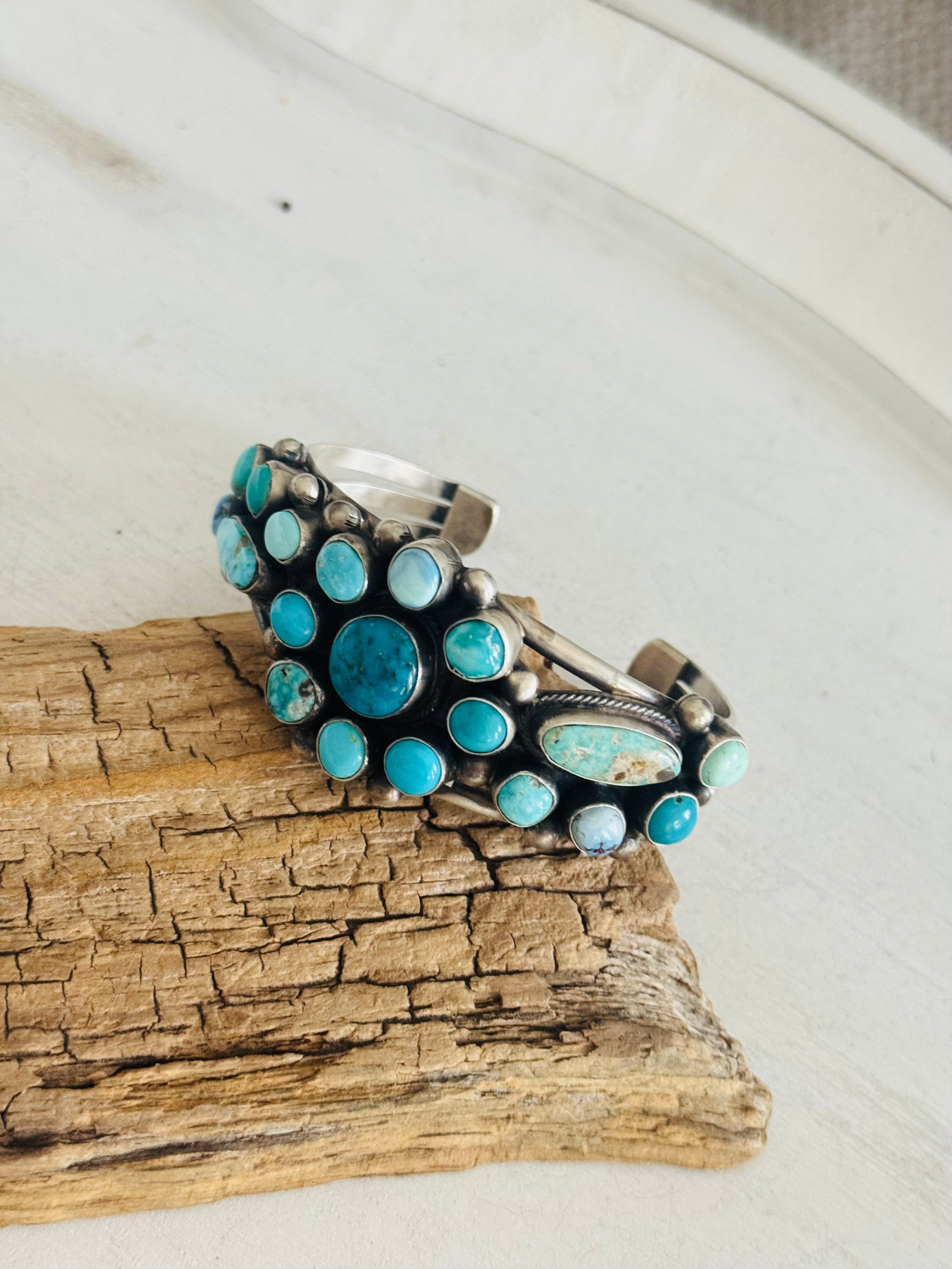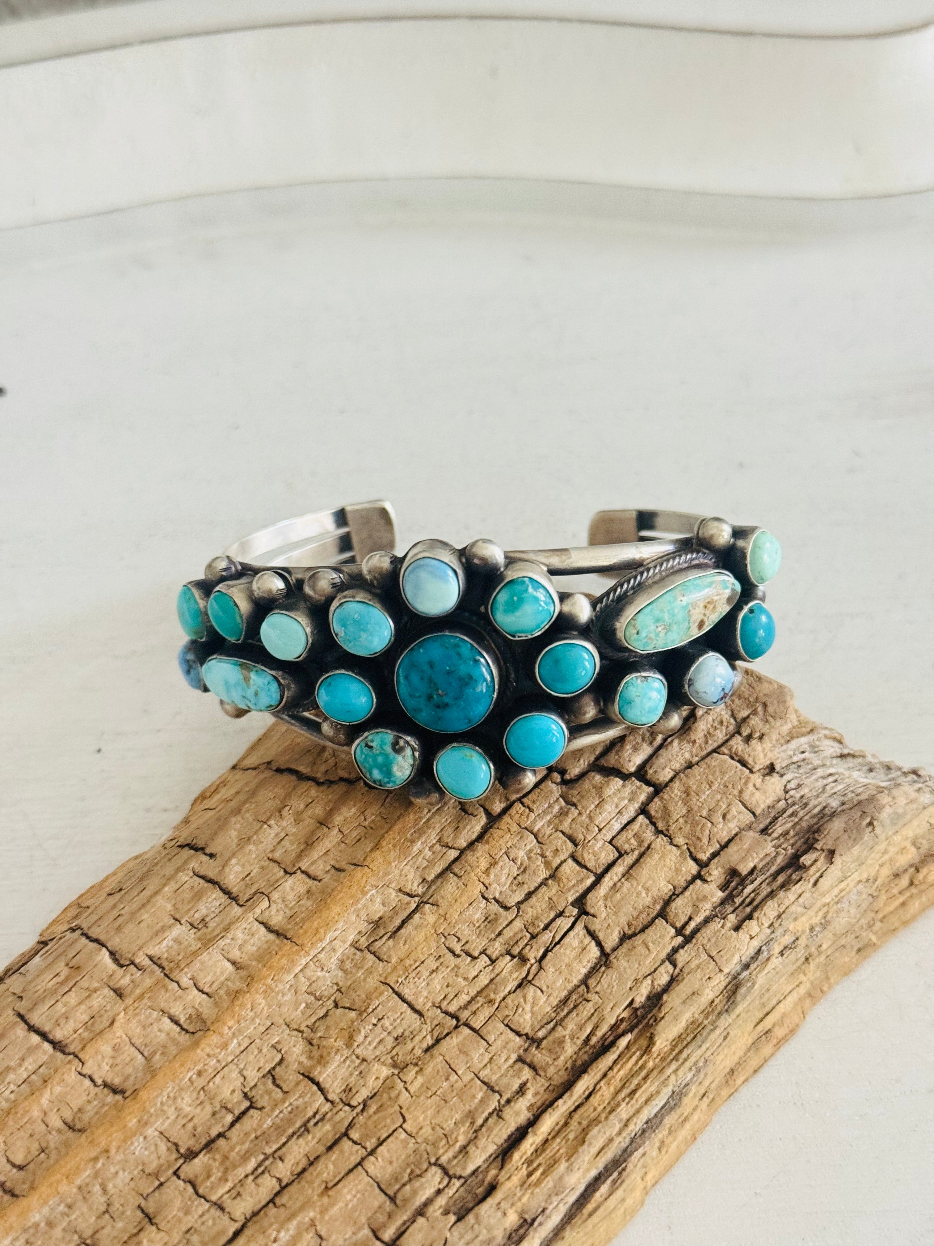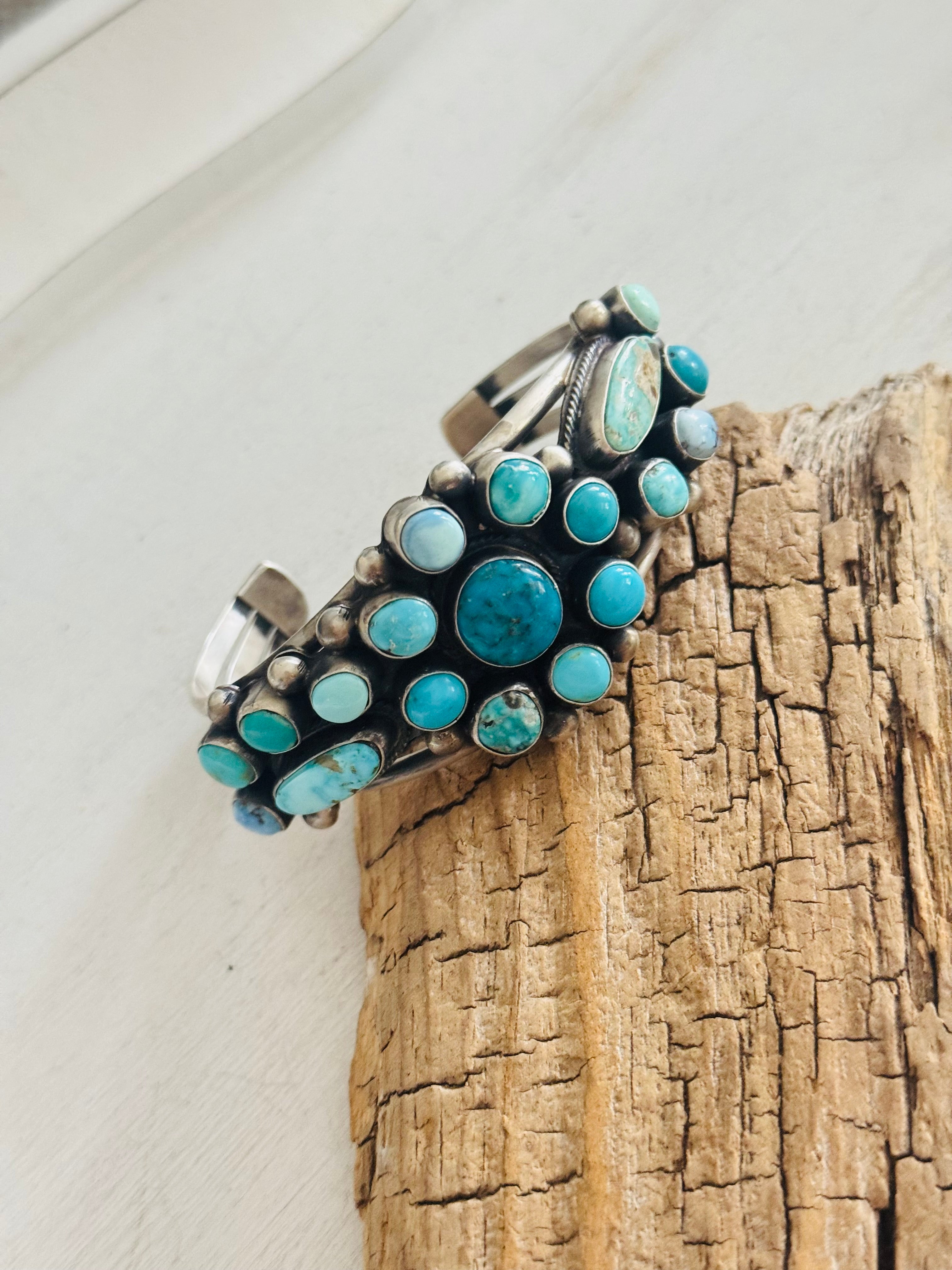 Kathleen Chavez Multi Turquoise & Sterling Silver Cluster Cuff Bracelet