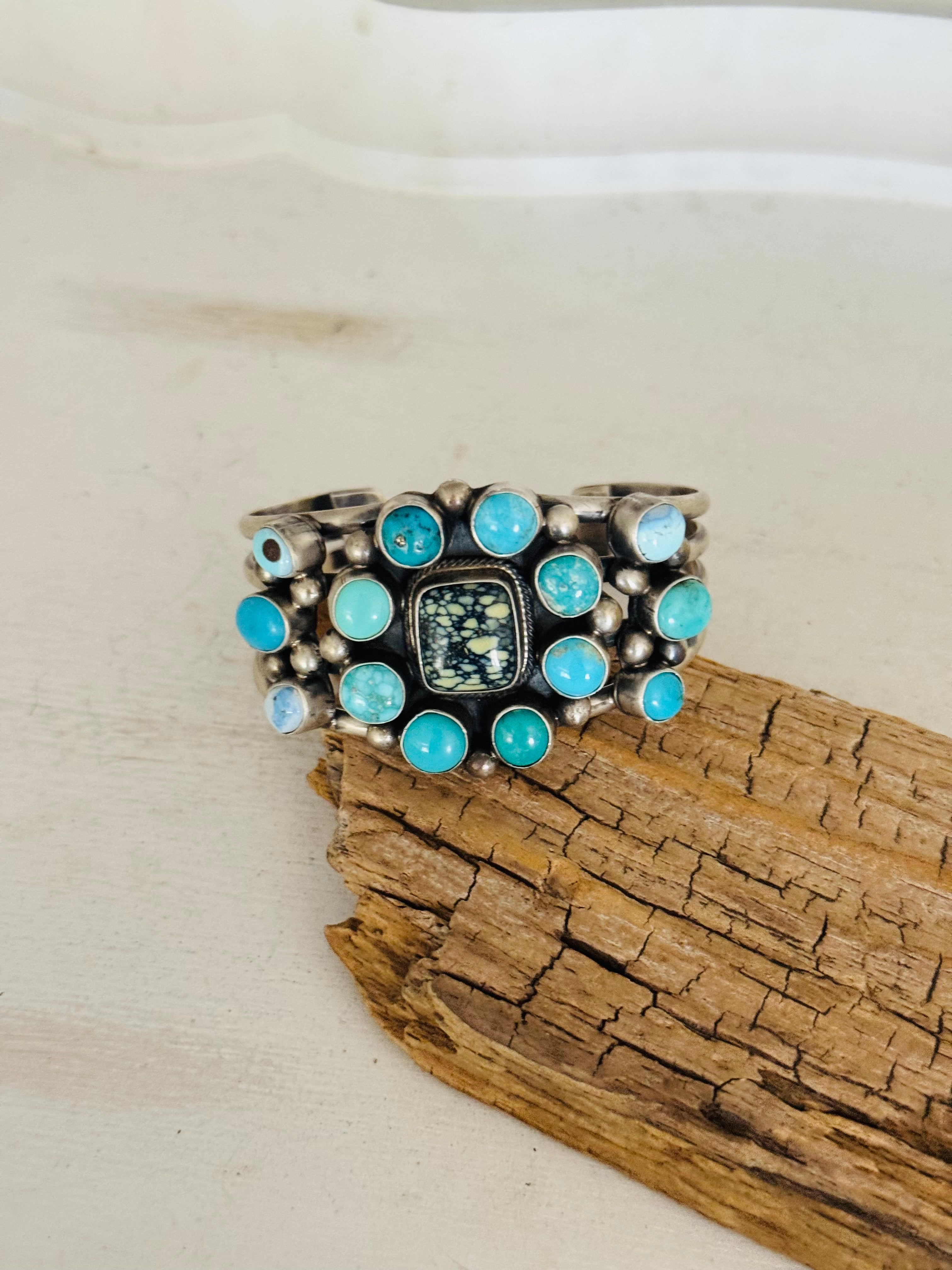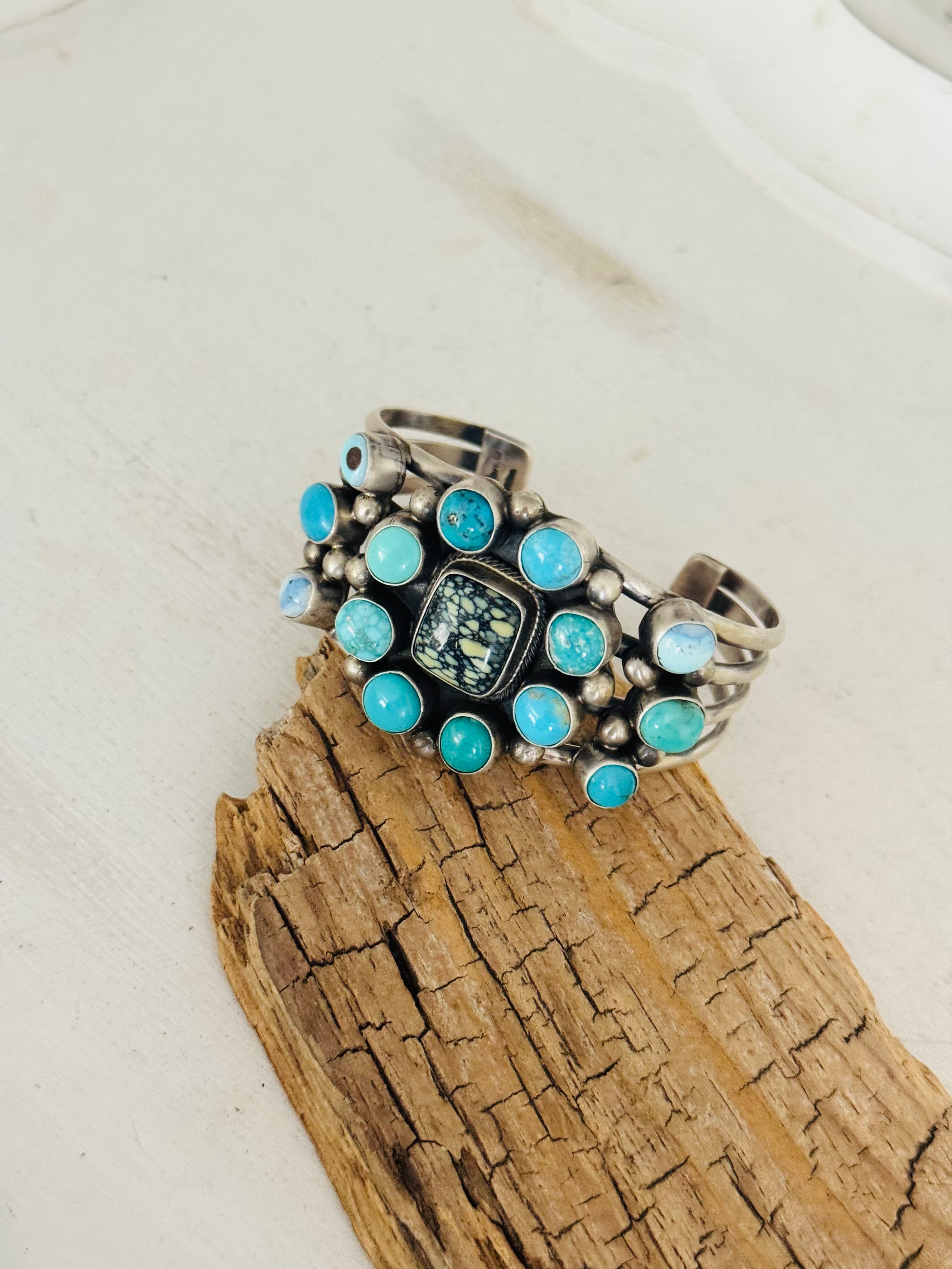Kathleen Chavez Multi Stone & Sterling Silver Cluster Cuff Bracelet