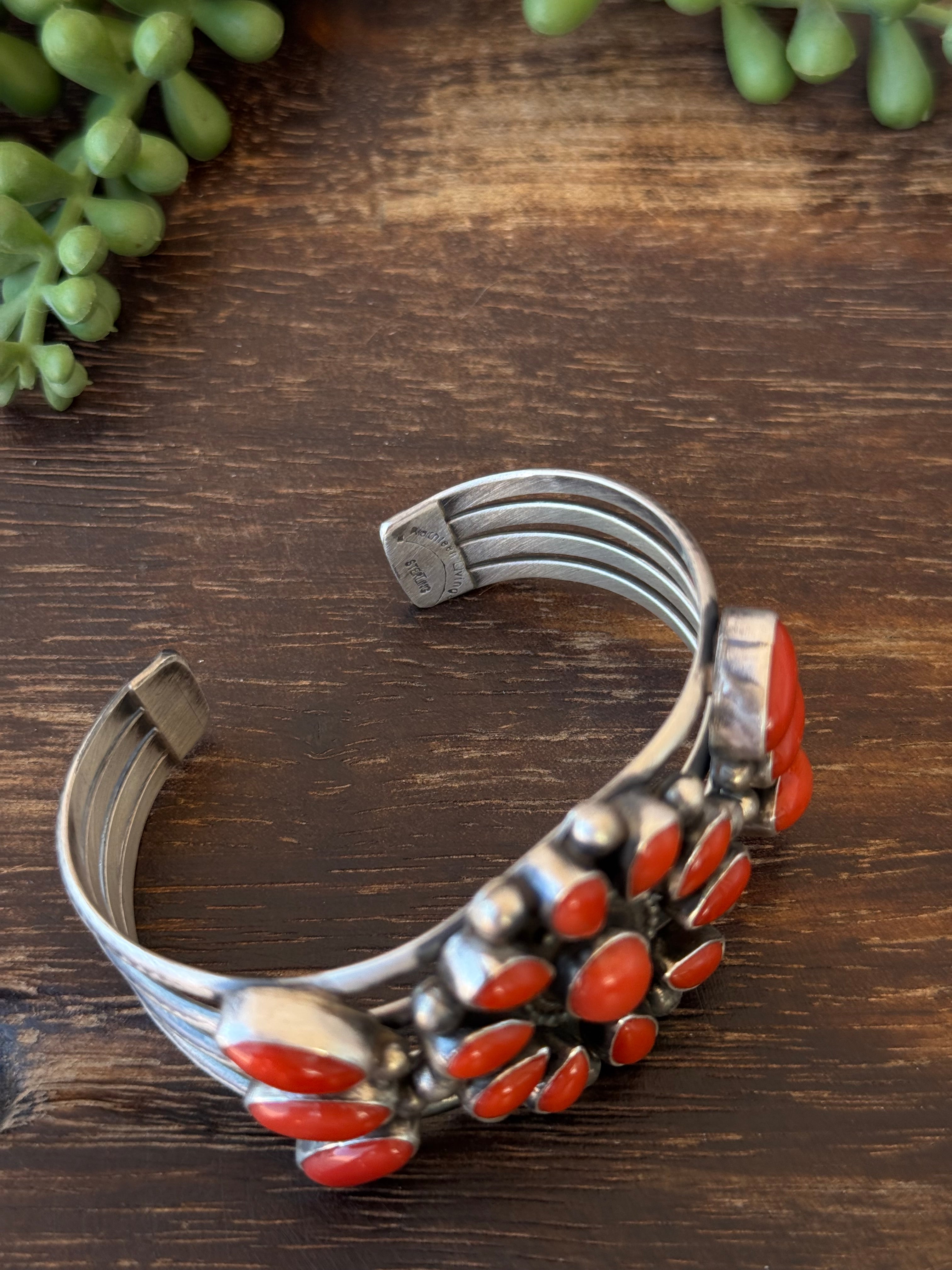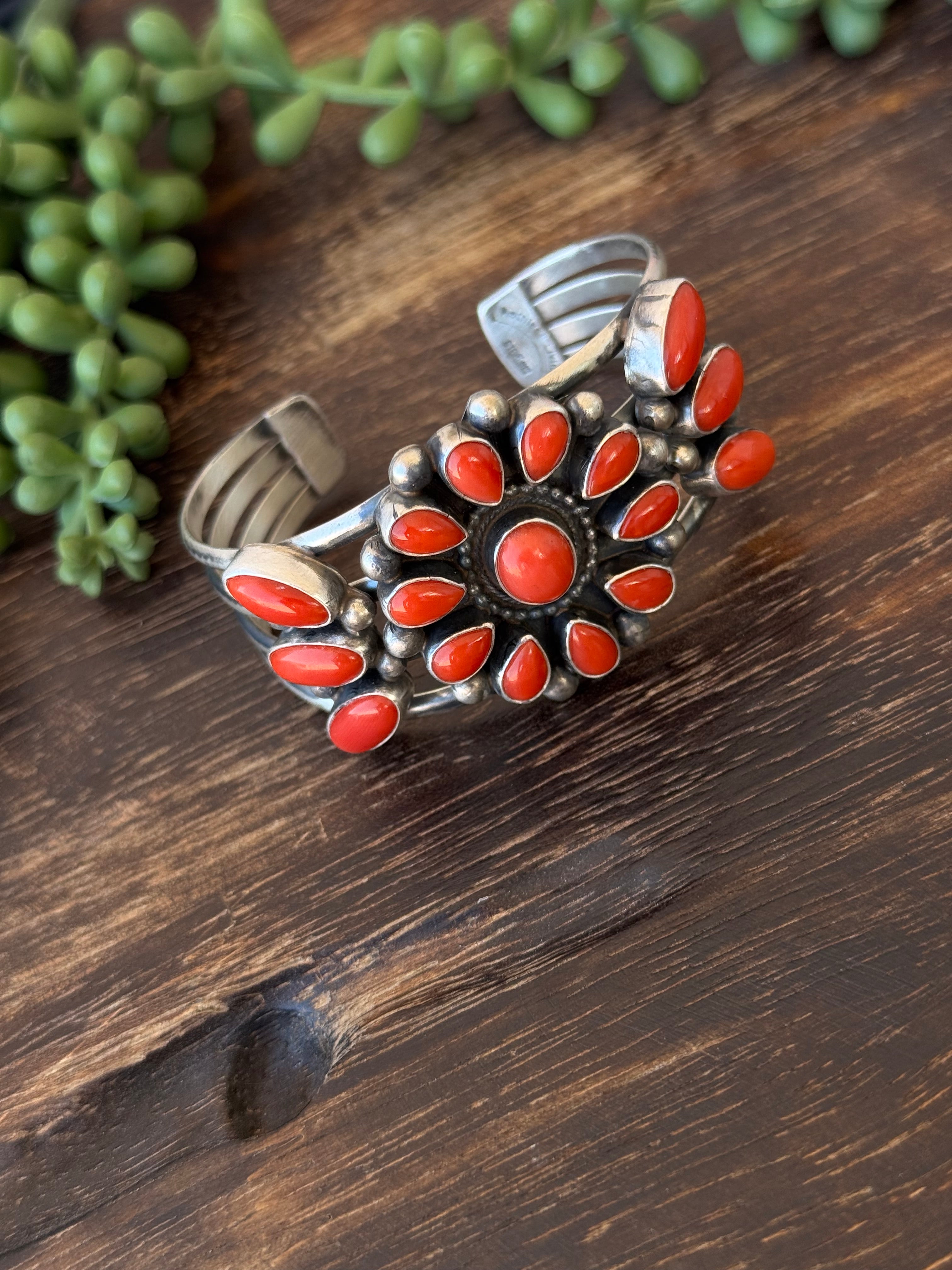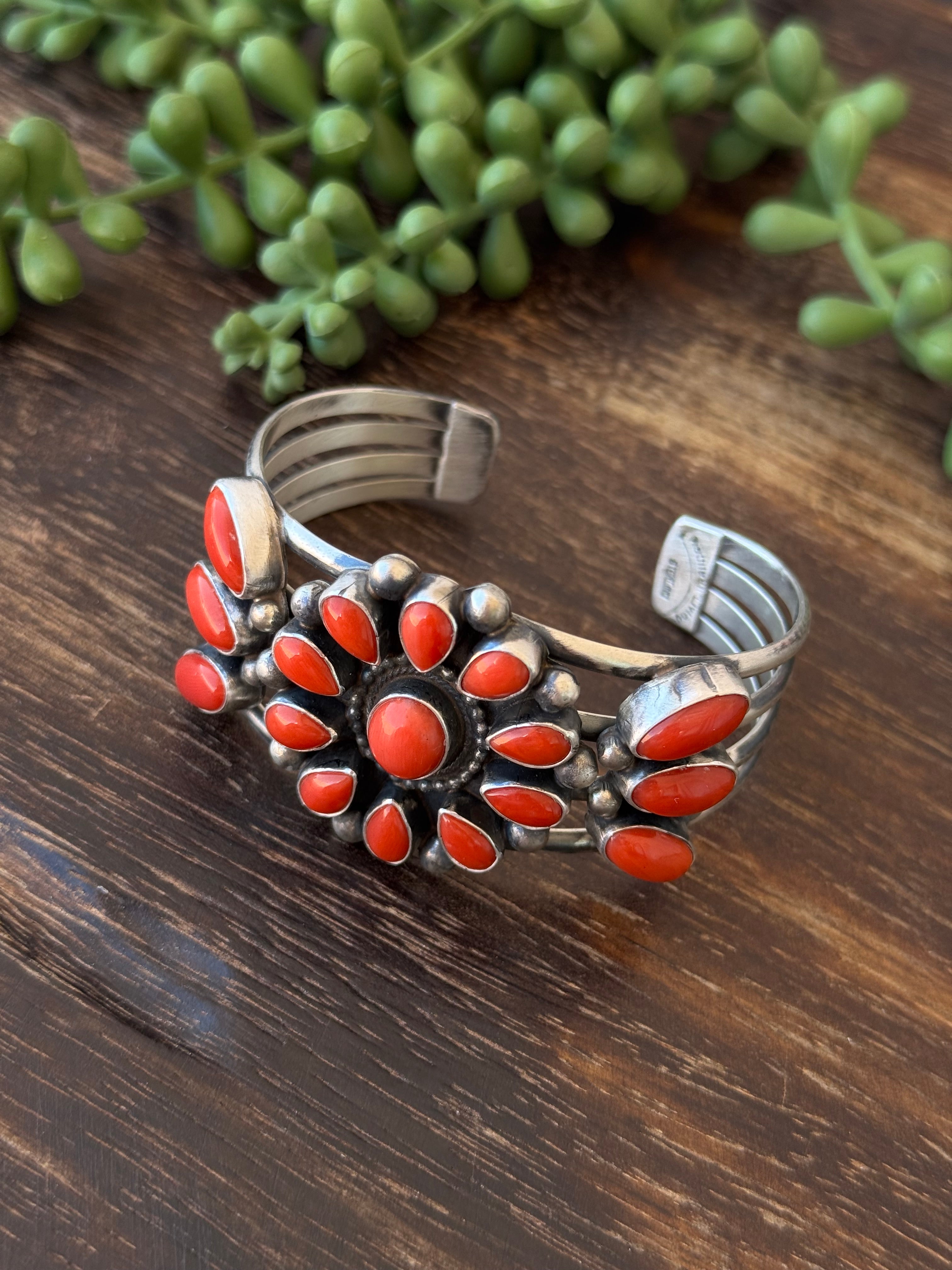 Kathleen Livingston Natural Coral & Sterling Silver Cluster Cuff Bracelet