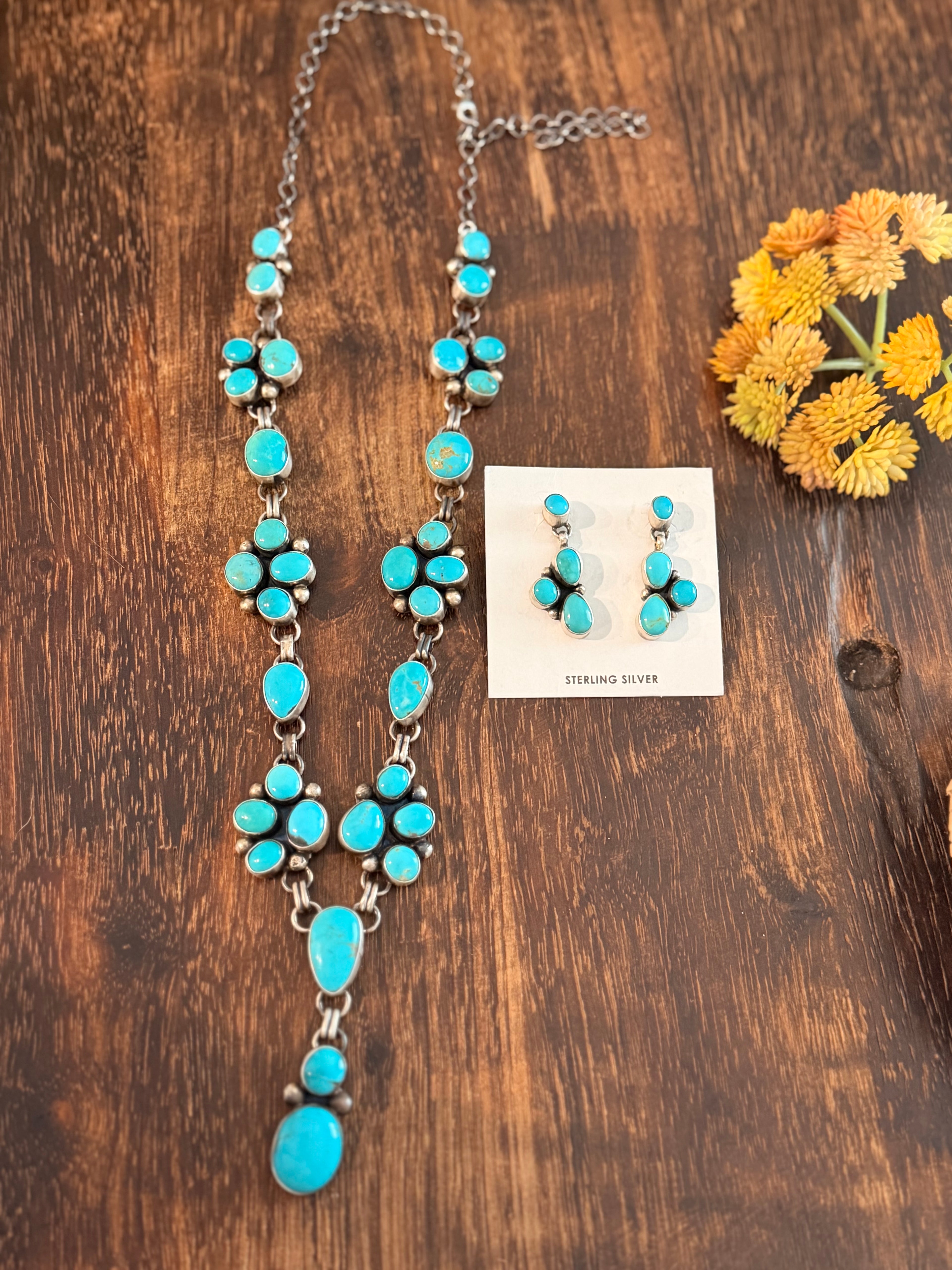 Kathleen Livingston Kingman Turquoise & Sterling Silver Lariat Necklace Set