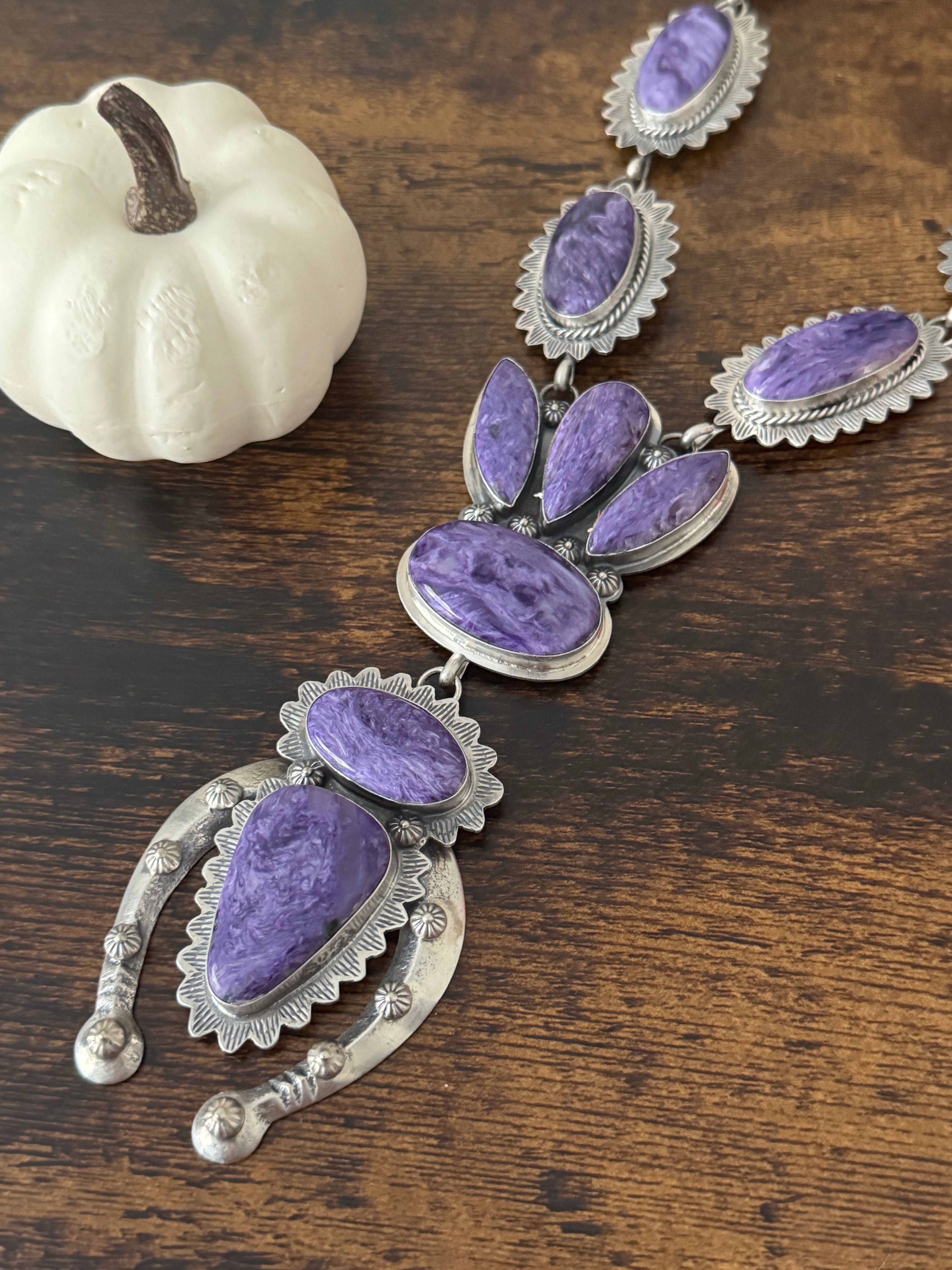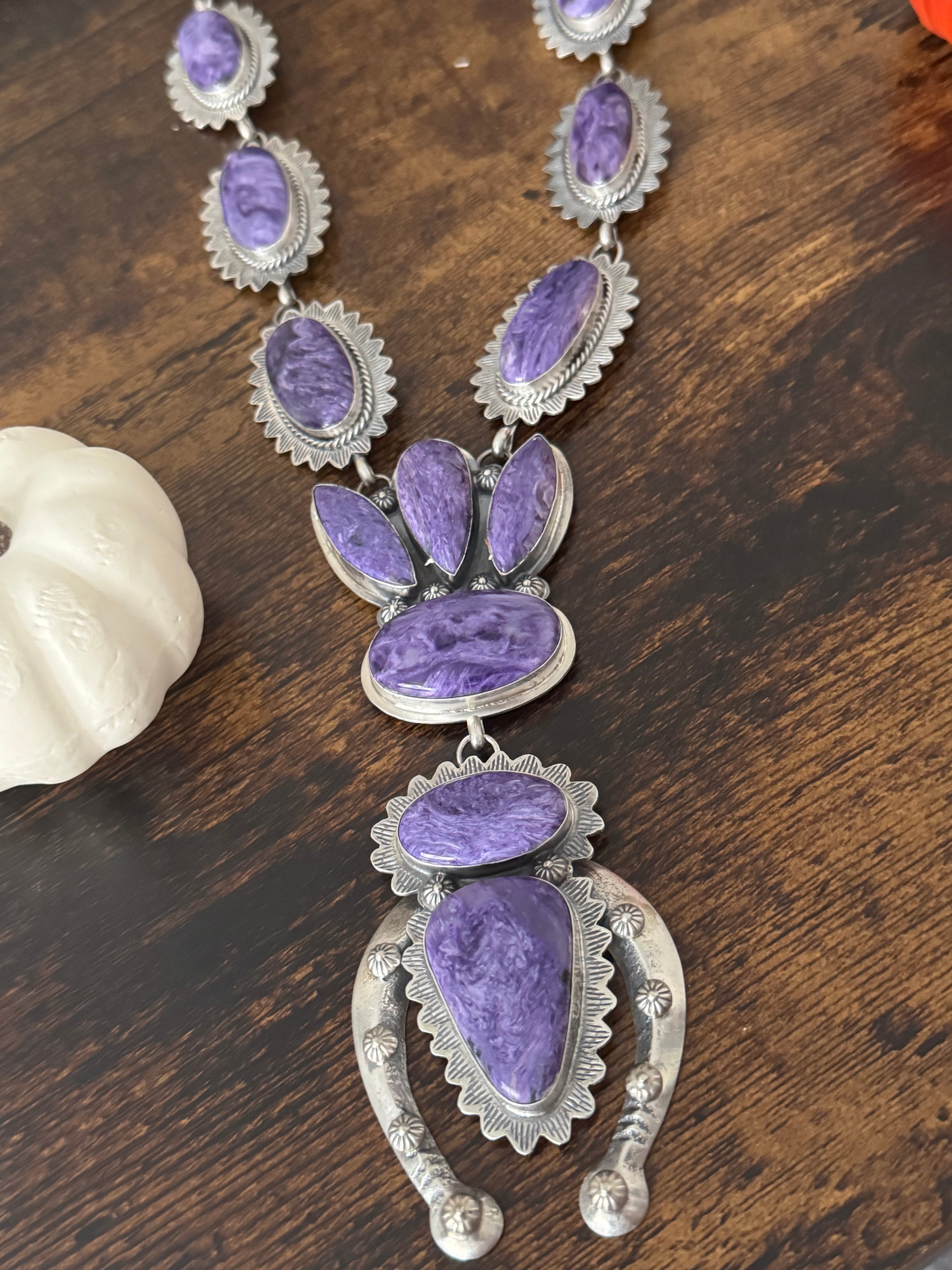 Kevin Begay Charoite & Sterling Silver Naja Necklace