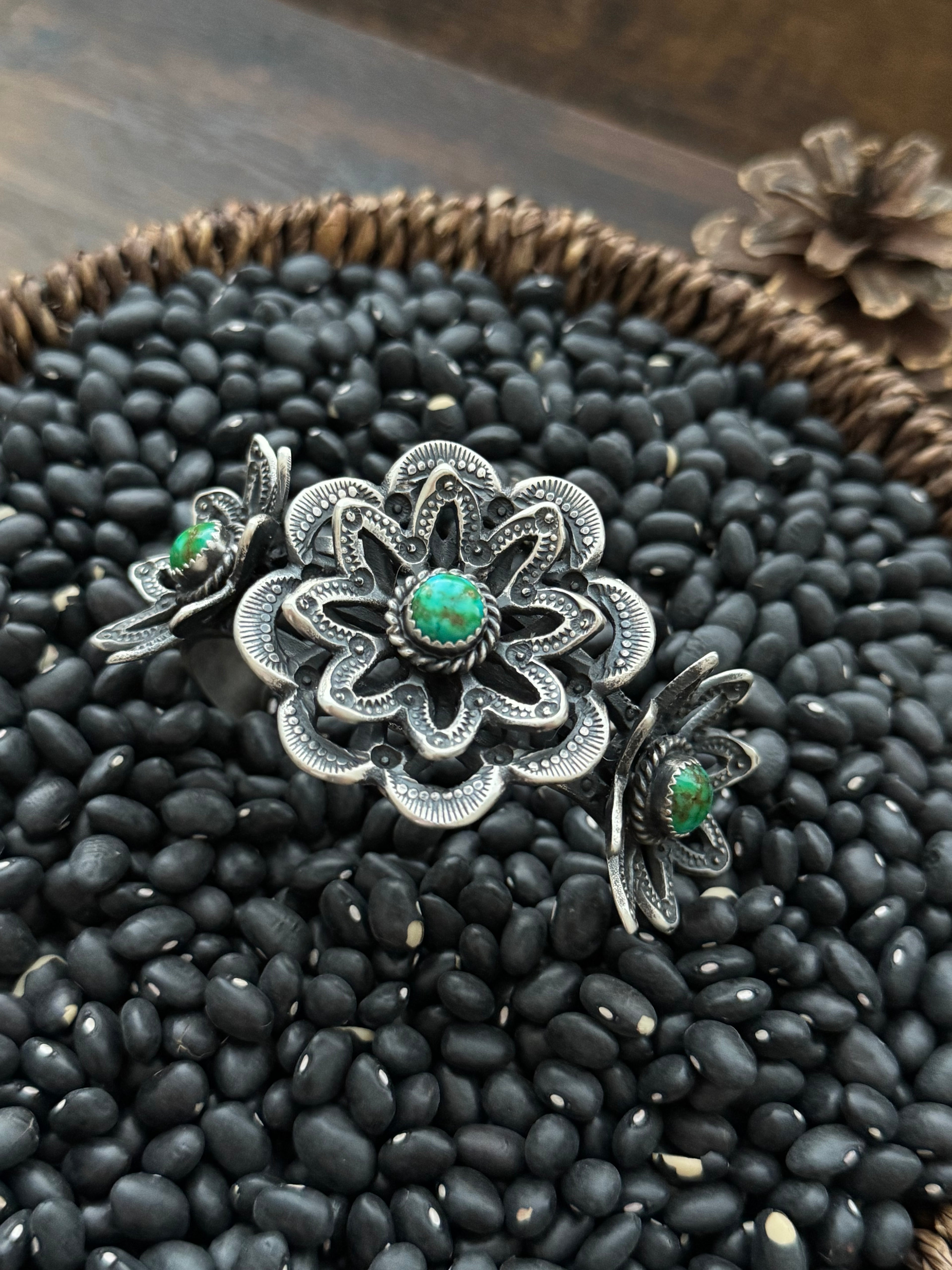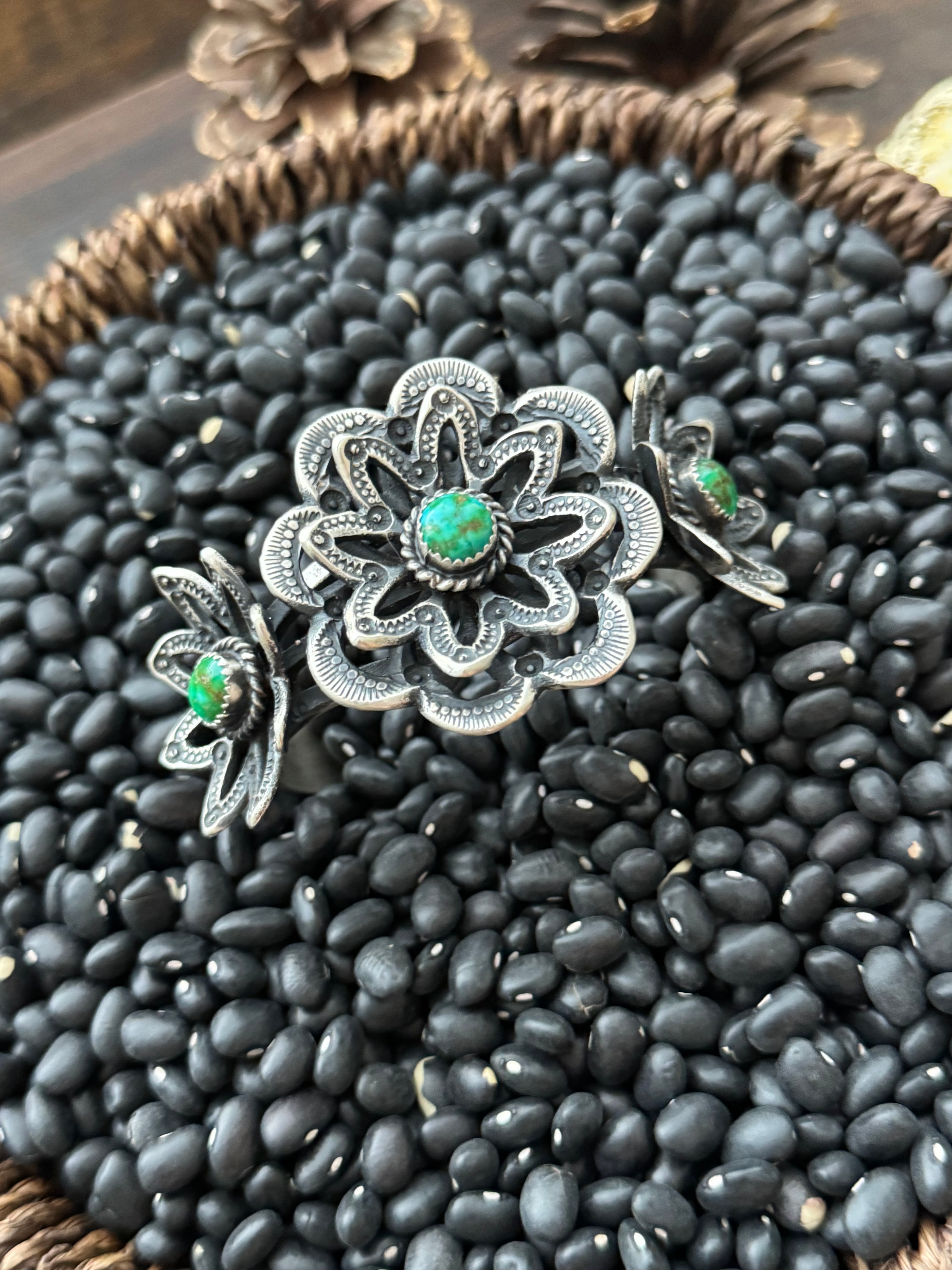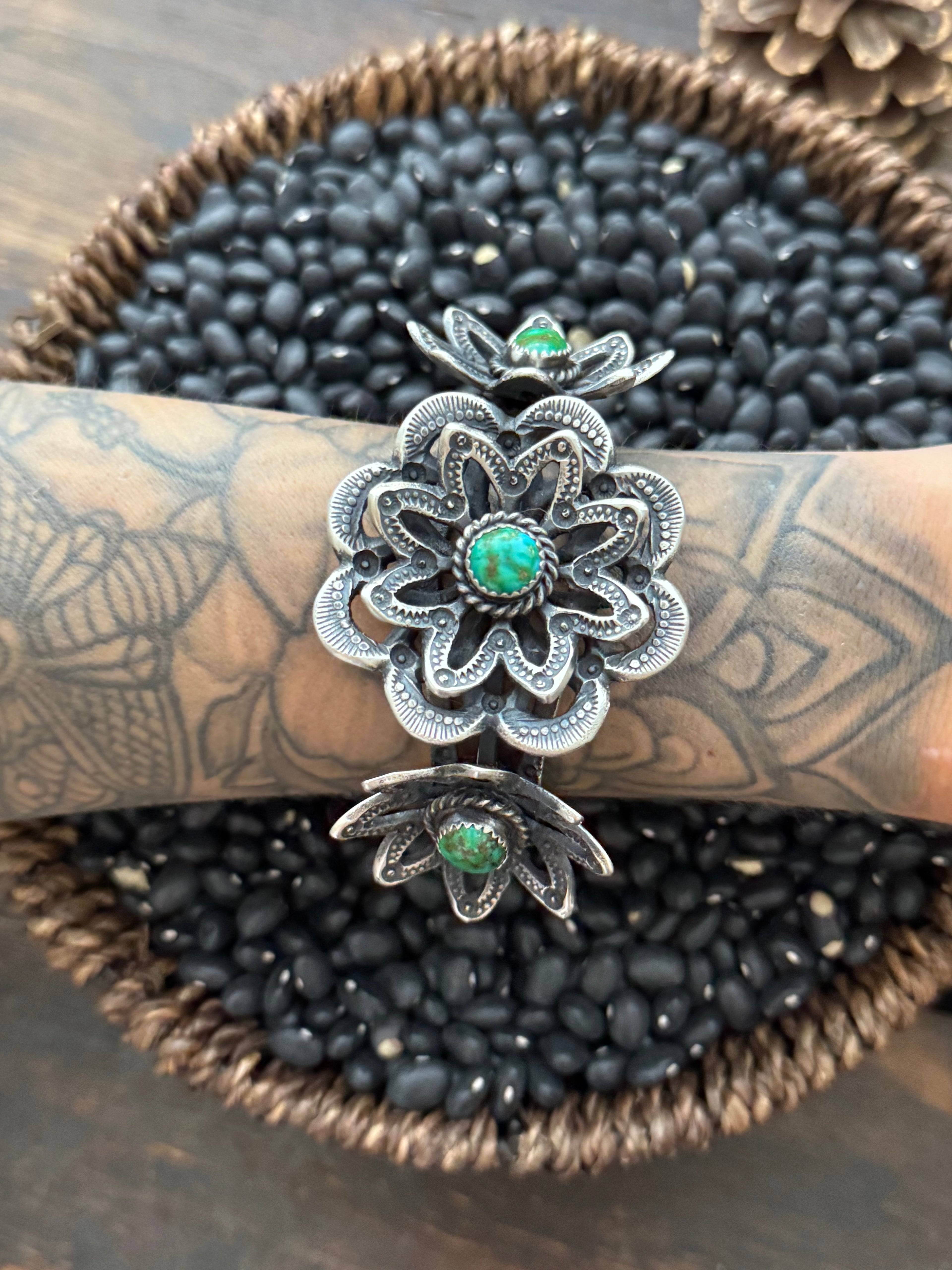 Kindale Billah Sonoran Gold Turquoise & Sterling Silver Flower Cuff Bracelet