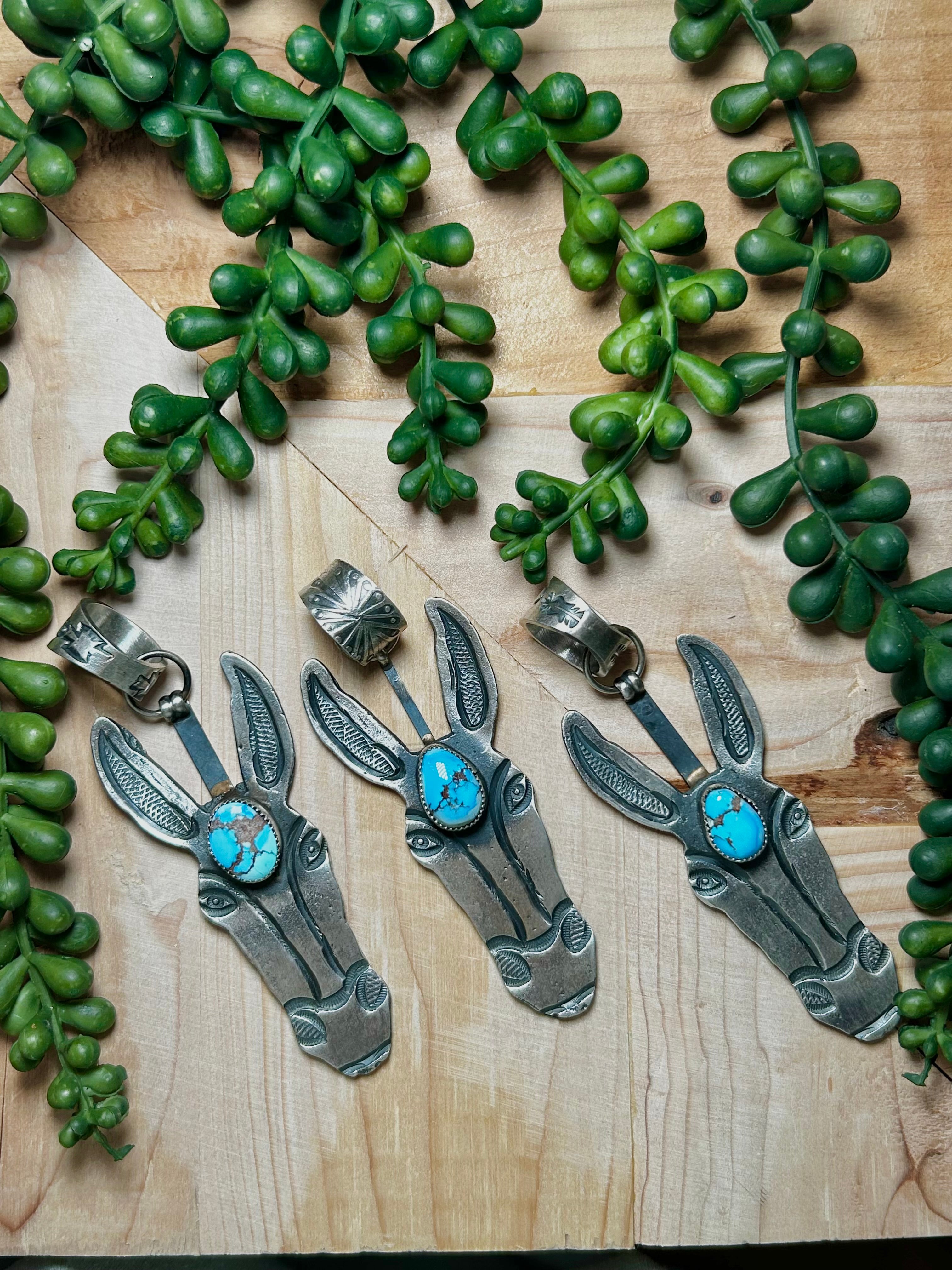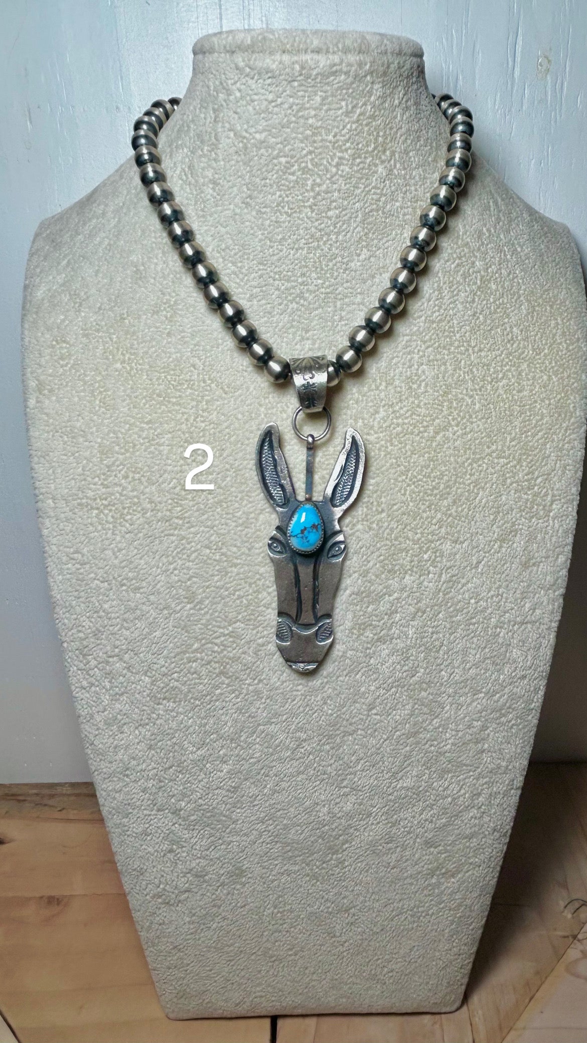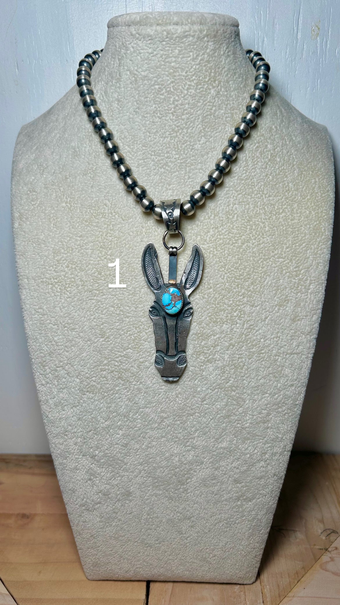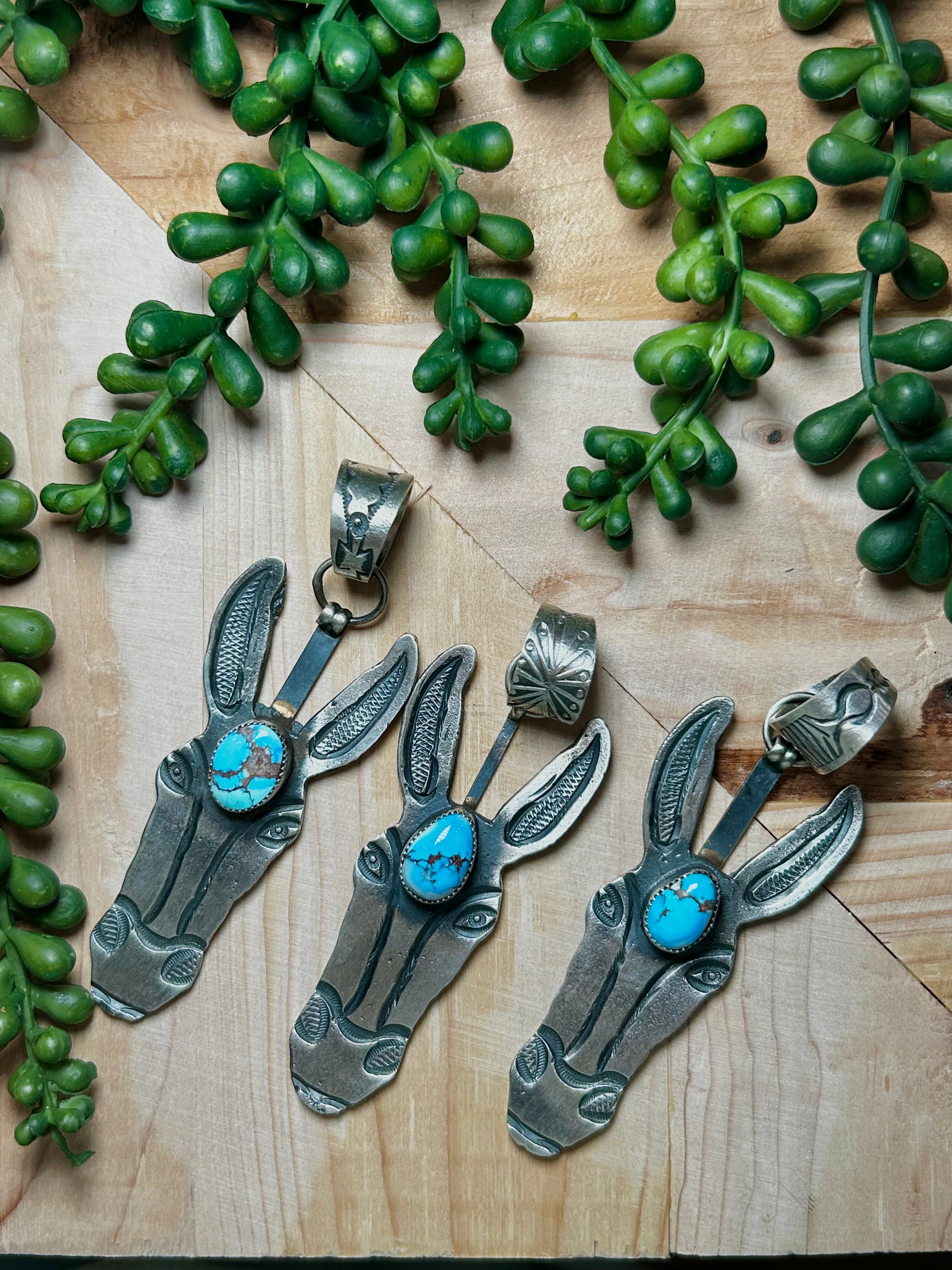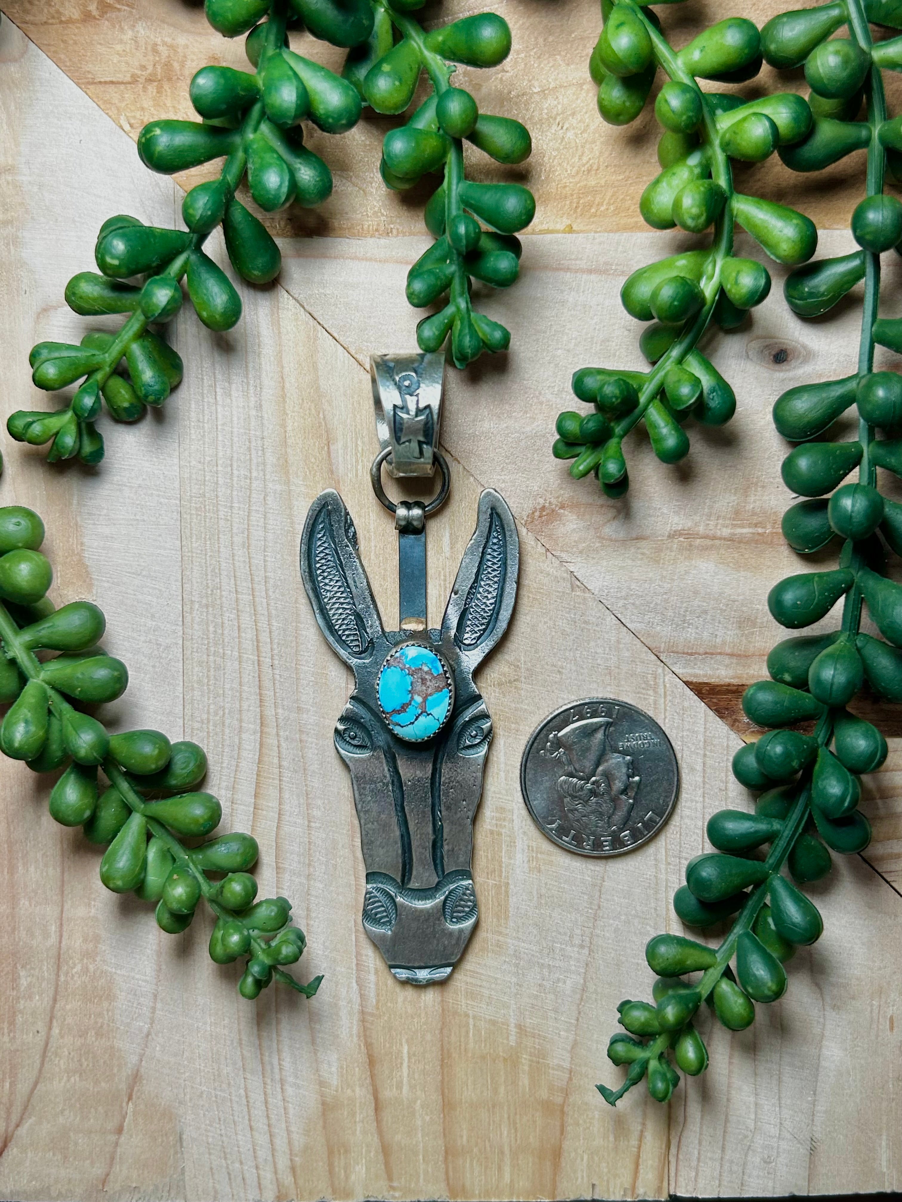 Kindale Billah Golden Hill Turquoise & Sterling Silver Pendant. It measures 3 3/4 inches long and 1 1/8 inches wide. Signed by the artist and stamped sterling silver.