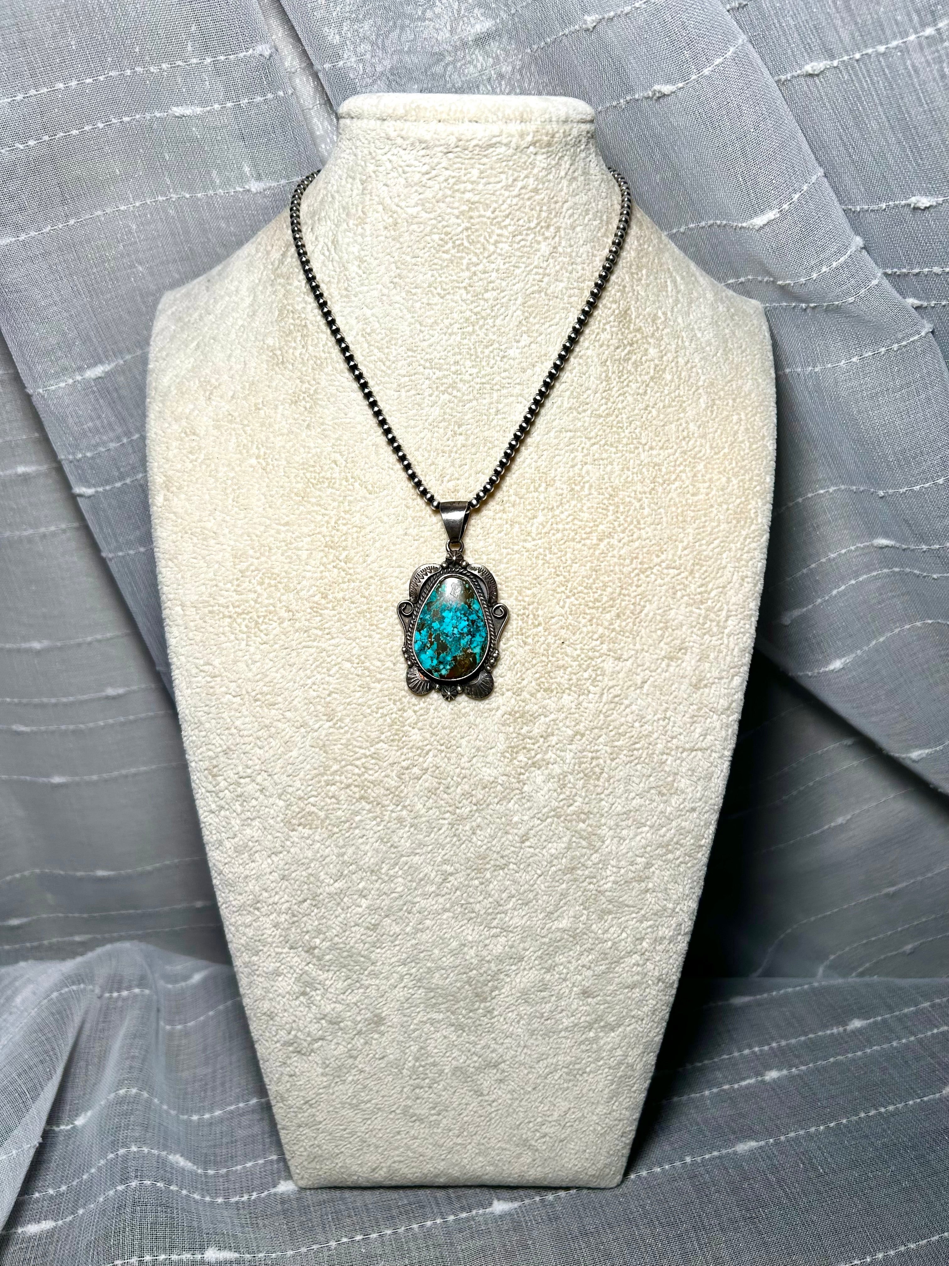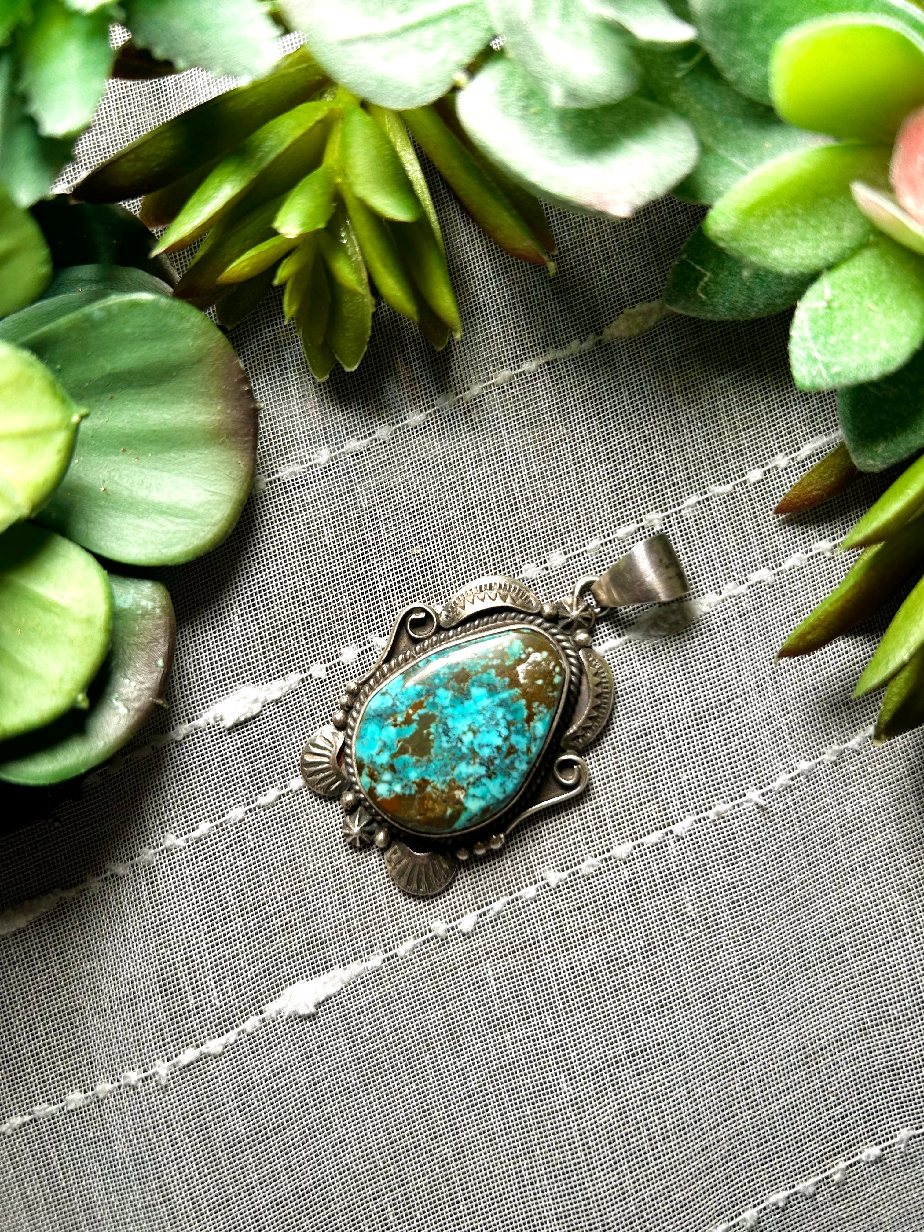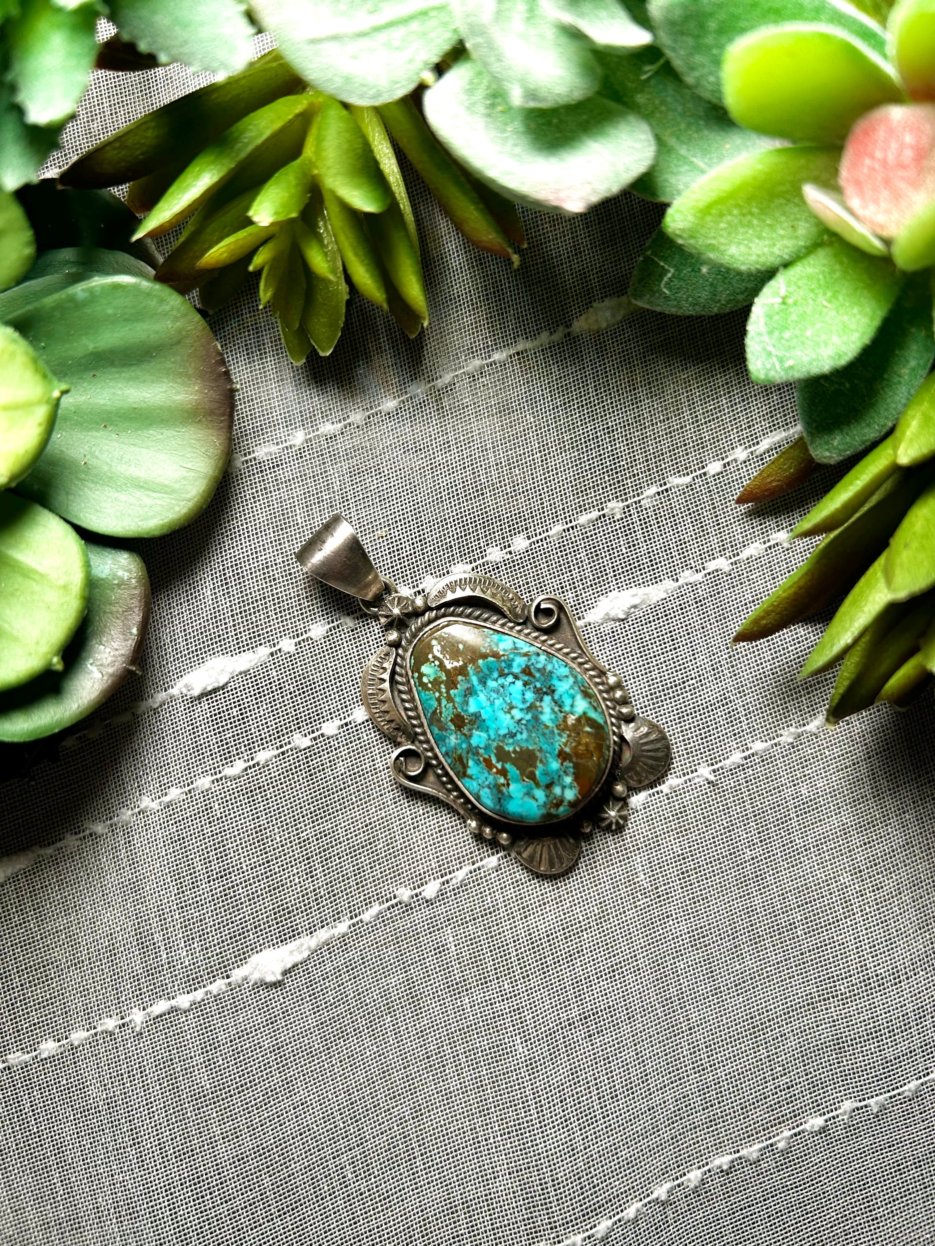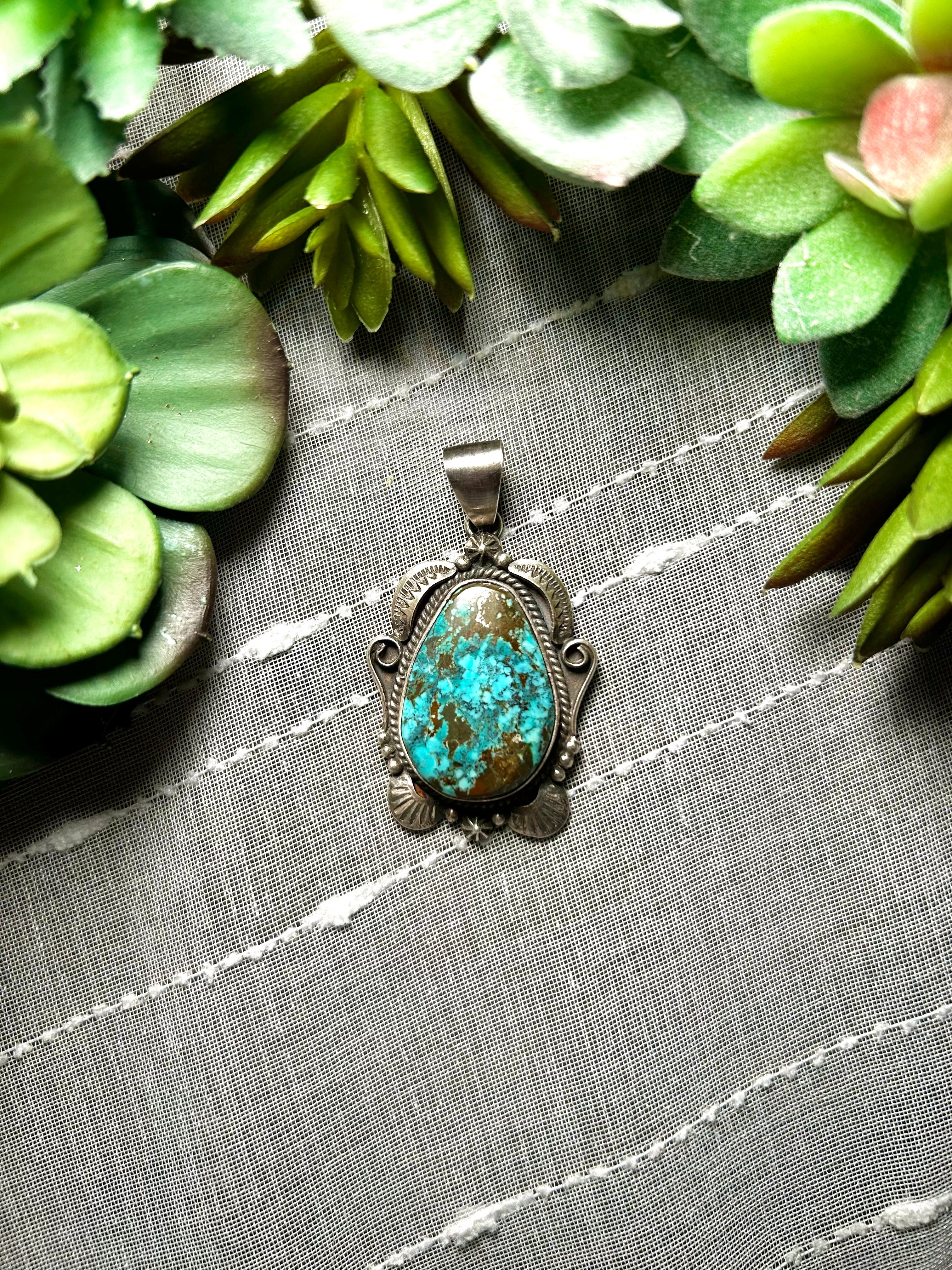 Peggy Skeets Kingman Turquoise & Sterling Silver Pendant