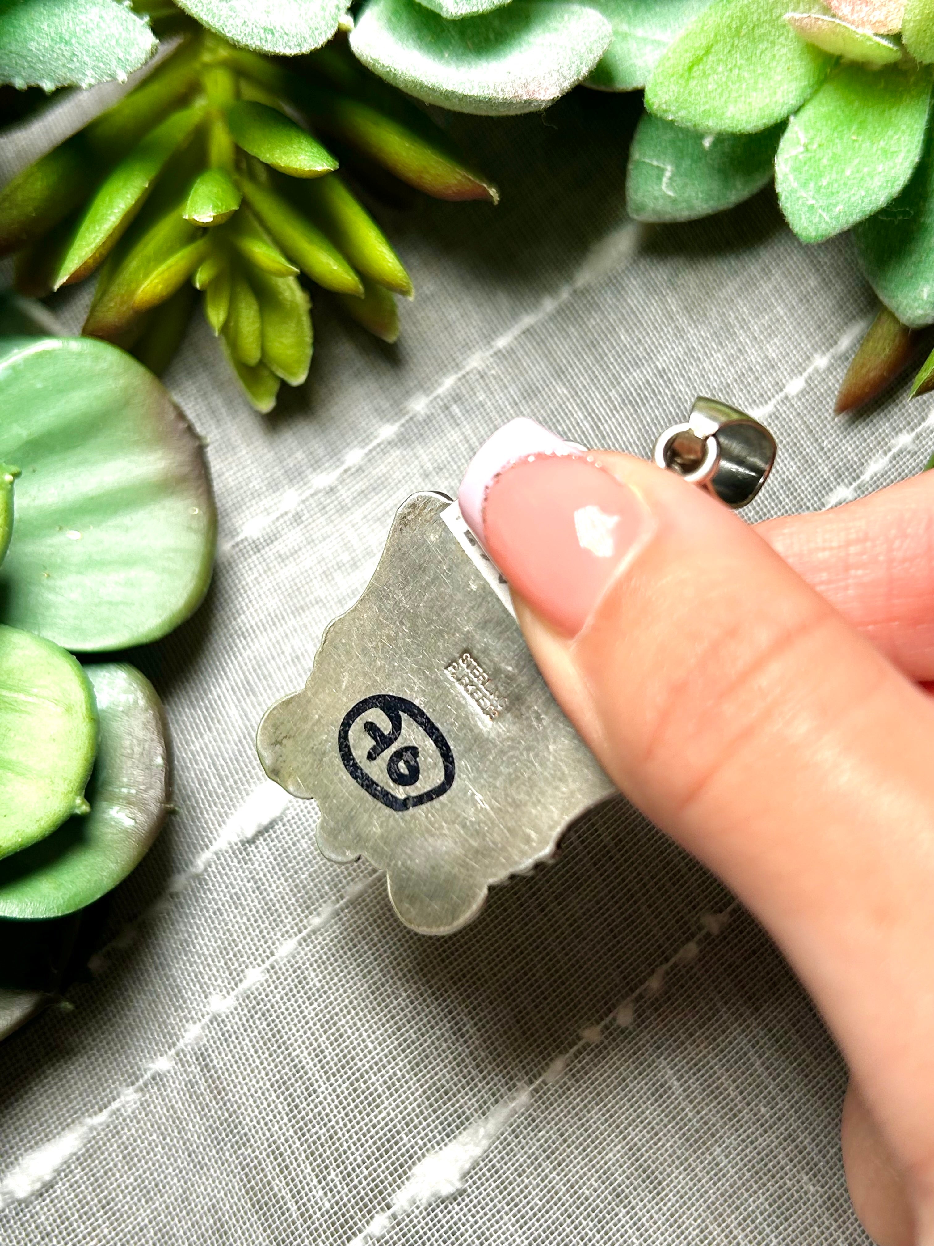 Peggy Skeets Kingman Turquoise & Sterling Silver Pendant. It measures 2 1/8 inches long and 1 1/4 inches wide. Pendant Only! Signed by the artist and stamped sterling silver.