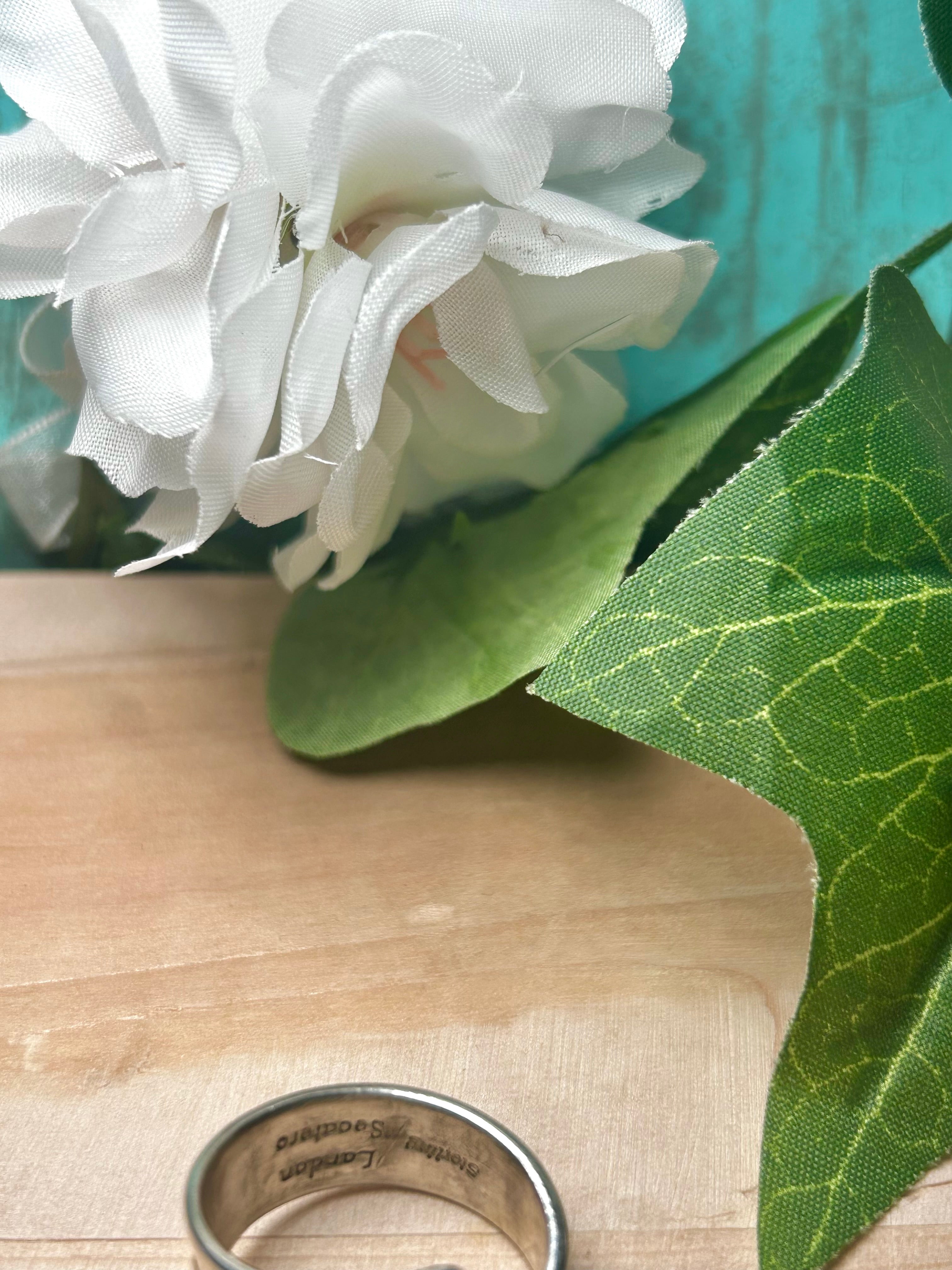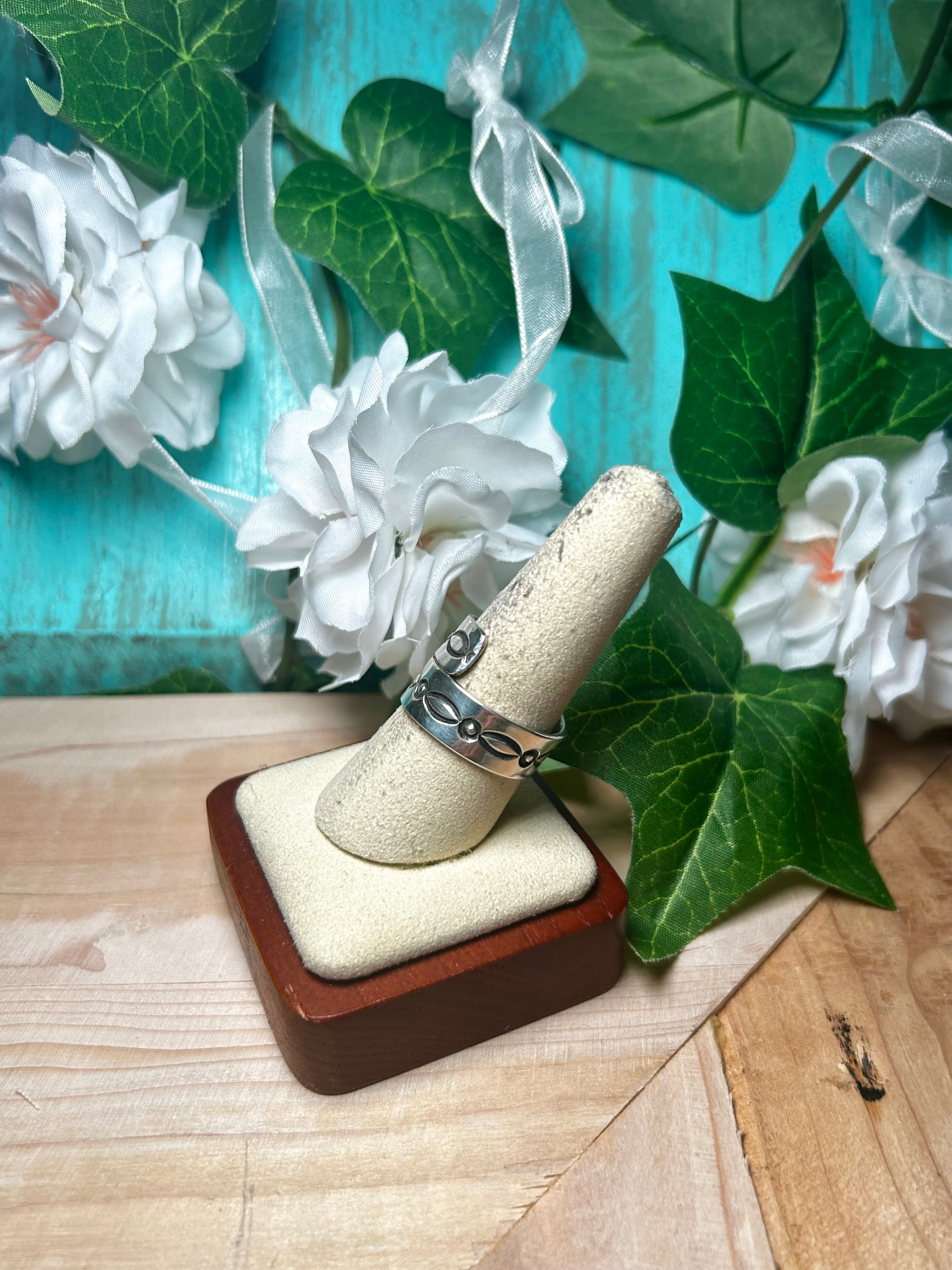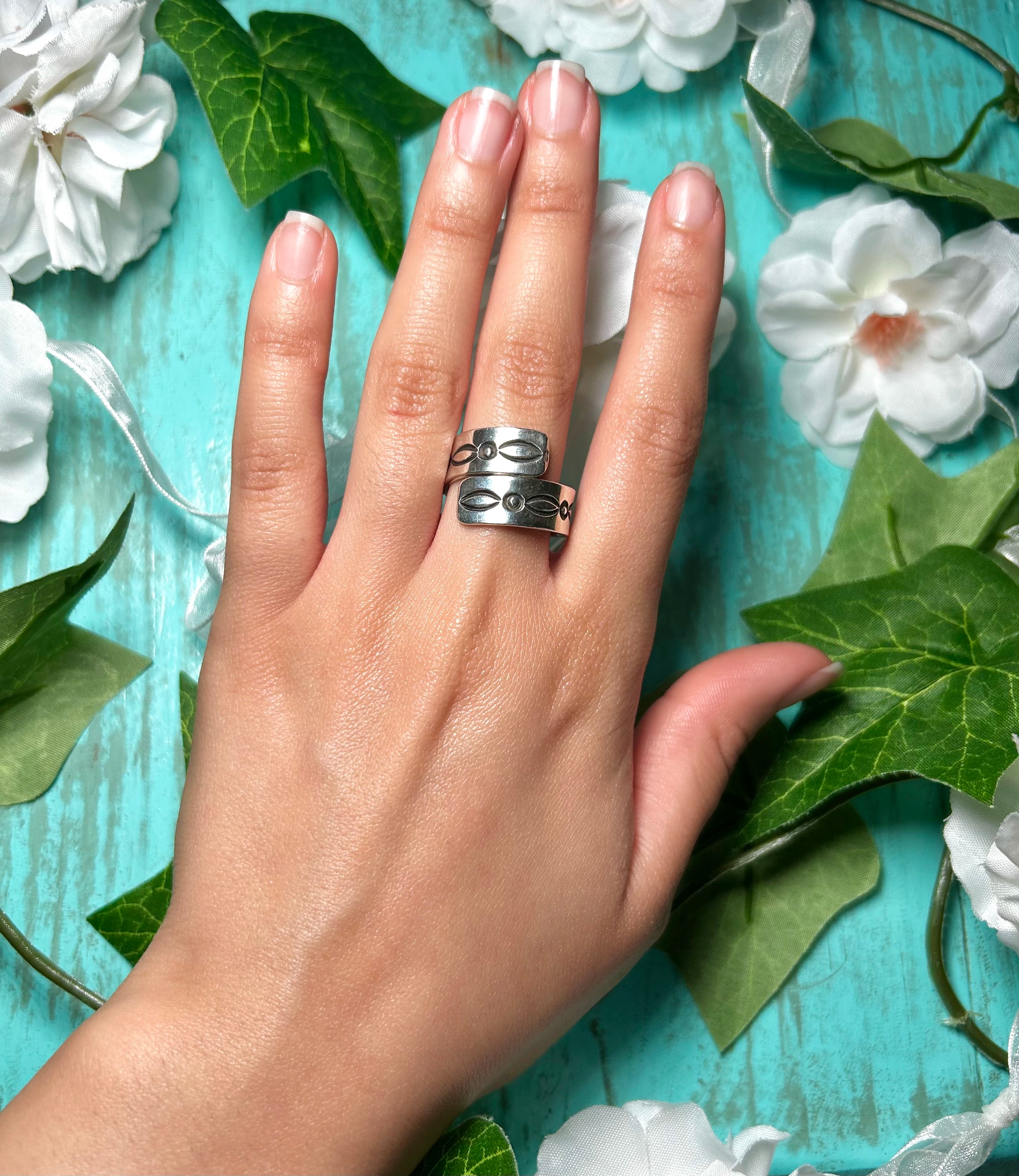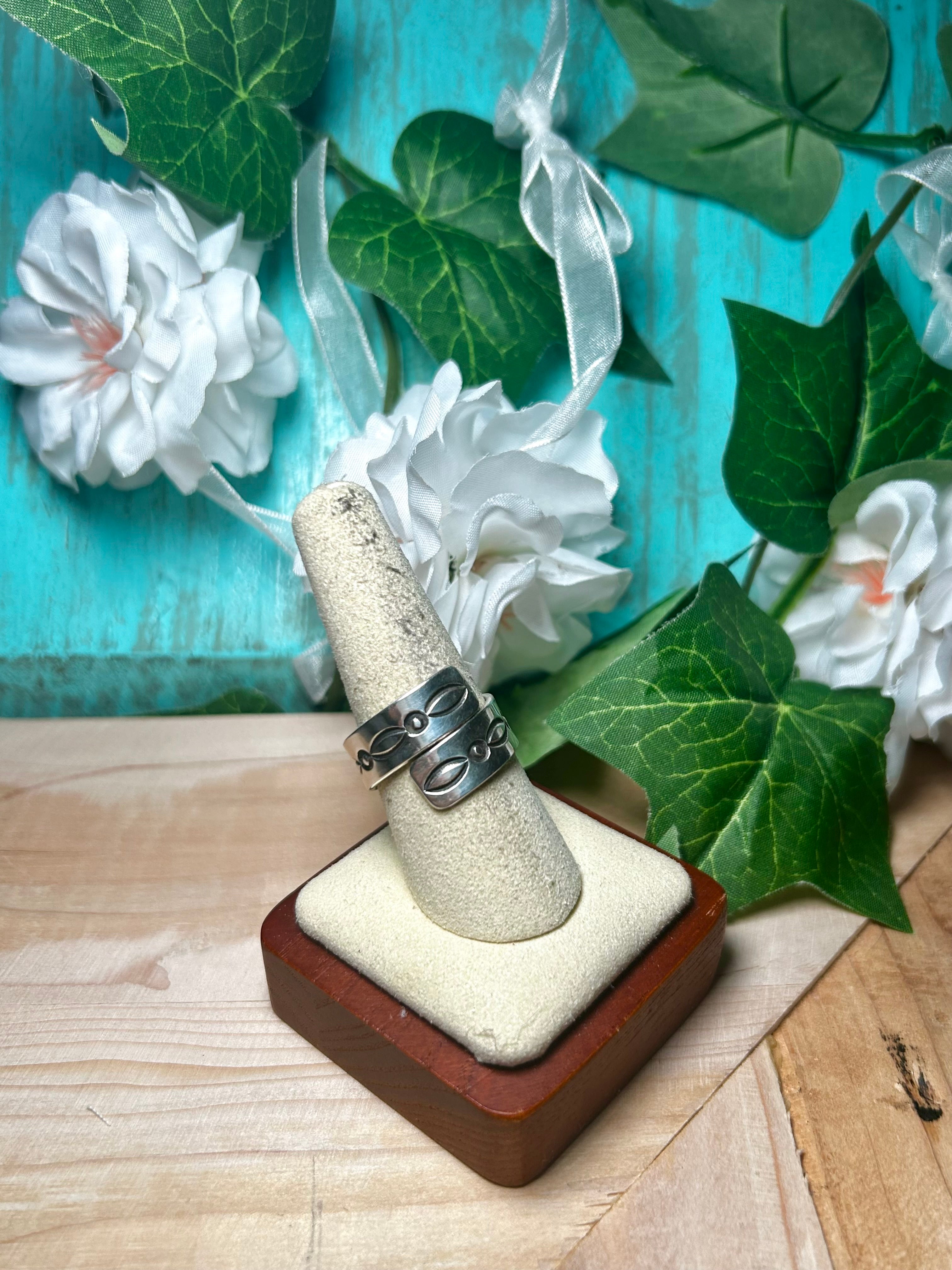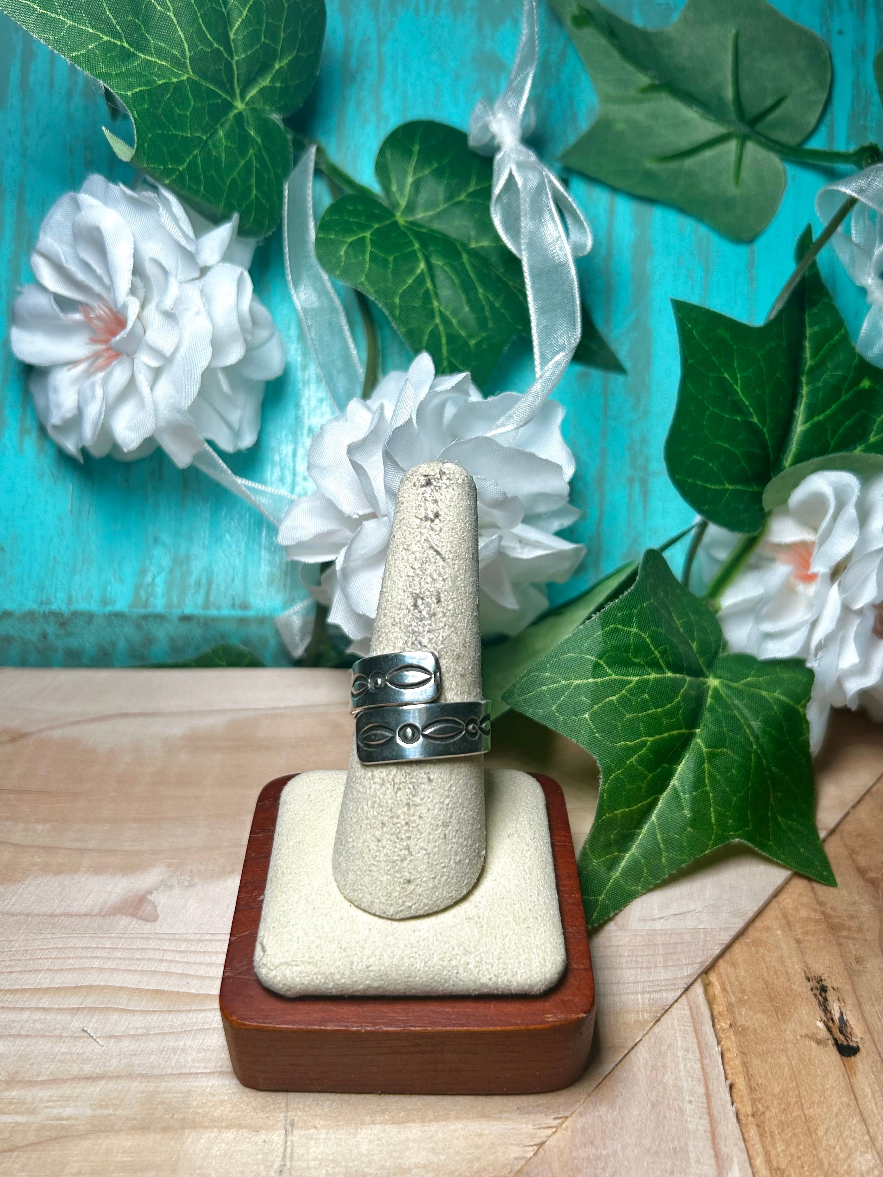 Landon Secatera Sterling Silver Adjustable  Ring. It measures 3/4 of an inch long and 3/4 of an inch wide. Stamped sterling silver and signed.