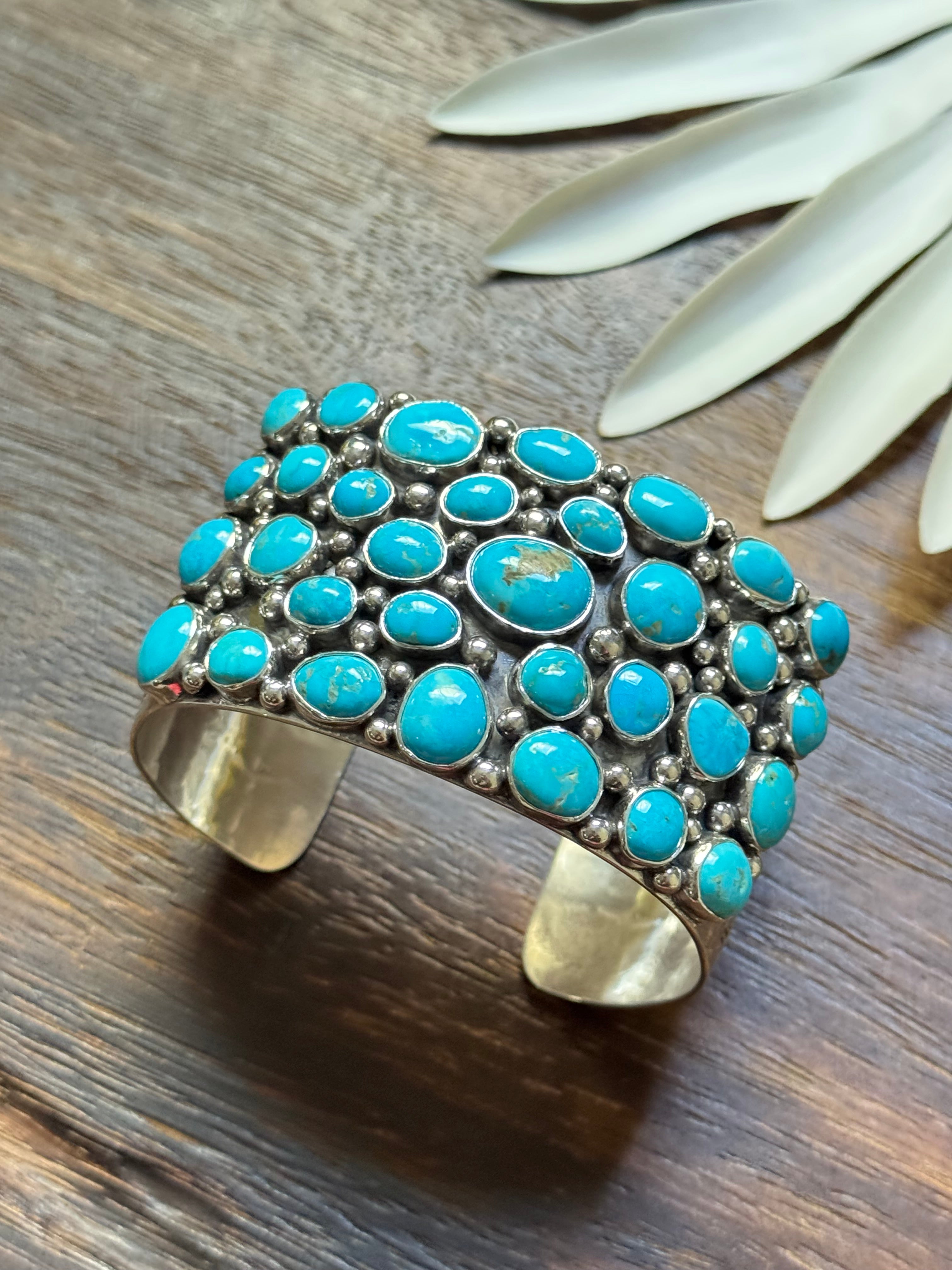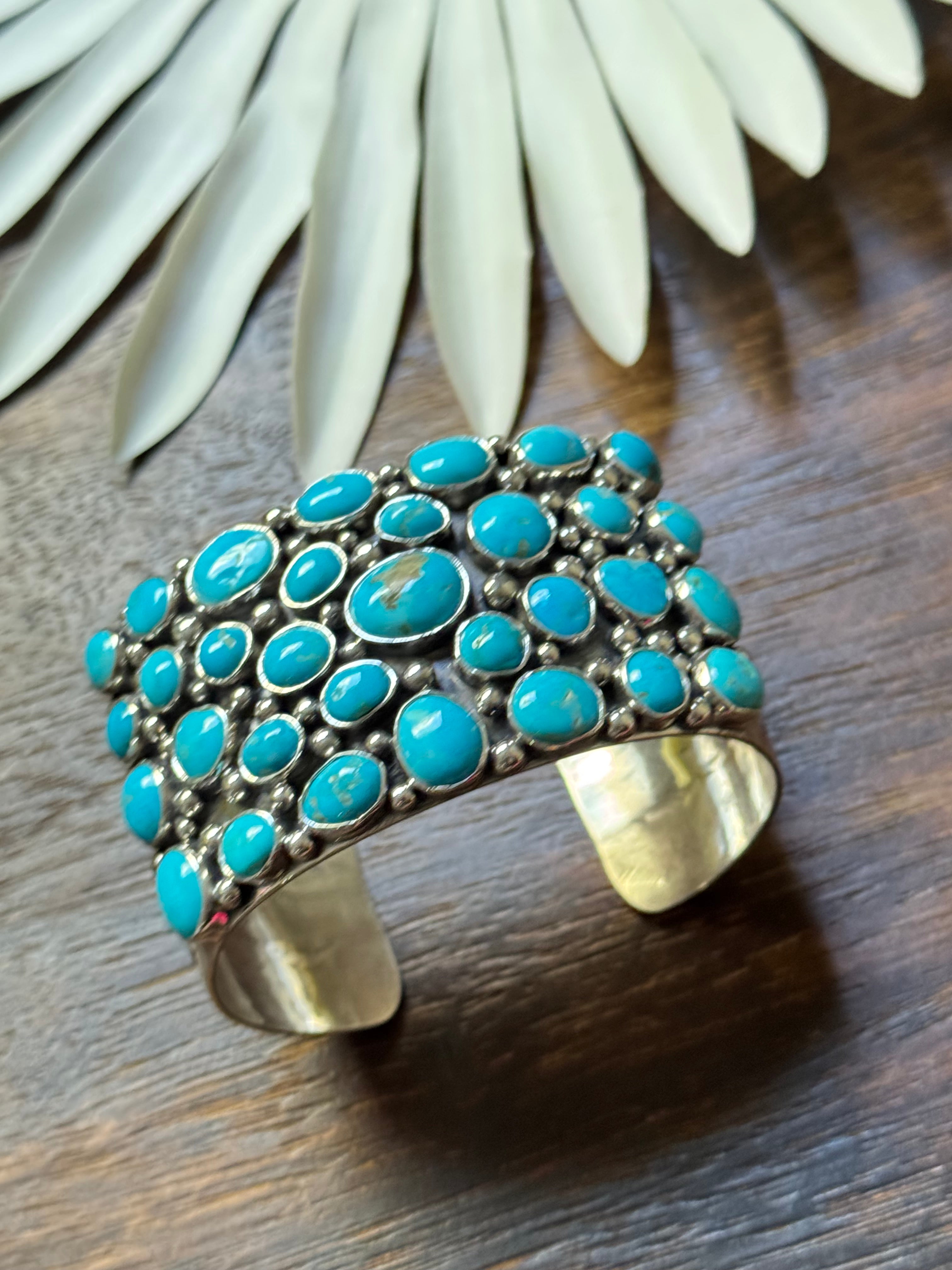 Larry Kaye Kingman Turquoise & Sterling Silver Cluster Cuff Bracelet