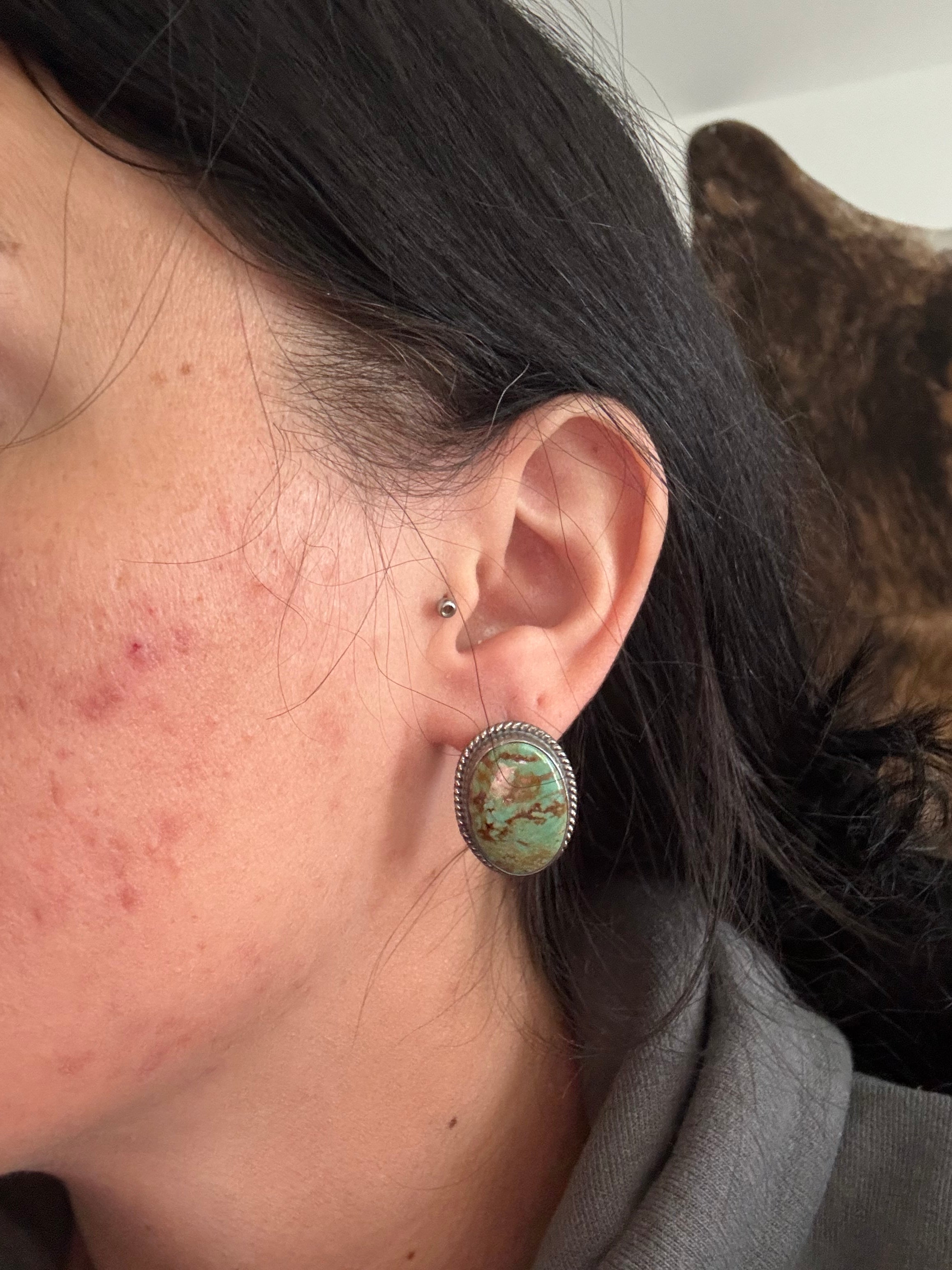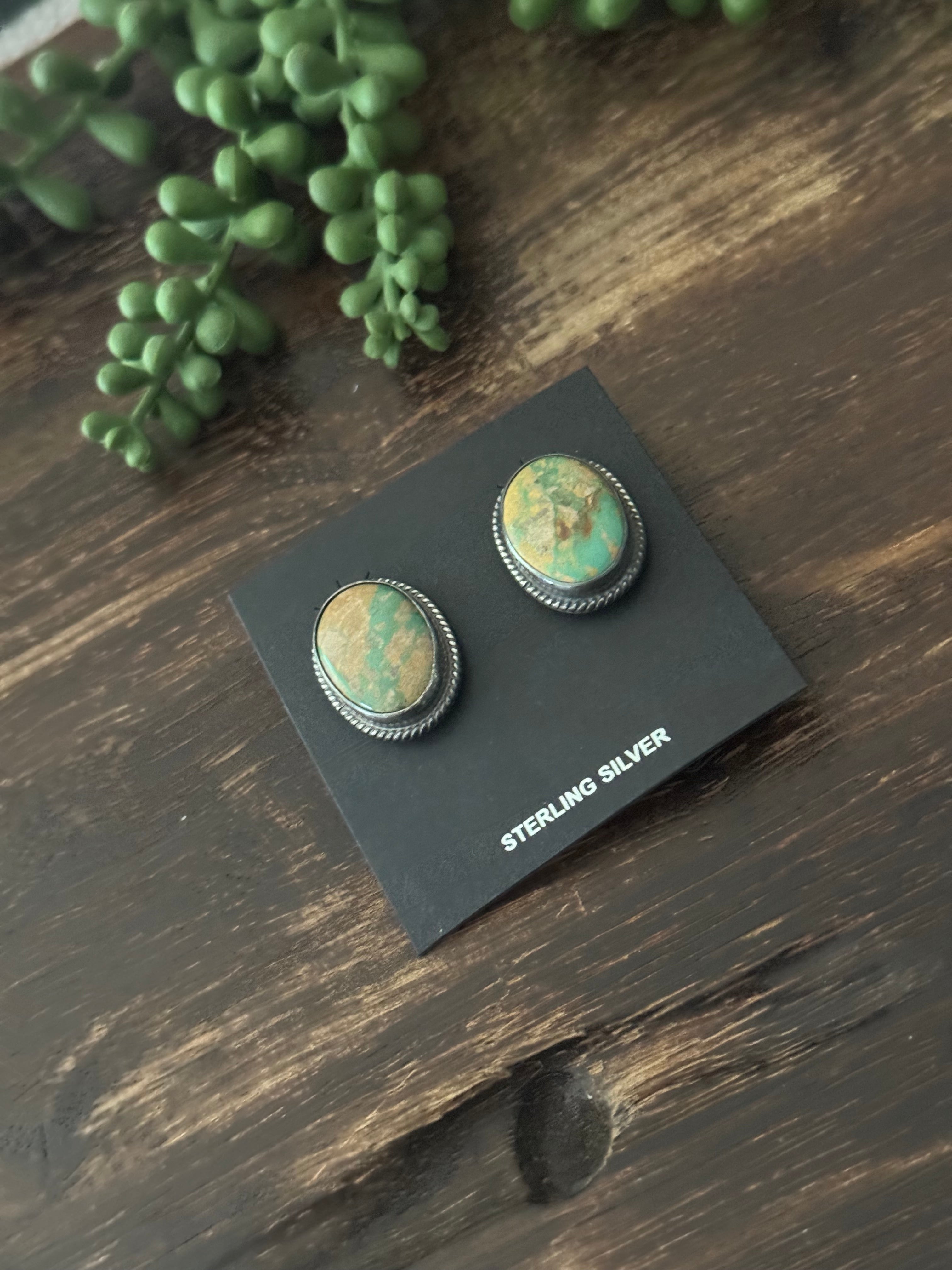 Larry Kaye Kingman Turquoise & Sterling Silver Post Earrings