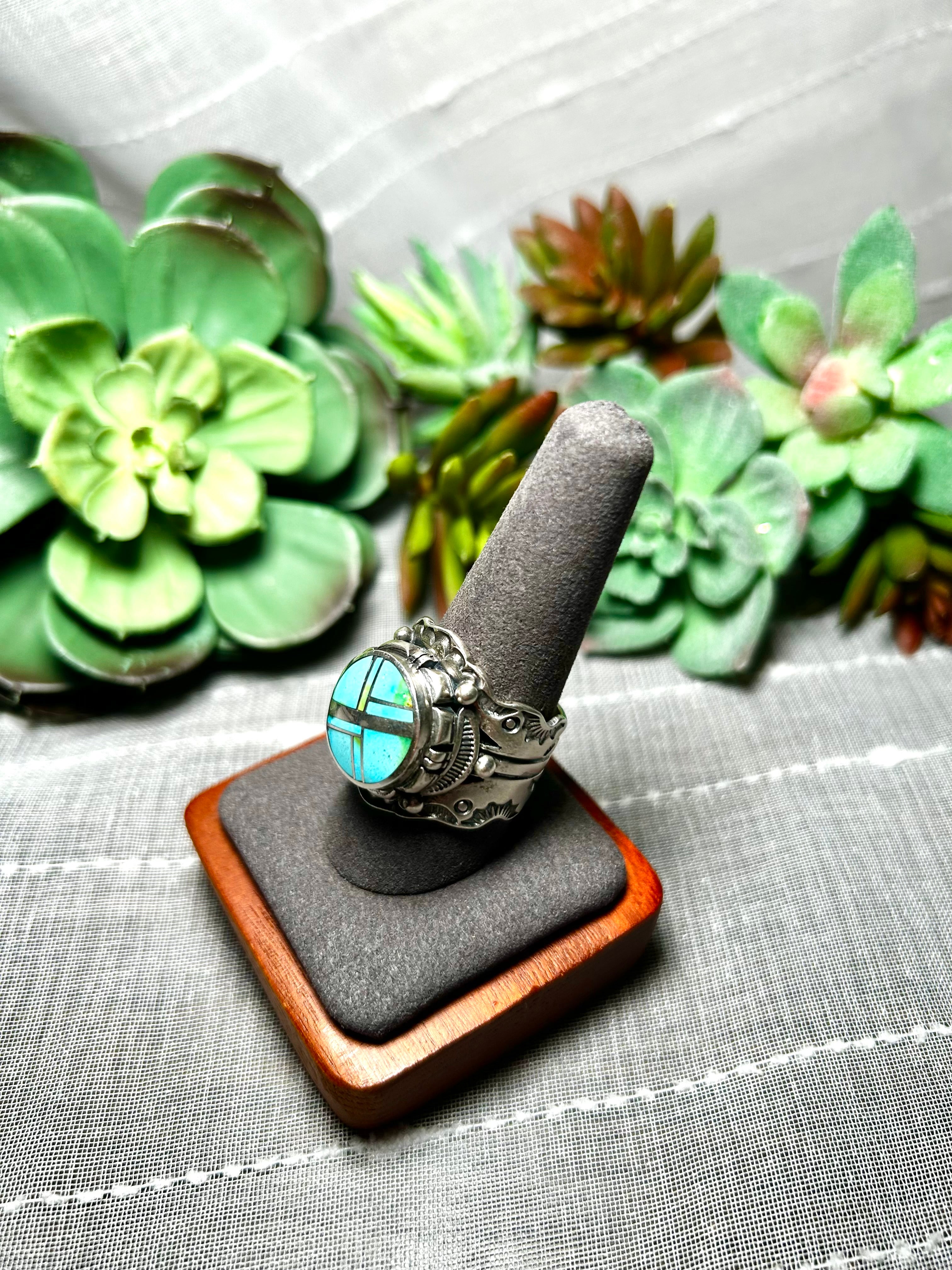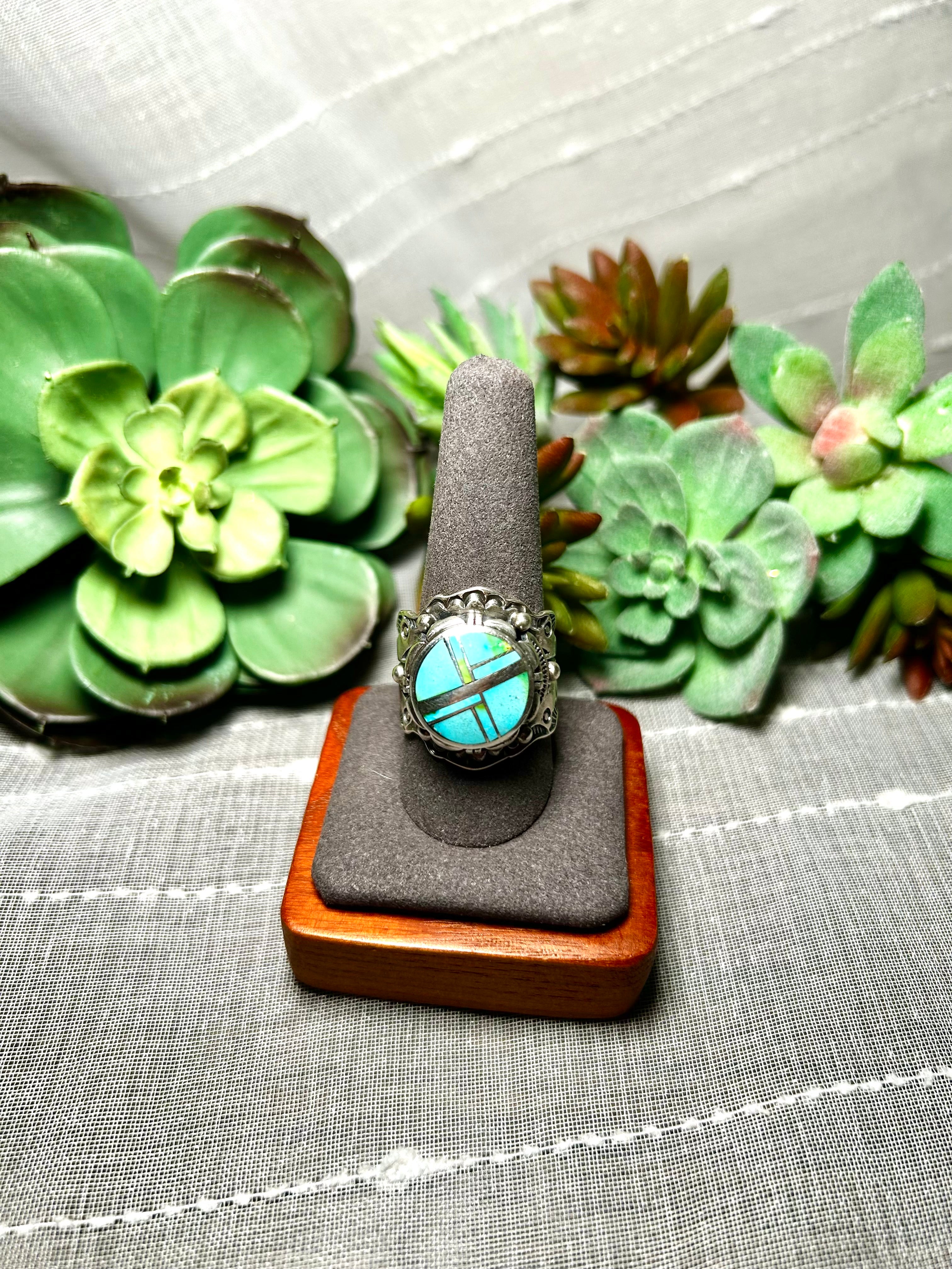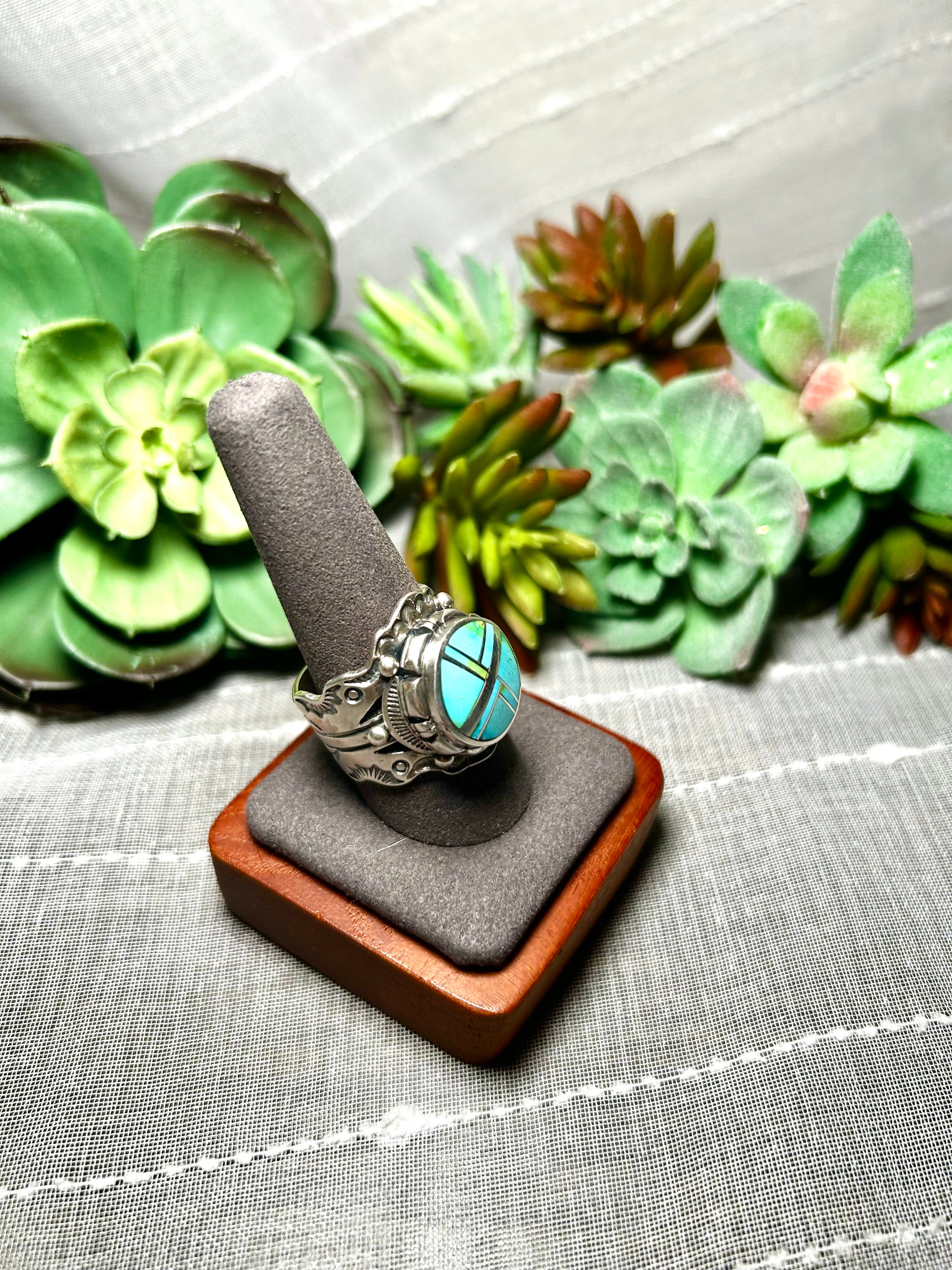 Larry Kaye Sonoran Mountain Turquoise & Sterling Silver Ring Size 10.5