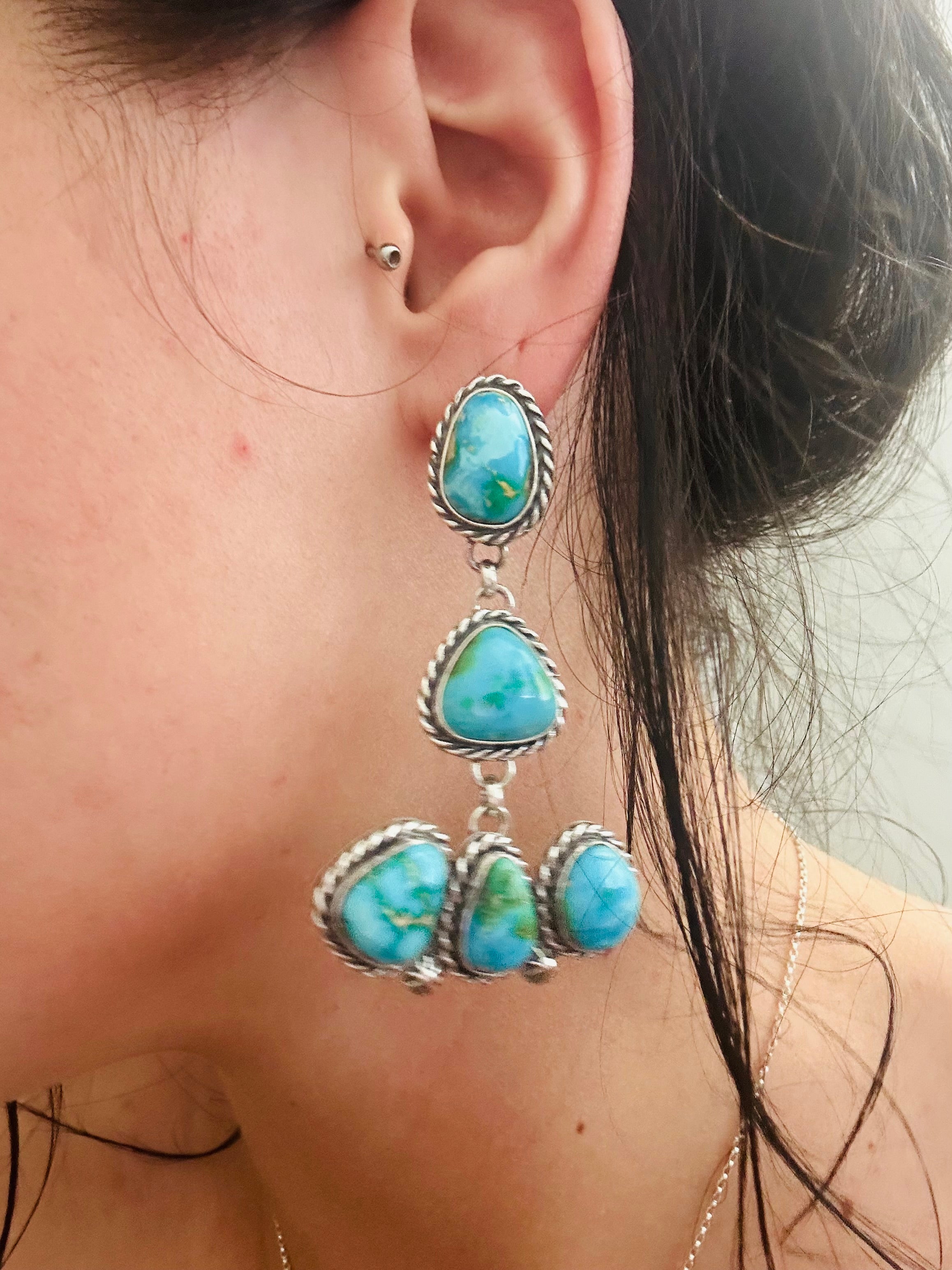 Larry Kaye Sonoran Mountain Turquoise & Sterling Silver Post Dangle Earrings