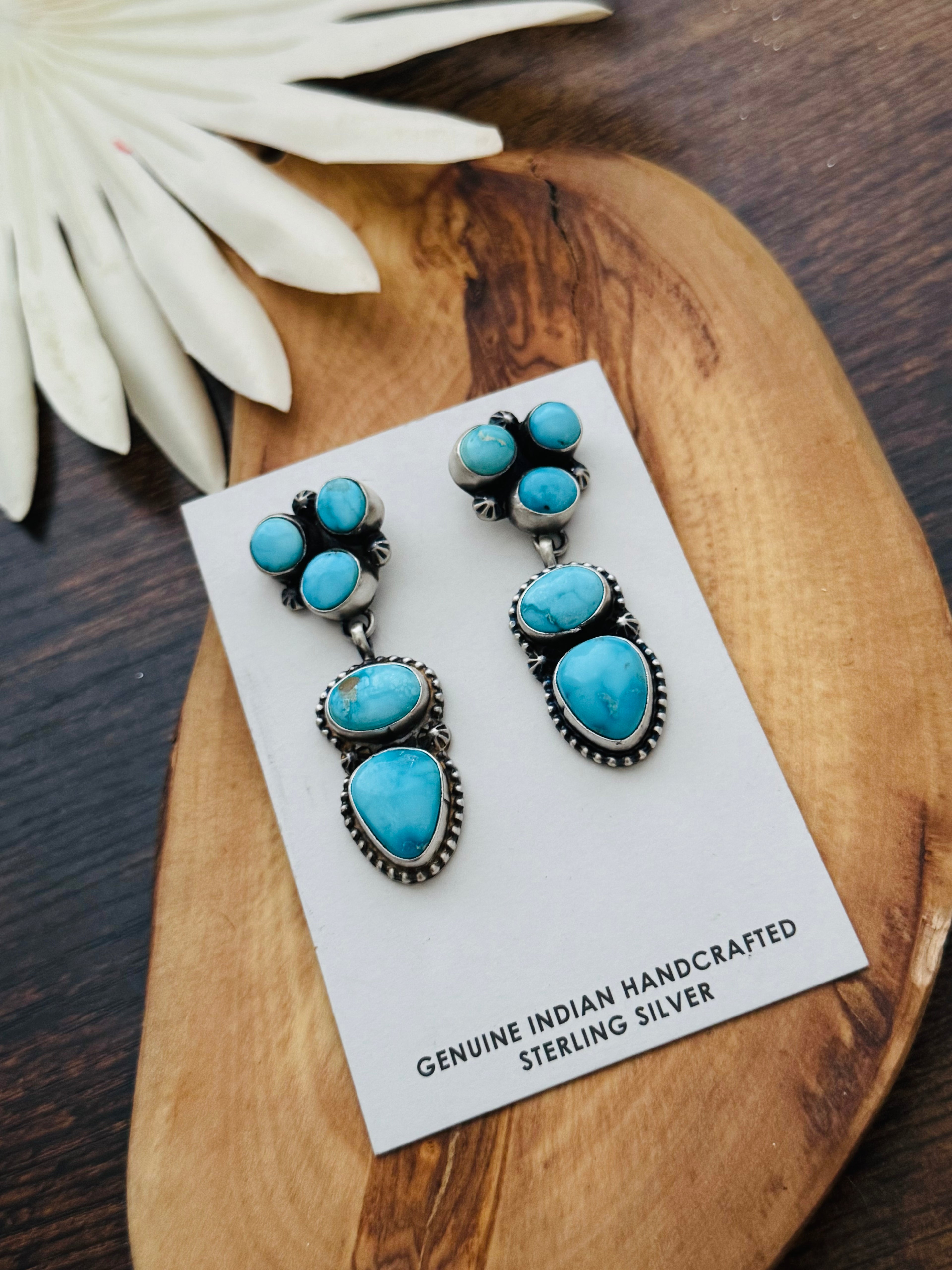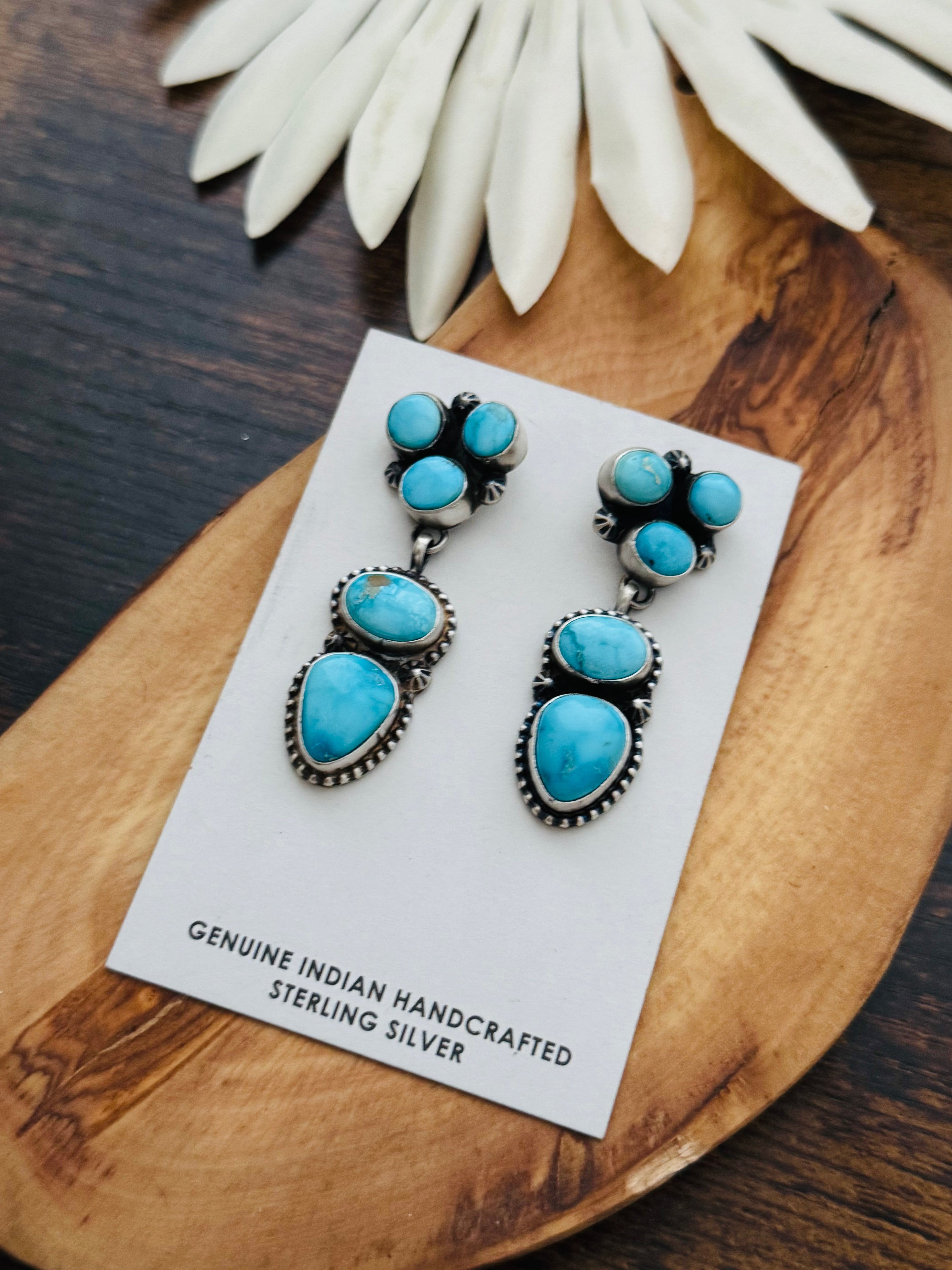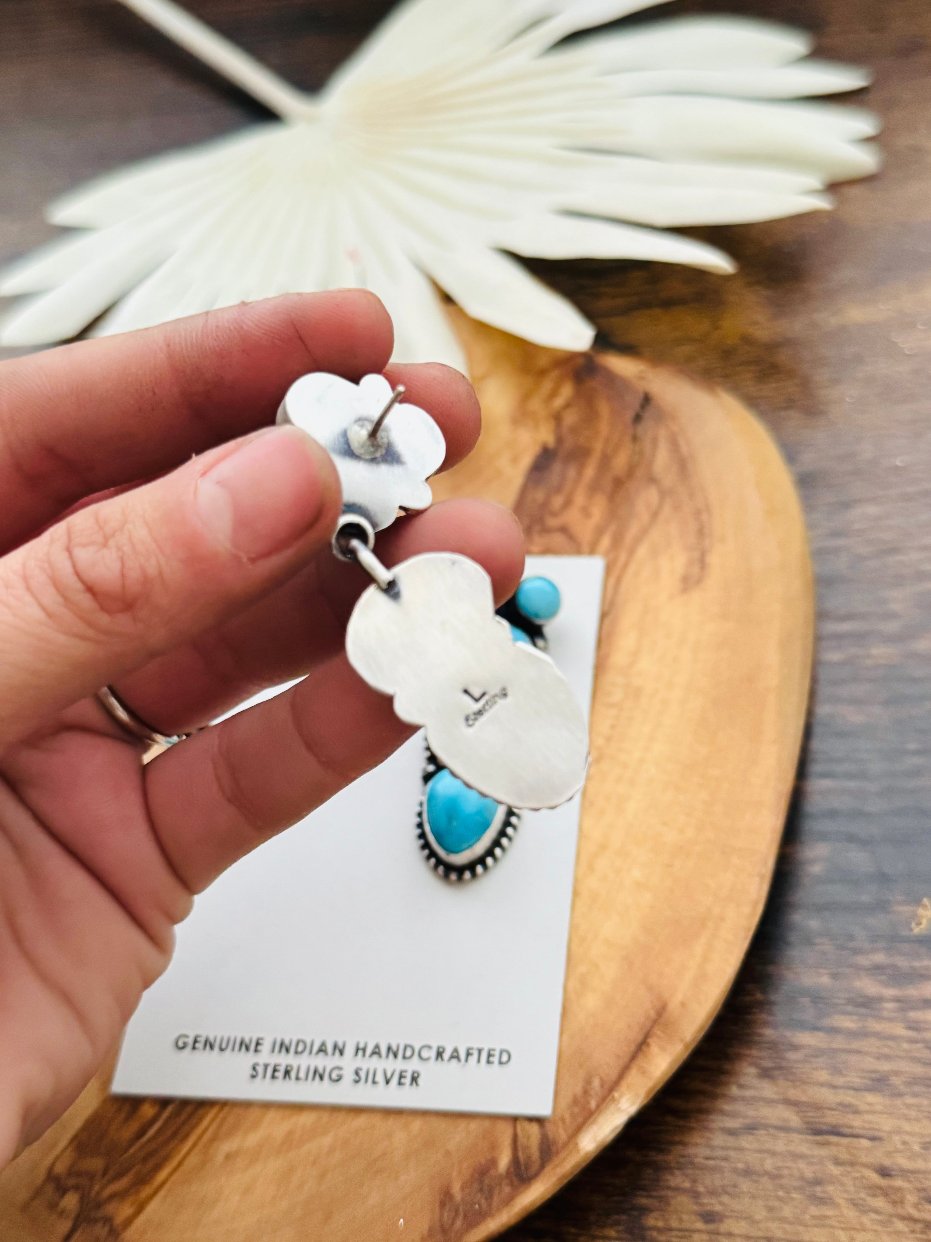 Lorenzo Juan Valley Blue Turquoise & Sterling Silver Post Dangle Cluster Earrings