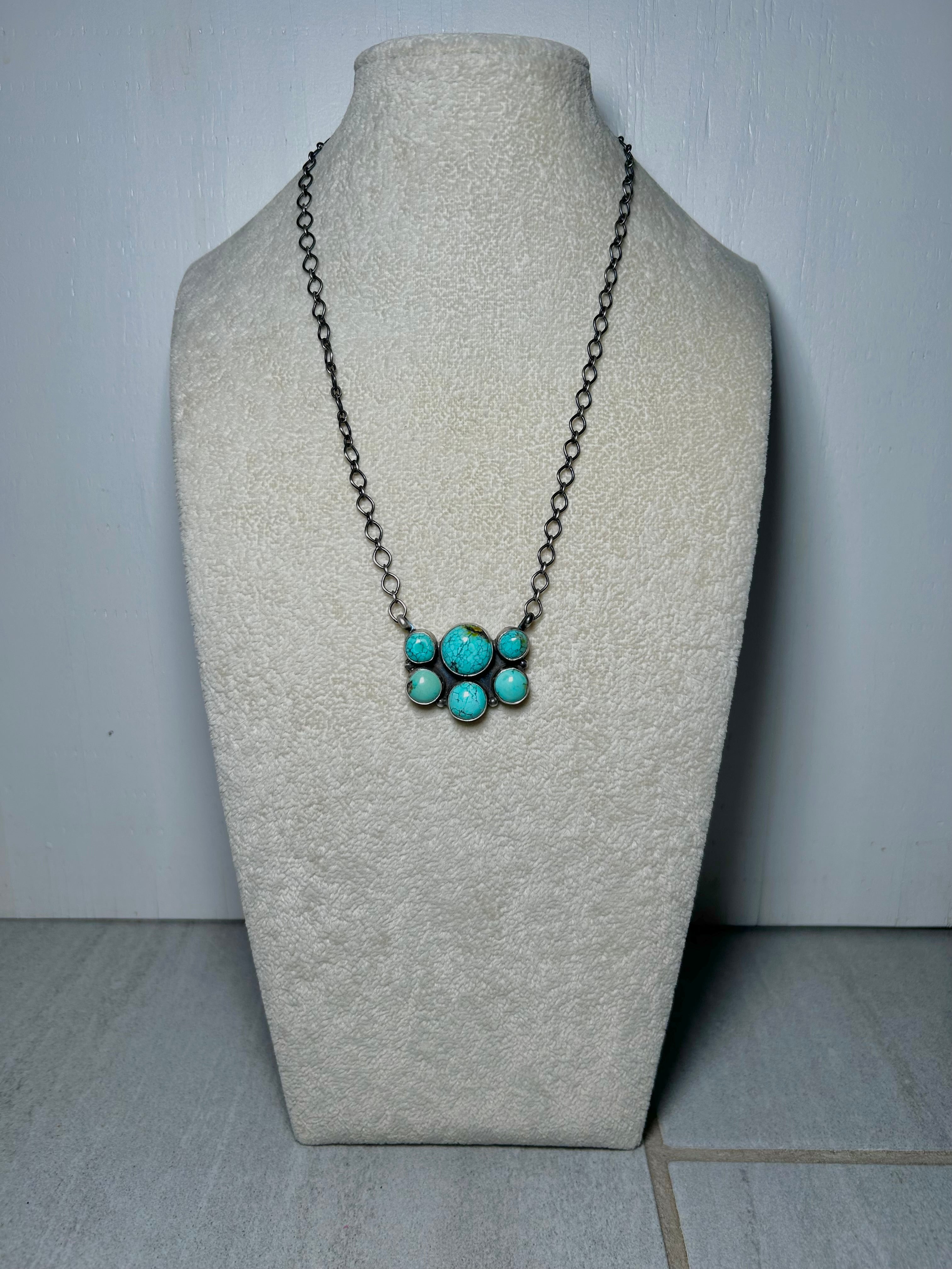 Navajo Made Blue Moon Turquoise & Sterling Sliver Necklace